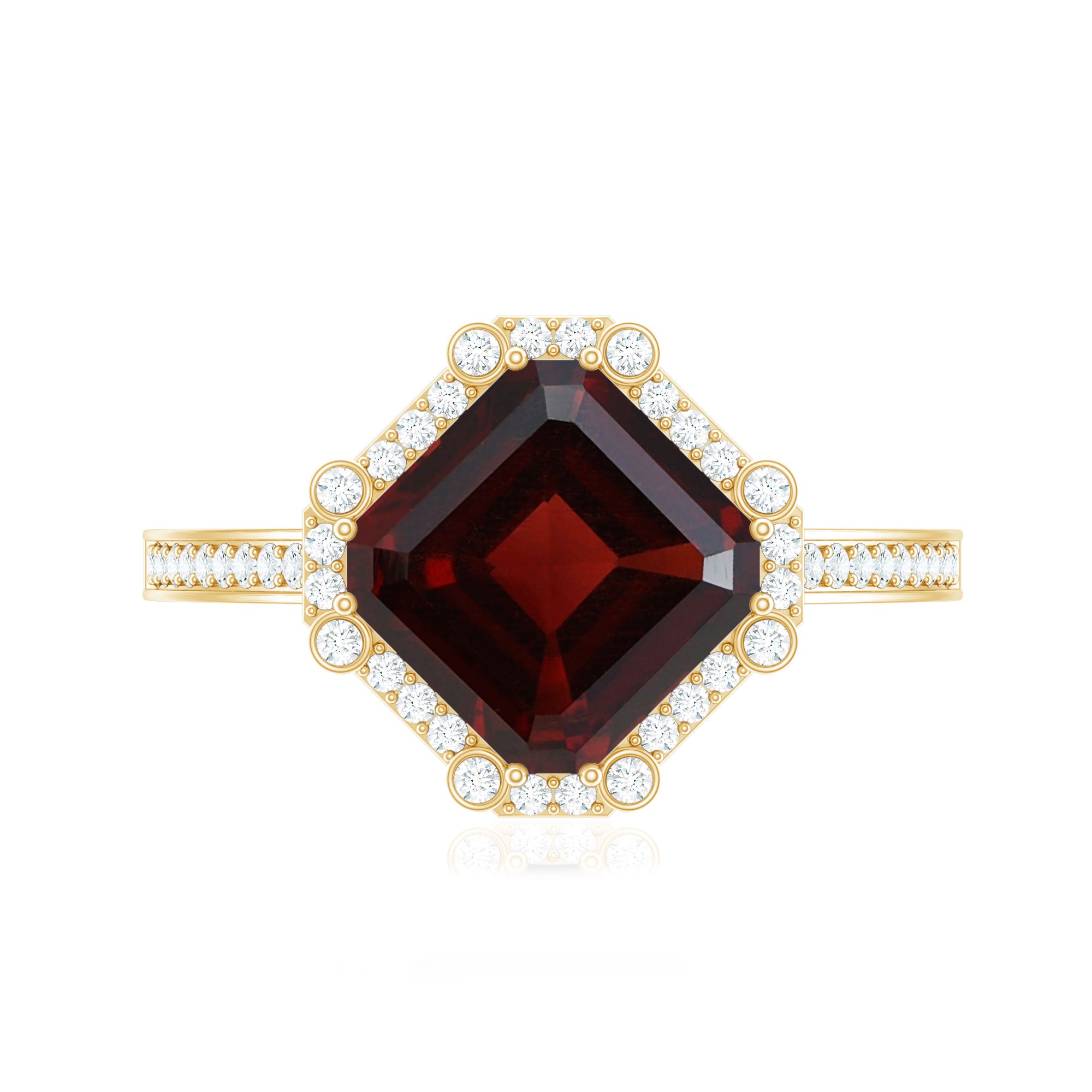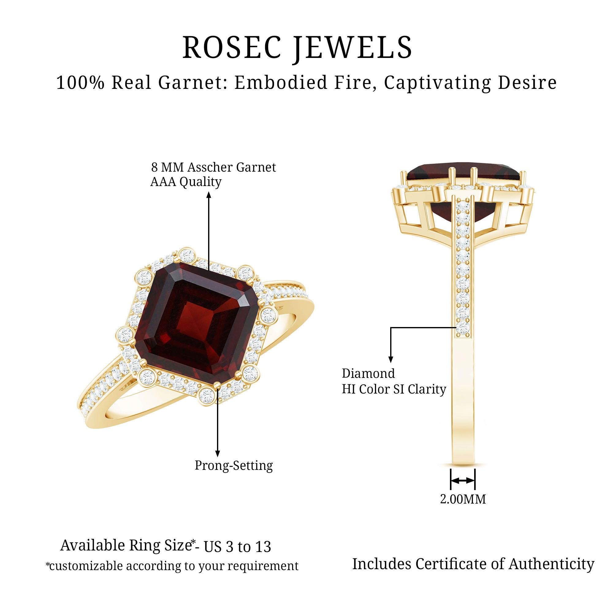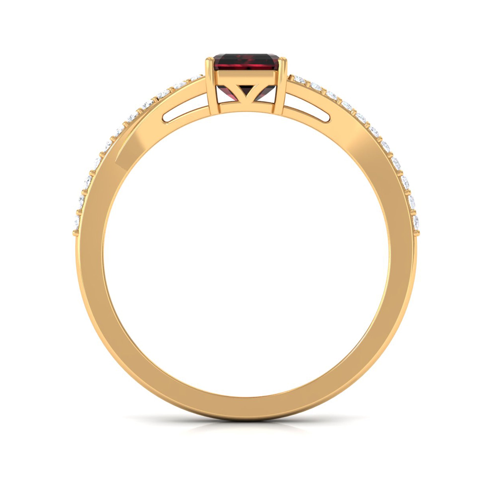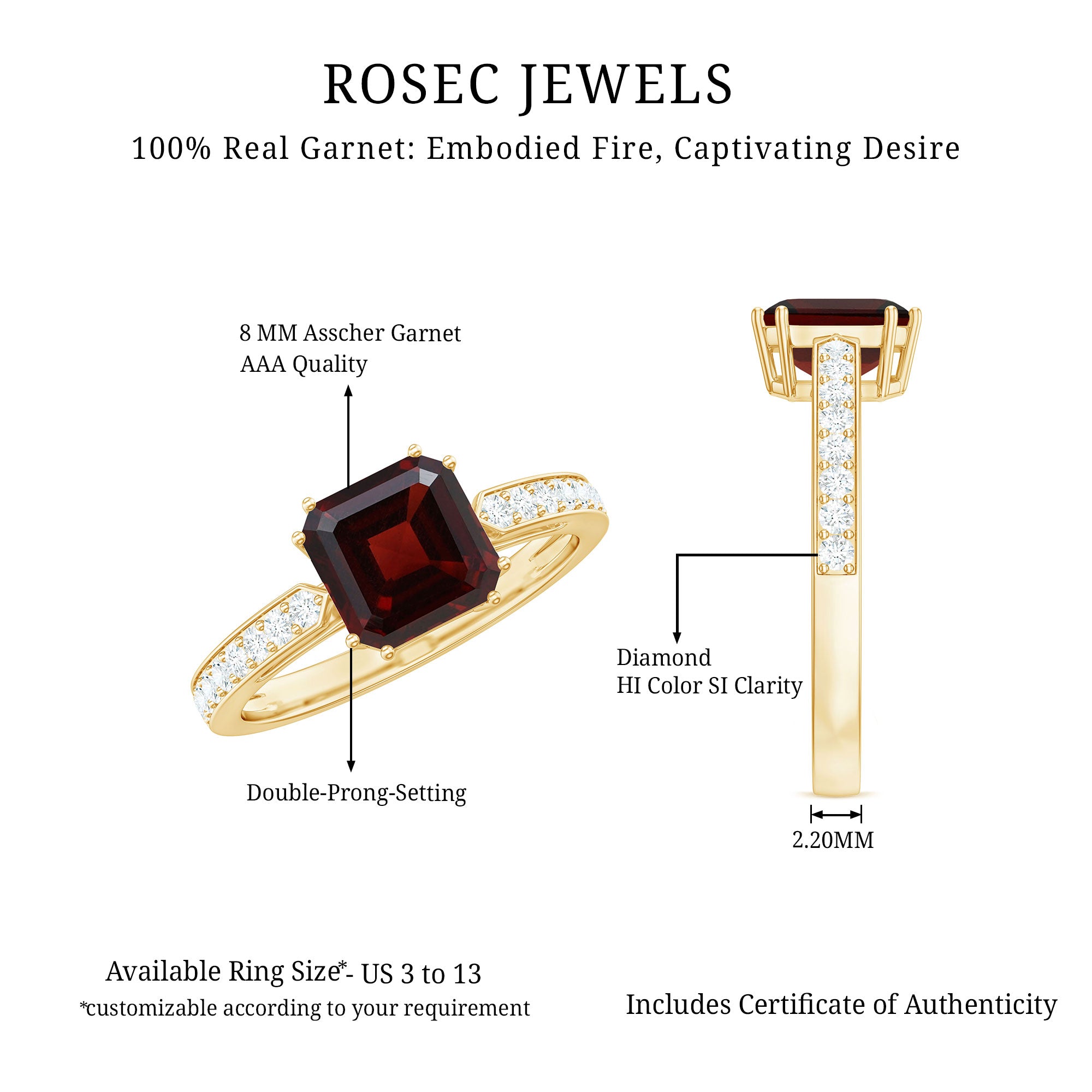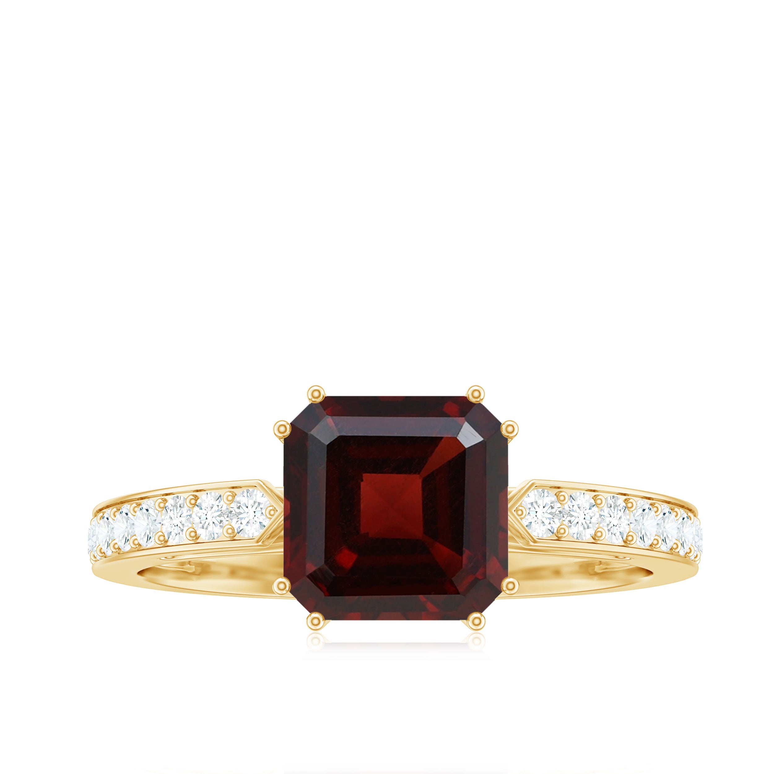 Garnet Solitaire Rings: - Truly the most traditional option for a garnet engagement rings, the Solitaire Style emphasizes the singular centerpiece of garnet. What's great about this style is its versatility, appealing to various aesthetics. While a round cut garnet solitaire ring might be the classic choice. You can also opt for fancier cuts such as marquise, pear, or princess shapes to add a contemporary touch. For those seeking a vintage vibe then an asscher, cushion, or emerald cut garnet engagement ring will be the ideal choice.