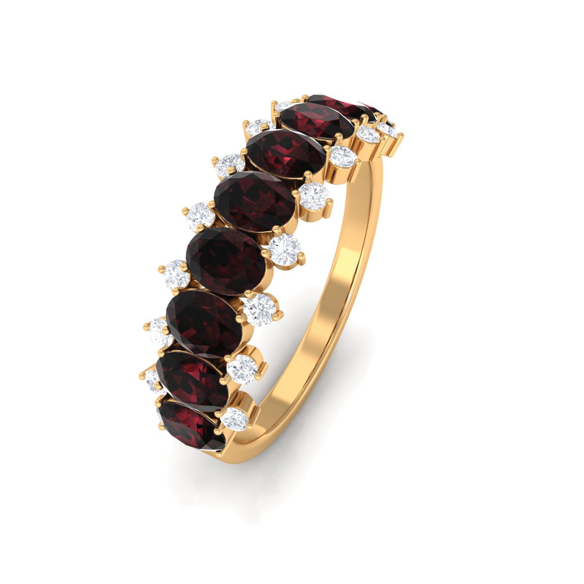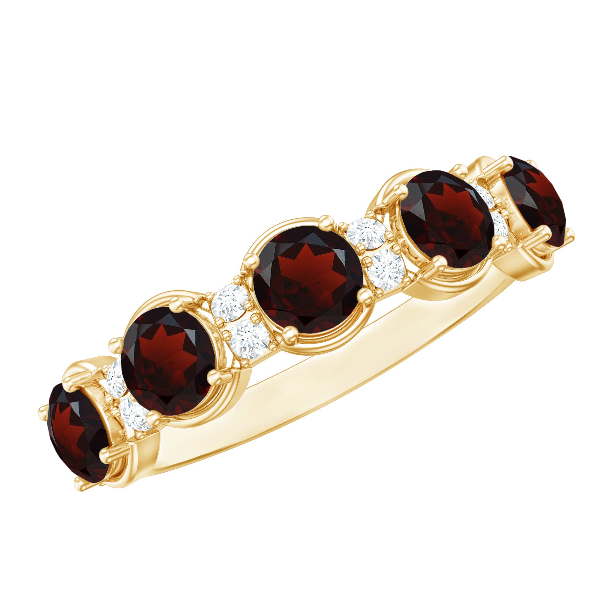 Garnet Eternity Rings: - An eternity ring showcases a continuous circle of garnets, providing a vibrant burst of color for those seeking more than a solitaire style. With its bold red hue, a garnet eternity ring becomes a classic yet striking accessory in your jewelry collection. Moreover, a garnet and diamond ring in an eternity style offers a unique blend of color and sparkle, making it a truly exotic choice. Beyond its aesthetic appeal, this style symbolizes a love that transcends boundaries, making it a meaningful option for a garnet wedding ring.