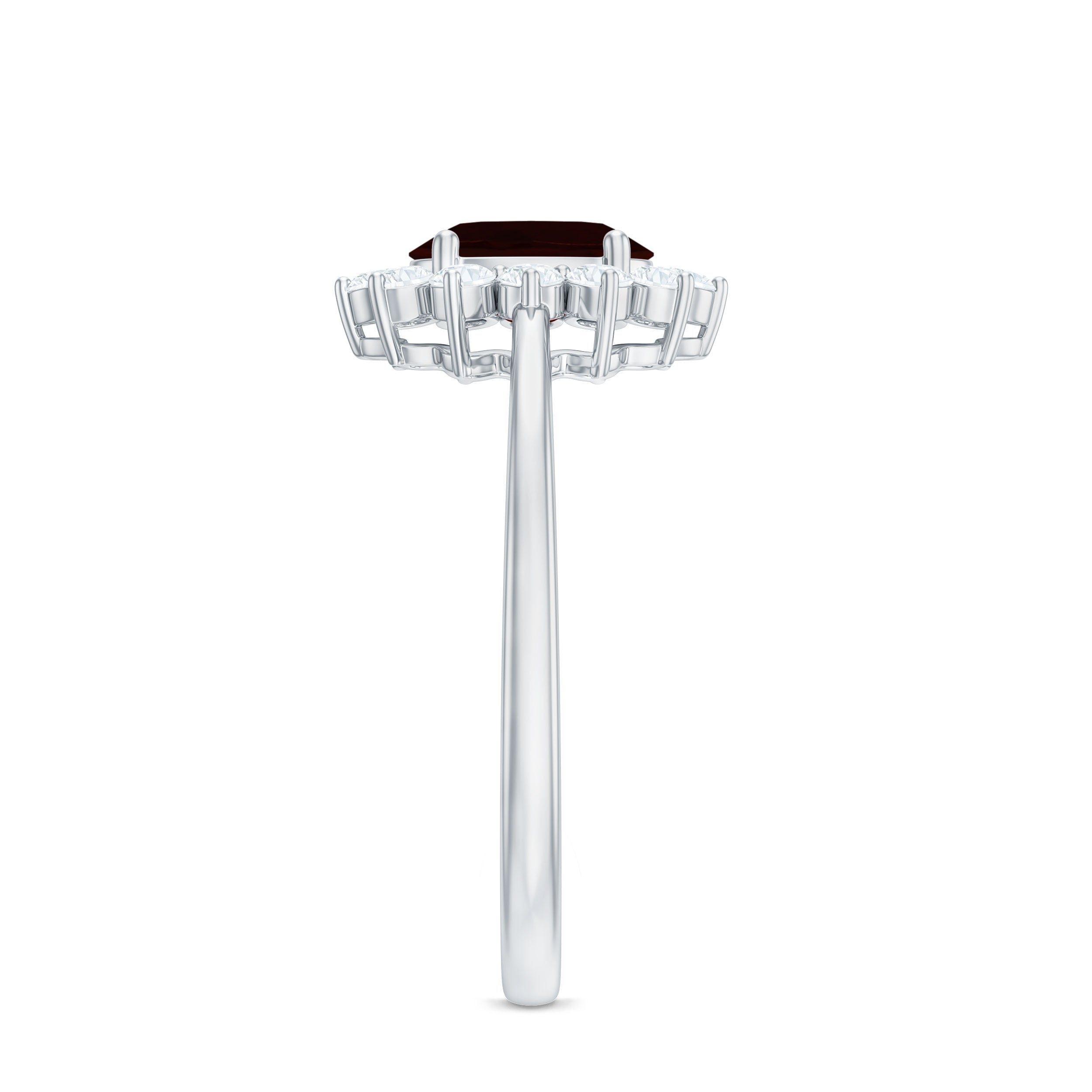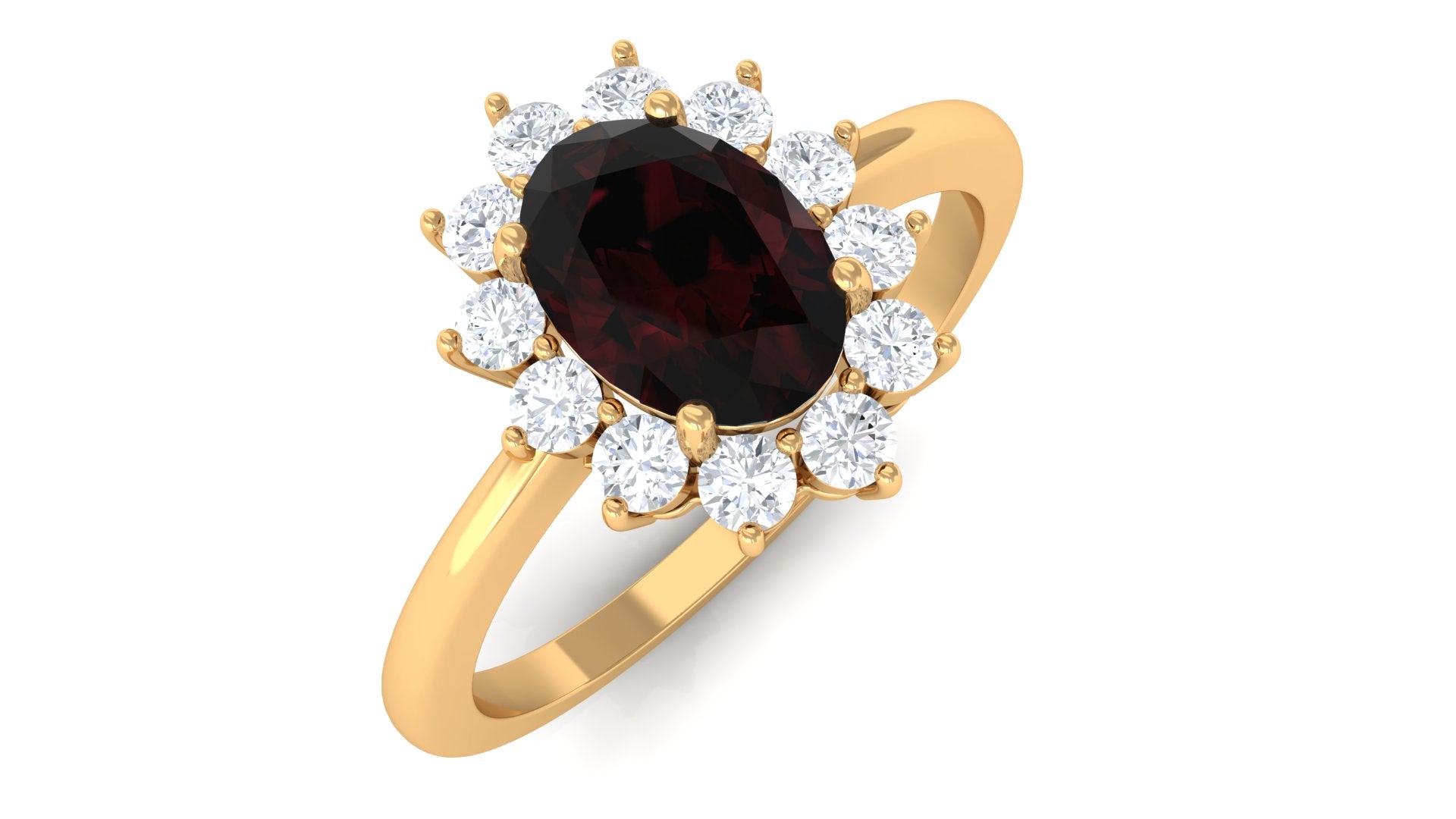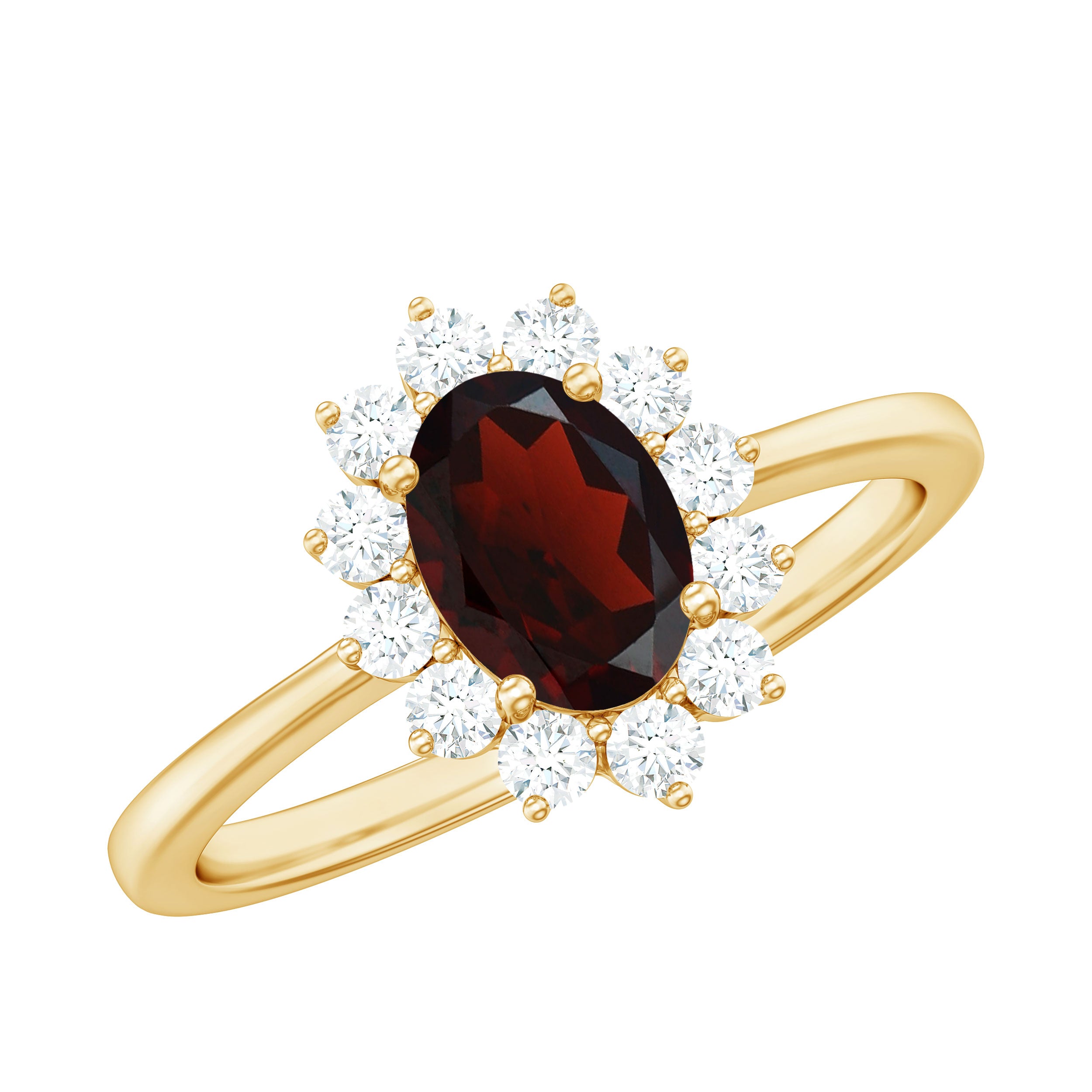 Garnet Halo Rings: - A fascinating twist on the traditional Solitaire Ring is the “halo ring”, which features a circle of diamond or moissanite surrounding the garnet solitaire. The Halo isn't just about adding sparkle; it adds versatility to the ring. Furthermore, it draws more focus to the garnet, creating the illusion of a larger stone. The halo style makes the ring more unique and attractive.