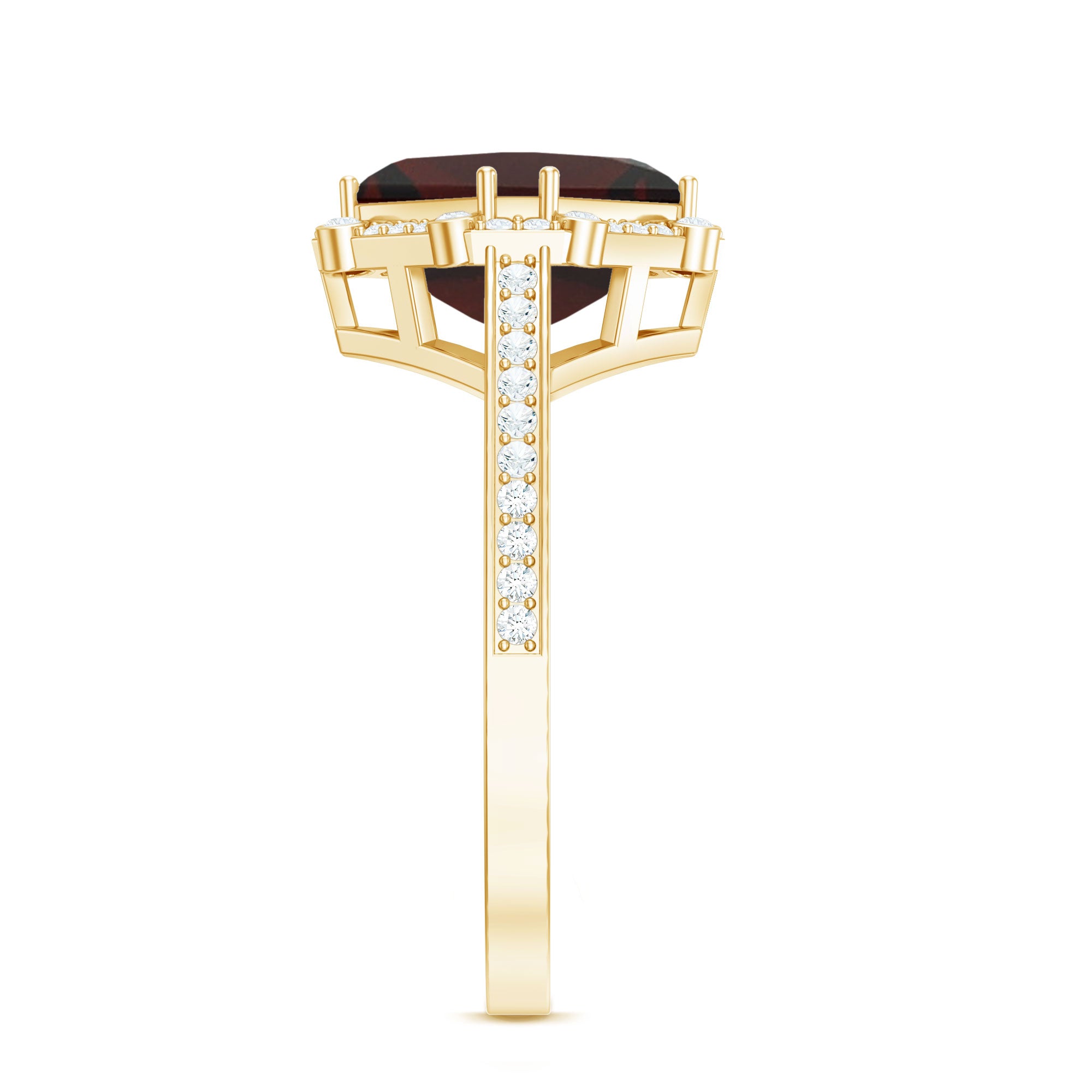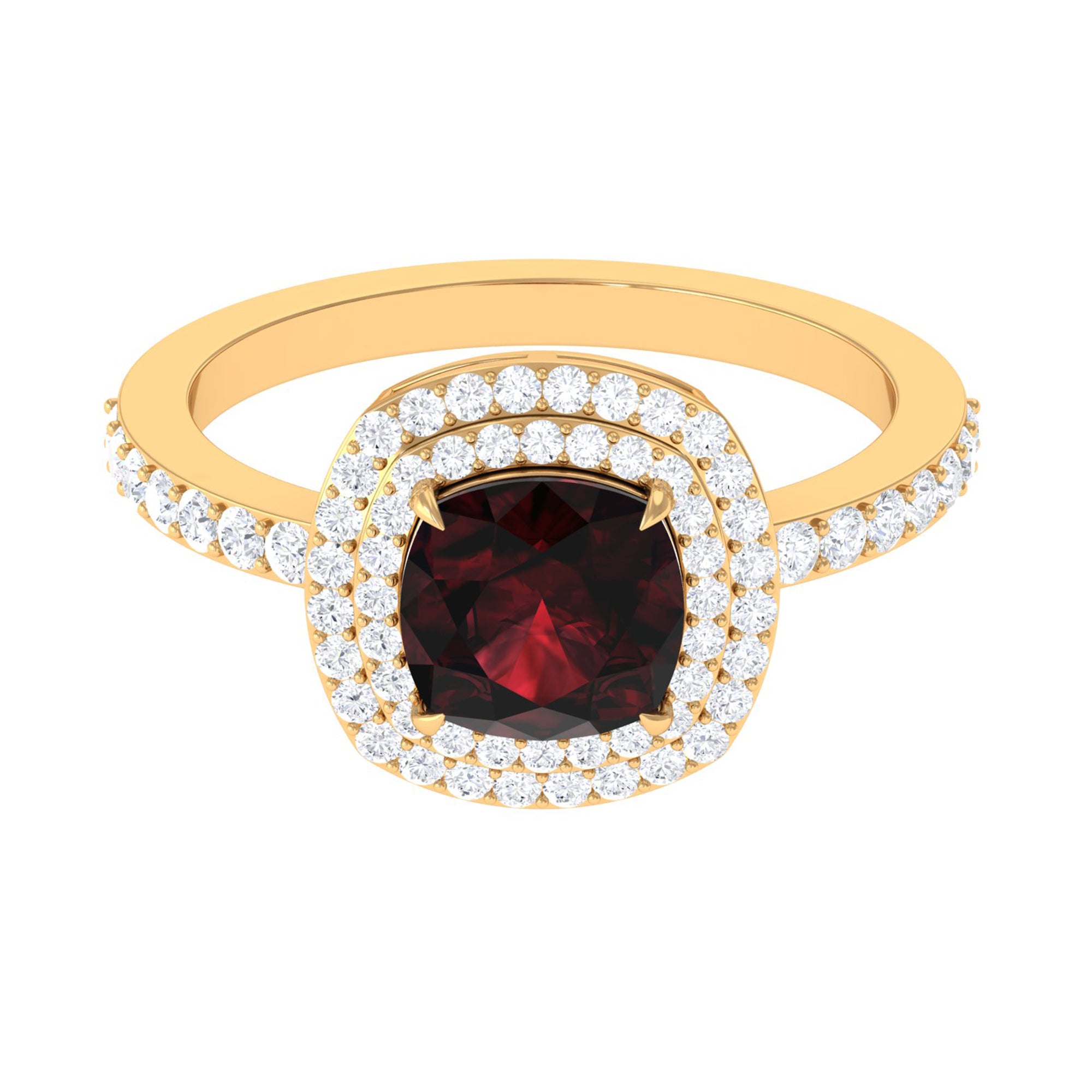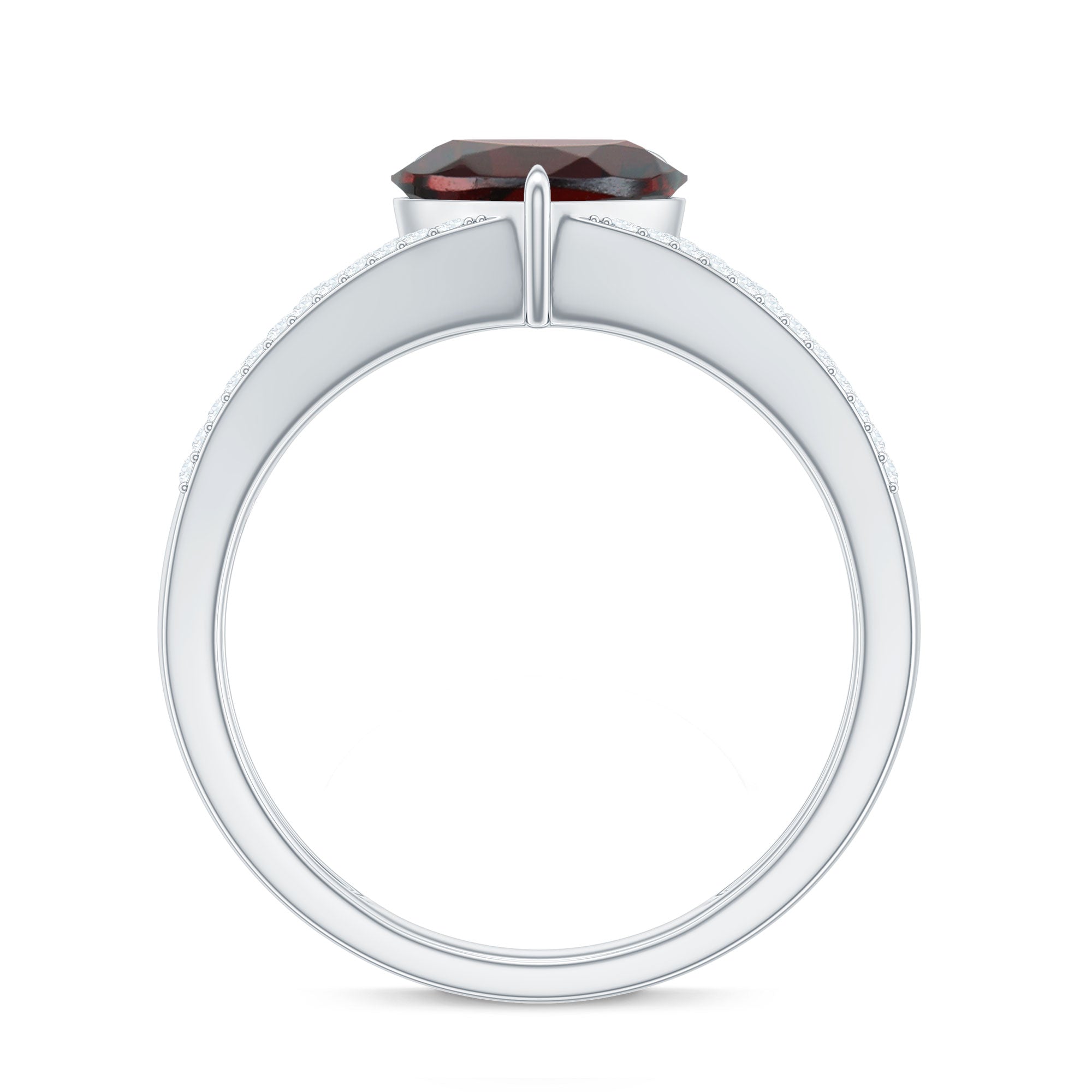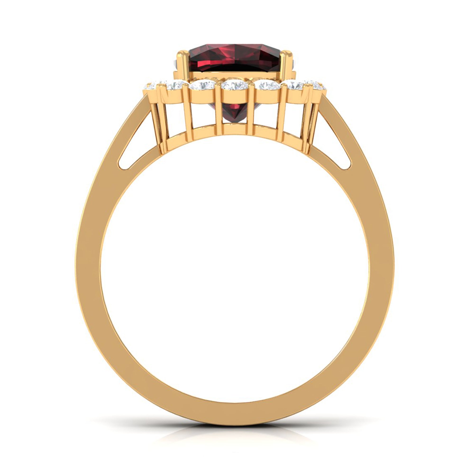 Garnet Halo Rings: - A fascinating twist on the traditional Solitaire Ring is the “halo ring”, which features a circle of diamond or moissanite surrounding the garnet solitaire. The Halo isn't just about adding sparkle; it adds versatility to the ring. Furthermore, it draws more focus to the garnet, creating the illusion of a larger stone. The halo style makes the ring more unique and attractive.