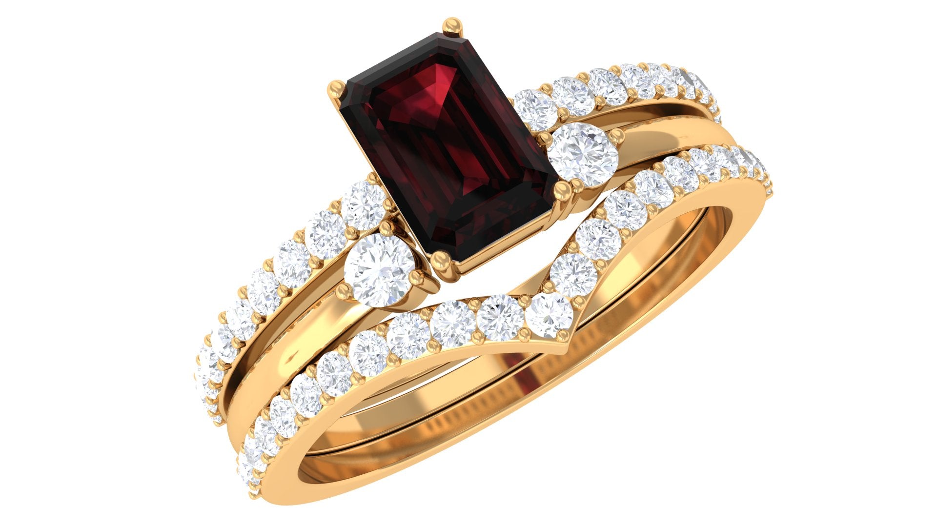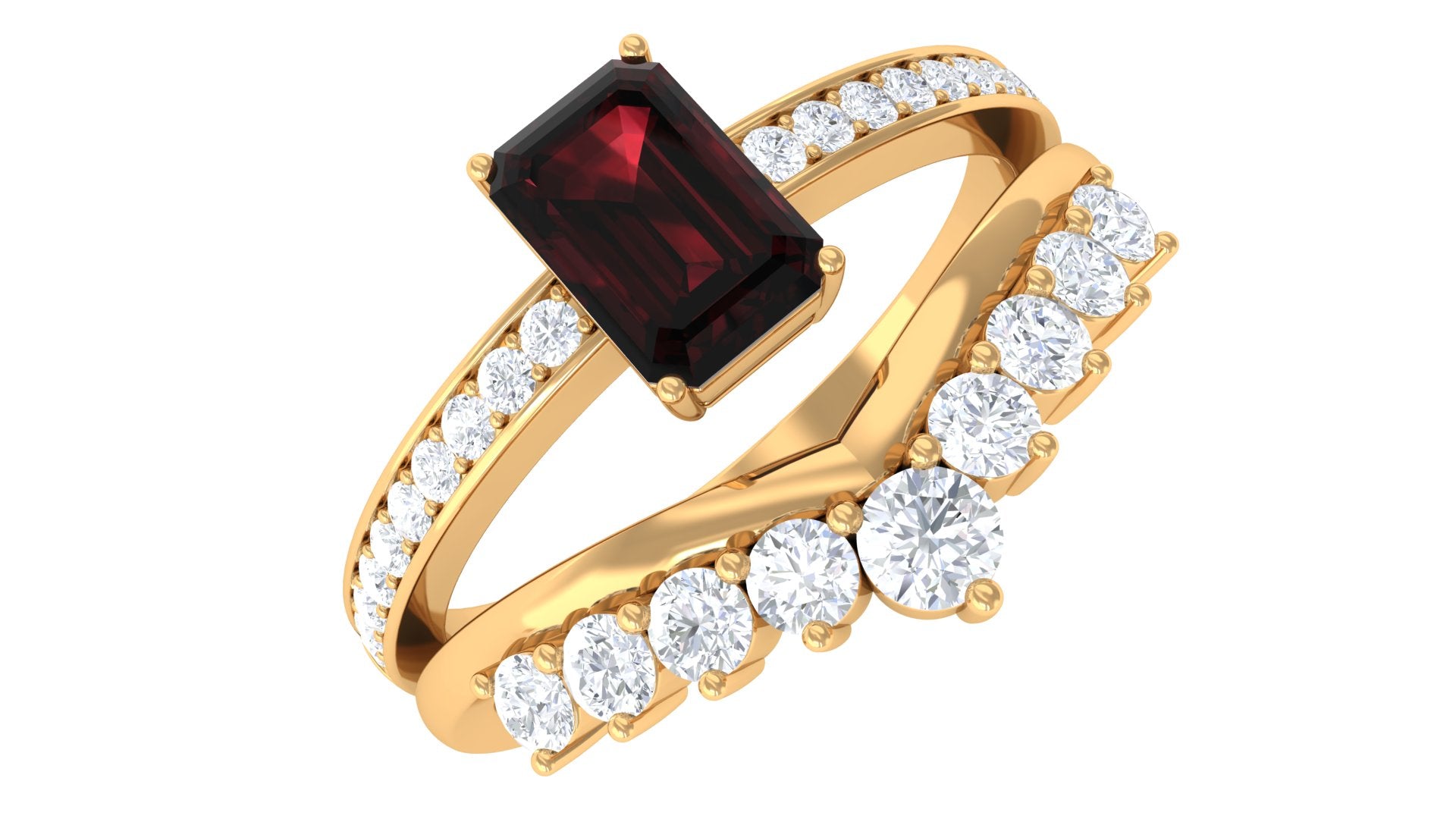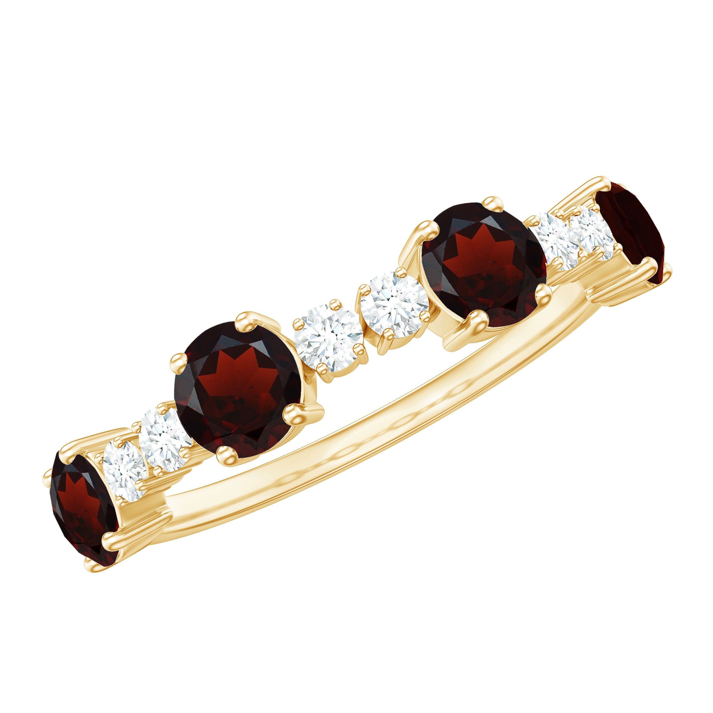 Garnet Eternity Rings: - An eternity ring showcases a continuous circle of garnets, providing a vibrant burst of color for those seeking more than a solitaire style. With its bold red hue, a garnet eternity ring becomes a classic yet striking accessory in your jewelry collection. Moreover, a garnet and diamond ring in an eternity style offers a unique blend of color and sparkle, making it a truly exotic choice. Beyond its aesthetic appeal, this style symbolizes a love that transcends boundaries, making it a meaningful option for a garnet wedding ring.