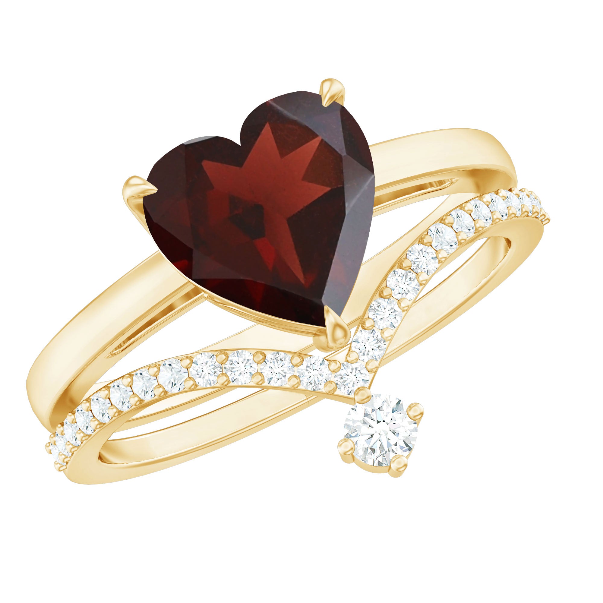 Garnet Heart Rings: - Features heart shape garnet that holds symbolic significance in the wearer's life. These heart garnet rings can be exchanged between couples as a pledge of love and dedication. Its aesthetic varies widely, ranging from a classic garnet solitaire Ring to a more extravagant halo design for classy appearance. The Garnet Heart Ring emerges as the epitome of romantic and meaningful promise rings.