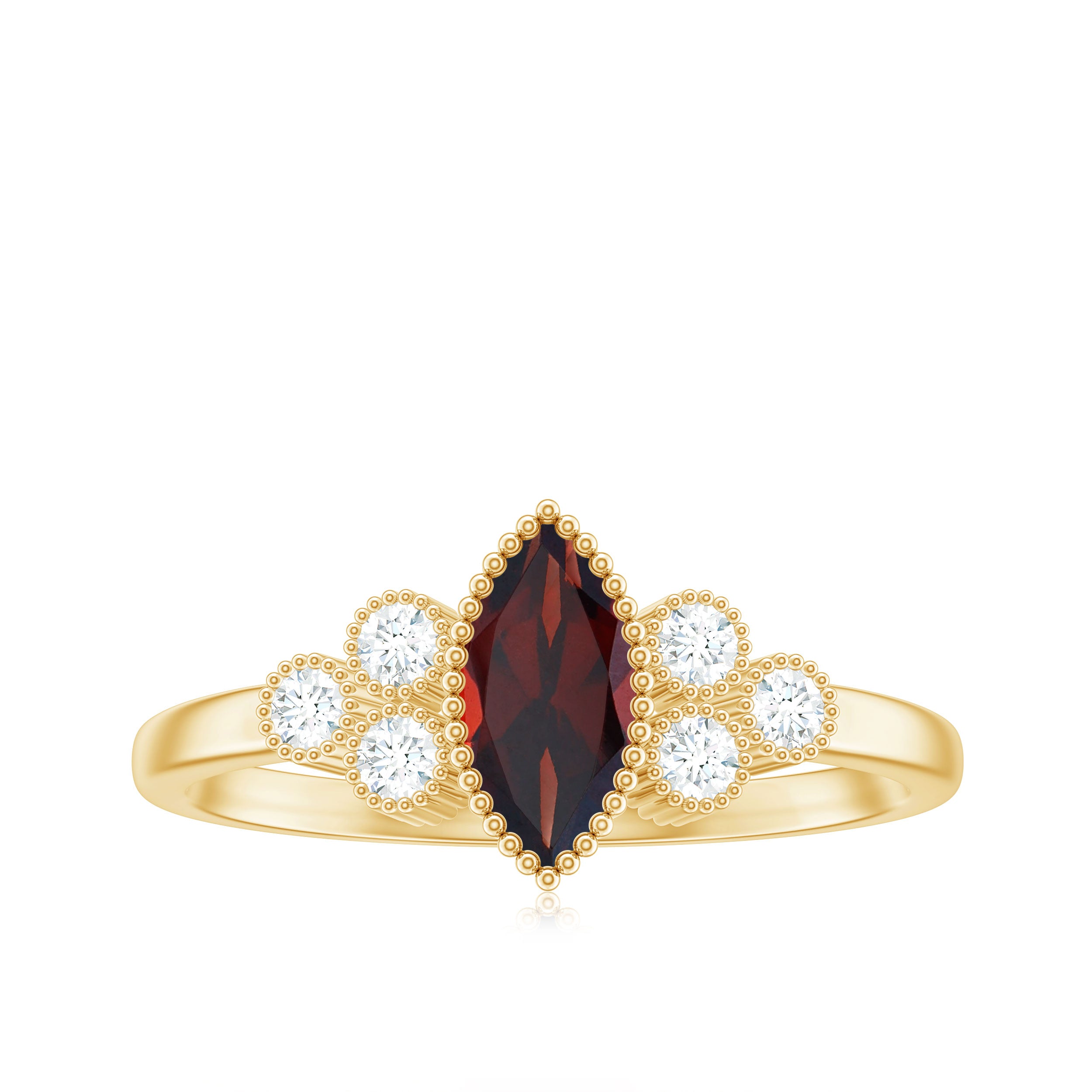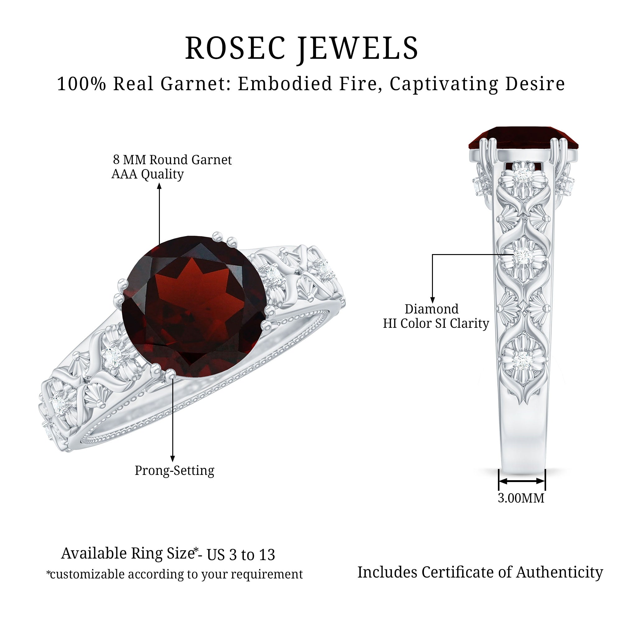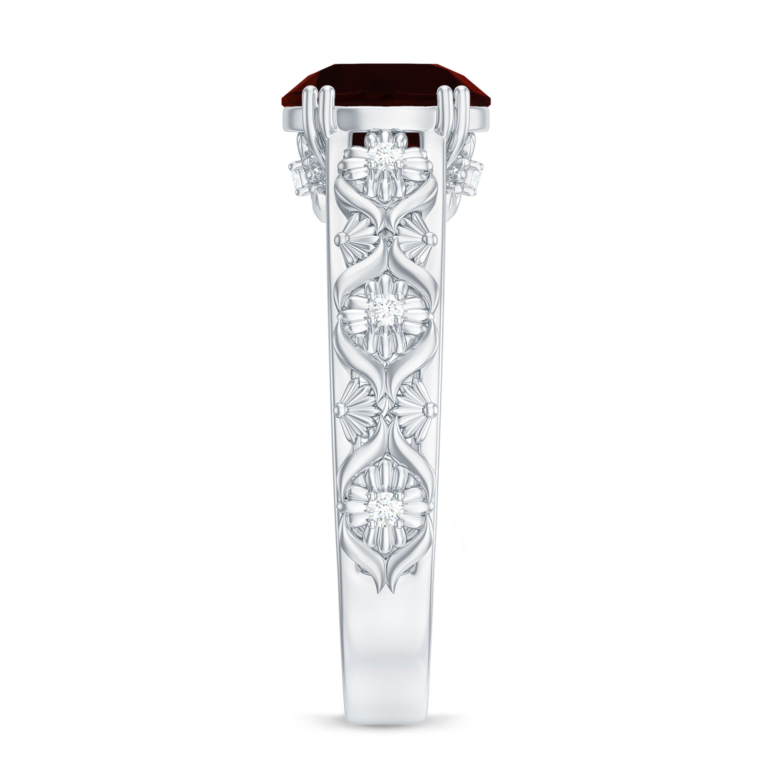 Vintage Inspired Garnet Rings: - A vintage-inspired garnet ring brings around the timeless designs of the Art Deco, Edwardian, and Victorian eras. Classic antique rings often feature intricate details like milgrain, filigree, and vintage engravings, enhancing their old-world charm. This style perfectly complements the center stone of vibrant garnet, adding a touch of elegance.