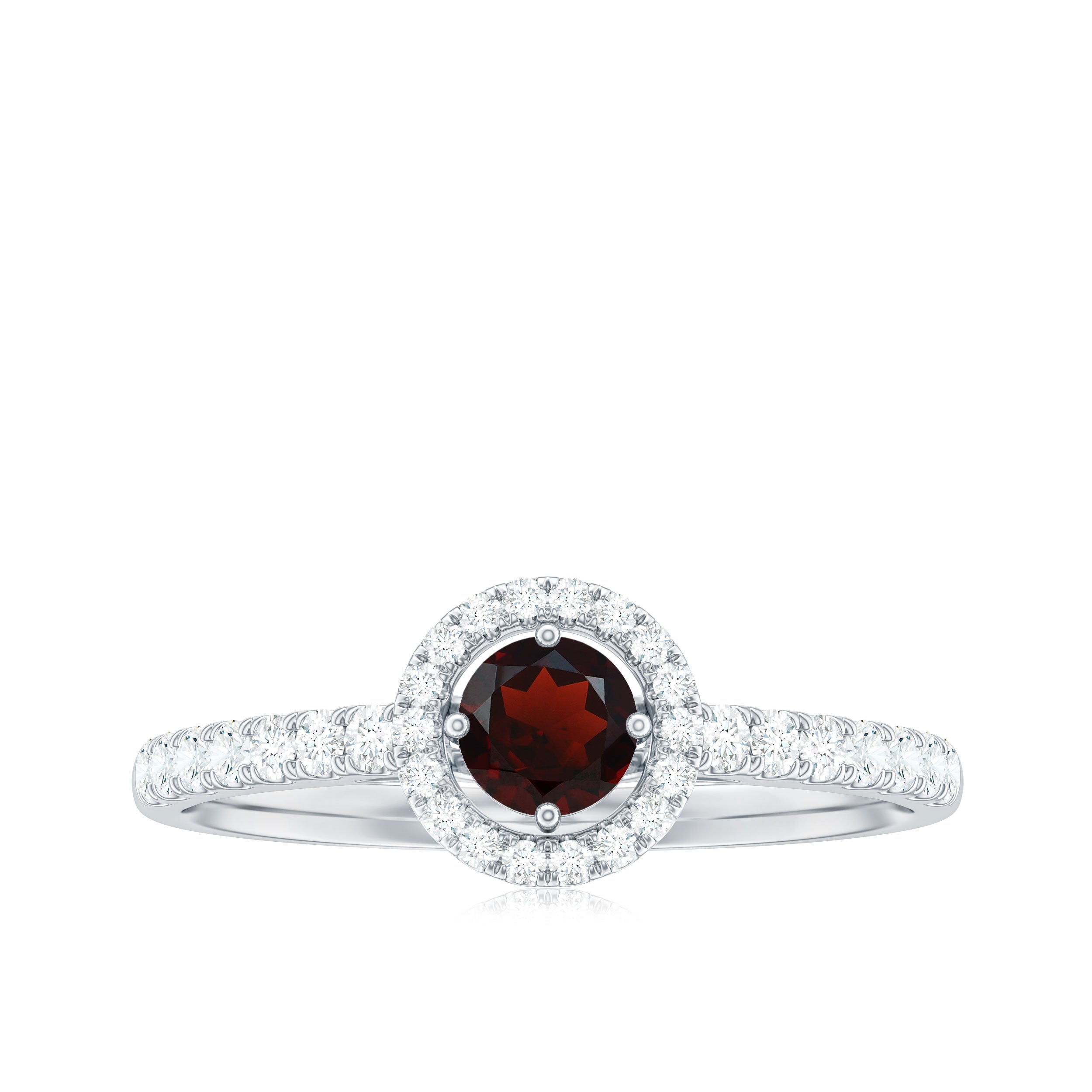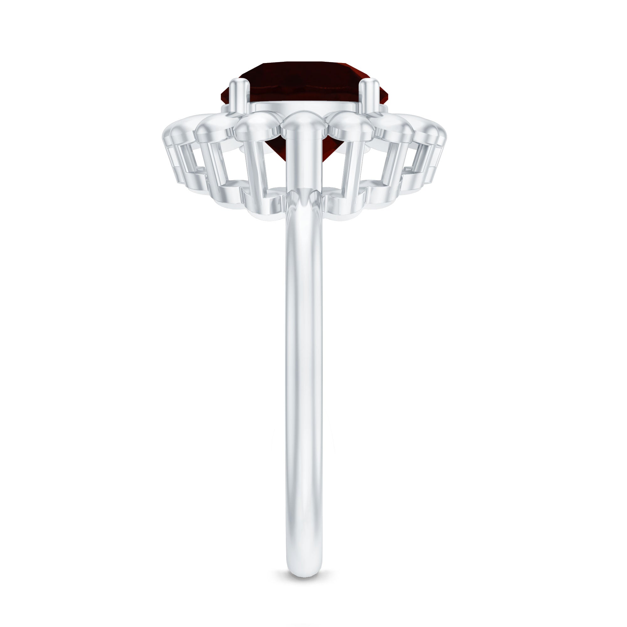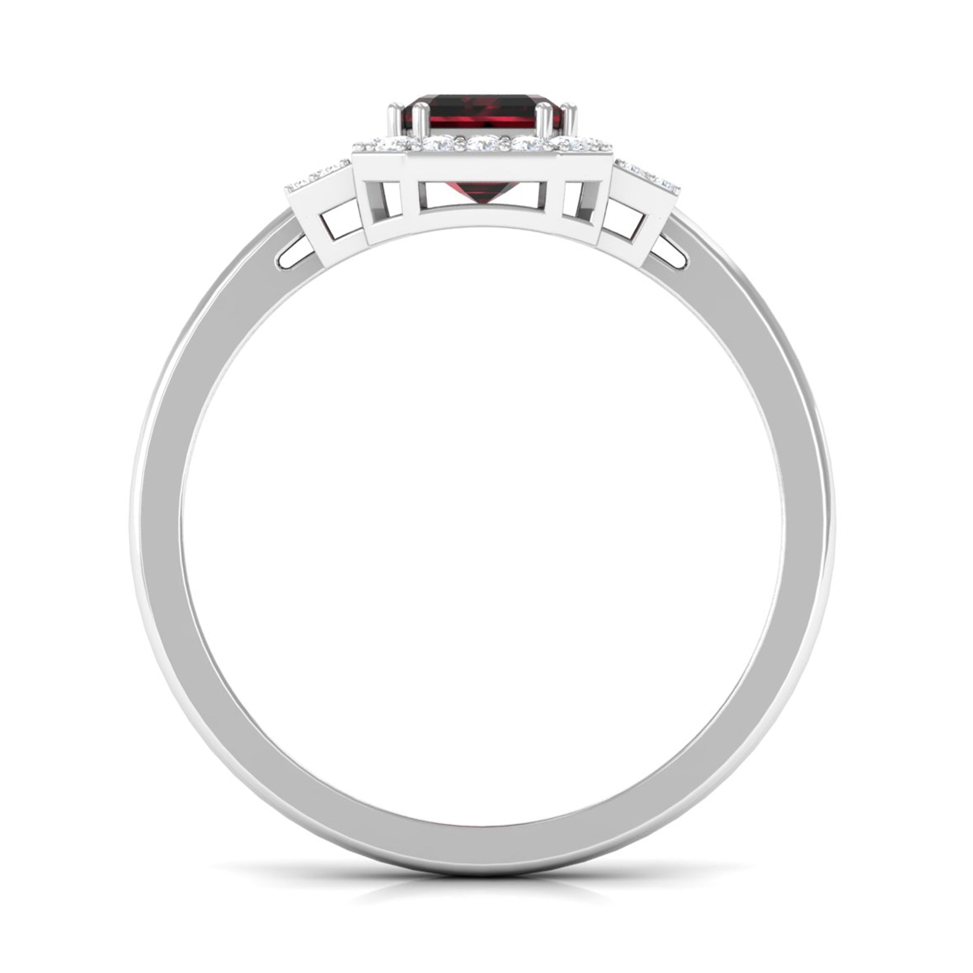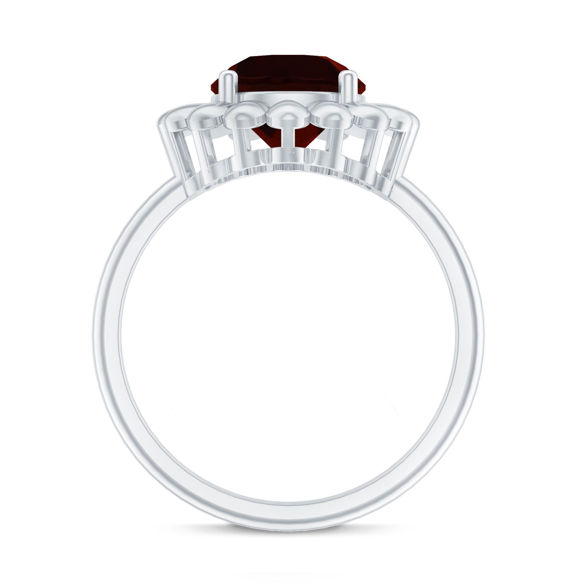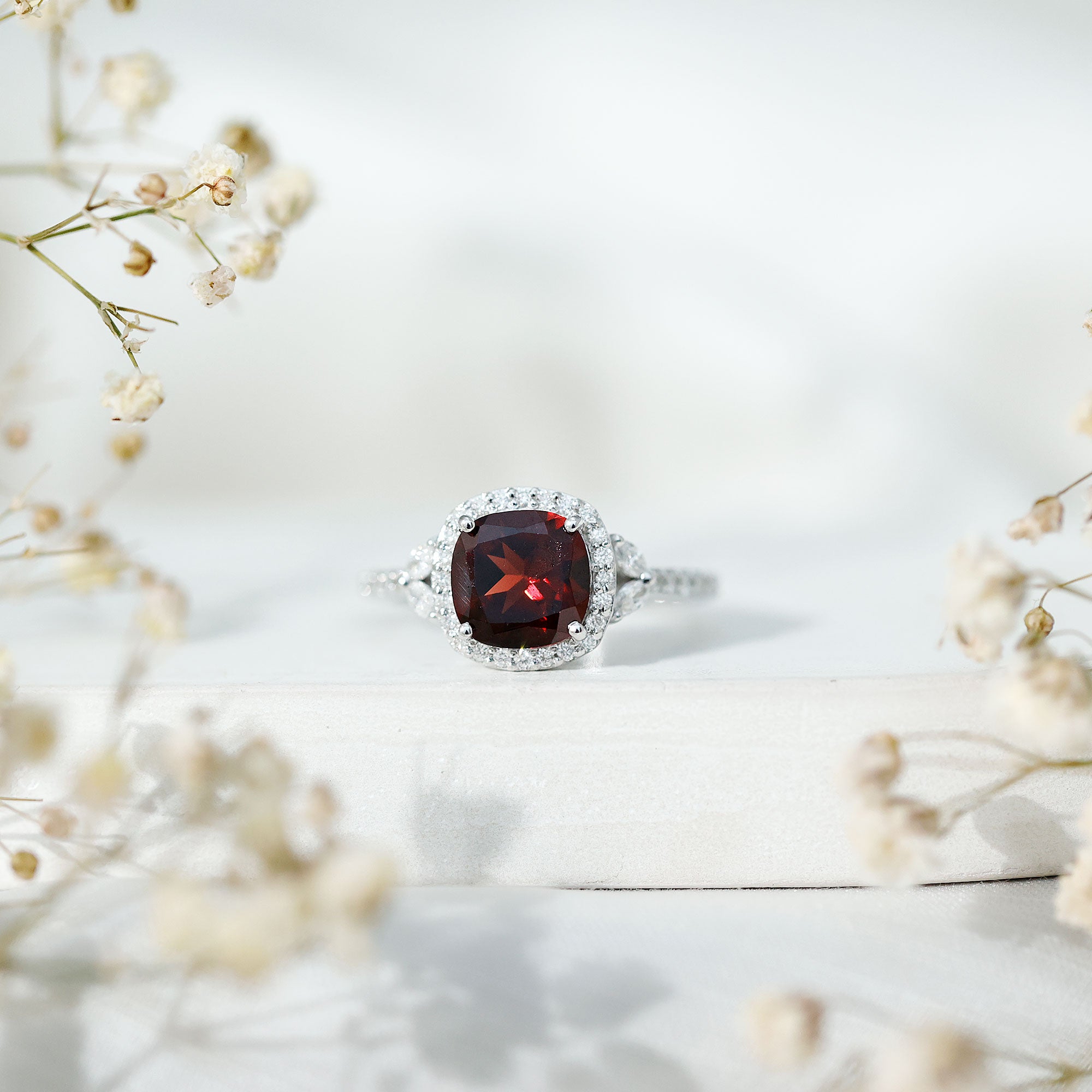 Garnet Halo Rings: - A fascinating twist on the traditional Solitaire Ring is the “halo ring”, which features a circle of diamond or moissanite surrounding the garnet solitaire. The Halo isn't just about adding sparkle; it adds versatility to the ring. Furthermore, it draws more focus to the garnet, creating the illusion of a larger stone. The halo style makes the ring more unique and attractive.