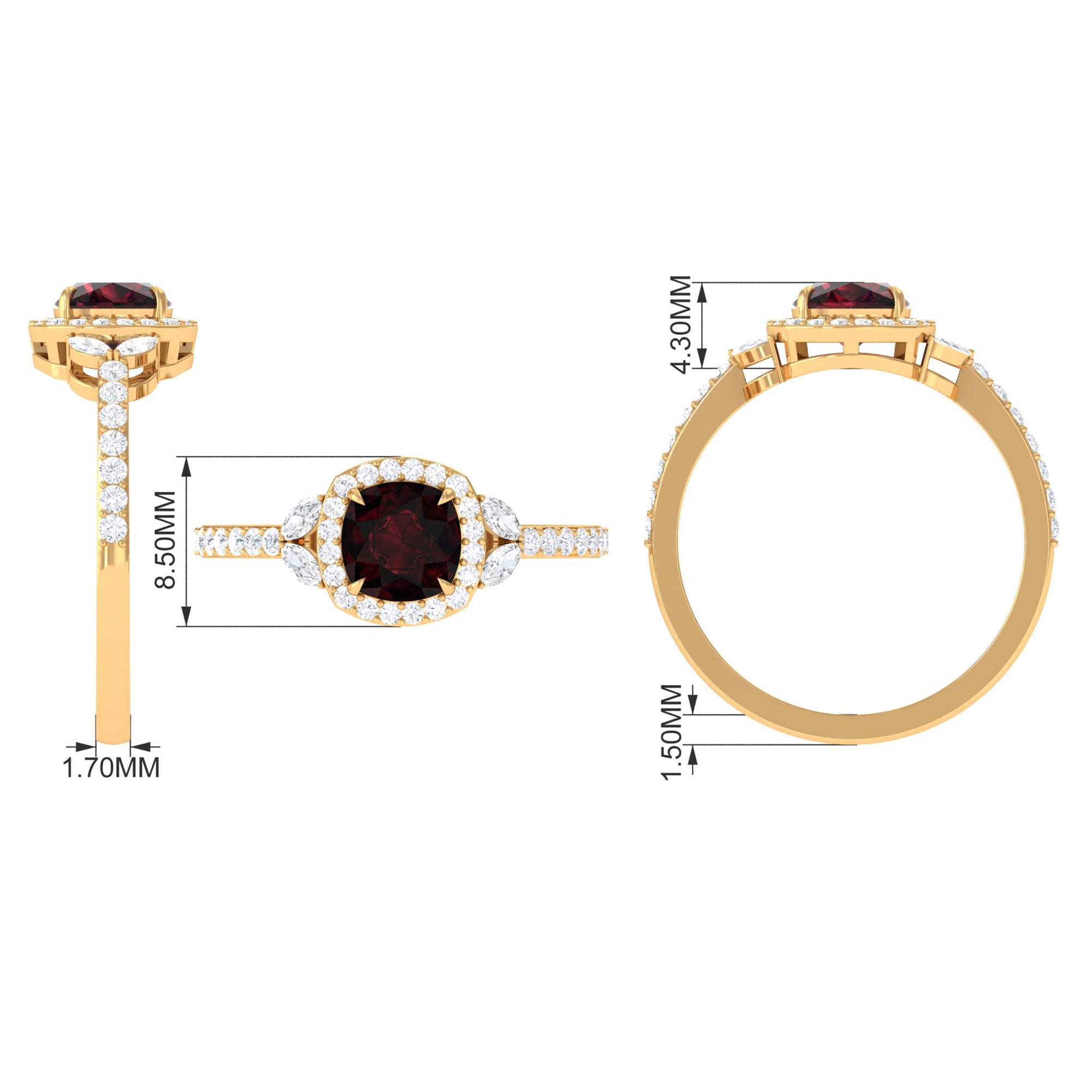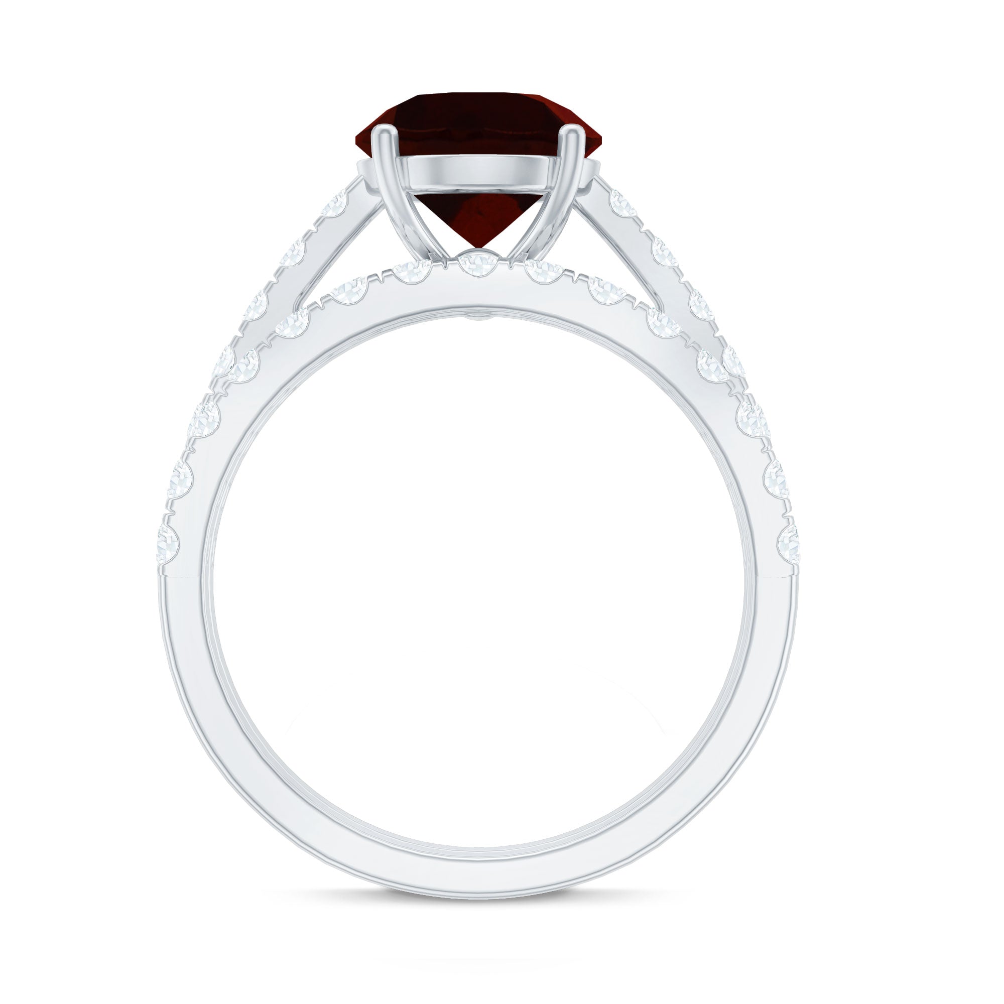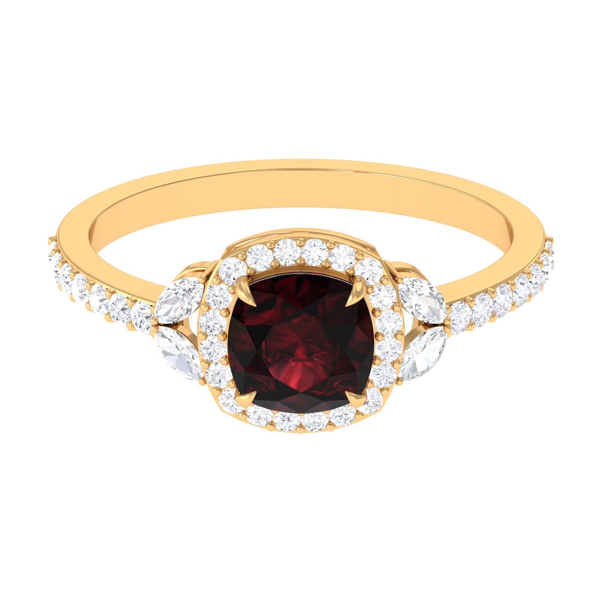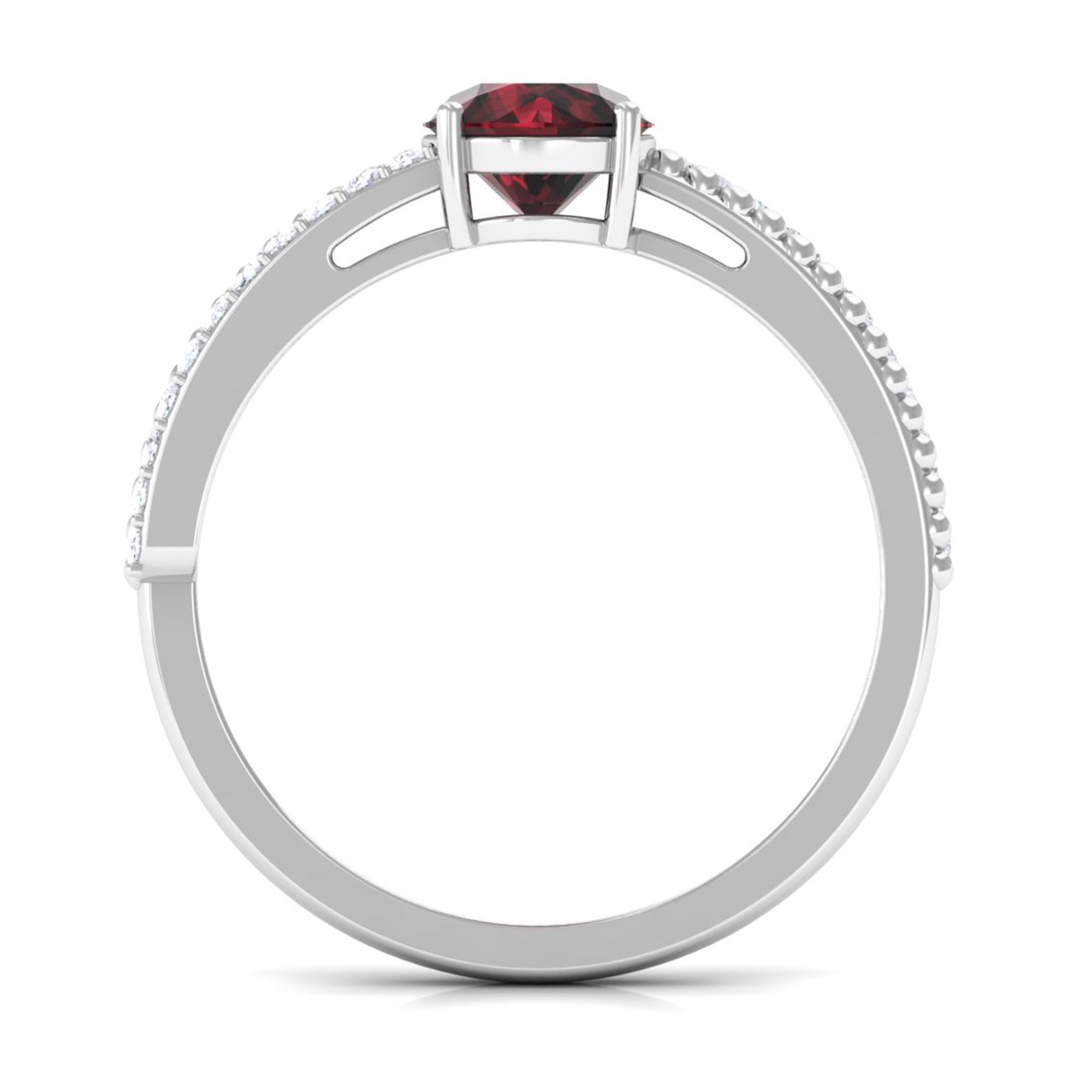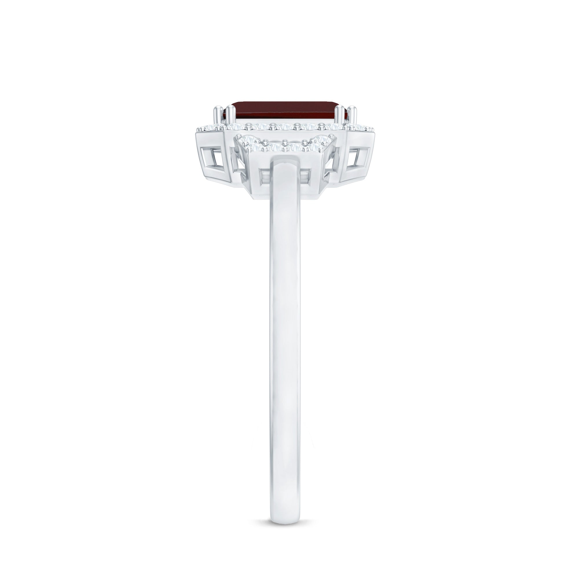 Garnet Halo Rings: - A fascinating twist on the traditional Solitaire Ring is the “halo ring”, which features a circle of diamond or moissanite surrounding the garnet solitaire. The Halo isn't just about adding sparkle; it adds versatility to the ring. Furthermore, it draws more focus to the garnet, creating the illusion of a larger stone. The halo style makes the ring more unique and attractive.