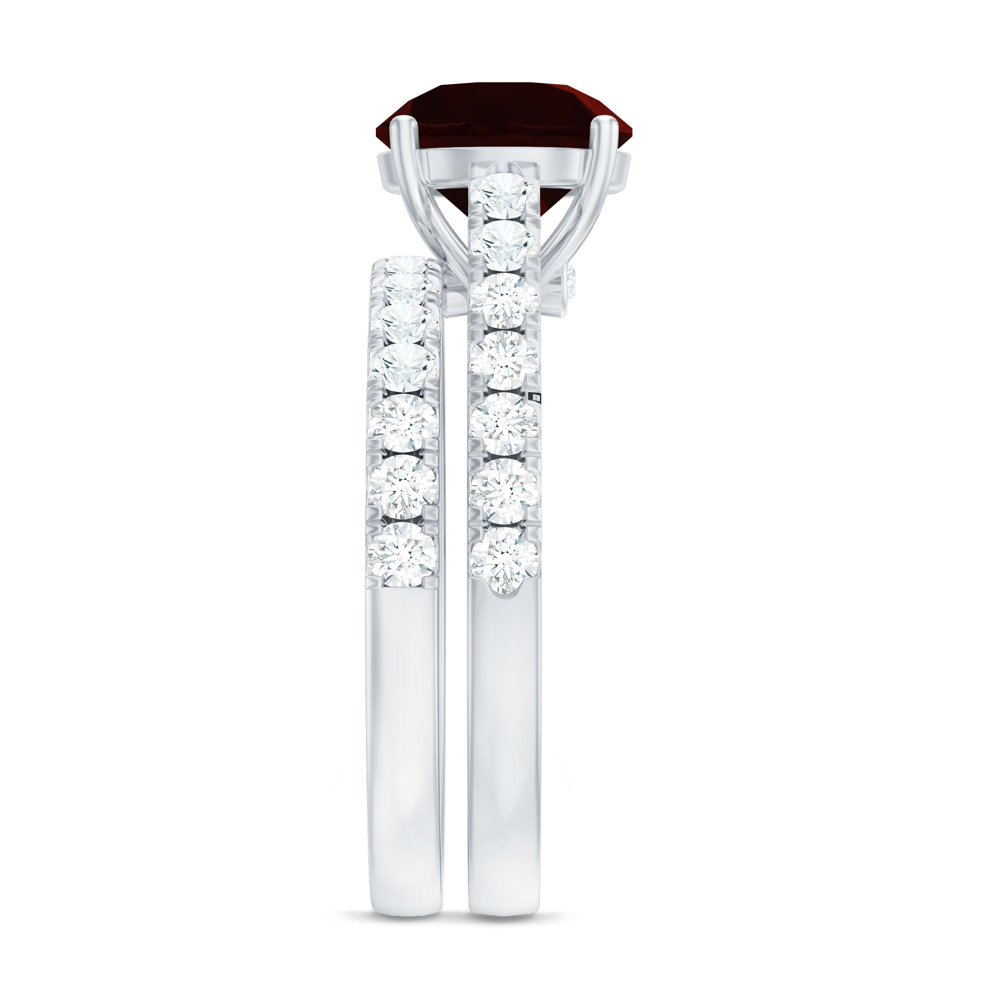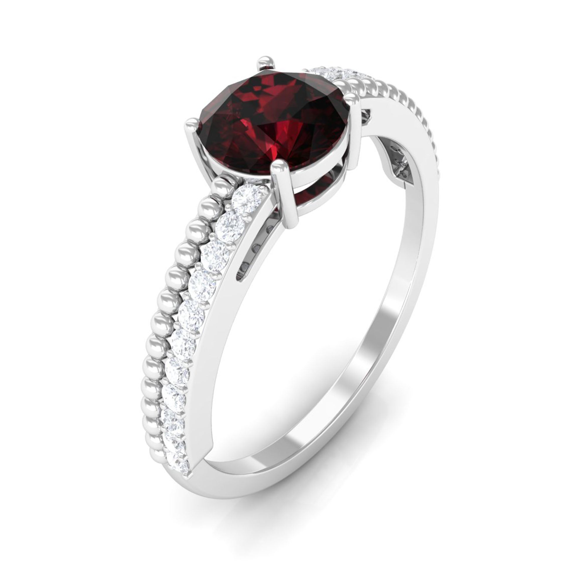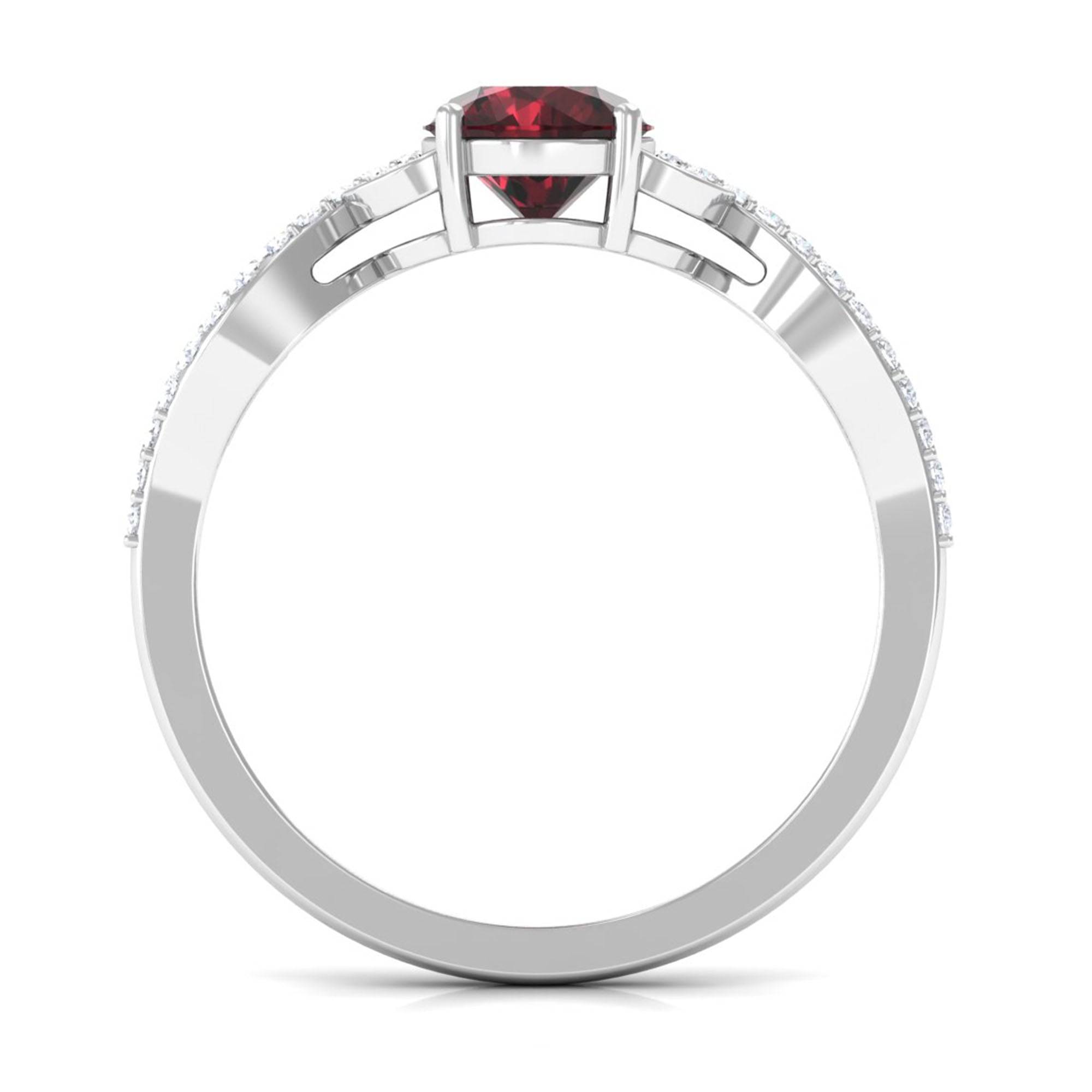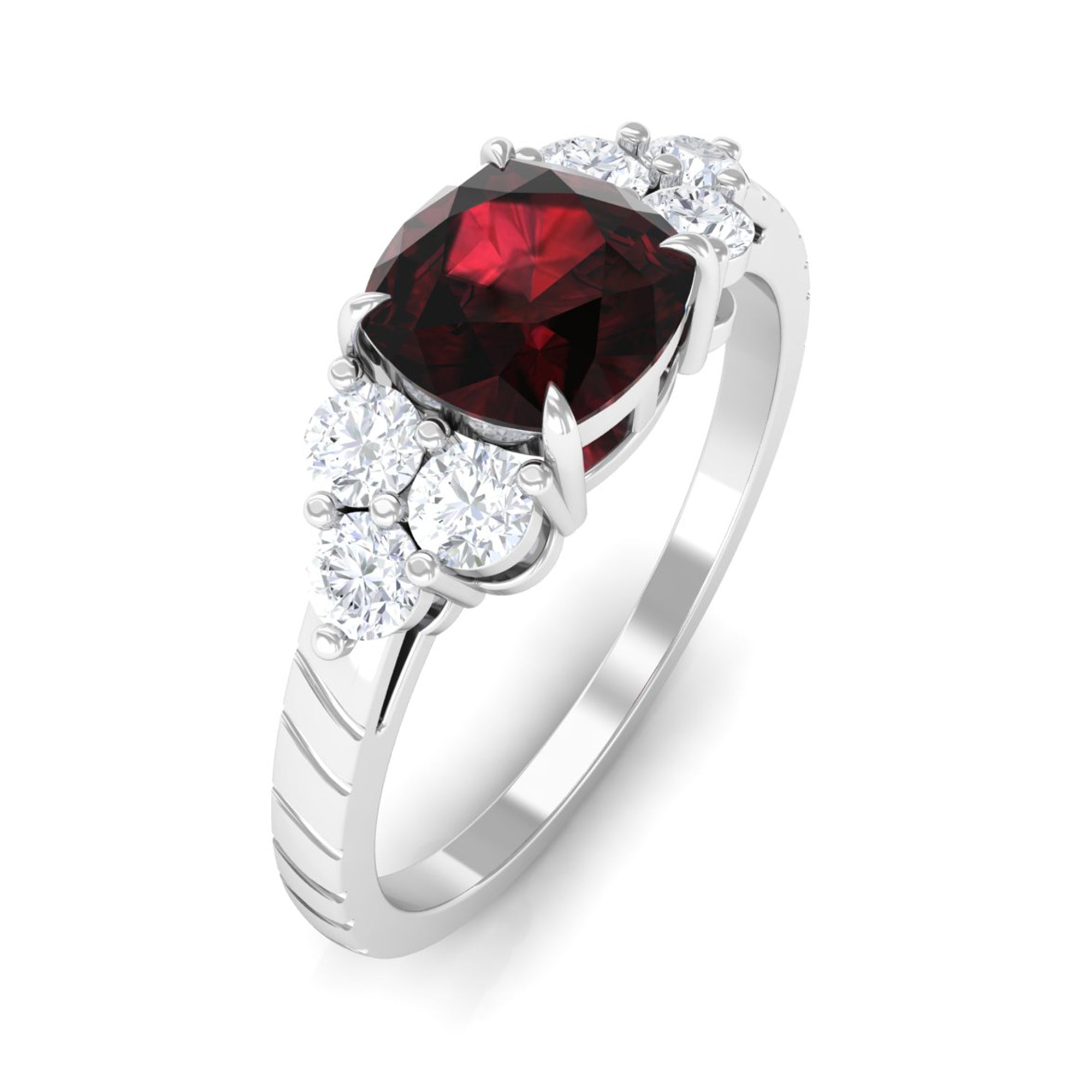 Garnet Halo Rings: - A fascinating twist on the traditional Solitaire Ring is the “halo ring”, which features a circle of diamond or moissanite surrounding the garnet solitaire. The Halo isn't just about adding sparkle; it adds versatility to the ring. Furthermore, it draws more focus to the garnet, creating the illusion of a larger stone. The halo style makes the ring more unique and attractive.