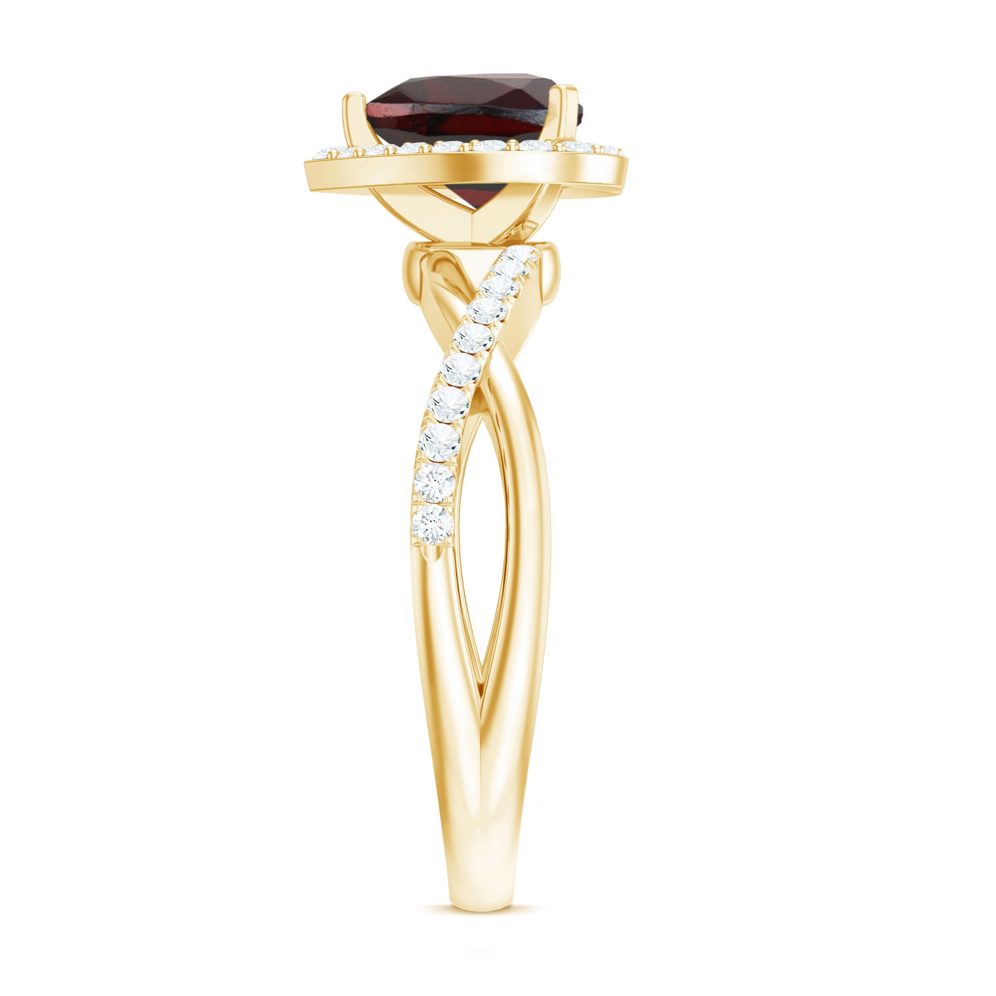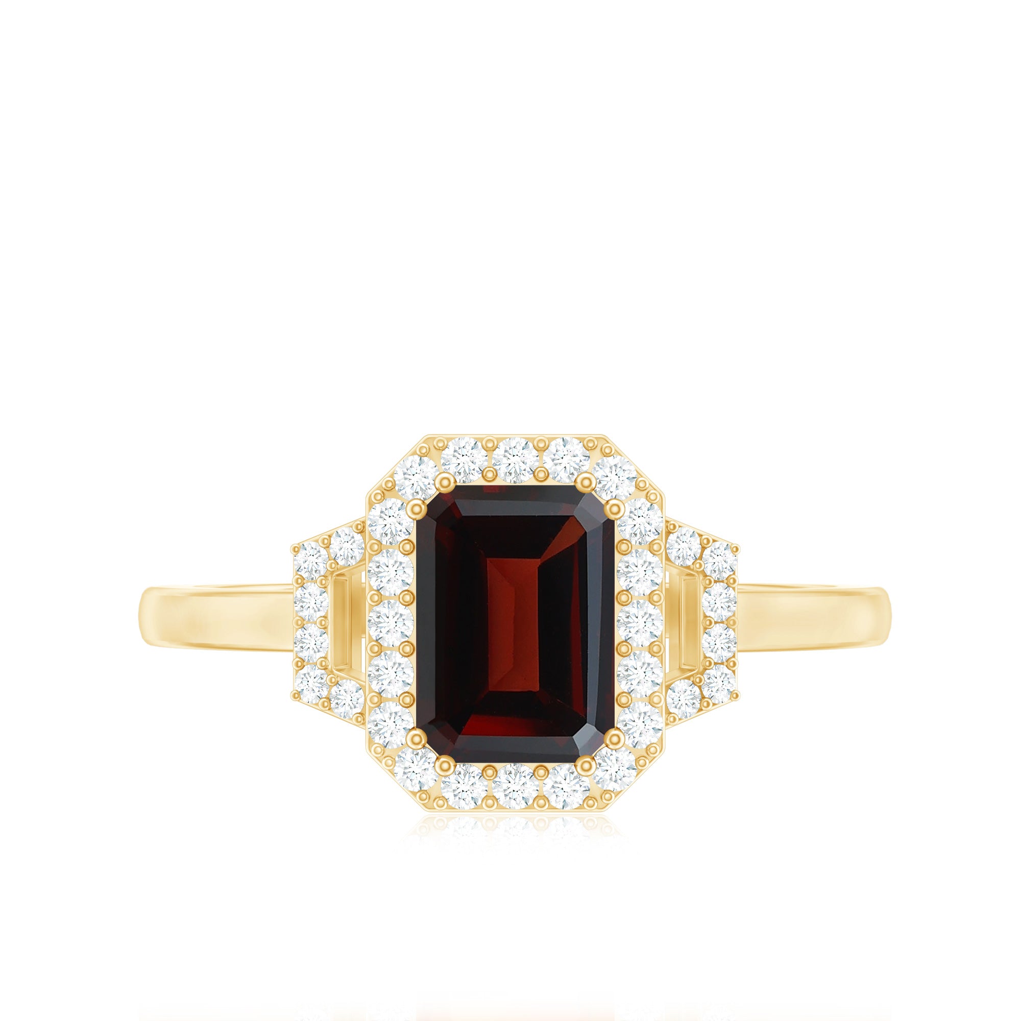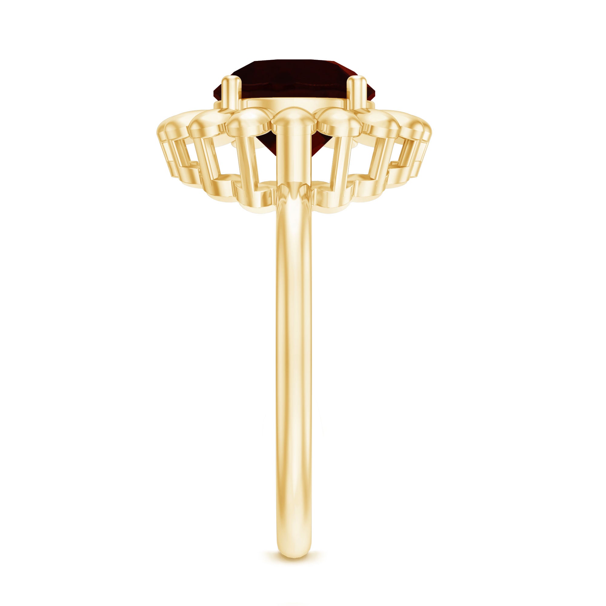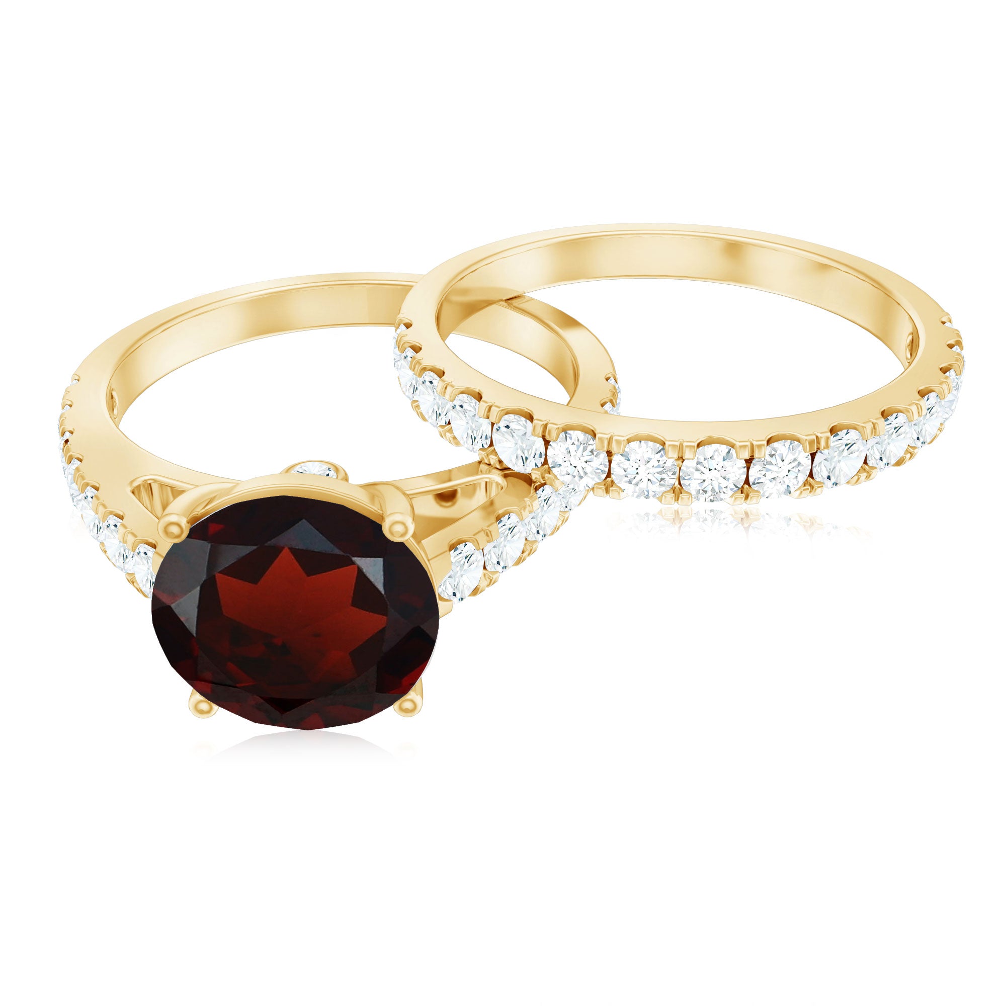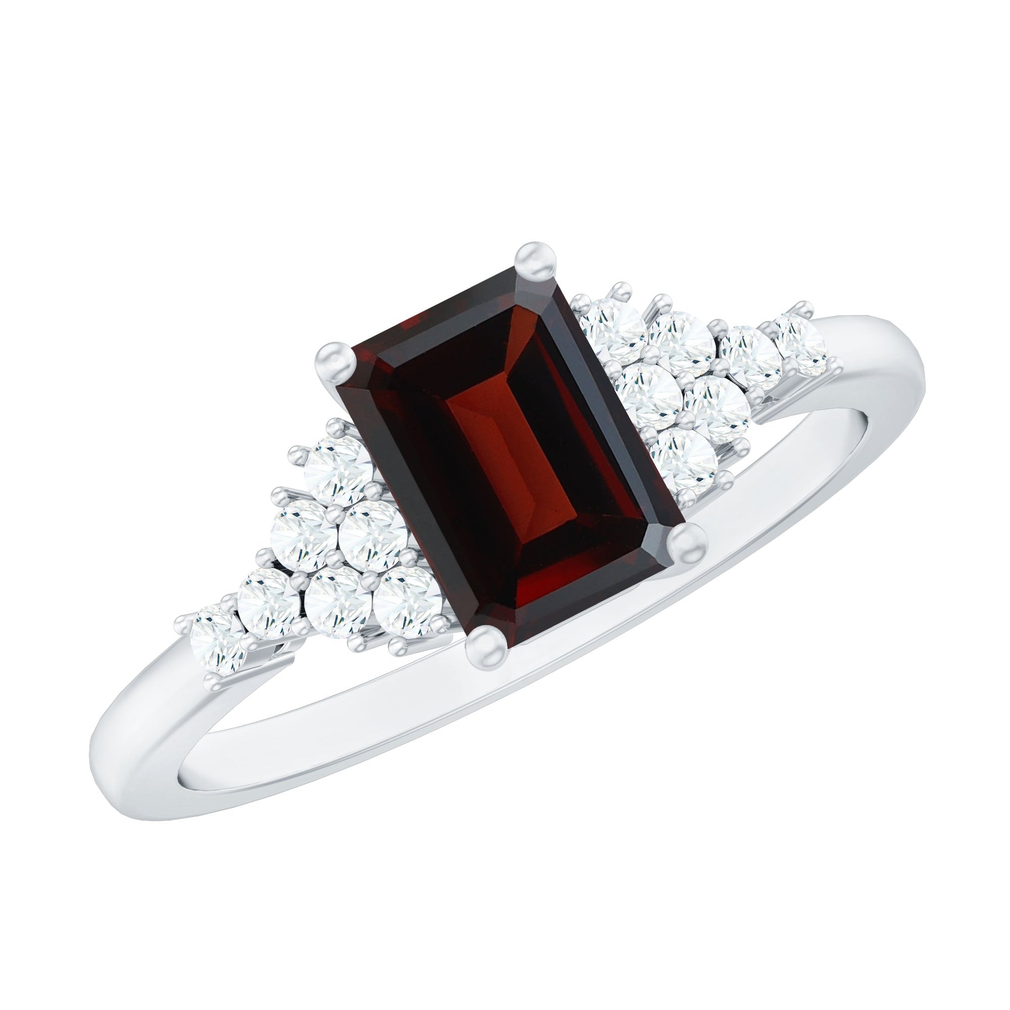 Garnet Halo Rings: - A fascinating twist on the traditional Solitaire Ring is the “halo ring”, which features a circle of diamond or moissanite surrounding the garnet solitaire. The Halo isn't just about adding sparkle; it adds versatility to the ring. Furthermore, it draws more focus to the garnet, creating the illusion of a larger stone. The halo style makes the ring more unique and attractive.