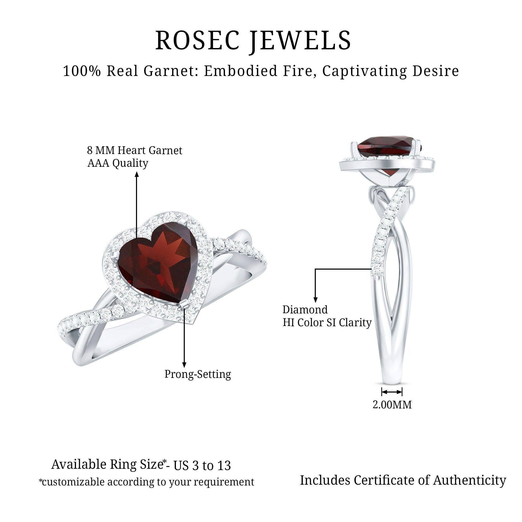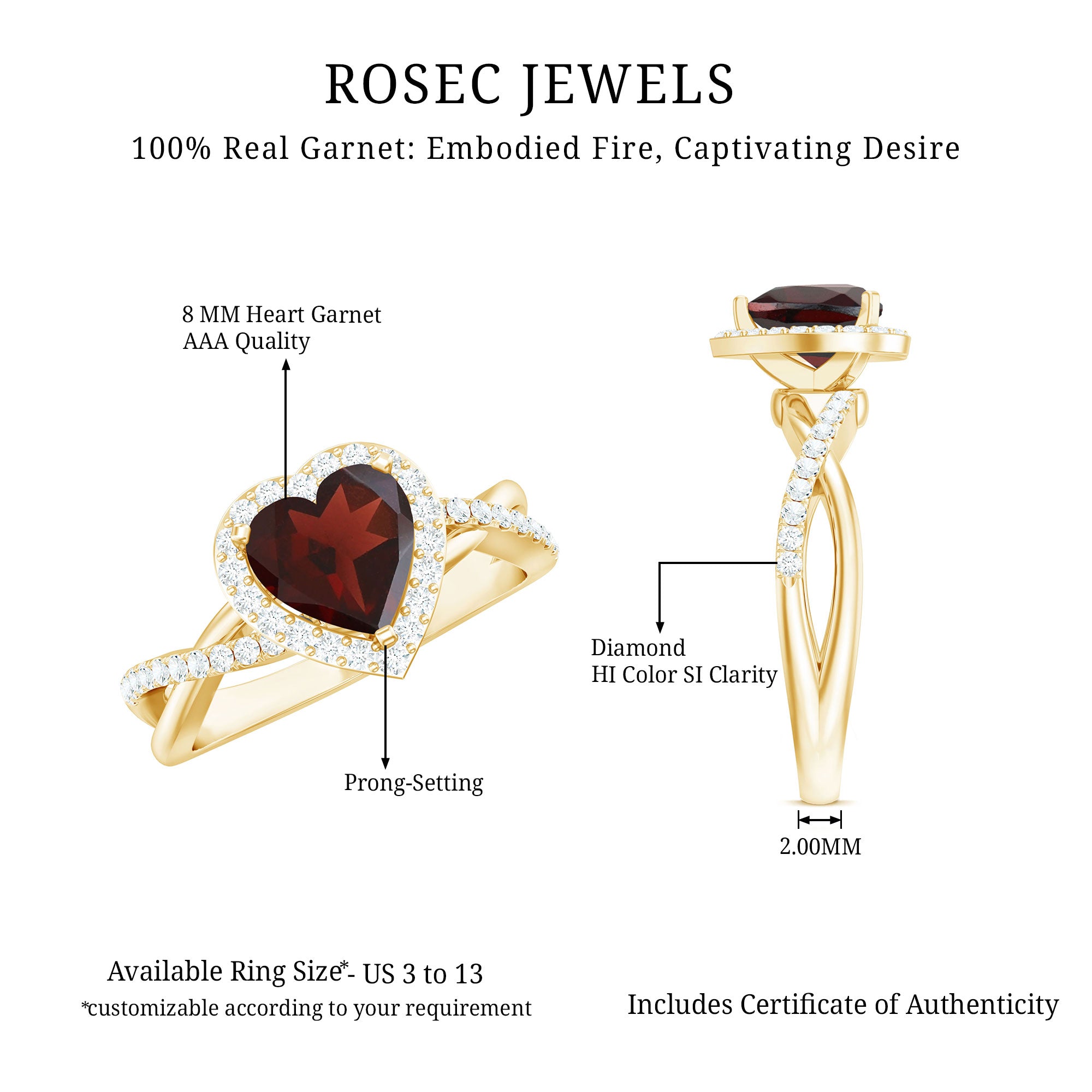 Garnet Heart Rings: - Features heart shape garnet that holds symbolic significance in the wearer's life. These heart garnet rings can be exchanged between couples as a pledge of love and dedication. Its aesthetic varies widely, ranging from a classic garnet solitaire Ring to a more extravagant halo design for classy appearance. The Garnet Heart Ring emerges as the epitome of romantic and meaningful promise rings.