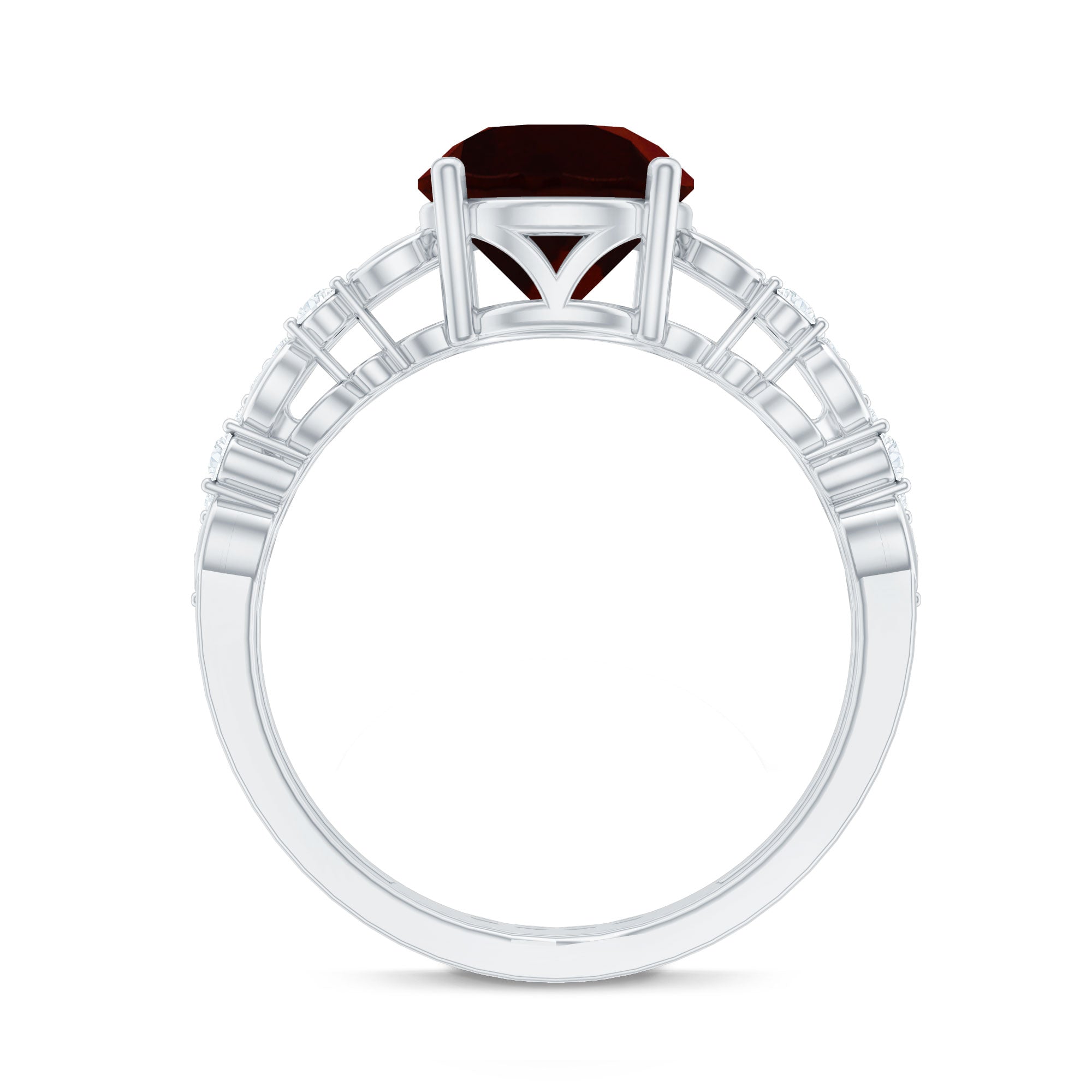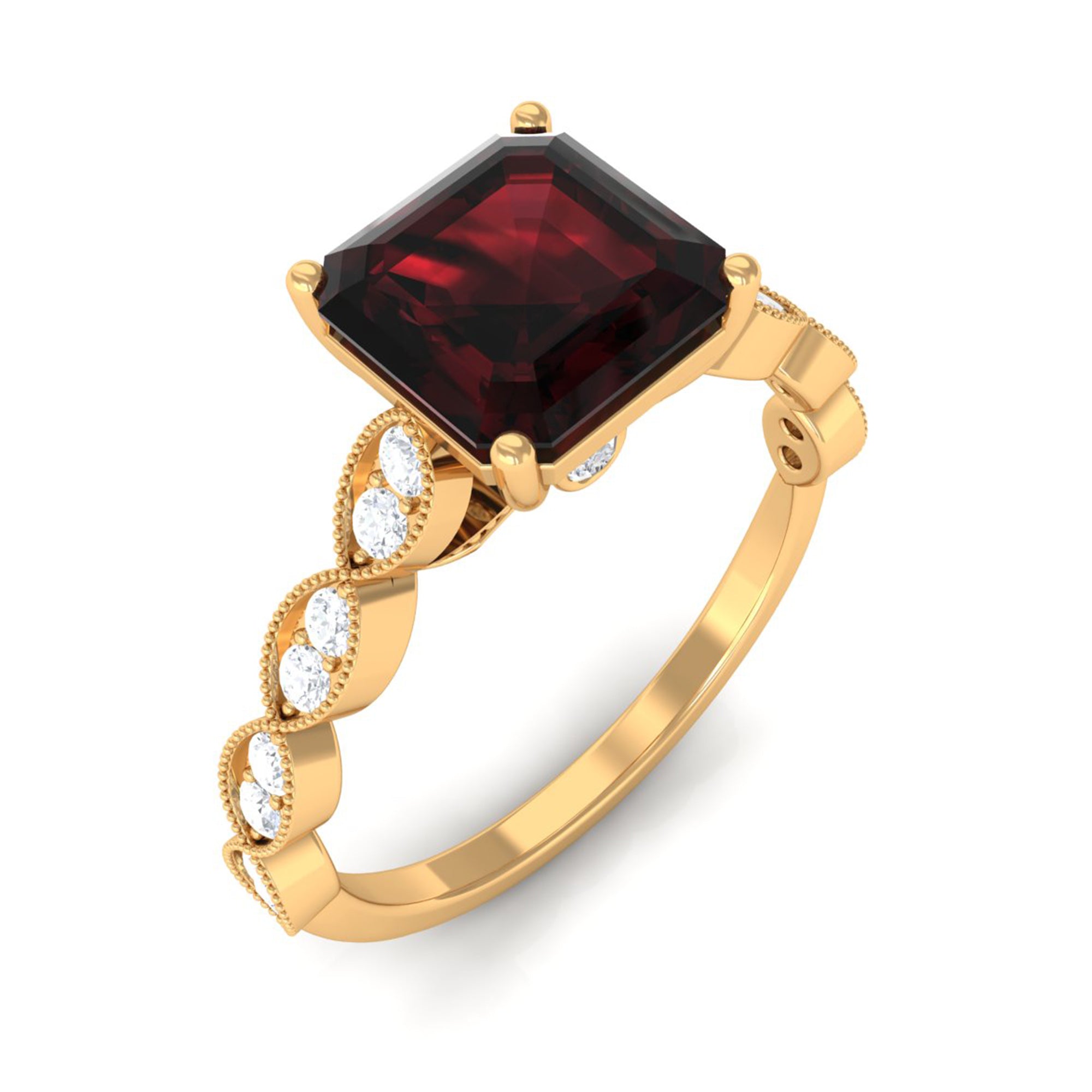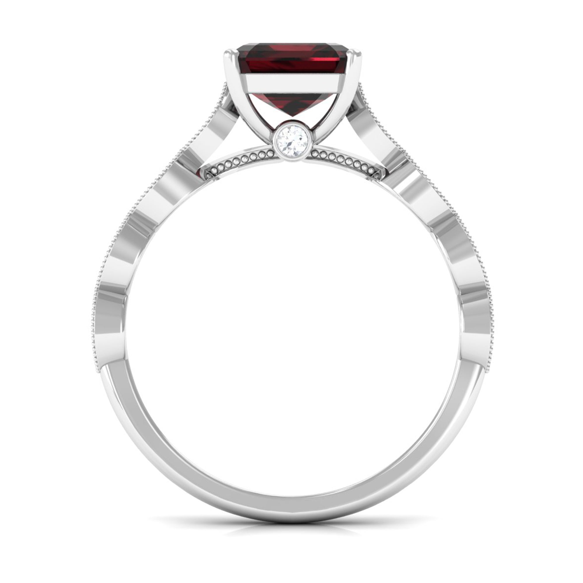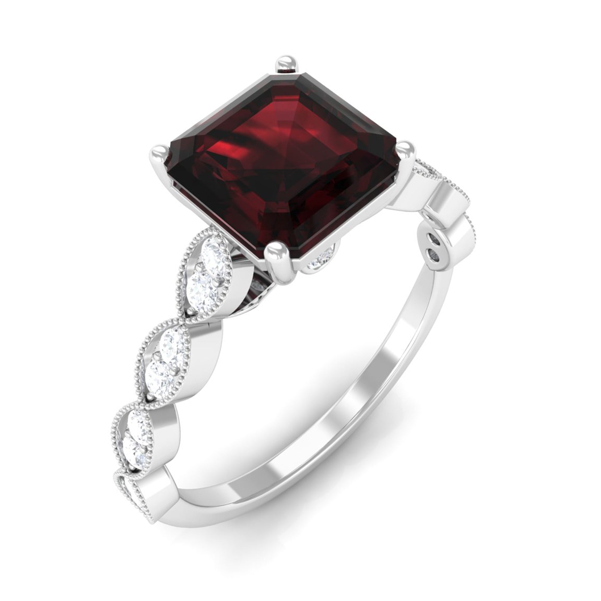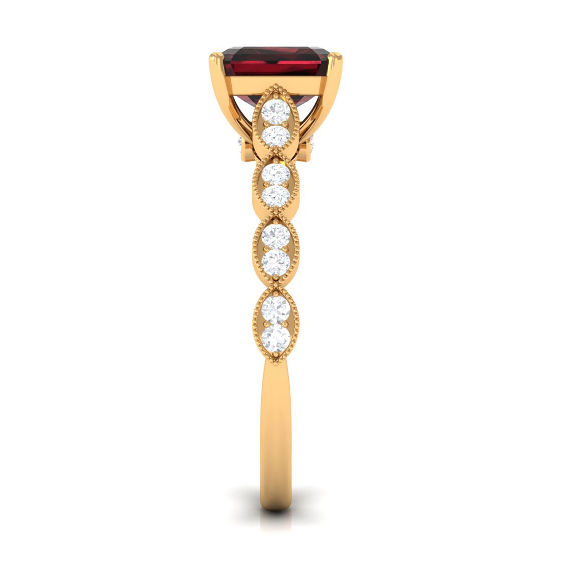 Garnet Solitaire Rings: - Truly the most traditional option for a garnet engagement rings, the Solitaire Style emphasizes the singular centerpiece of garnet. What's great about this style is its versatility, appealing to various aesthetics. While a round cut garnet solitaire ring might be the classic choice. You can also opt for fancier cuts such as marquise, pear, or princess shapes to add a contemporary touch. For those seeking a vintage vibe then an asscher, cushion, or emerald cut garnet engagement ring will be the ideal choice.