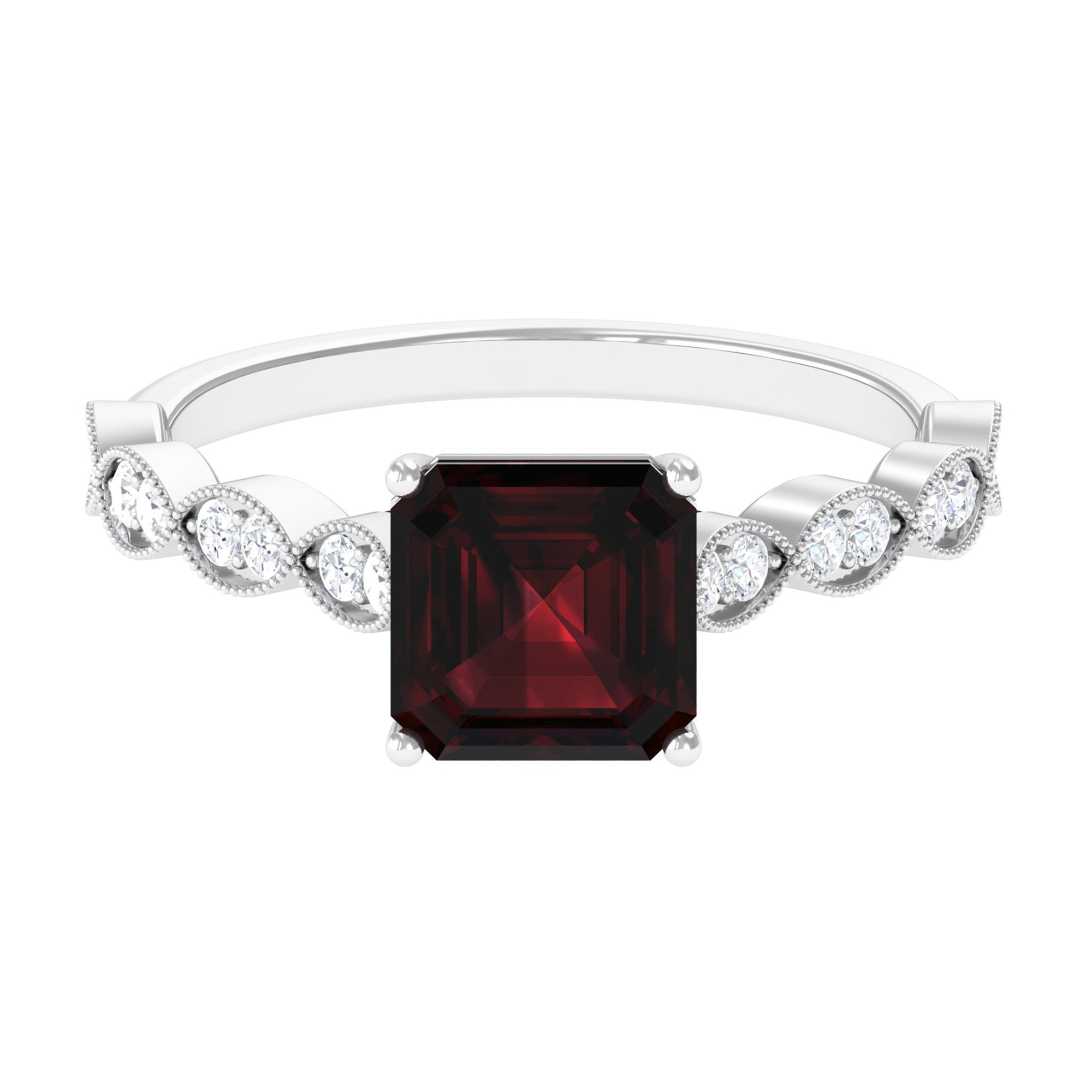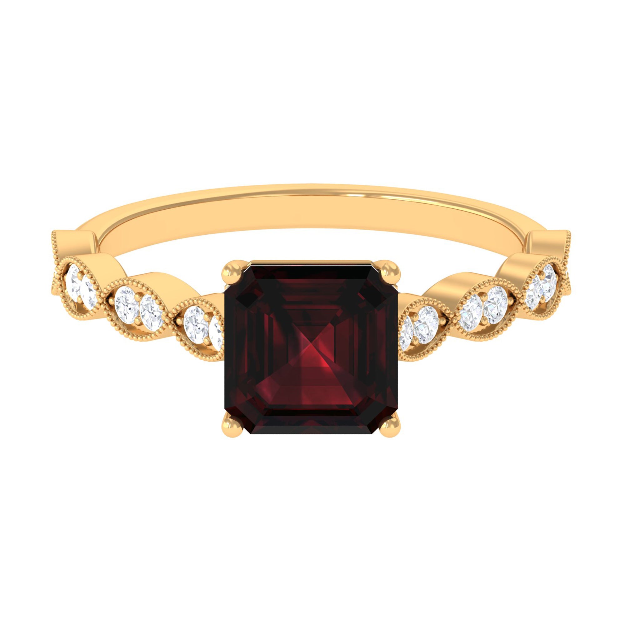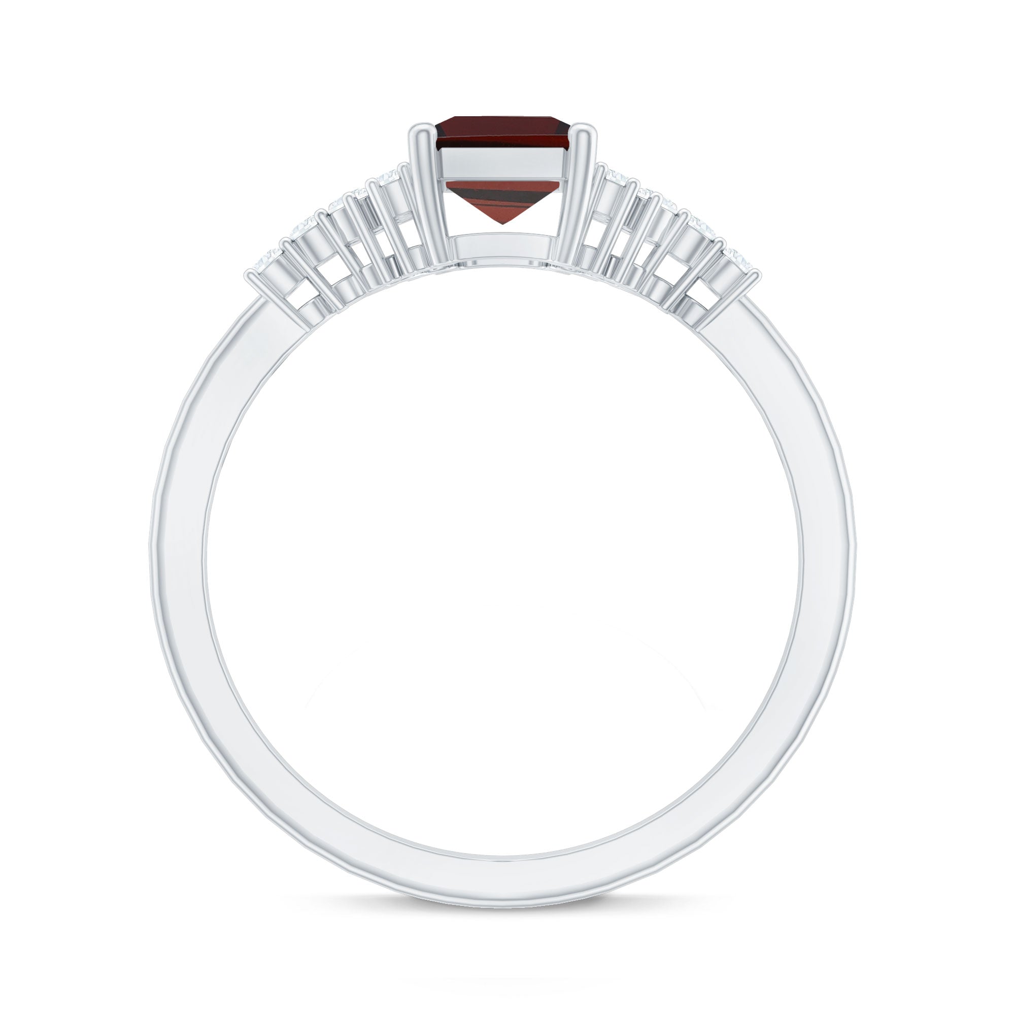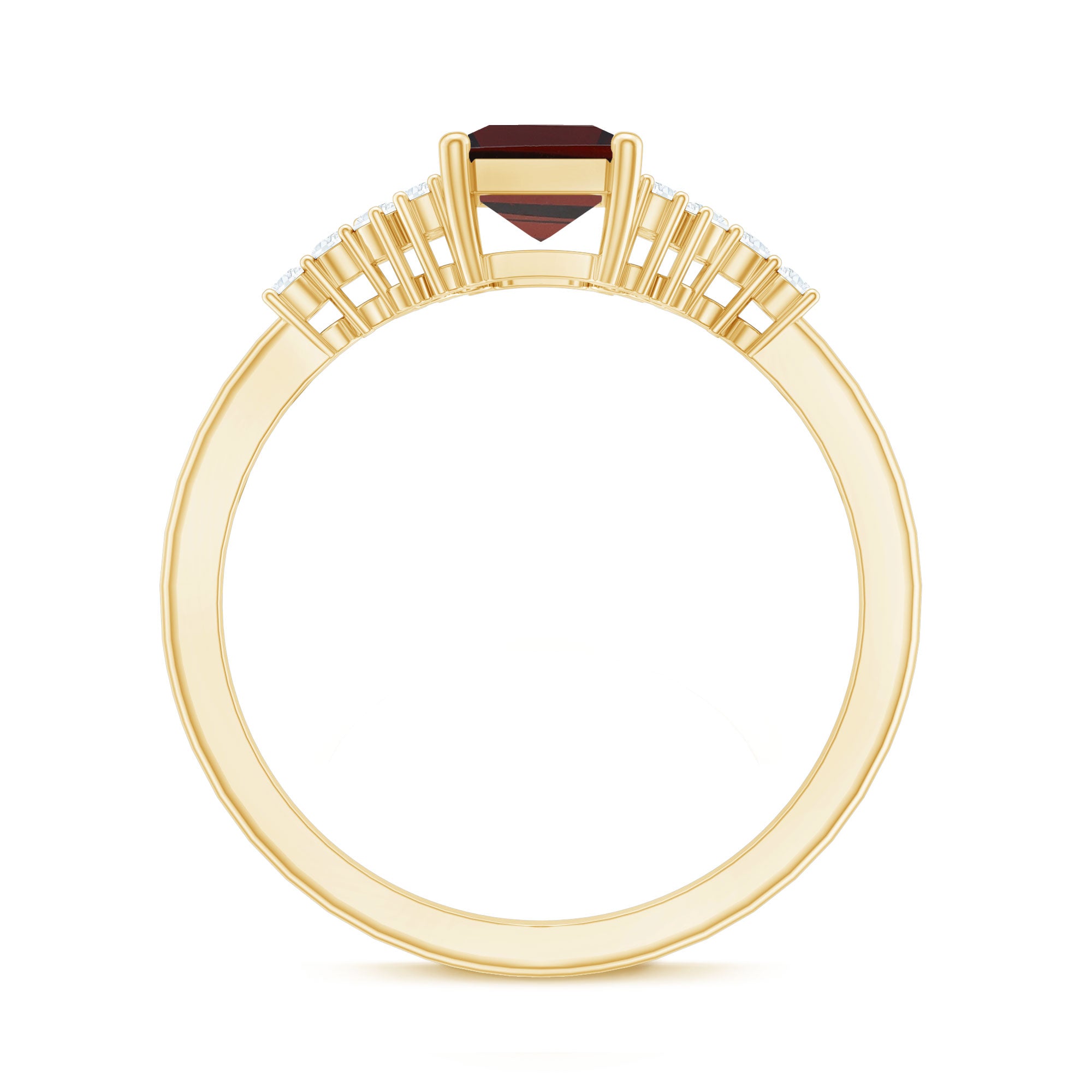 Garnet Solitaire Rings: - Truly the most traditional option for a garnet engagement rings, the Solitaire Style emphasizes the singular centerpiece of garnet. What's great about this style is its versatility, appealing to various aesthetics. While a round cut garnet solitaire ring might be the classic choice. You can also opt for fancier cuts such as marquise, pear, or princess shapes to add a contemporary touch. For those seeking a vintage vibe then an asscher, cushion, or emerald cut garnet engagement ring will be the ideal choice.