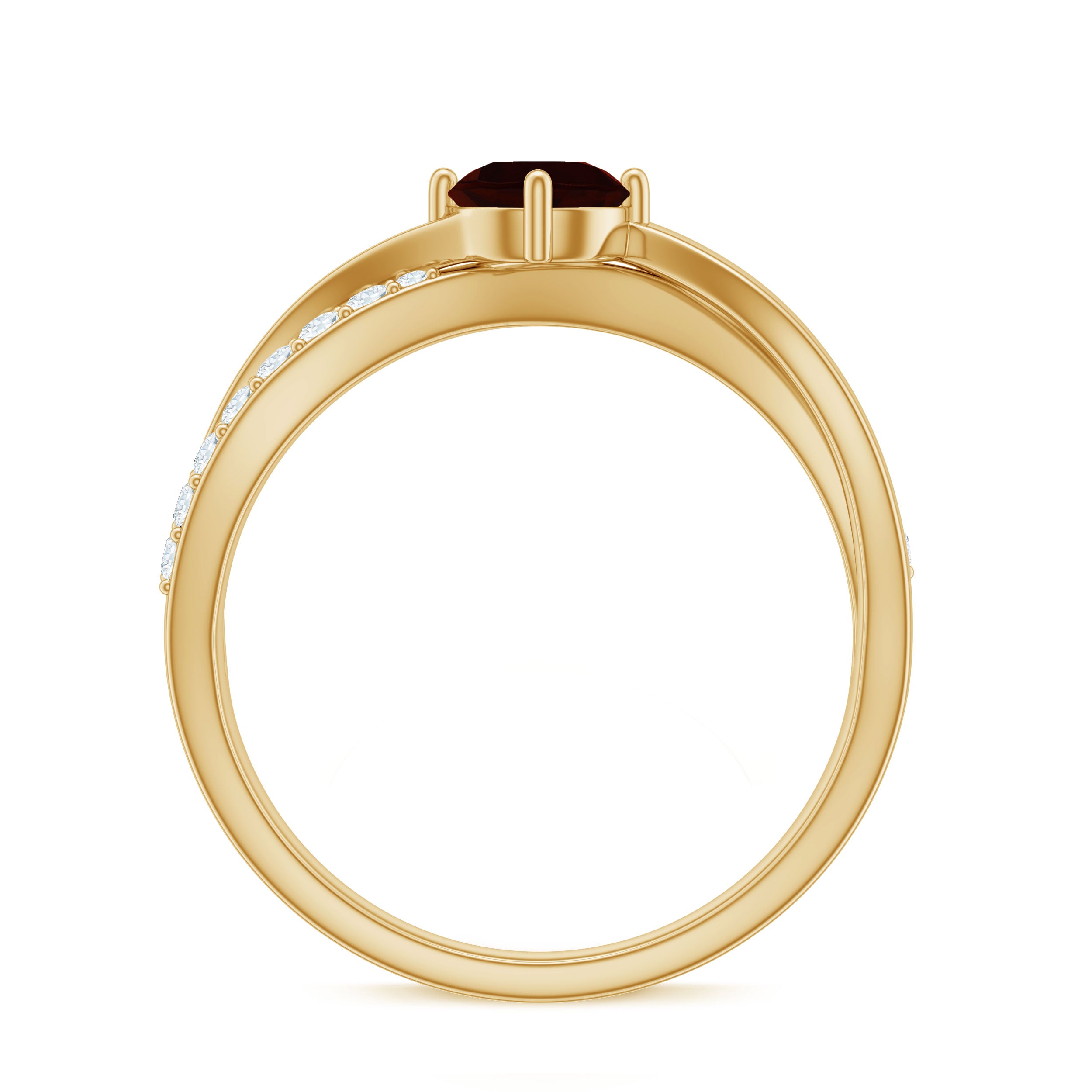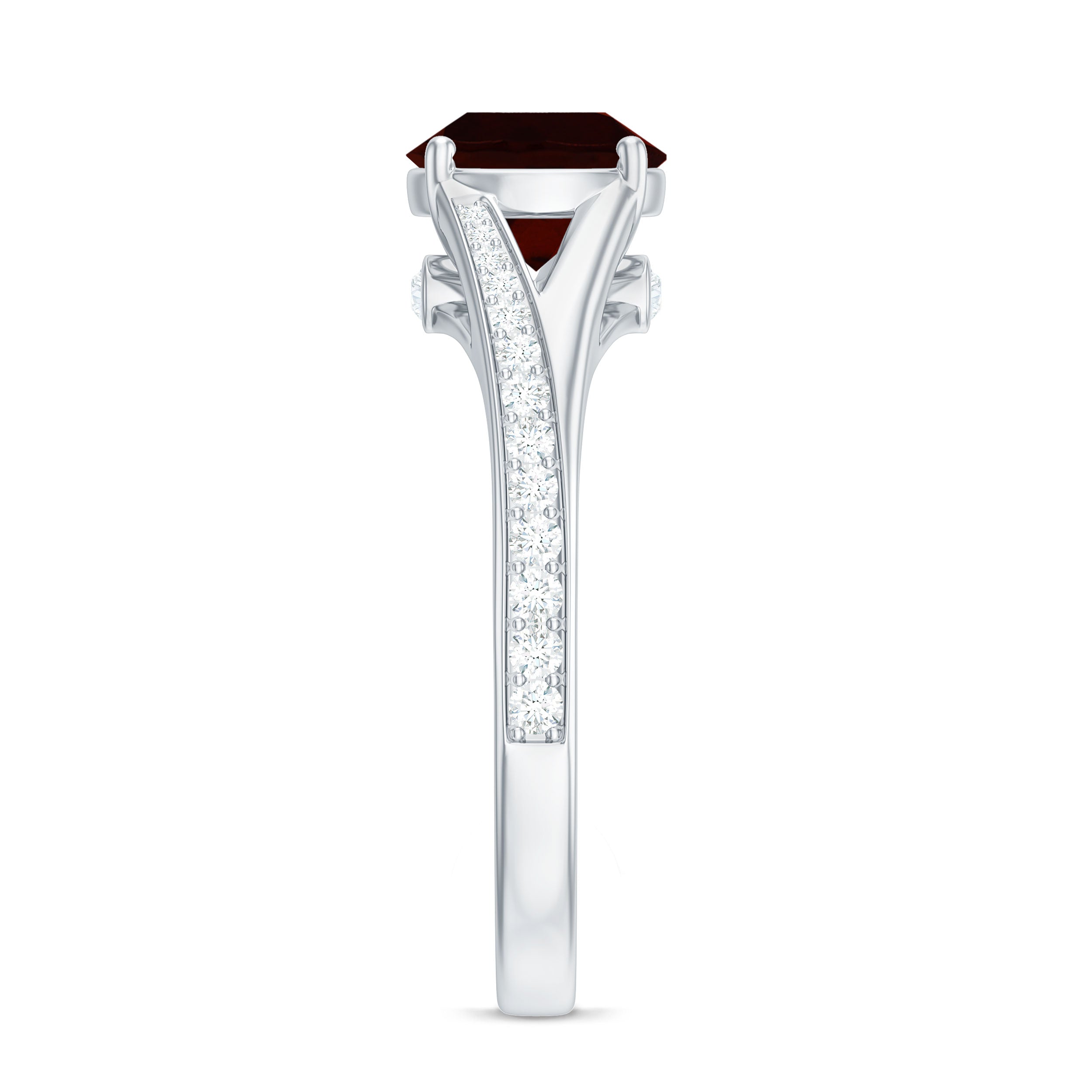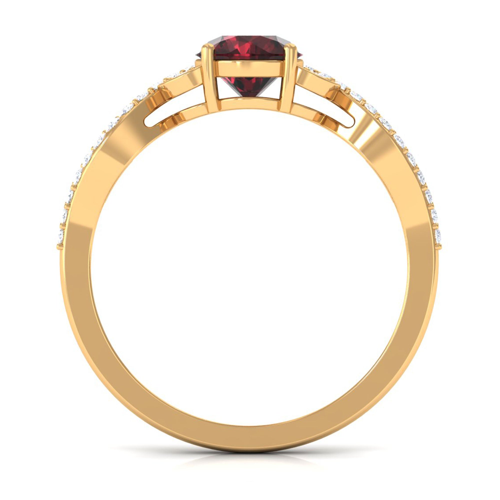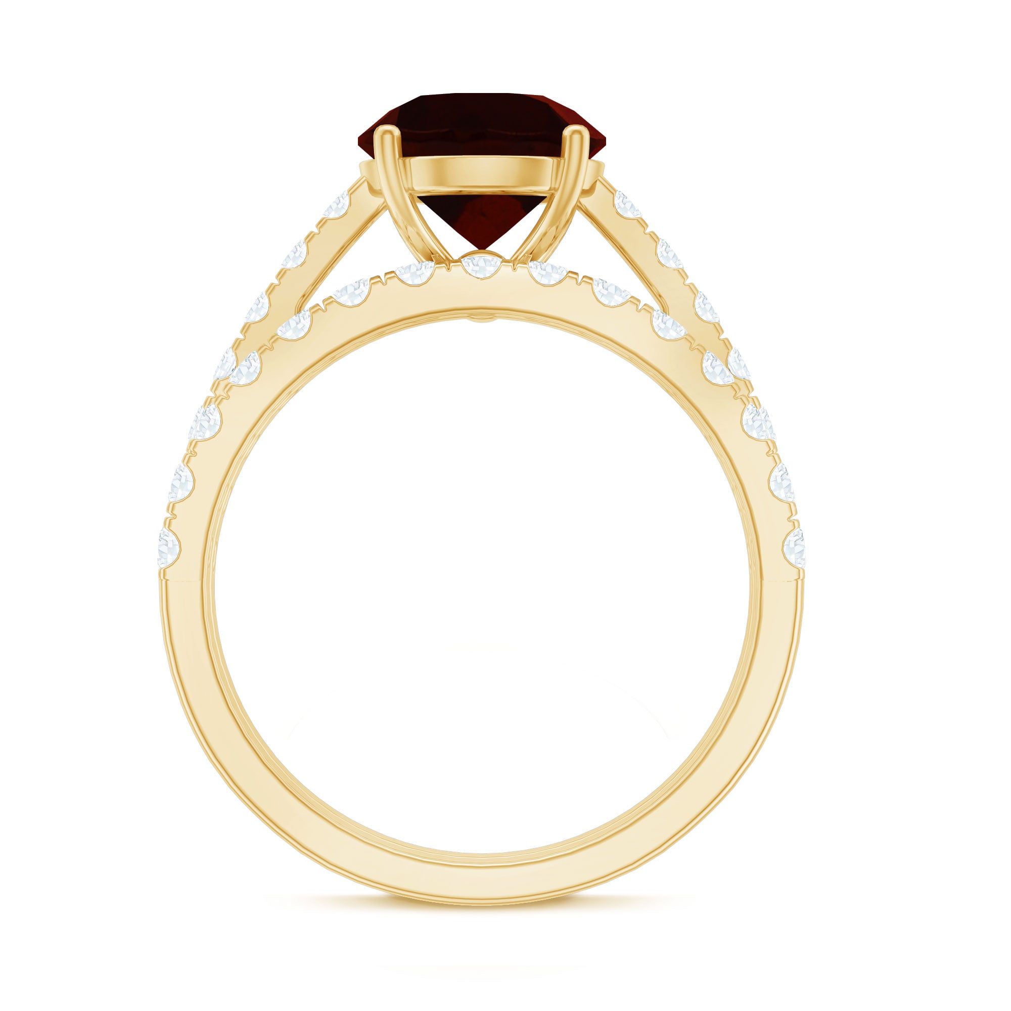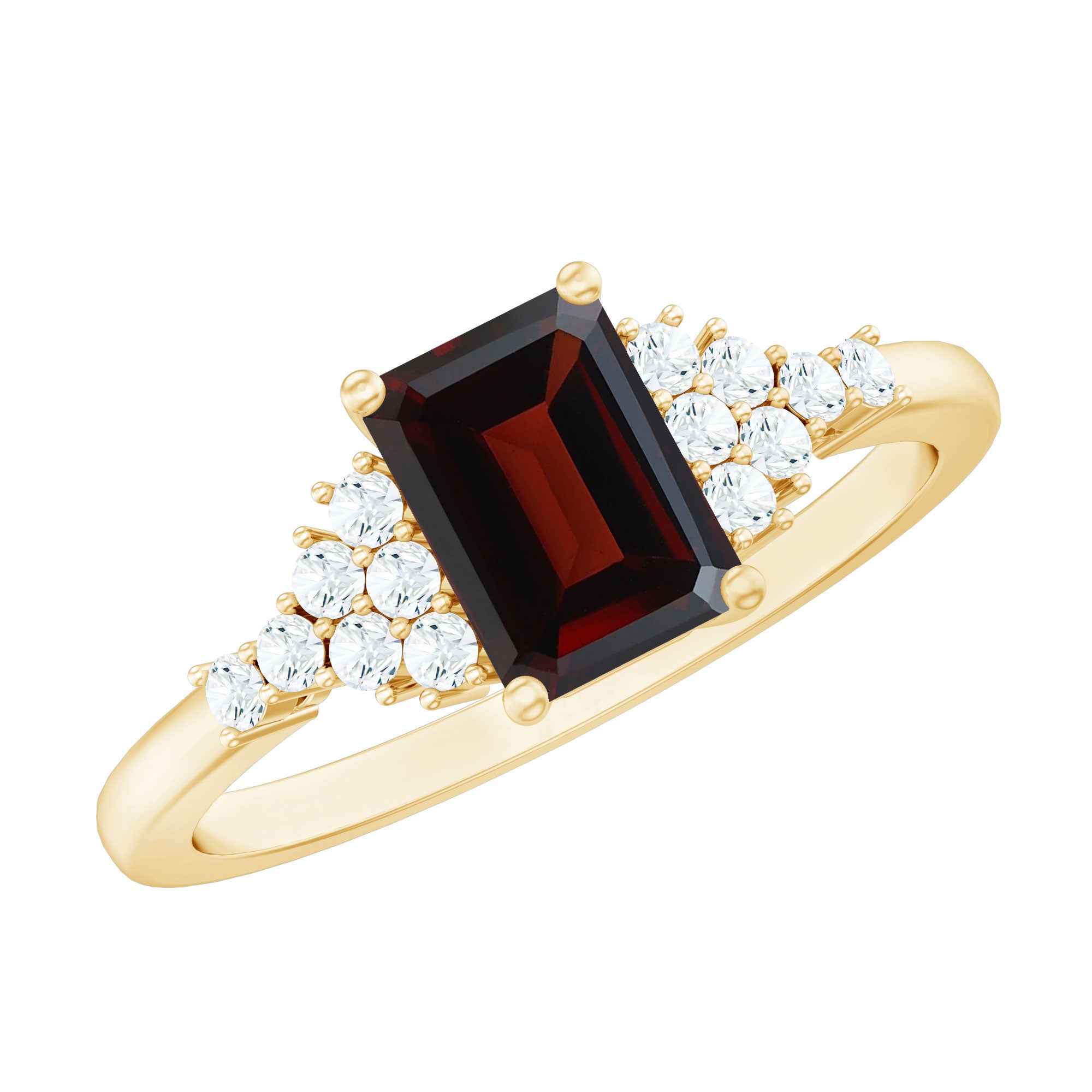 Garnet Solitaire Rings: - Truly the most traditional option for a garnet engagement rings, the Solitaire Style emphasizes the singular centerpiece of garnet. What's great about this style is its versatility, appealing to various aesthetics. While a round cut garnet solitaire ring might be the classic choice. You can also opt for fancier cuts such as marquise, pear, or princess shapes to add a contemporary touch. For those seeking a vintage vibe then an asscher, cushion, or emerald cut garnet engagement ring will be the ideal choice.