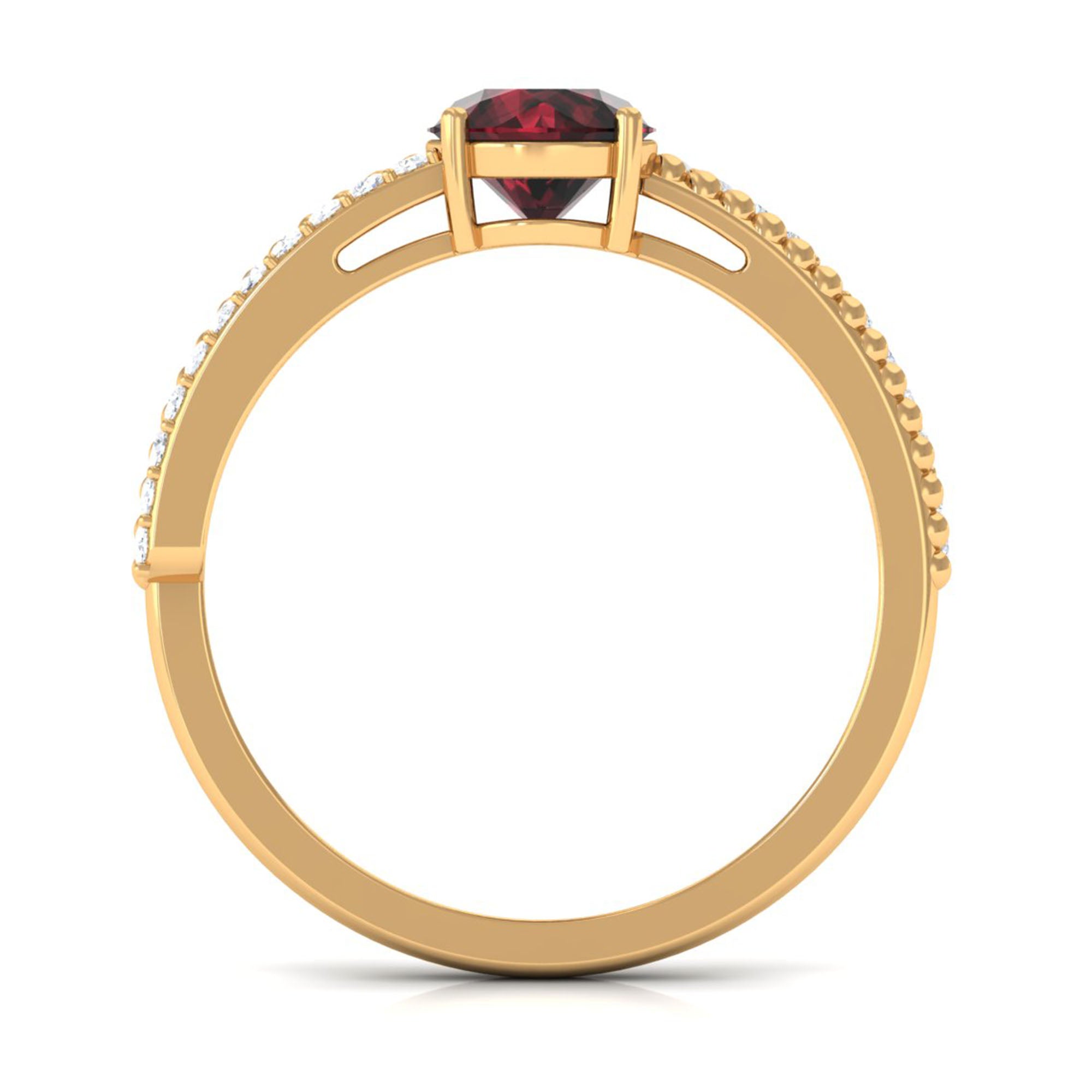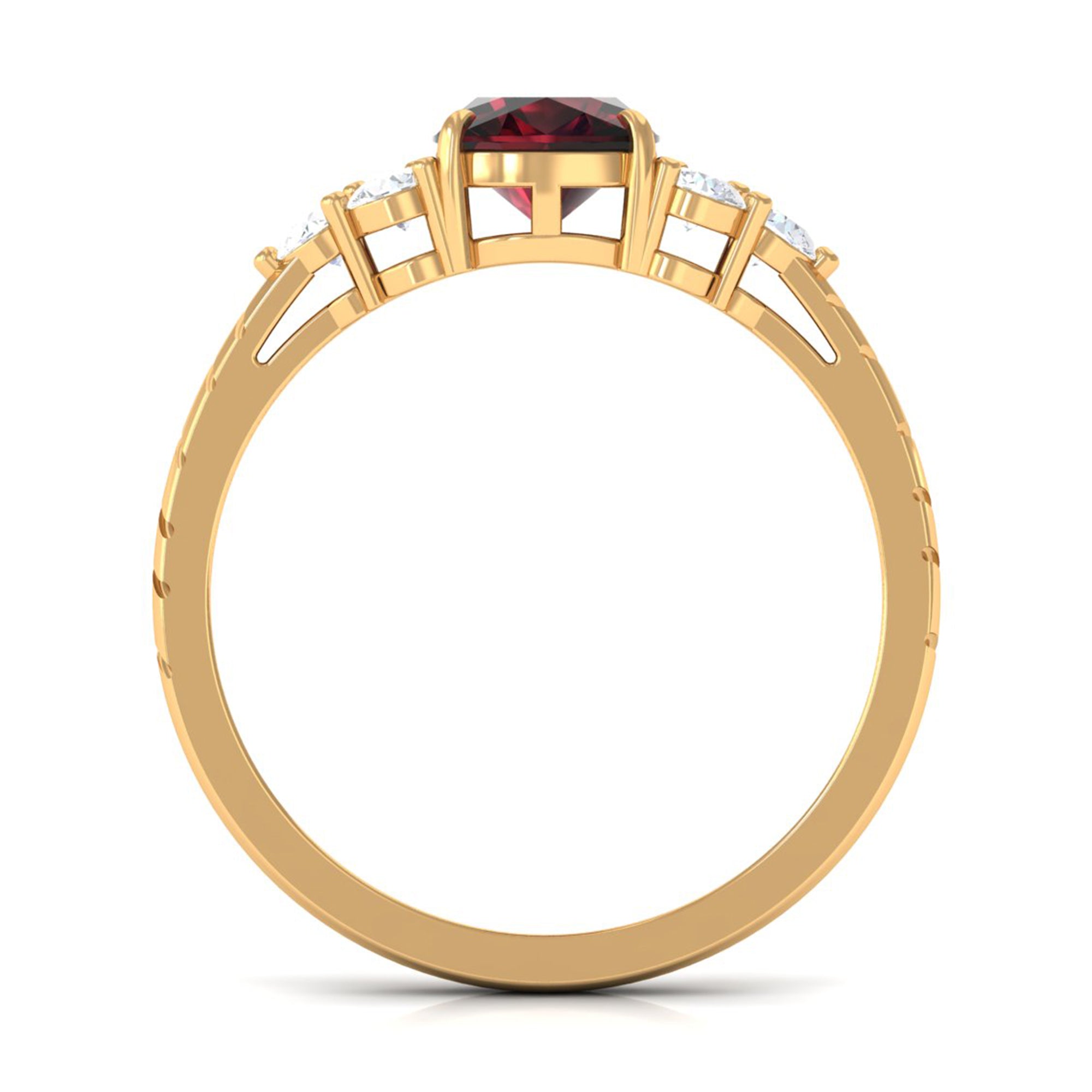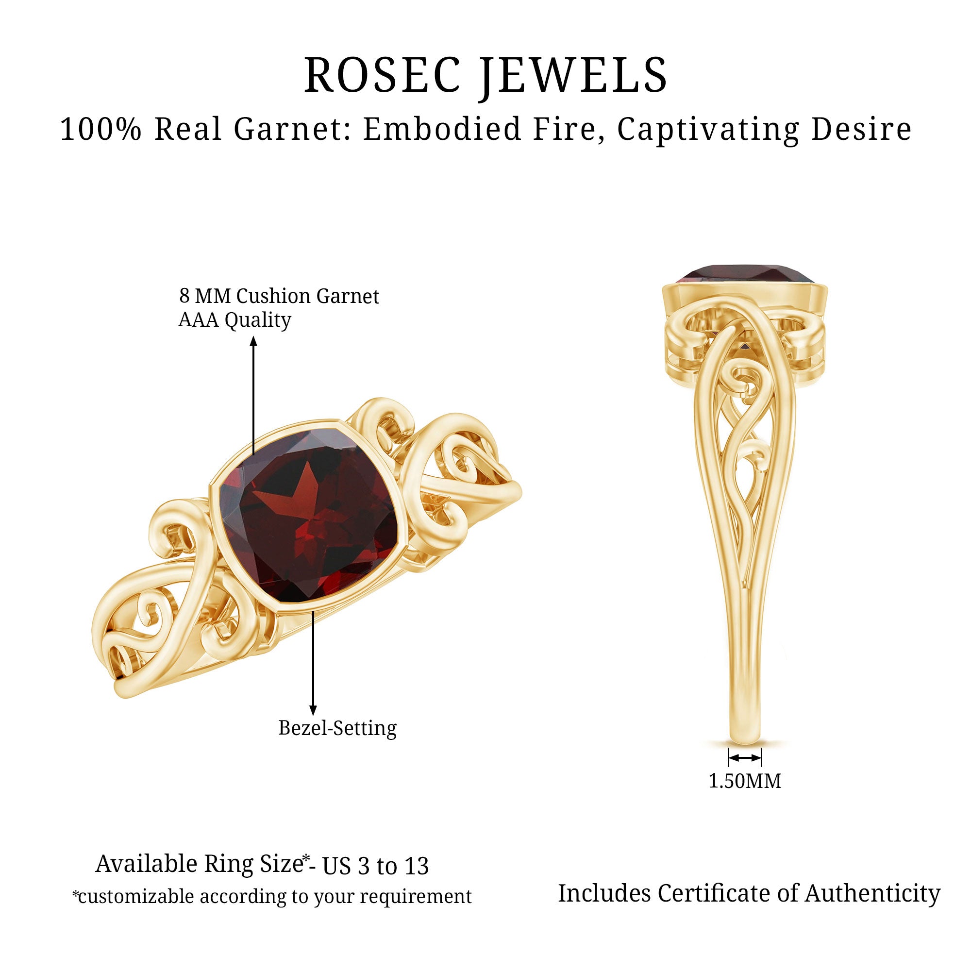 Vintage Inspired Garnet Rings: - A vintage-inspired garnet ring brings around the timeless designs of the Art Deco, Edwardian, and Victorian eras. Classic antique rings often feature intricate details like milgrain, filigree, and vintage engravings, enhancing their old-world charm. This style perfectly complements the center stone of vibrant garnet, adding a touch of elegance.