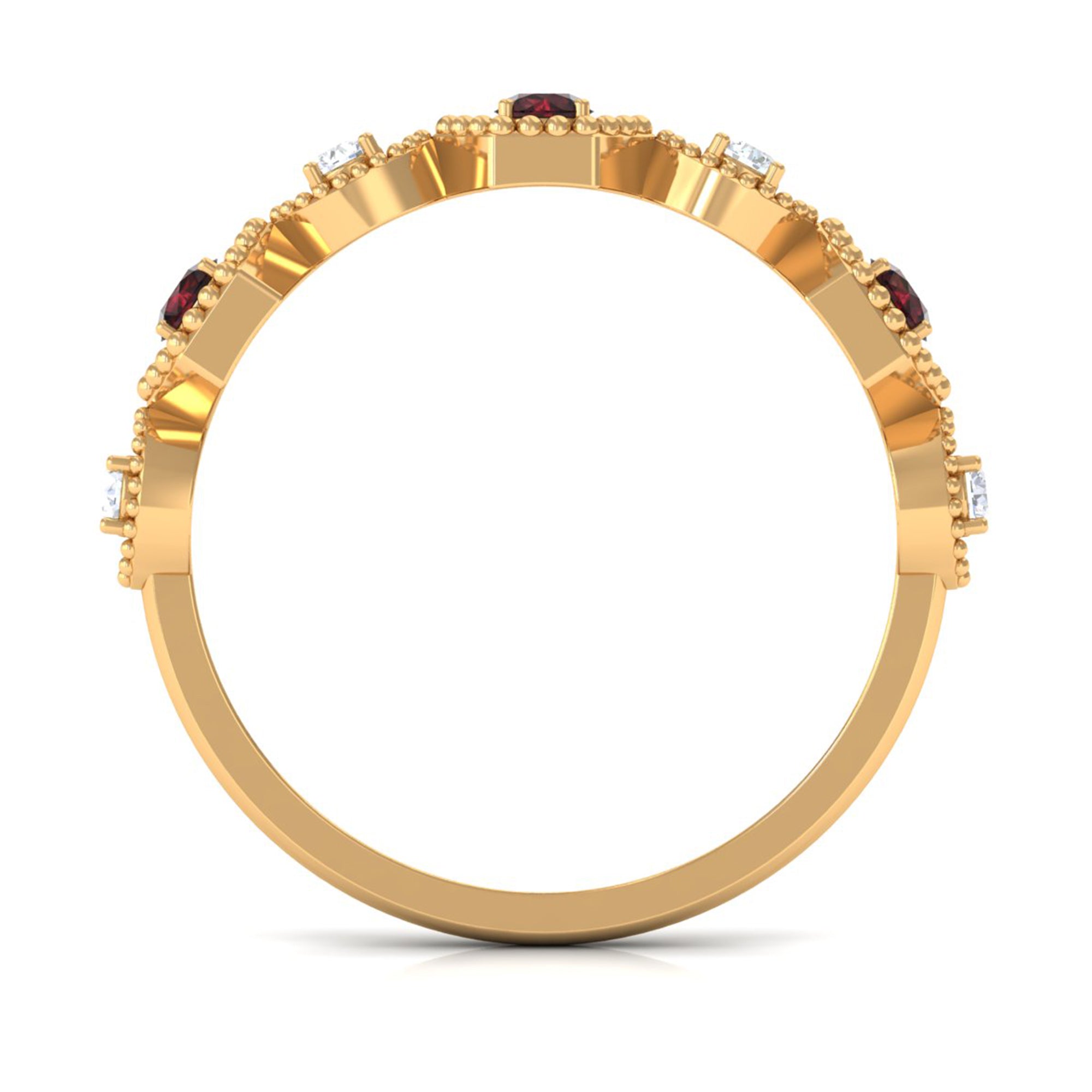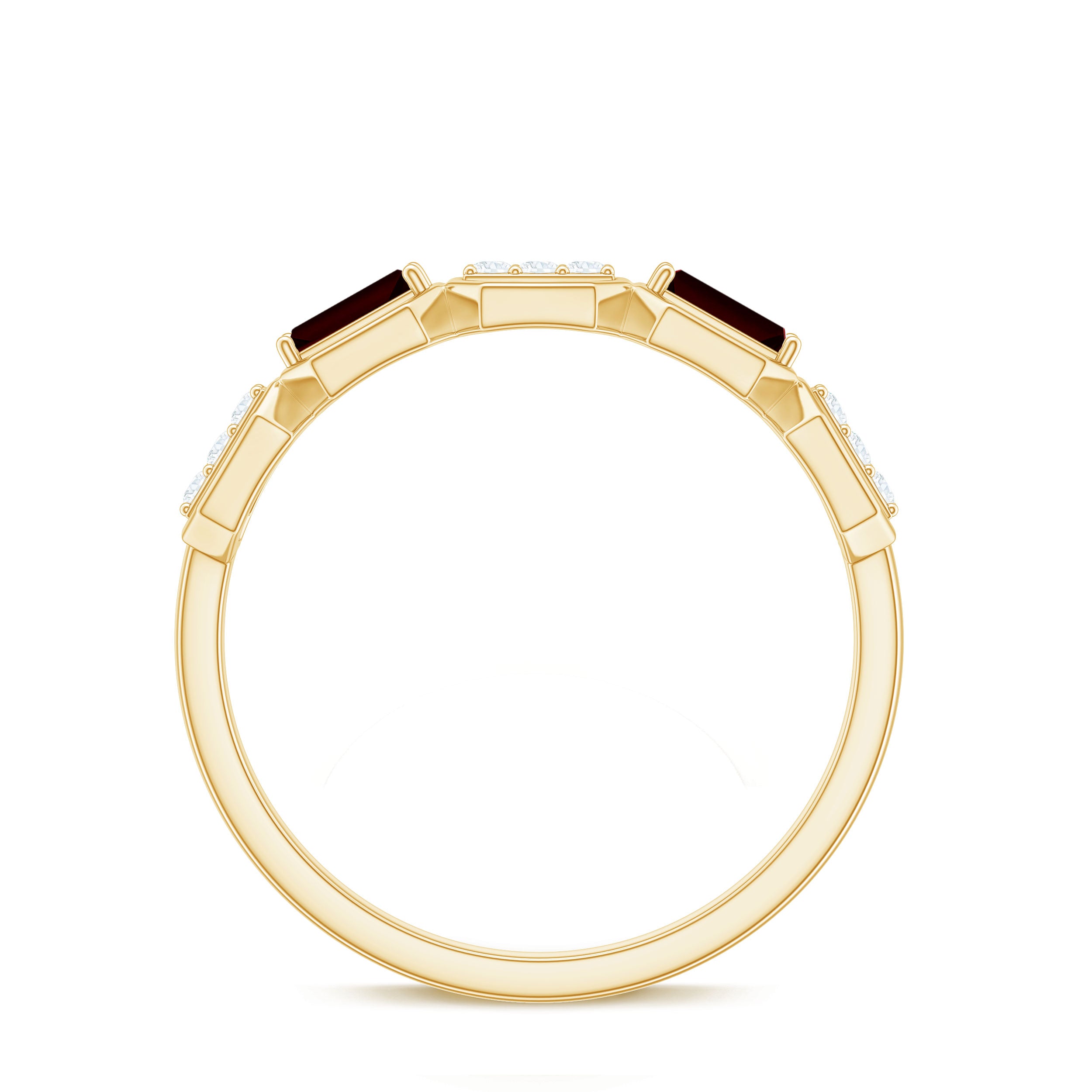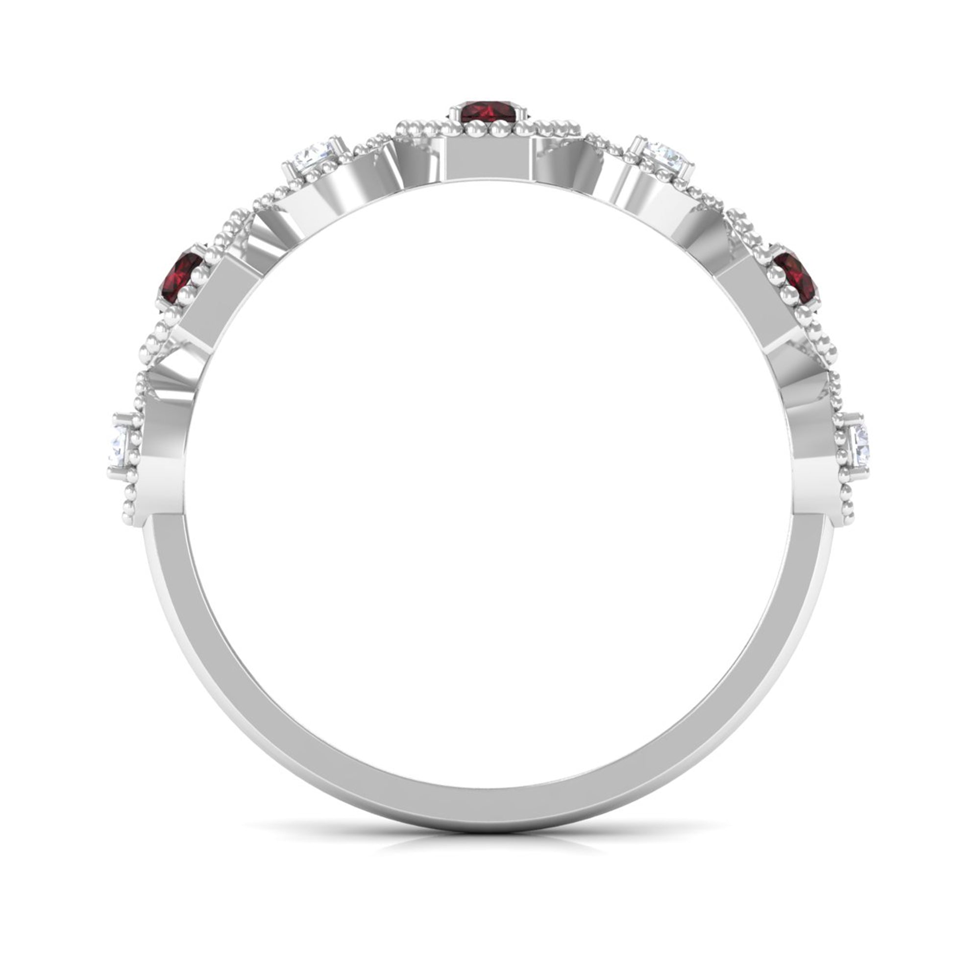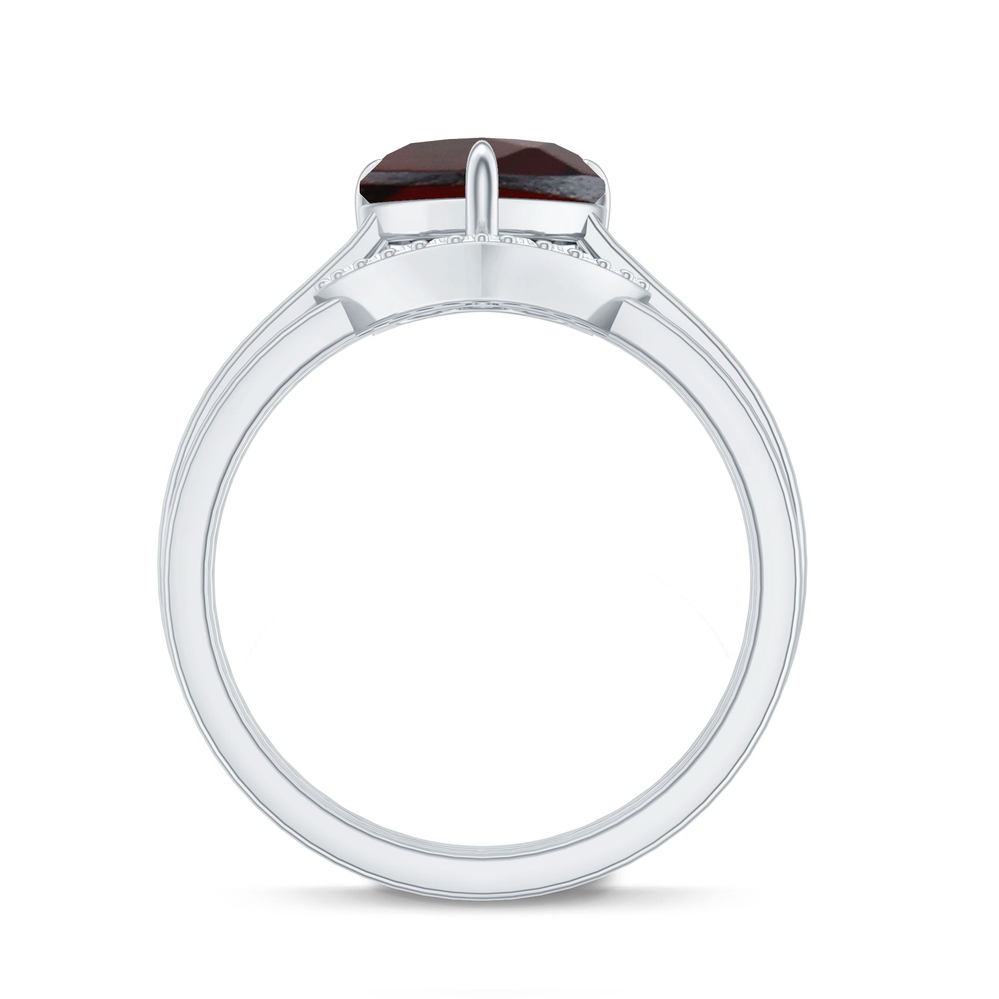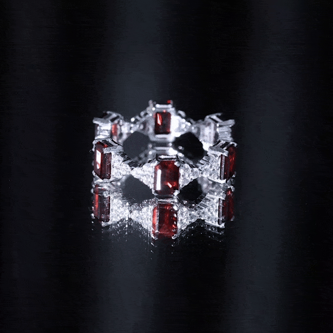 • Clarity: The red garnet in wedding bands tend to have no eye-visible inclusions. An eye-clean garnet ring will attract higher prices.