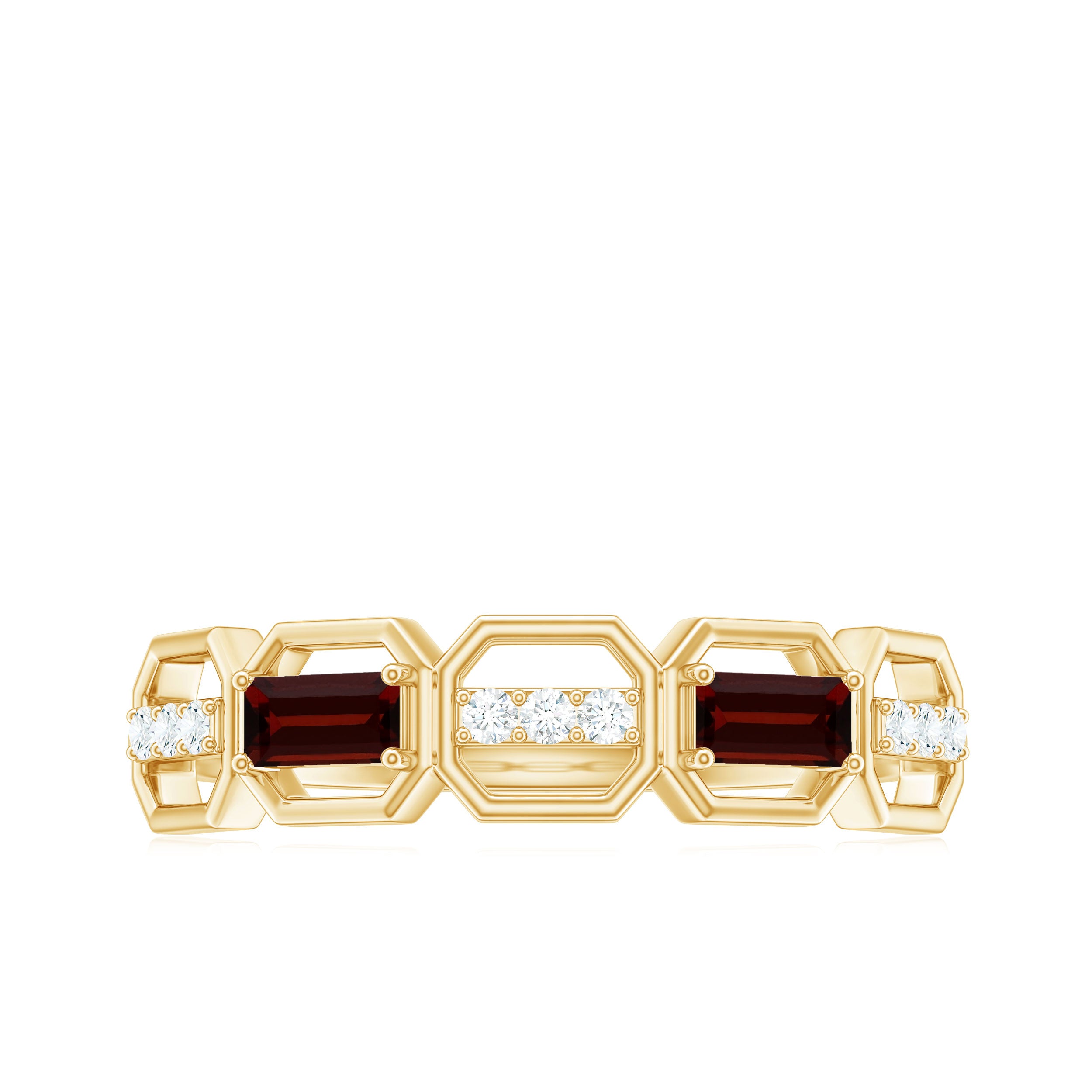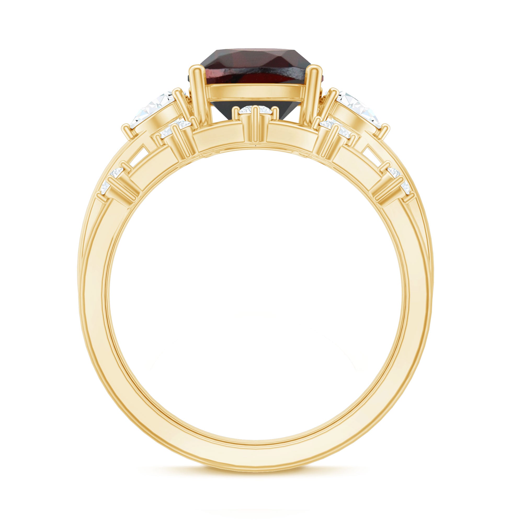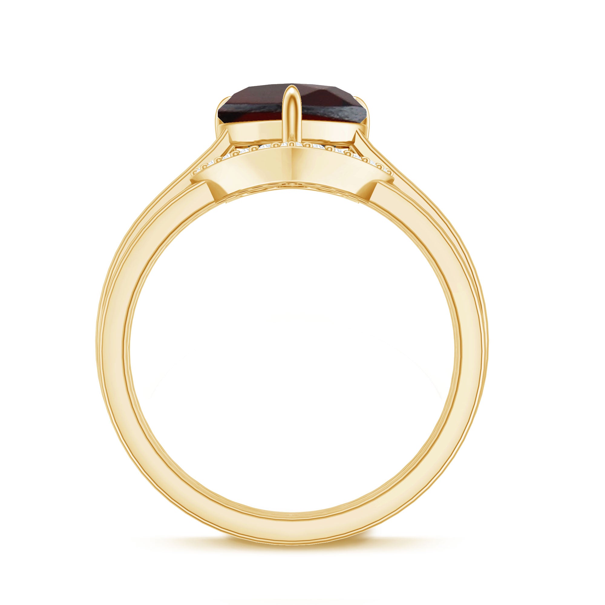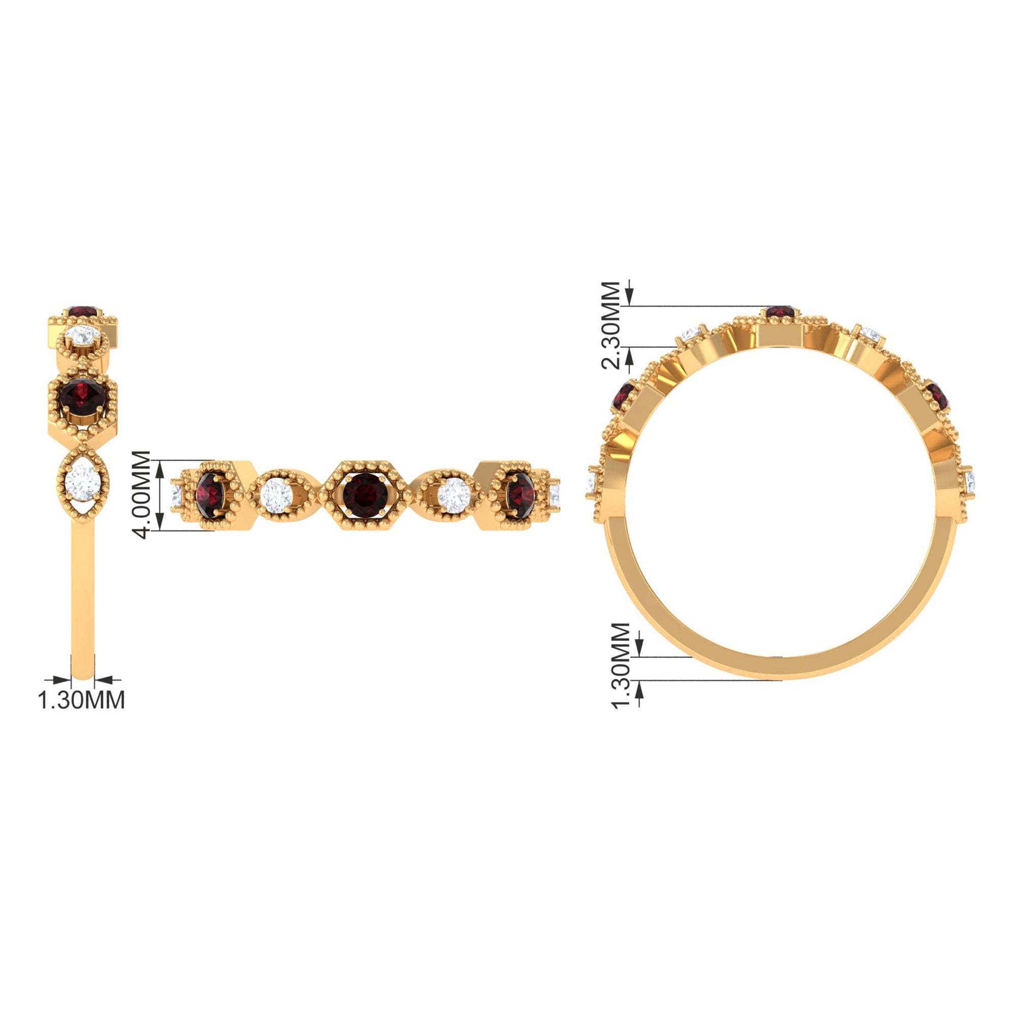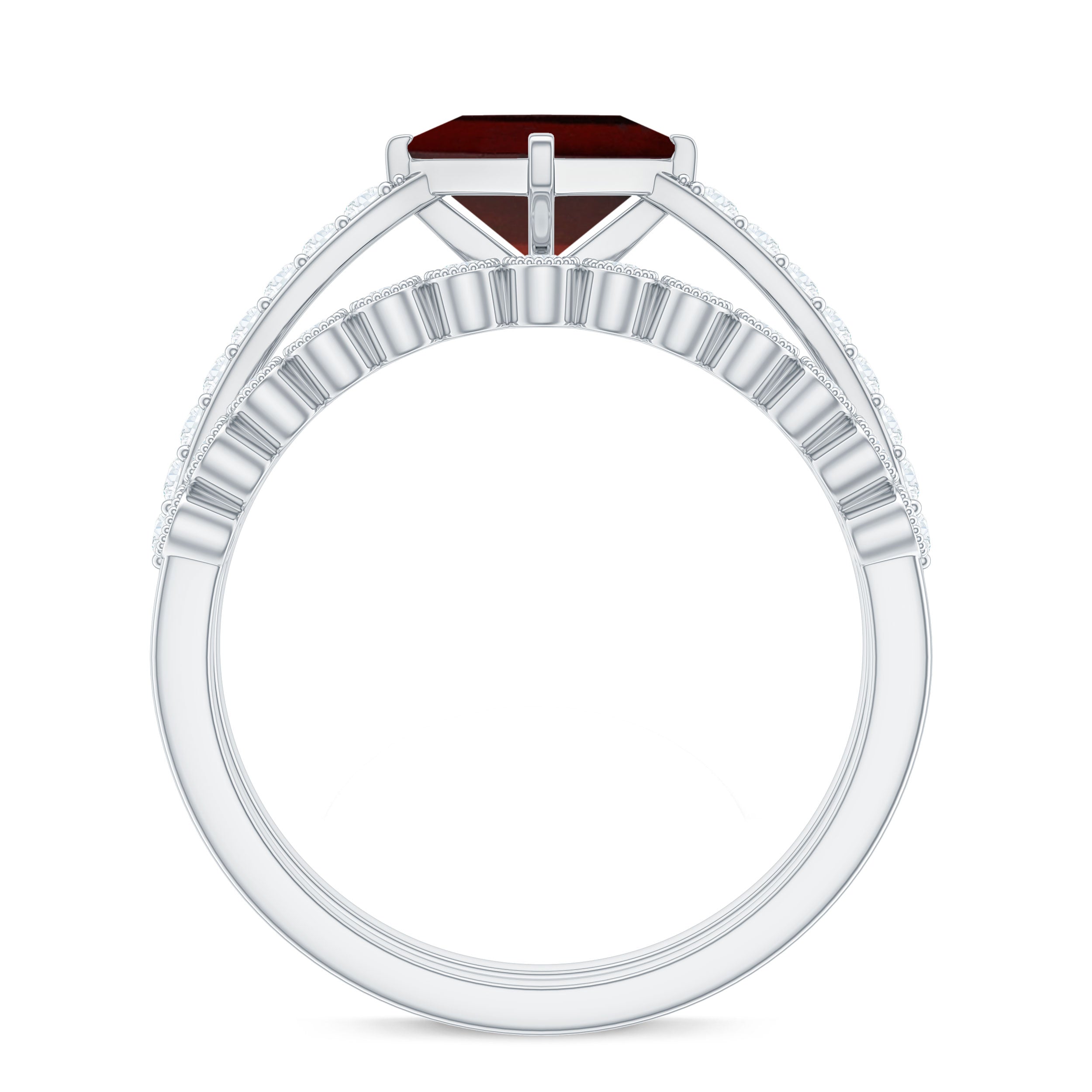• Clarity: The red garnet in wedding bands tend to have no eye-visible inclusions. An eye-clean garnet ring will attract higher prices.