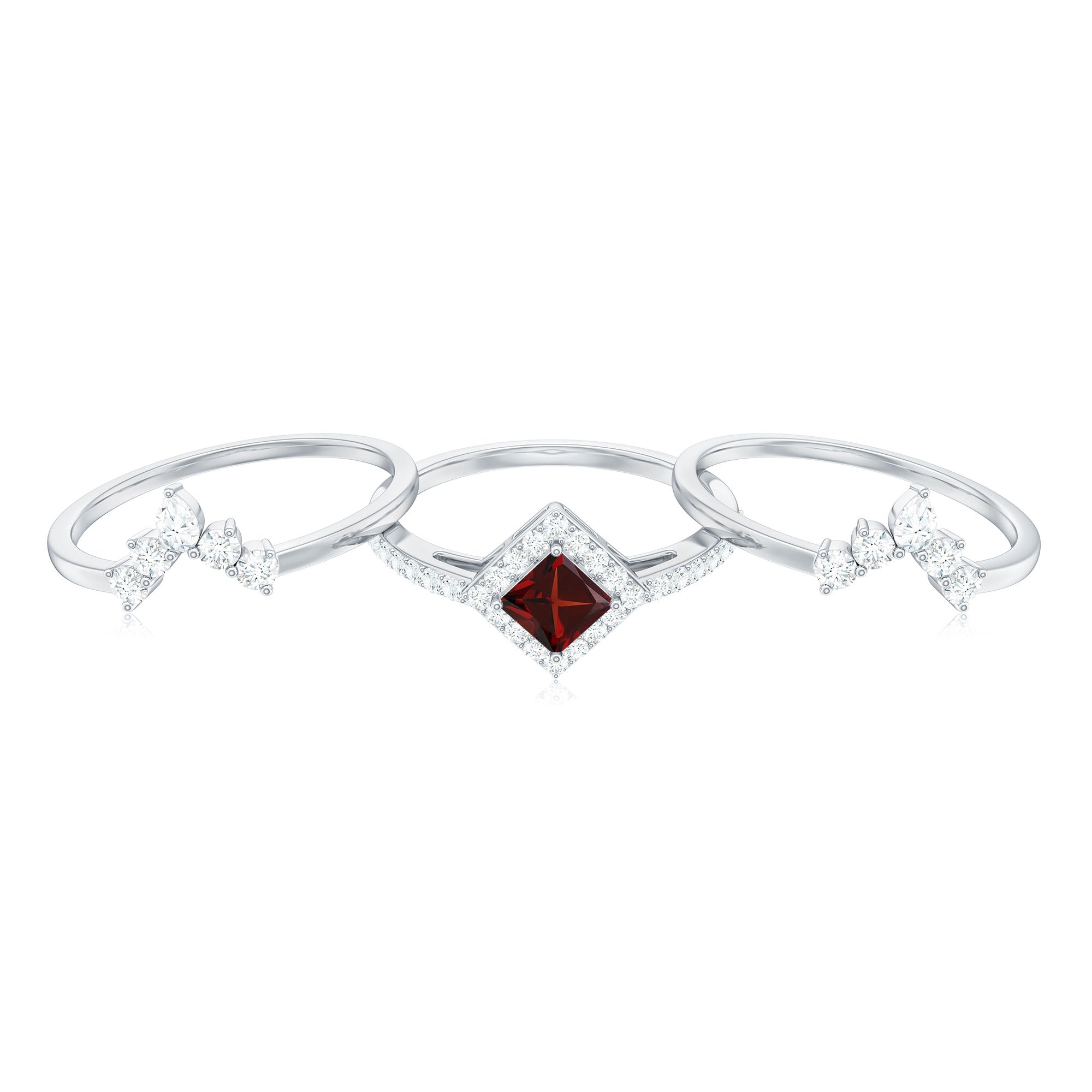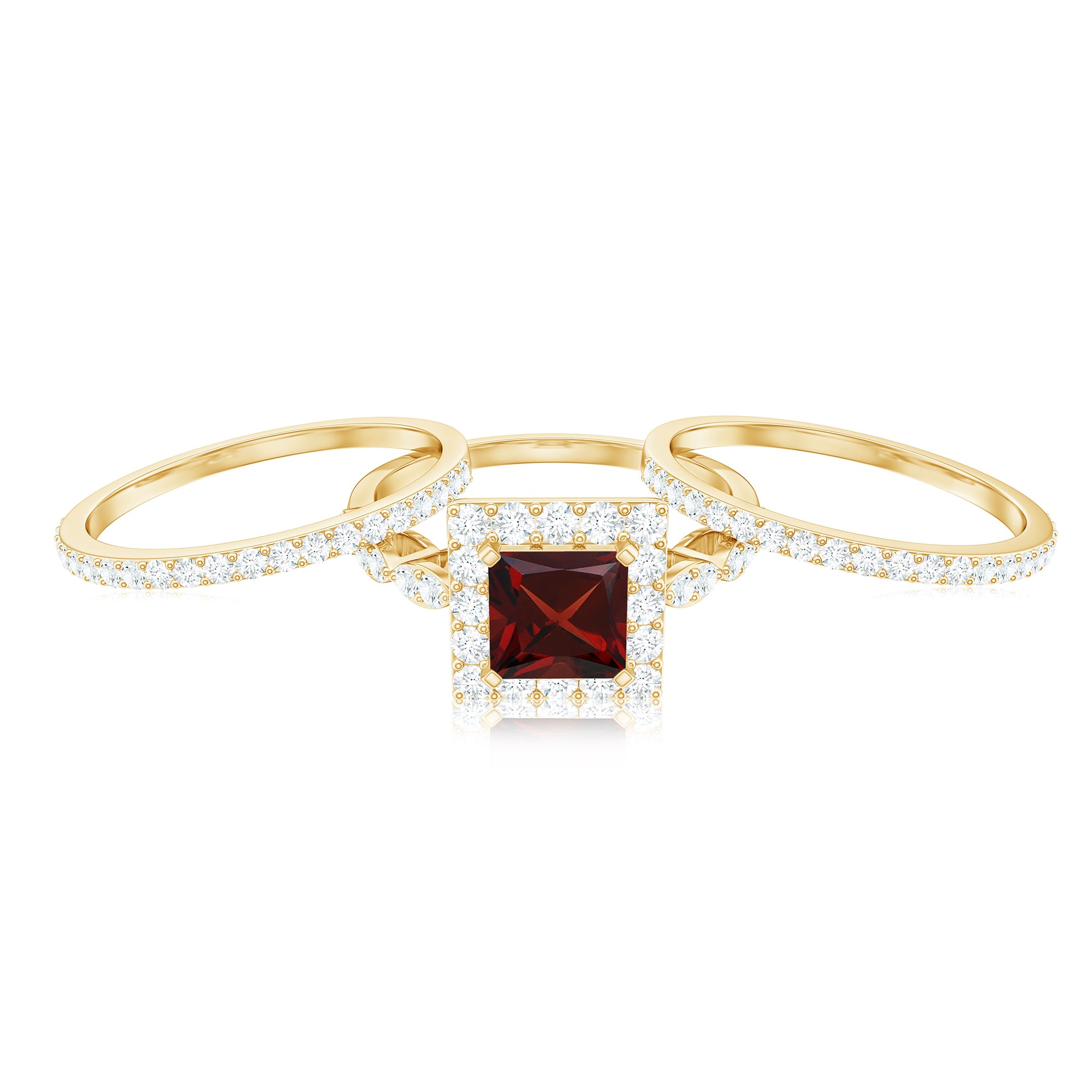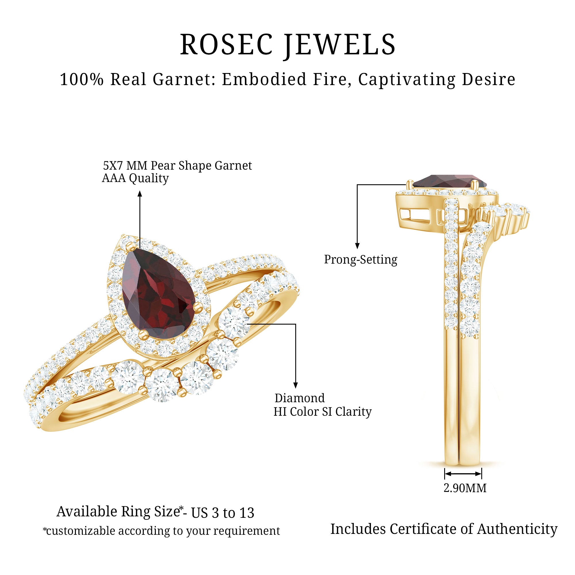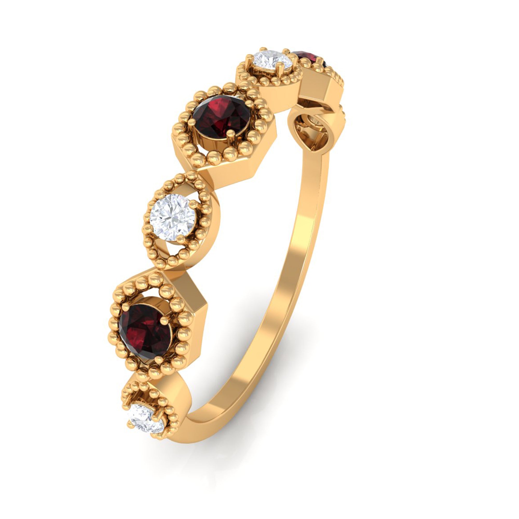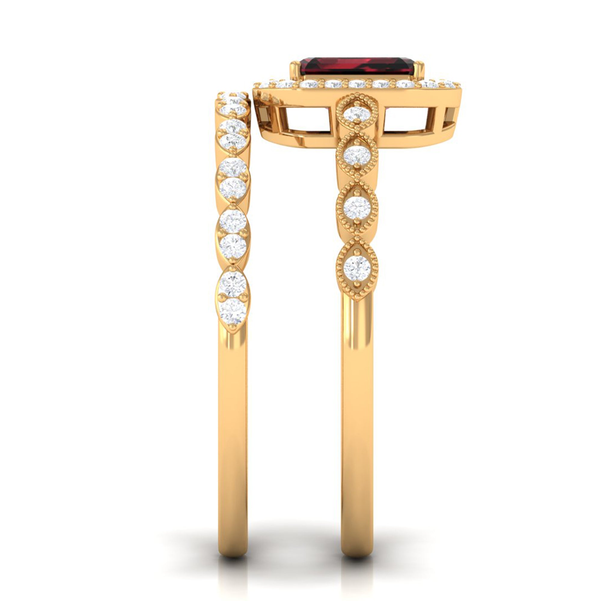 Garnet wedding rings from Rosec Jewels will leave your better half astound when the wedding ring slides down her finger, a moment that is going to sit in her memory forever. Featuring natural garnets, the member of silicate family of minerals and have loved for their wide spectrum of colors of almost all the shades. This great diversity in helps jewelers to employ red garnets while handcrafting garnet rings for women. Our artisans are as well after curating January birthstone rings for wedding that boast of fine and delicate designs.