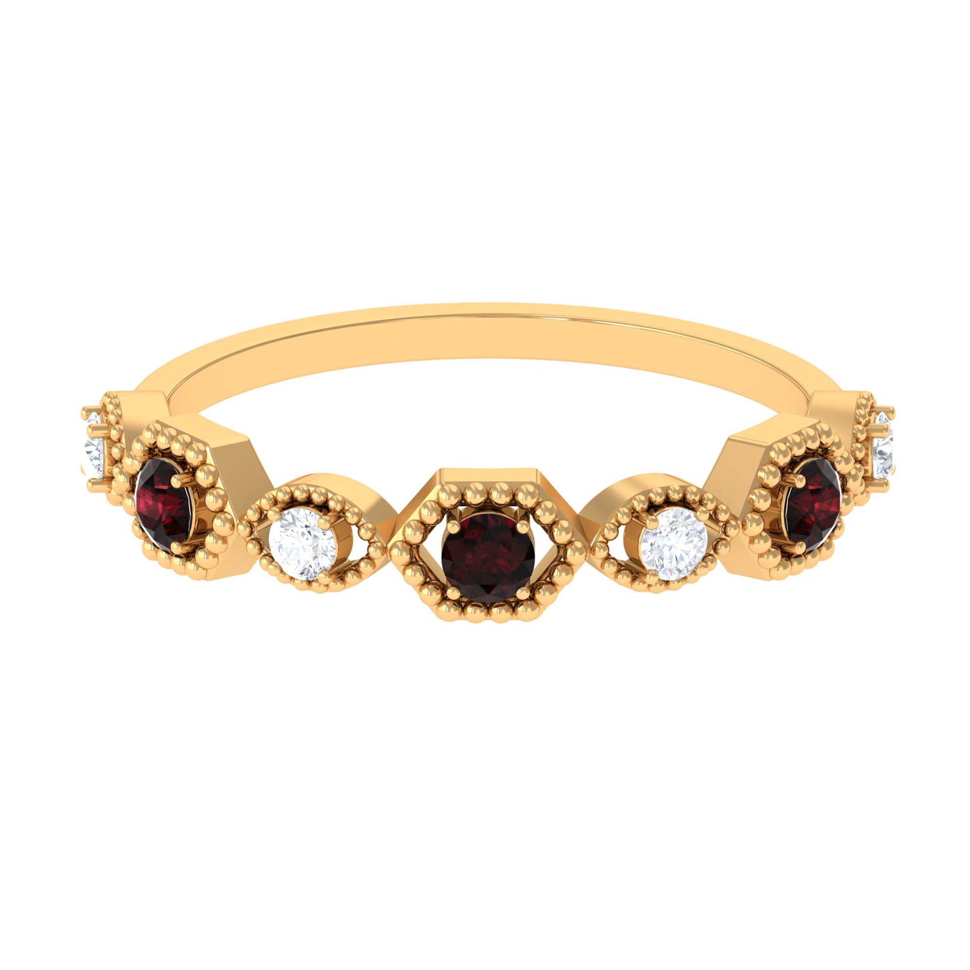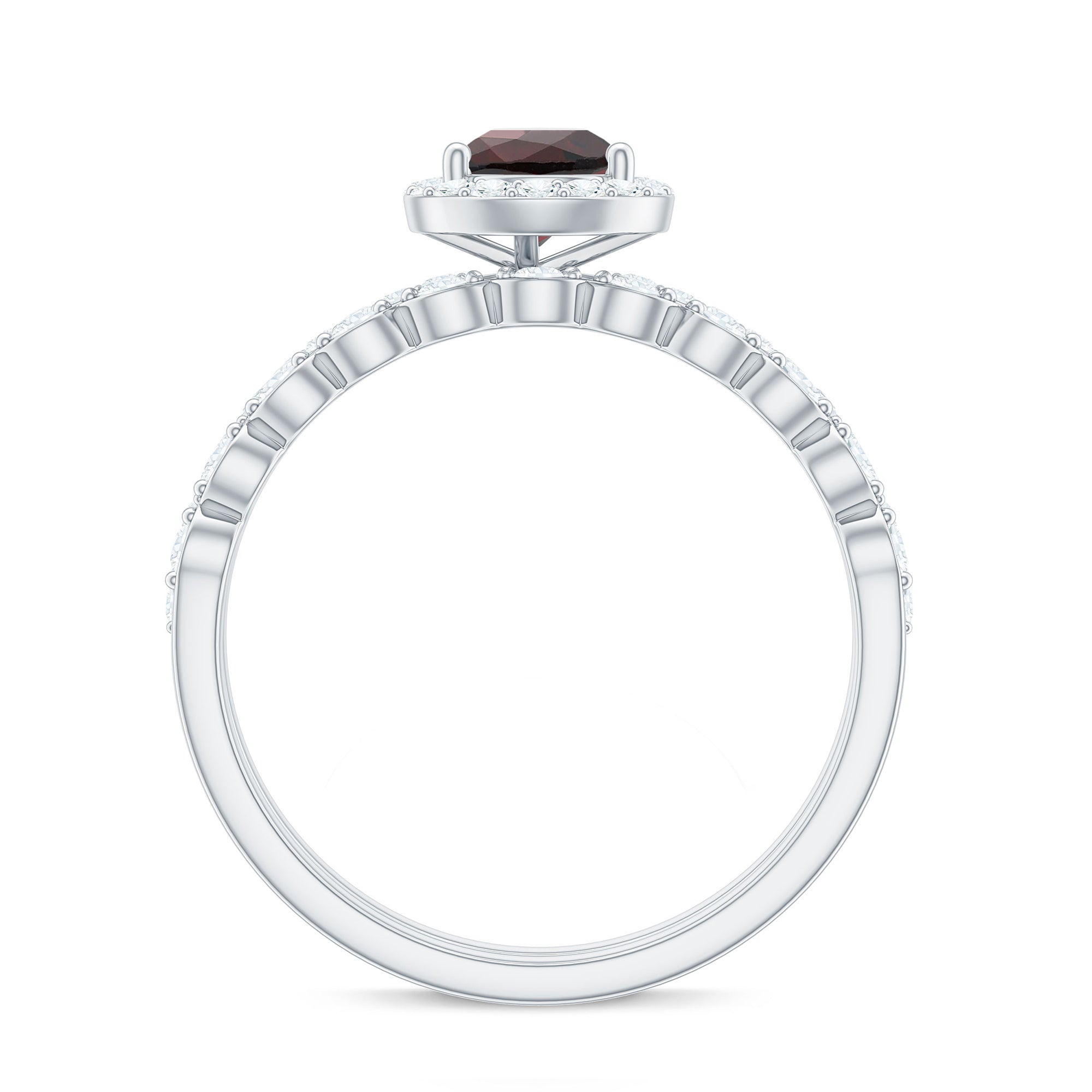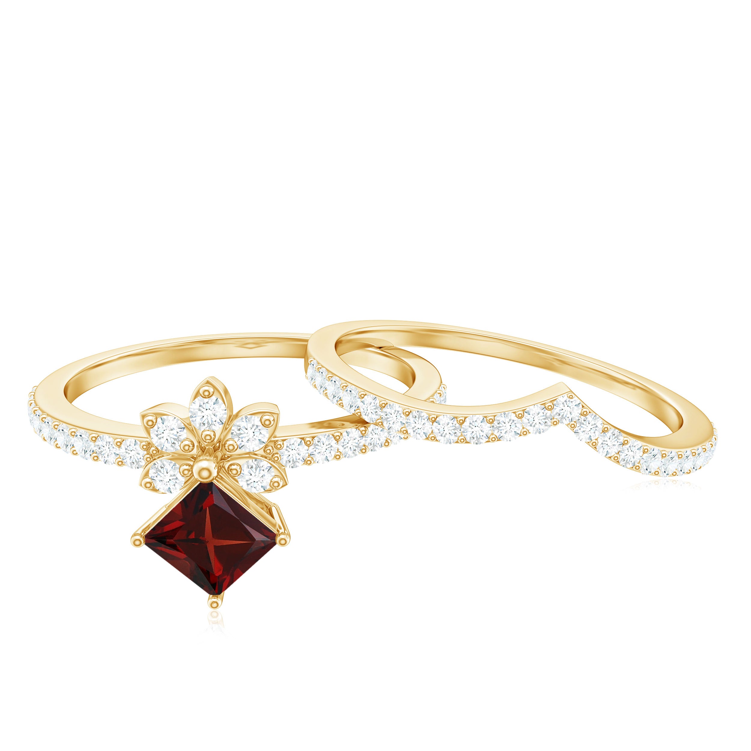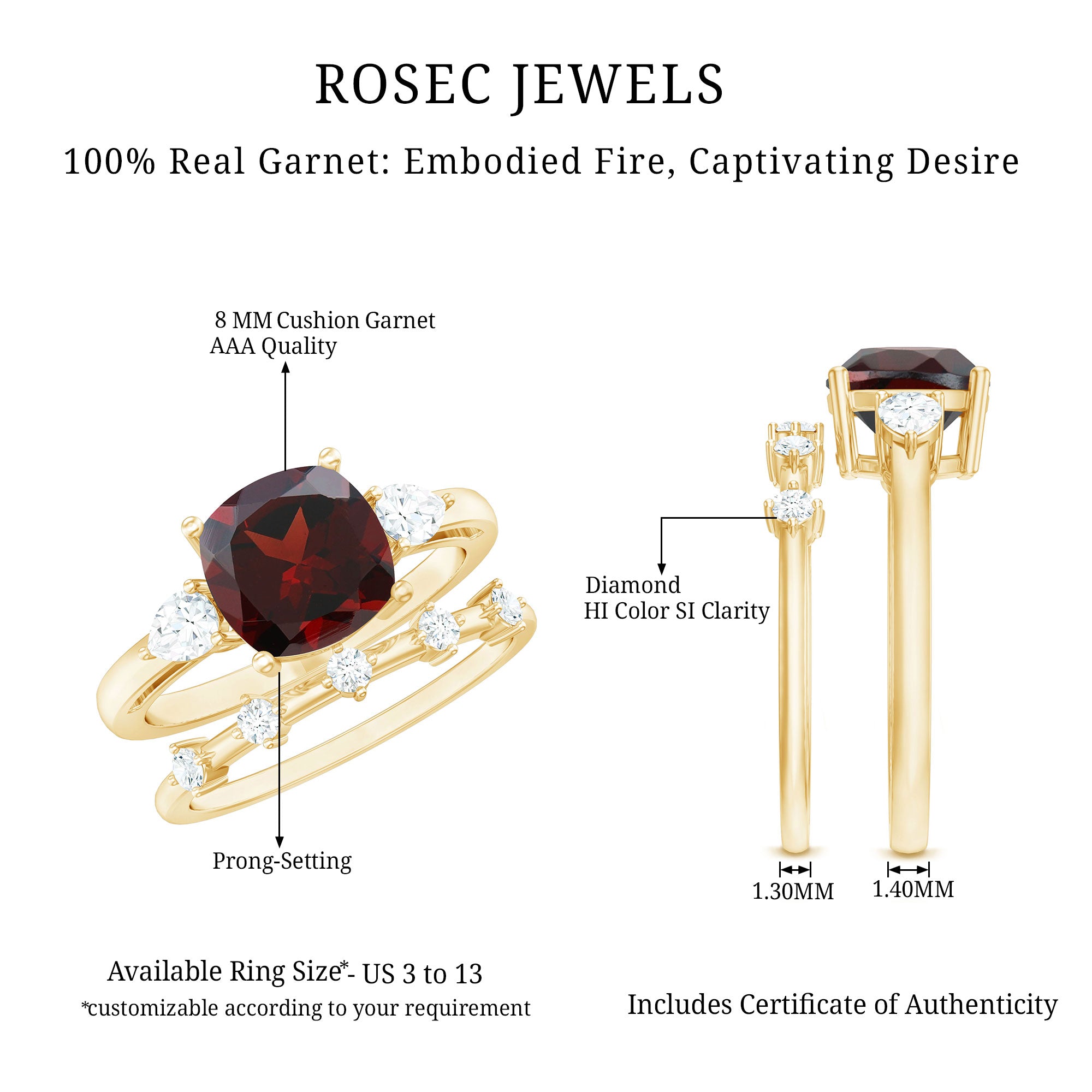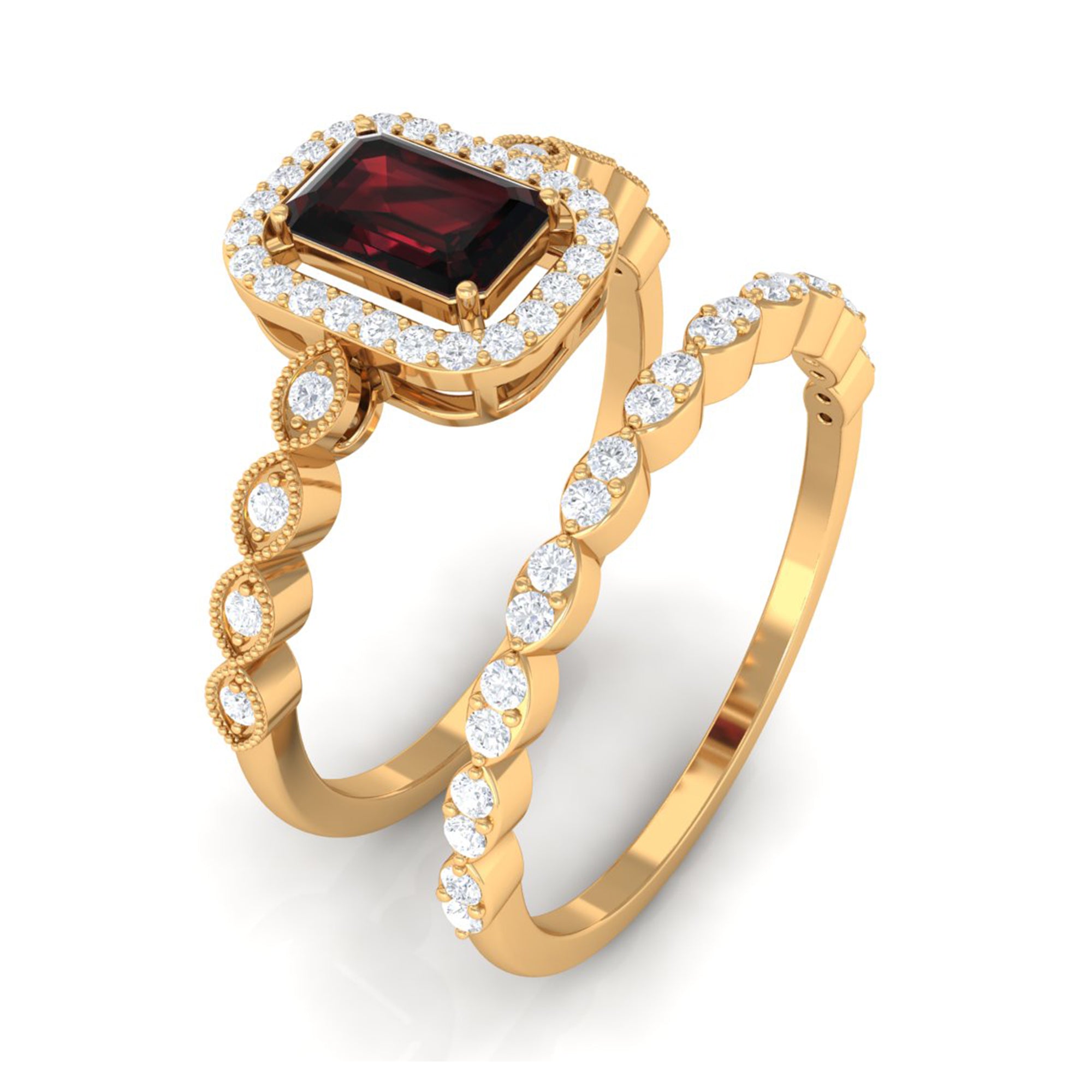 Garnet wedding rings from Rosec Jewels will leave your better half astound when the wedding ring slides down her finger, a moment that is going to sit in her memory forever. Featuring natural garnets, the member of silicate family of minerals and have loved for their wide spectrum of colors of almost all the shades. This great diversity in helps jewelers to employ red garnets while handcrafting garnet rings for women. Our artisans are as well after curating January birthstone rings for wedding that boast of fine and delicate designs.