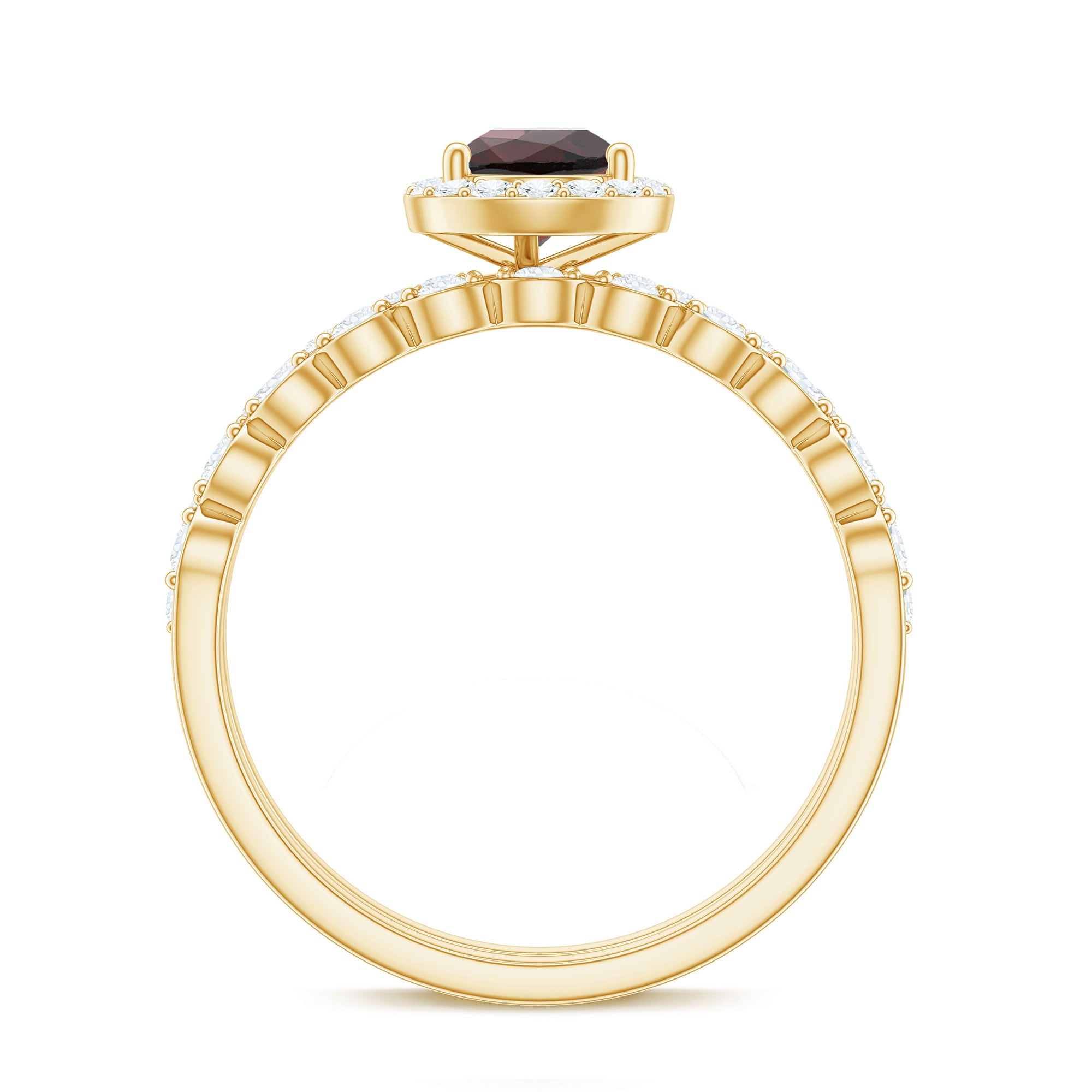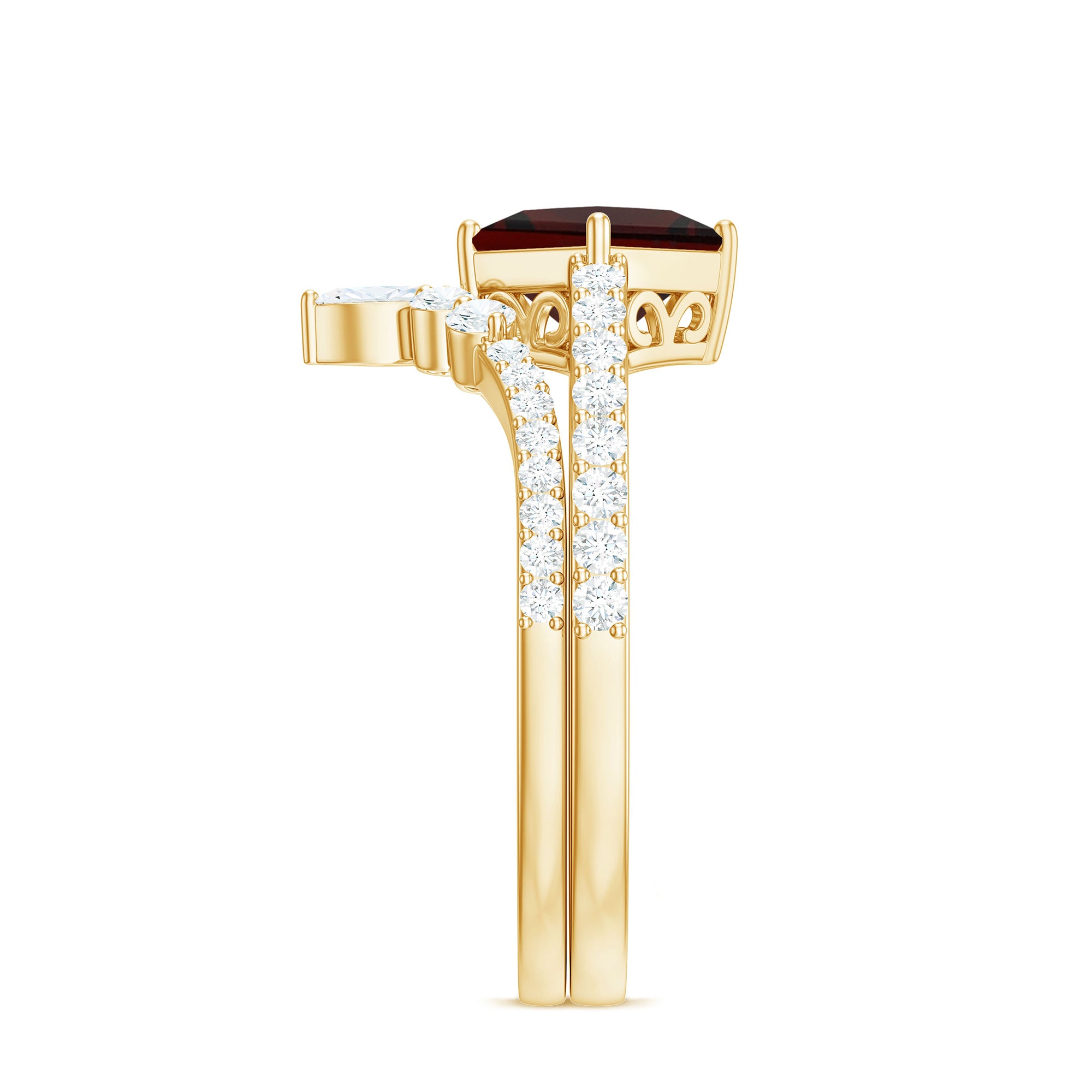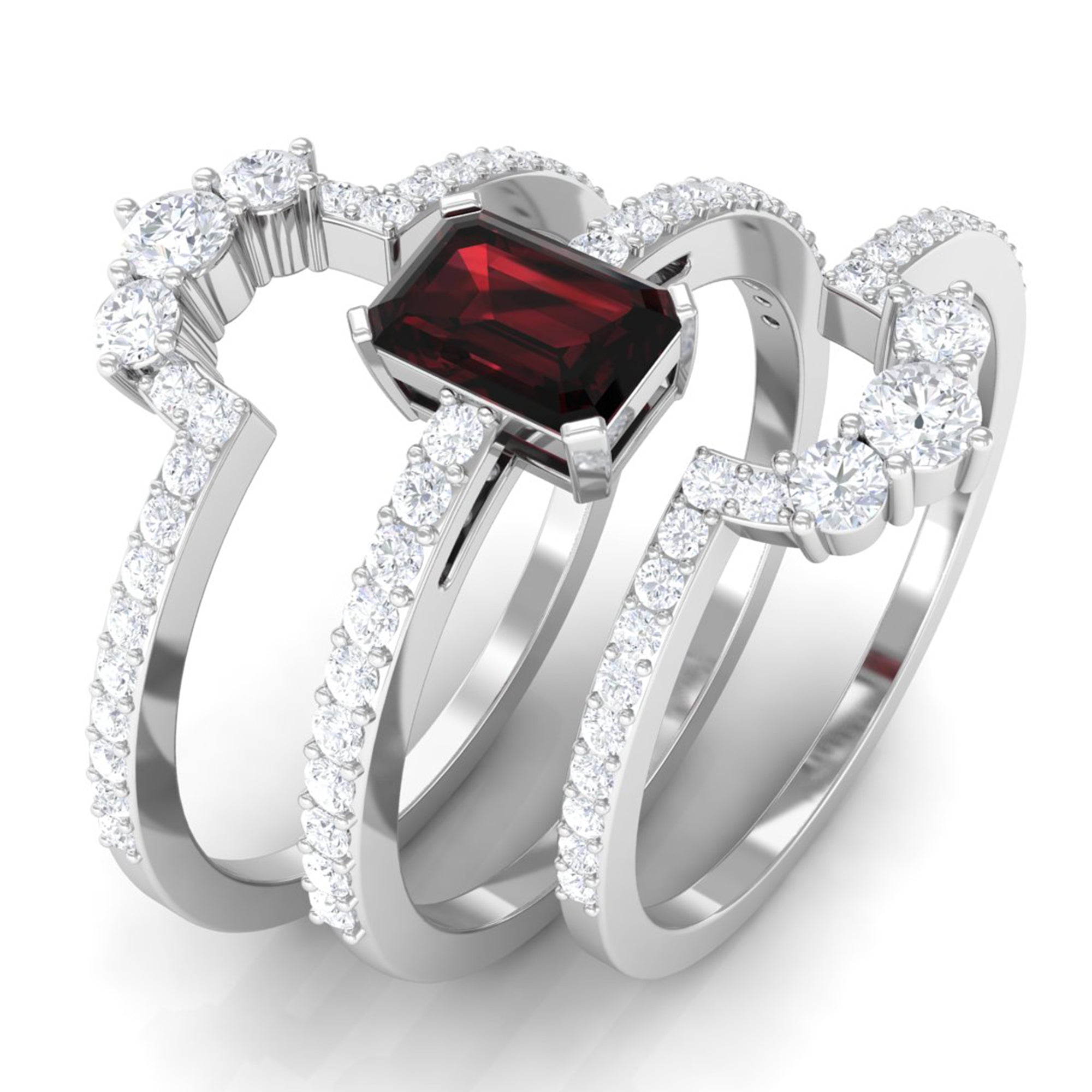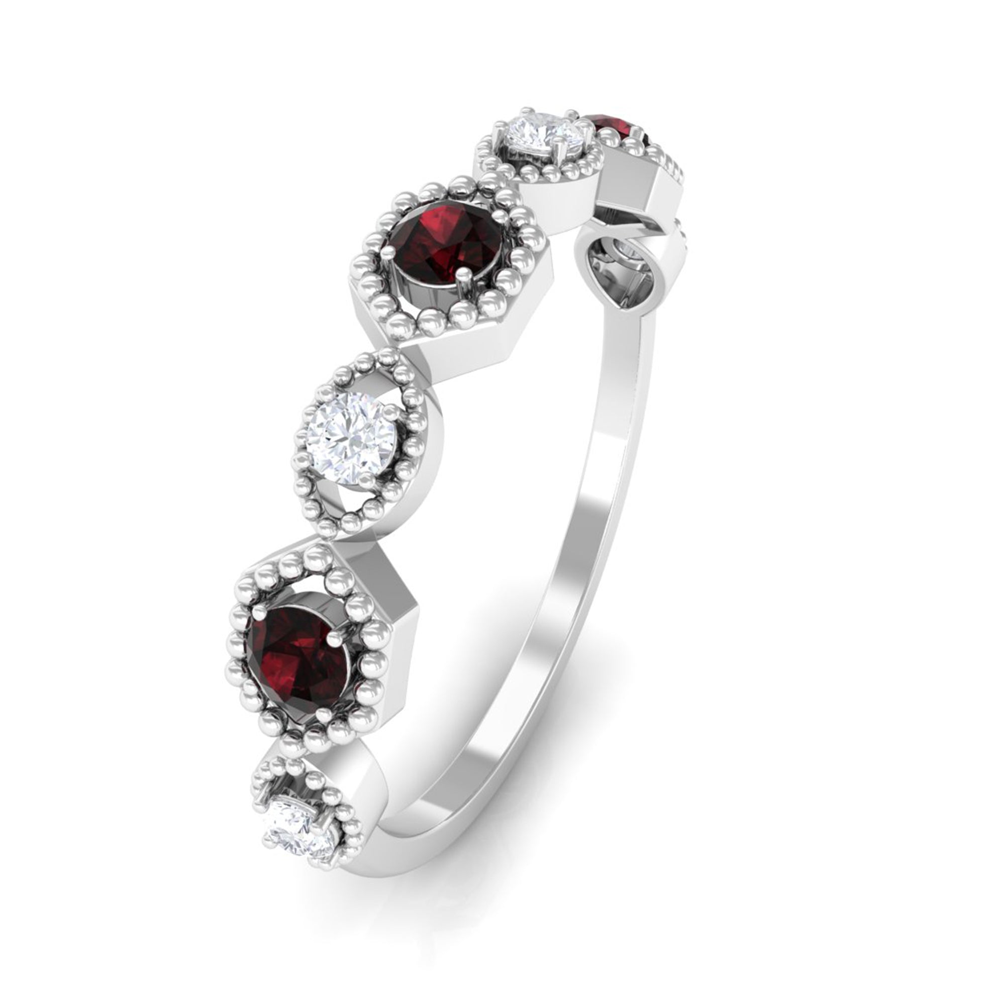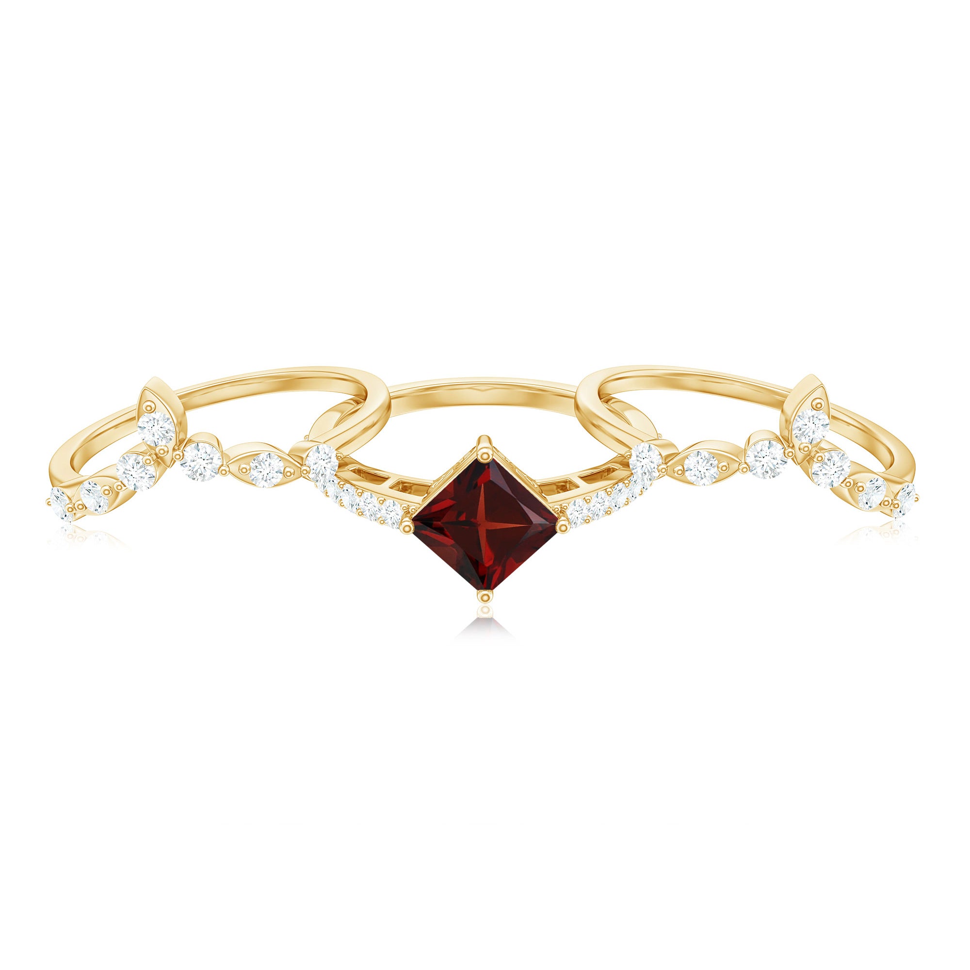 Garnet wedding rings from Rosec Jewels will leave your better half astound when the wedding ring slides down her finger, a moment that is going to sit in her memory forever. Featuring natural garnets, the member of silicate family of minerals and have loved for their wide spectrum of colors of almost all the shades. This great diversity in helps jewelers to employ red garnets while handcrafting garnet rings for women. Our artisans are as well after curating January birthstone rings for wedding that boast of fine and delicate designs.
