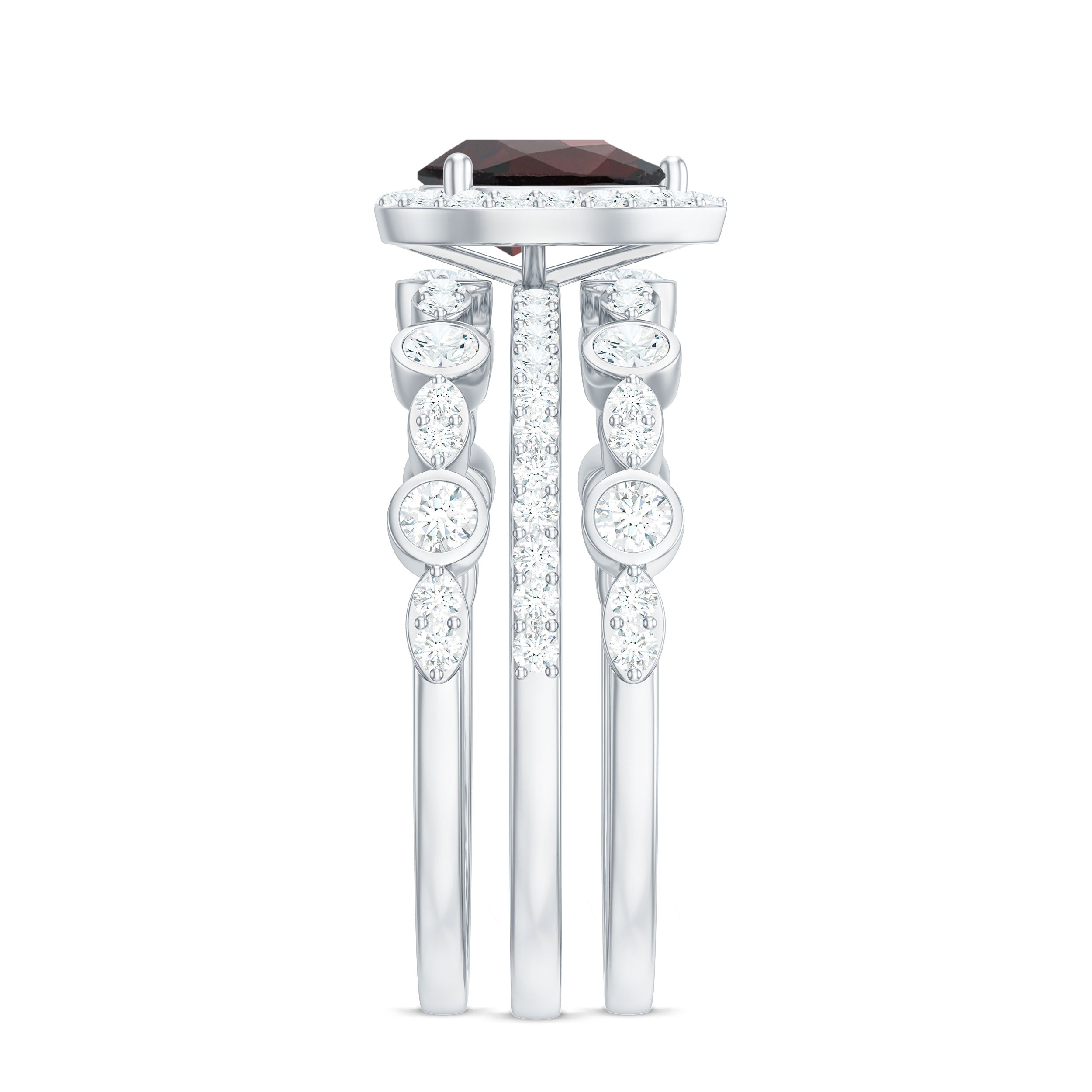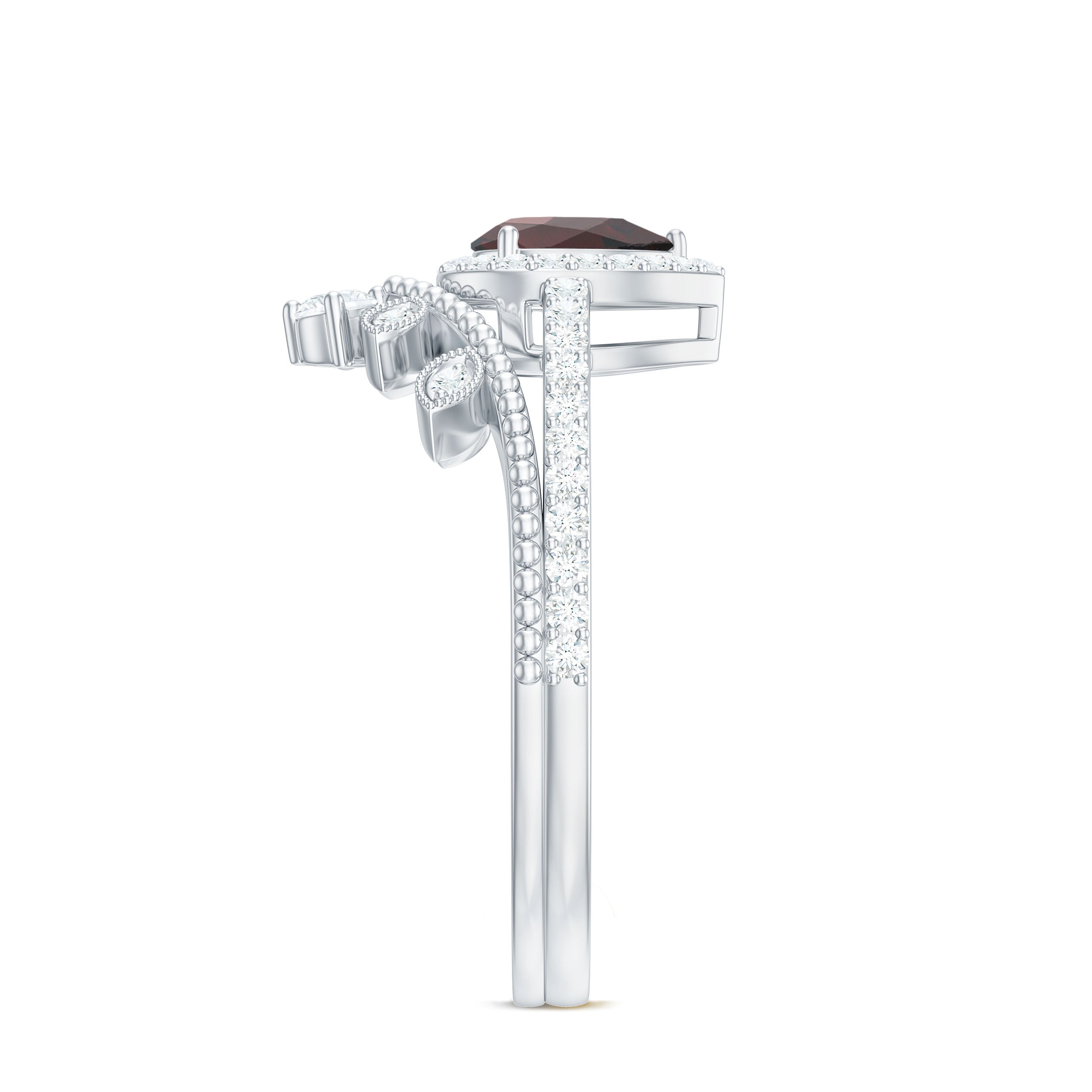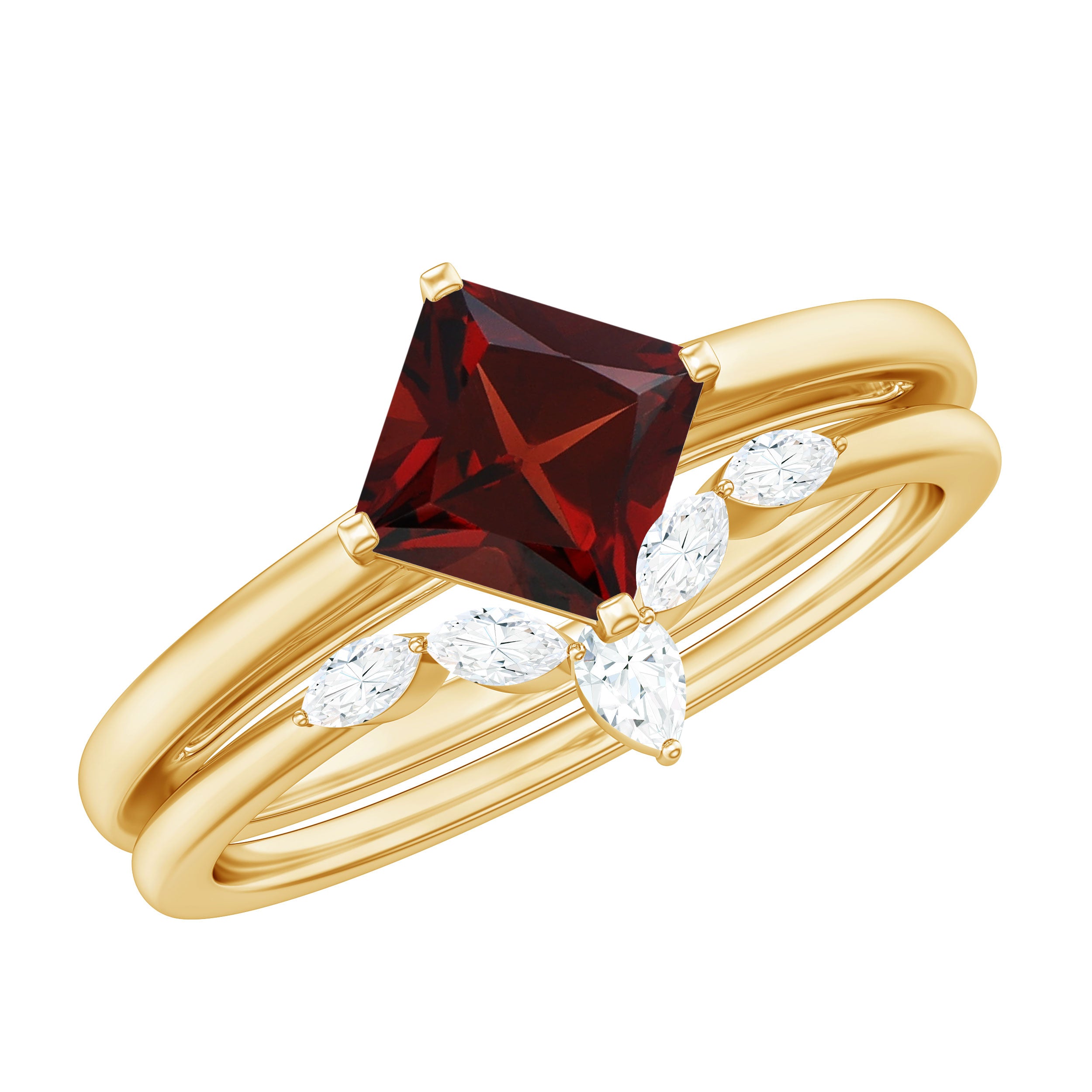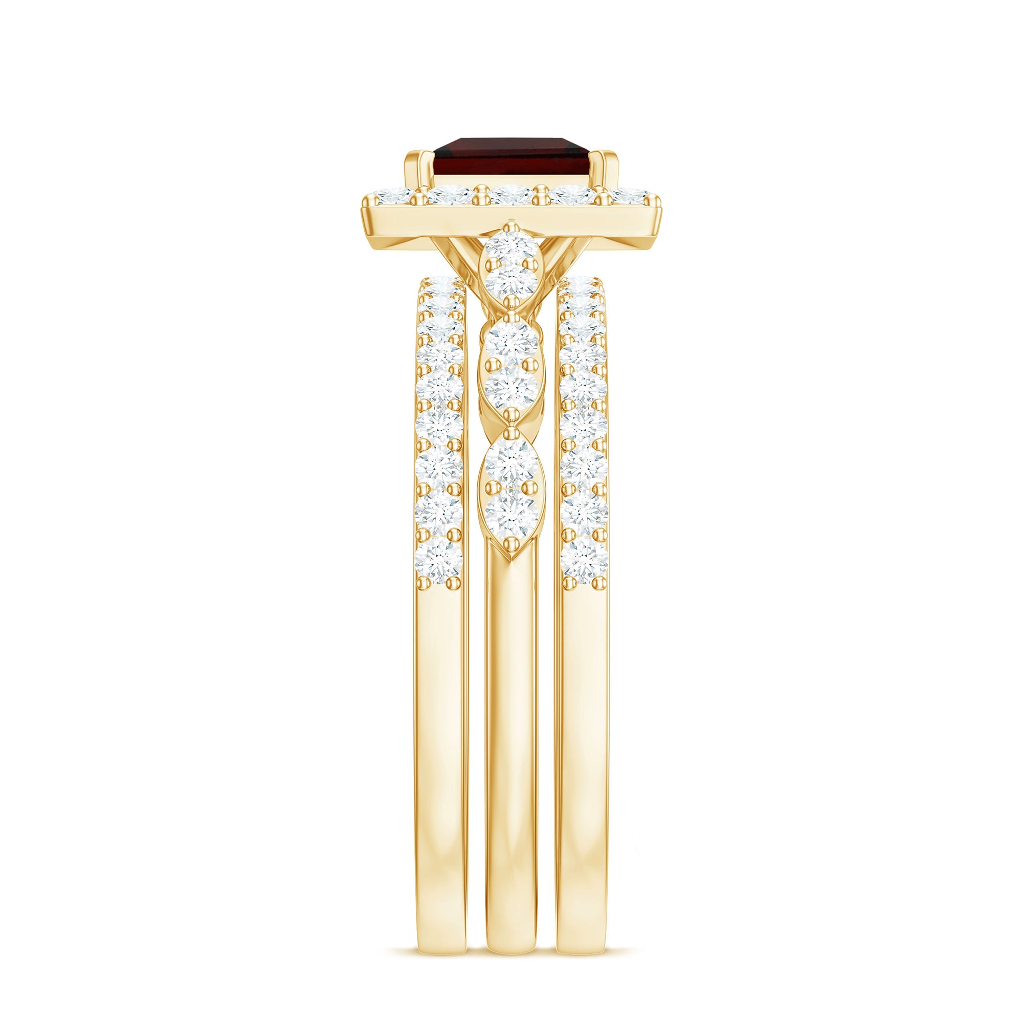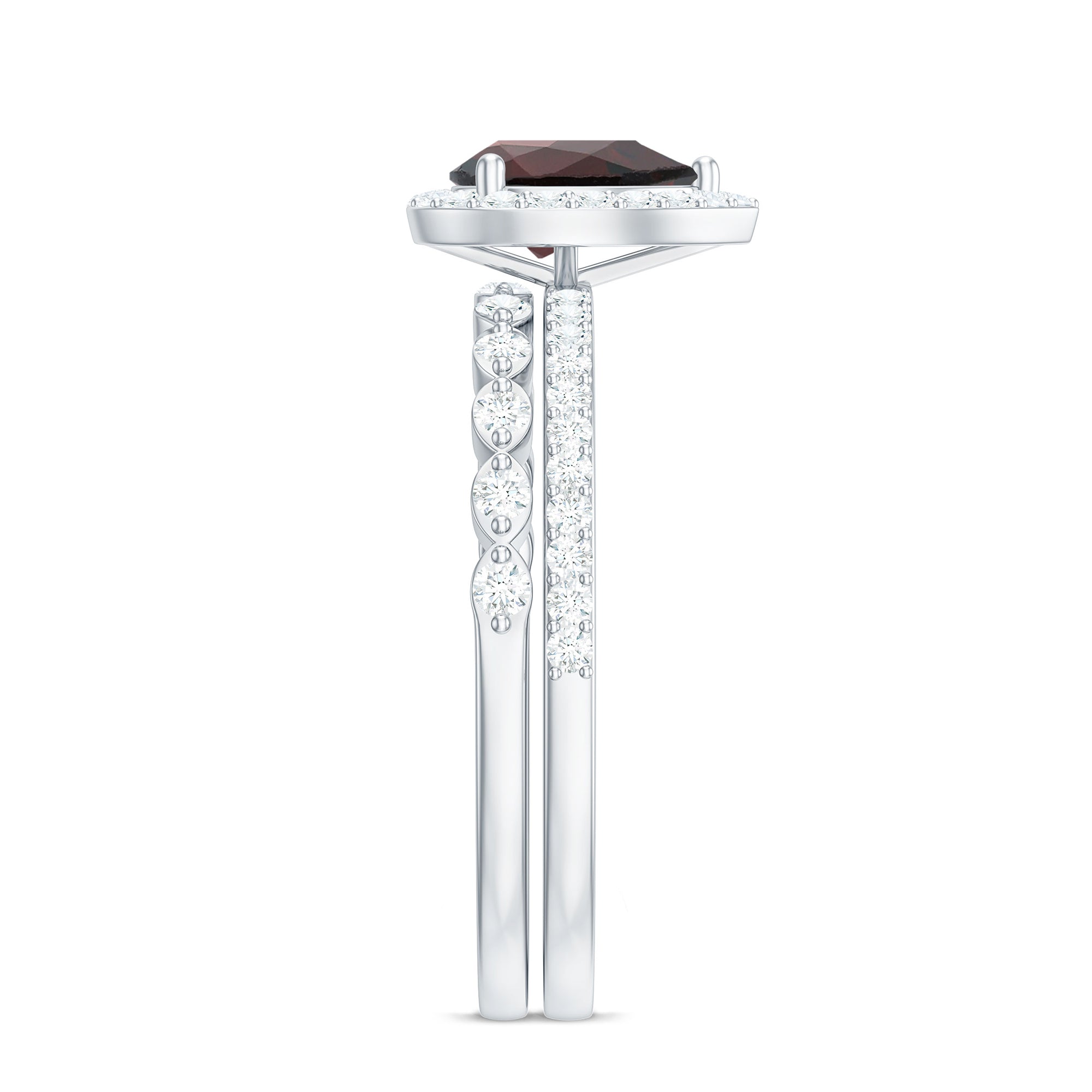 Garnet wedding rings from Rosec Jewels will leave your better half astound when the wedding ring slides down her finger, a moment that is going to sit in her memory forever. Featuring natural garnets, the member of silicate family of minerals and have loved for their wide spectrum of colors of almost all the shades. This great diversity in helps jewelers to employ red garnets while handcrafting garnet rings for women. Our artisans are as well after curating January birthstone rings for wedding that boast of fine and delicate designs.