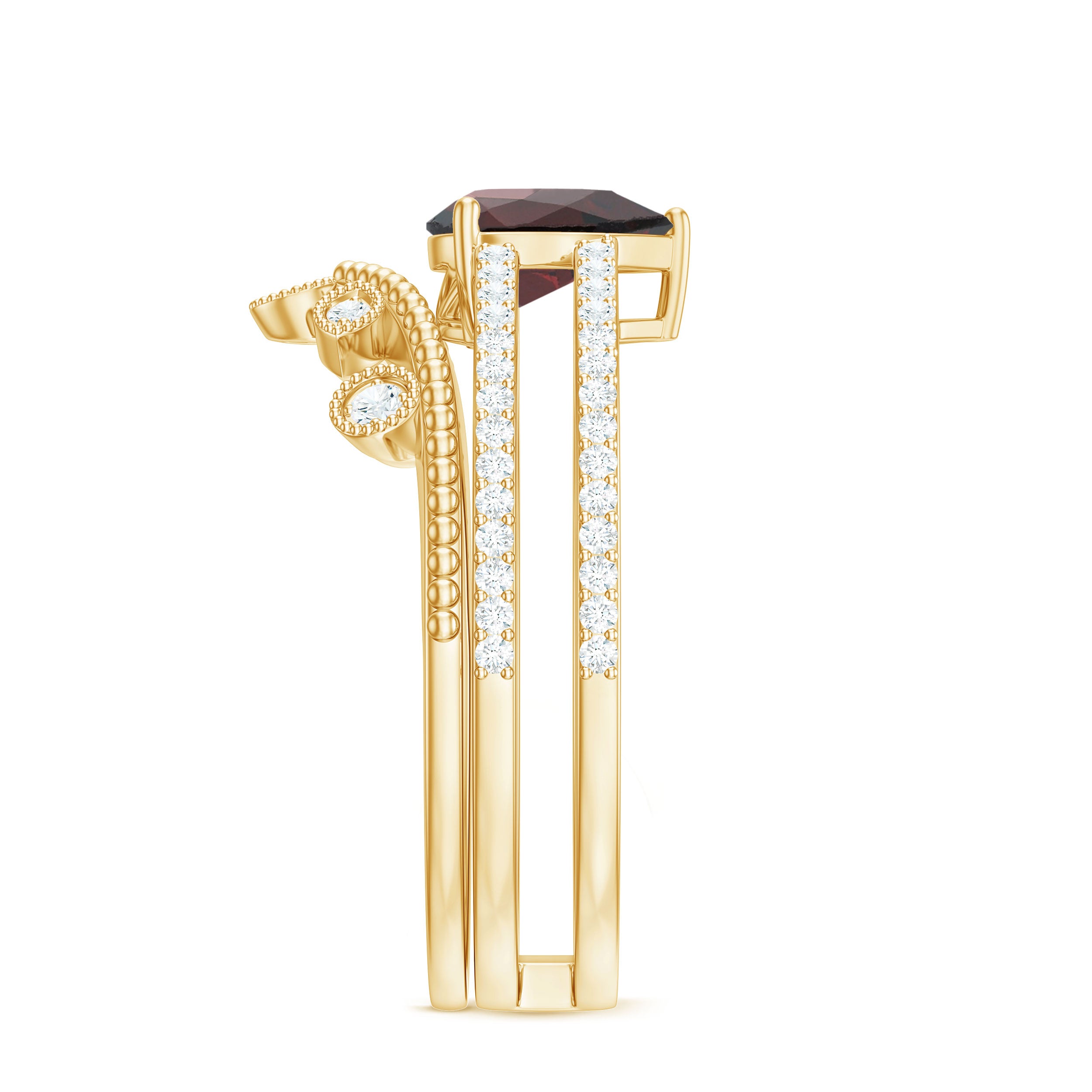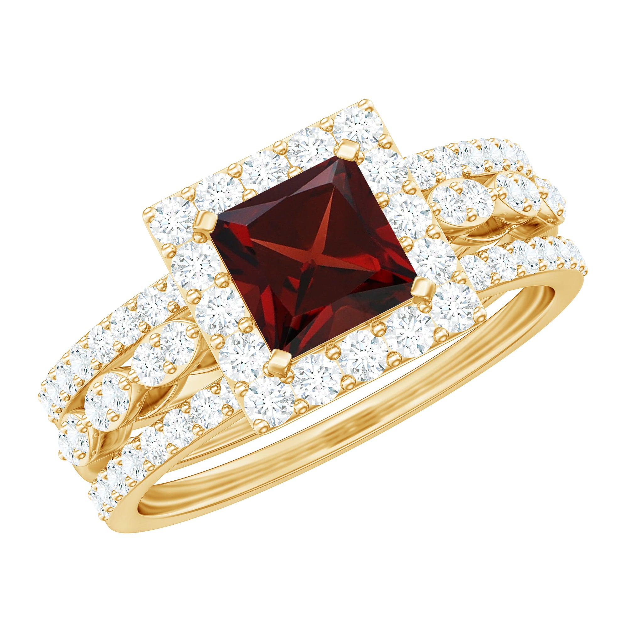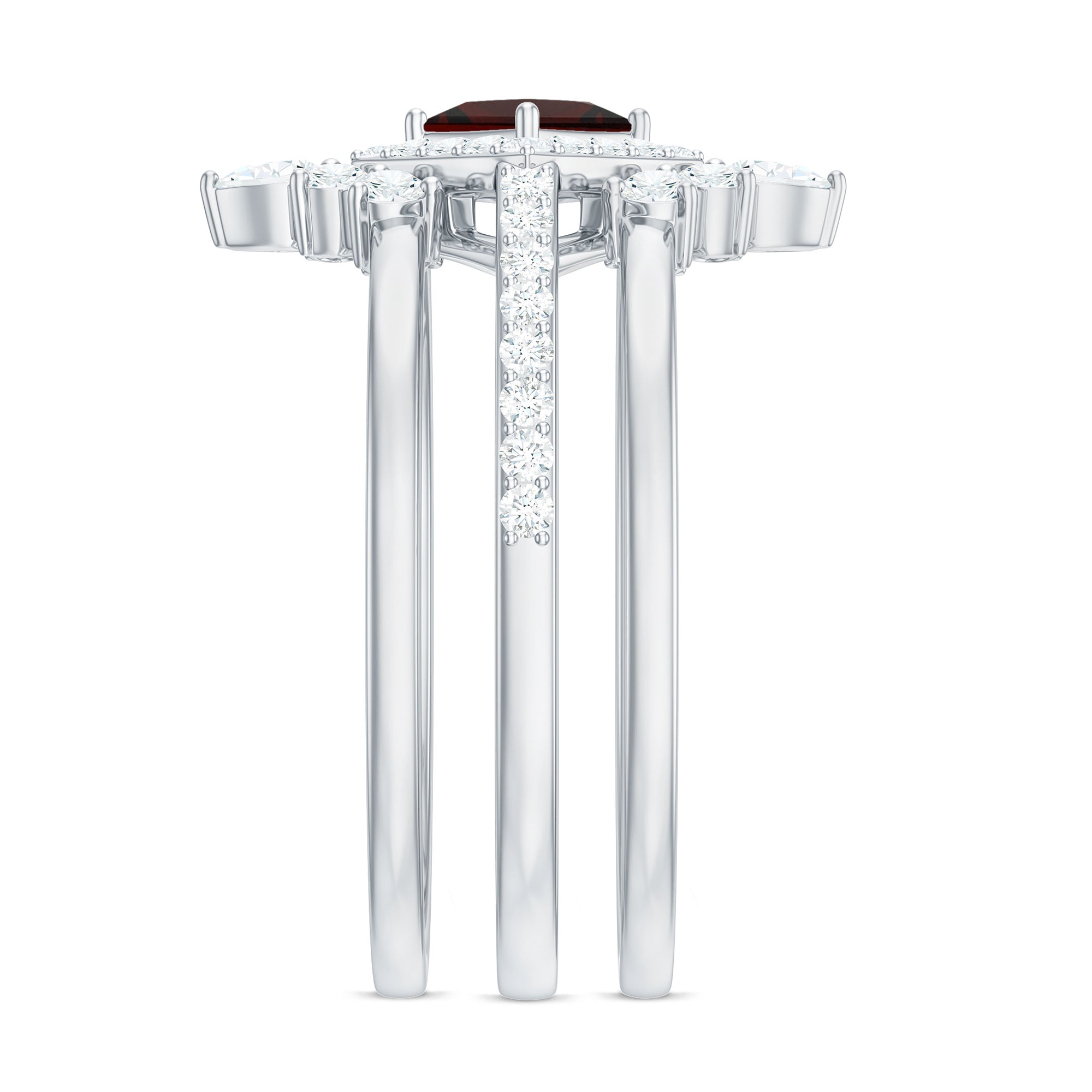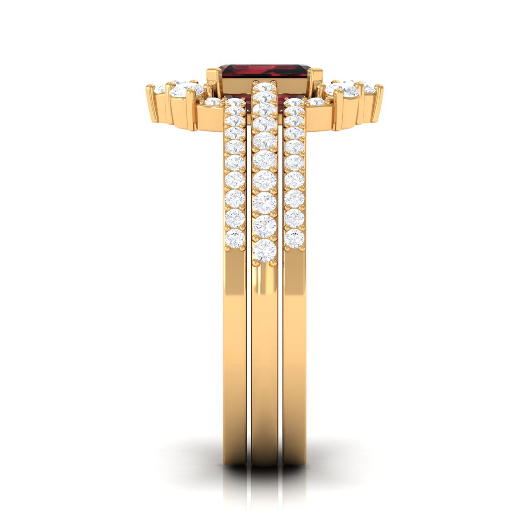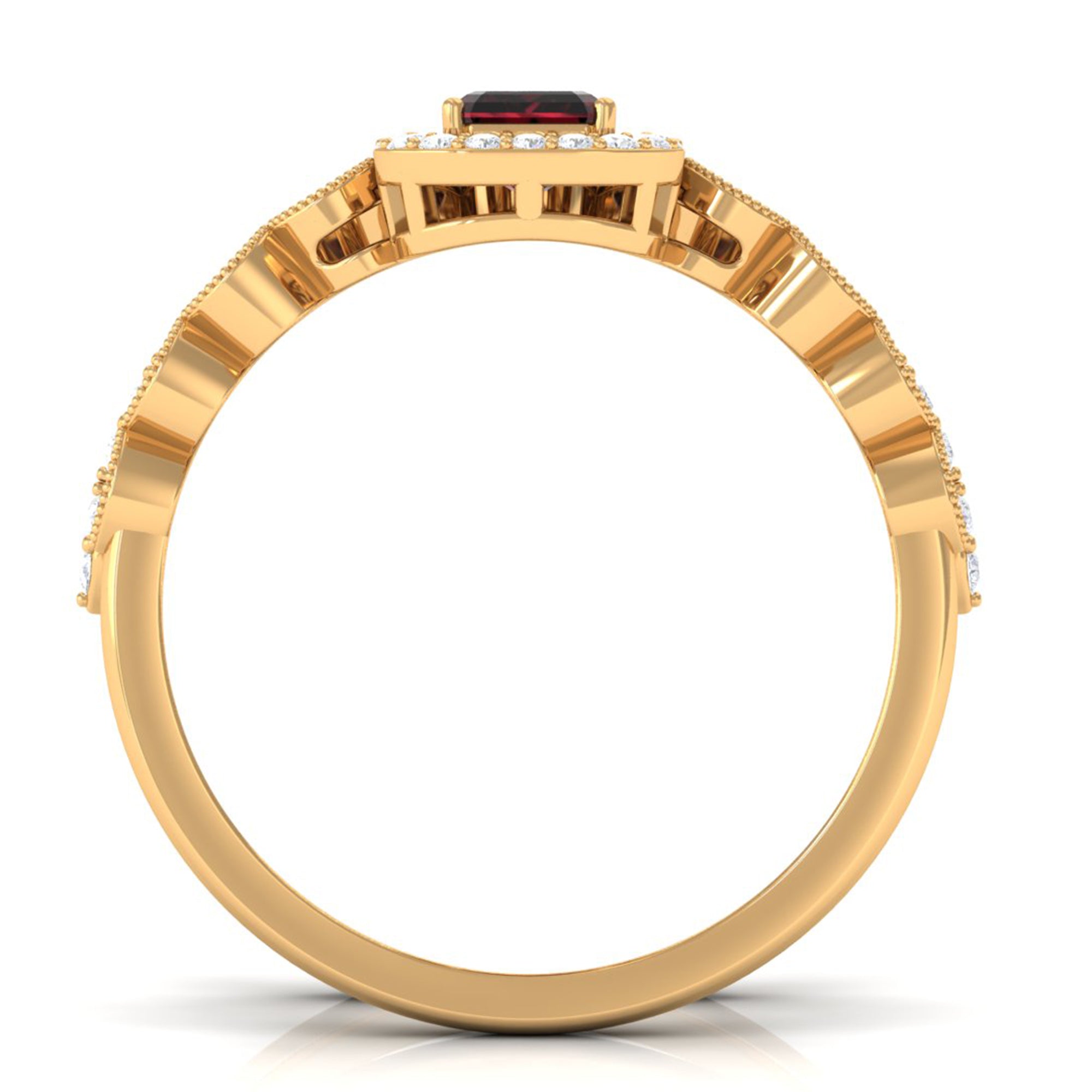 Garnet wedding rings from Rosec Jewels will leave your better half astound when the wedding ring slides down her finger, a moment that is going to sit in her memory forever. Featuring natural garnets, the member of silicate family of minerals and have loved for their wide spectrum of colors of almost all the shades. This great diversity in helps jewelers to employ red garnets while handcrafting garnet rings for women. Our artisans are as well after curating January birthstone rings for wedding that boast of fine and delicate designs.