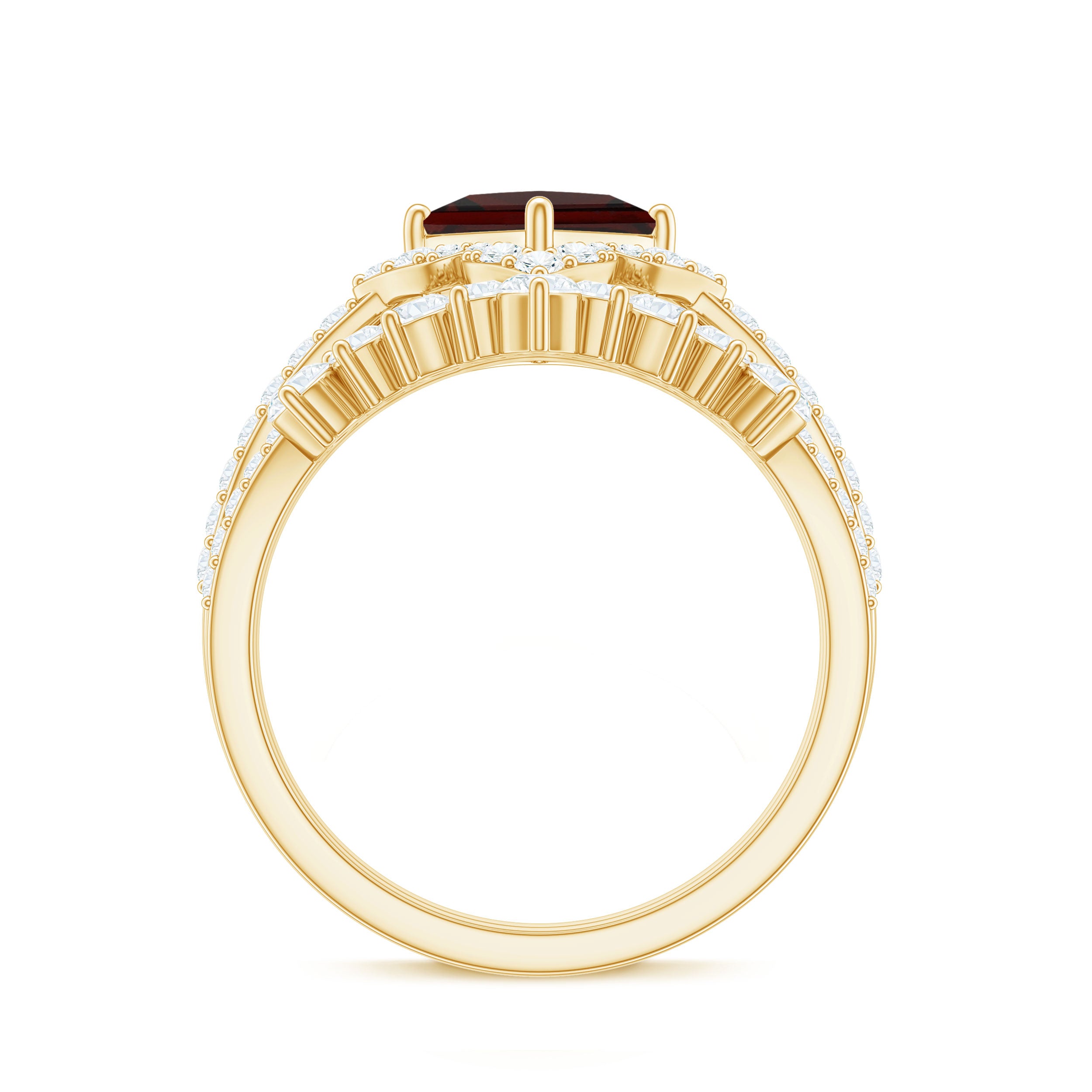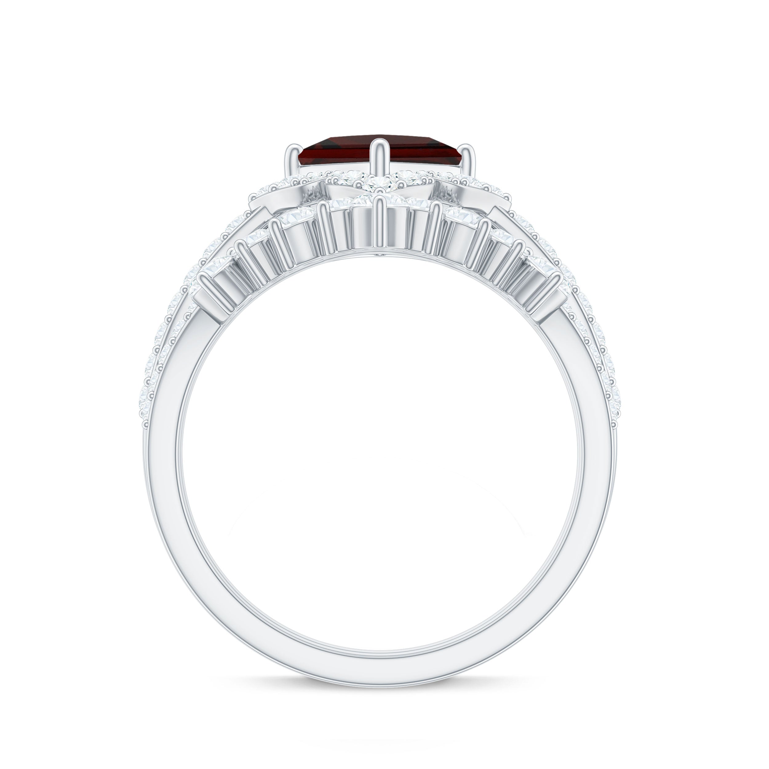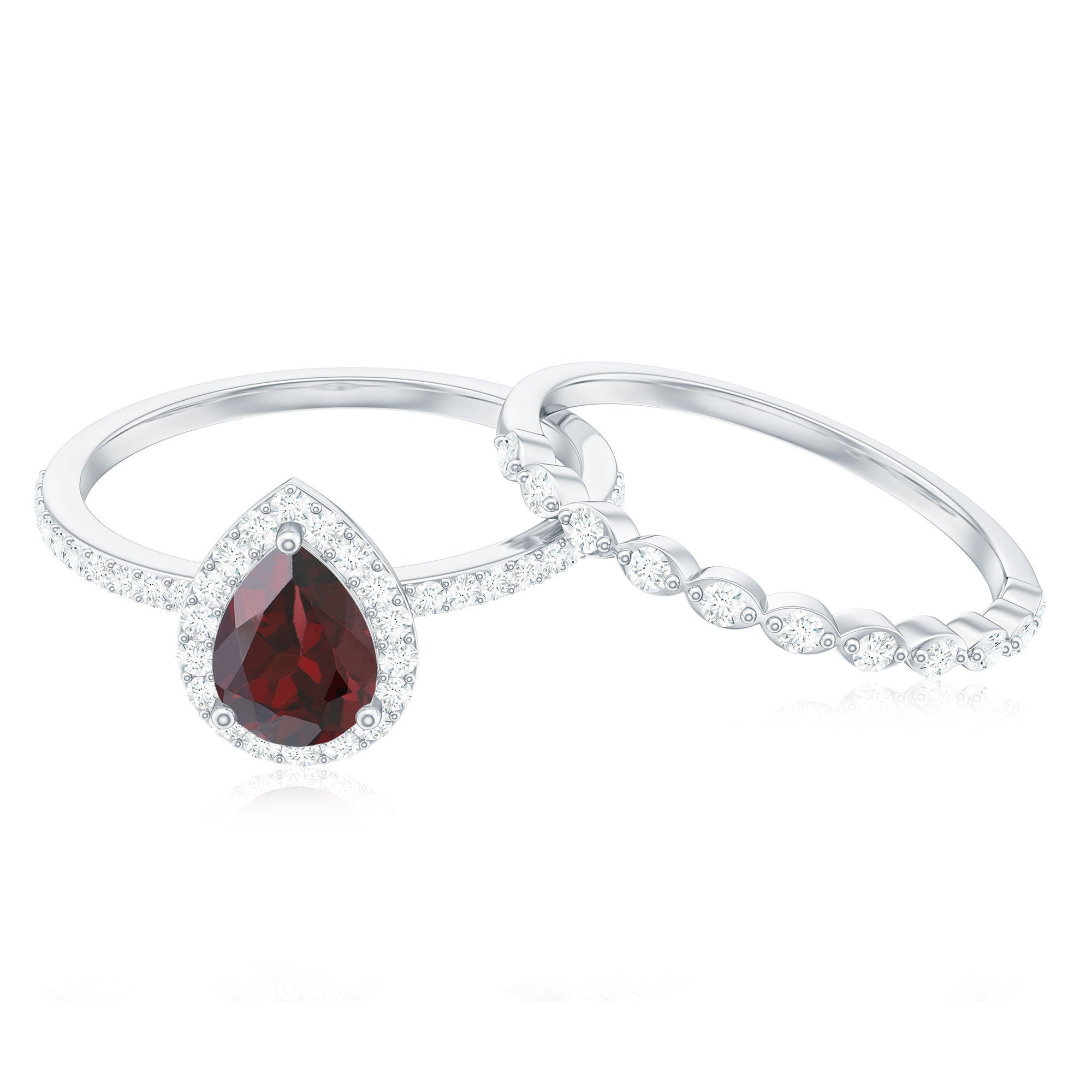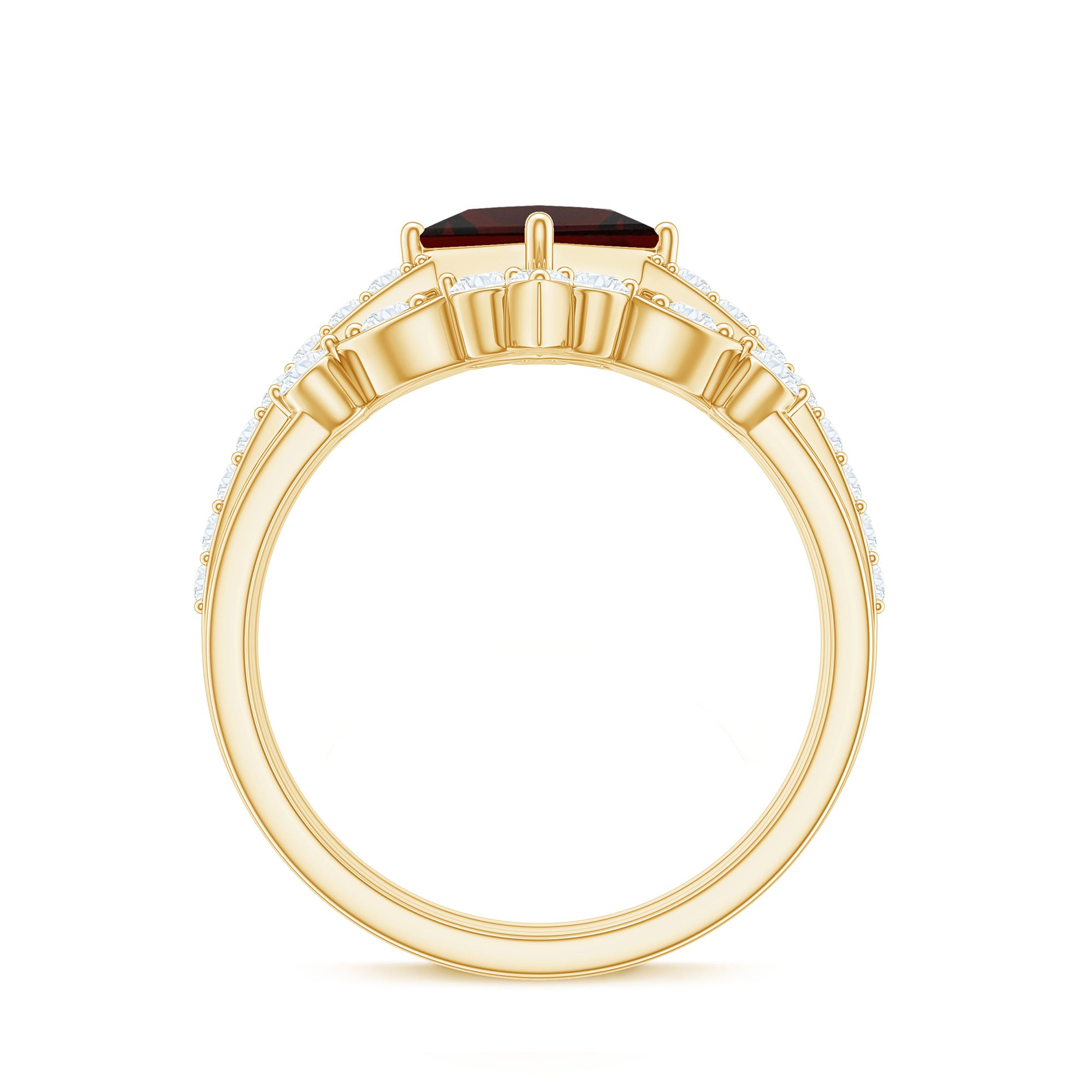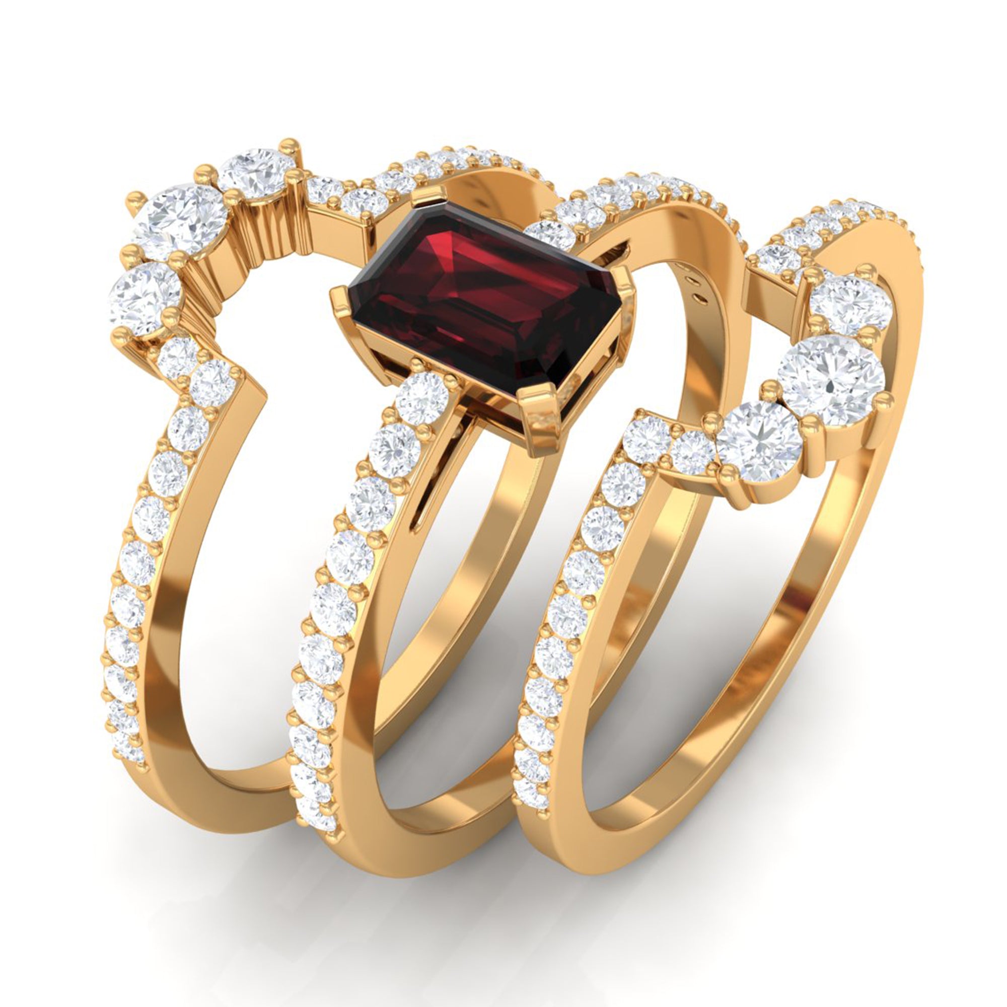 Garnet wedding rings from Rosec Jewels will leave your better half astound when the wedding ring slides down her finger, a moment that is going to sit in her memory forever. Featuring natural garnets, the member of silicate family of minerals and have loved for their wide spectrum of colors of almost all the shades. This great diversity in helps jewelers to employ red garnets while handcrafting garnet rings for women. Our artisans are as well after curating January birthstone rings for wedding that boast of fine and delicate designs.
