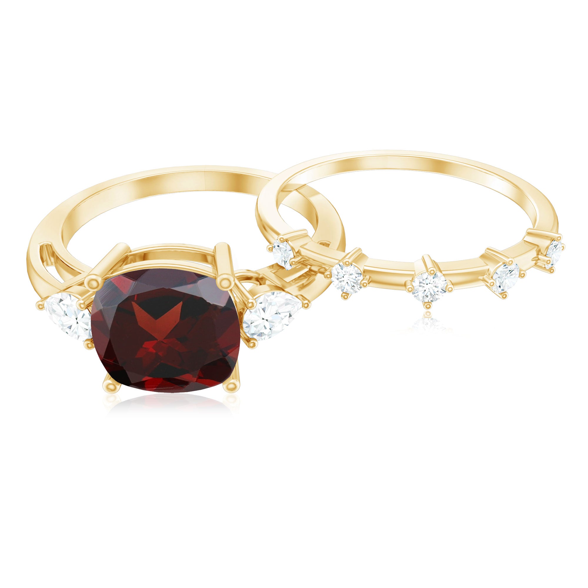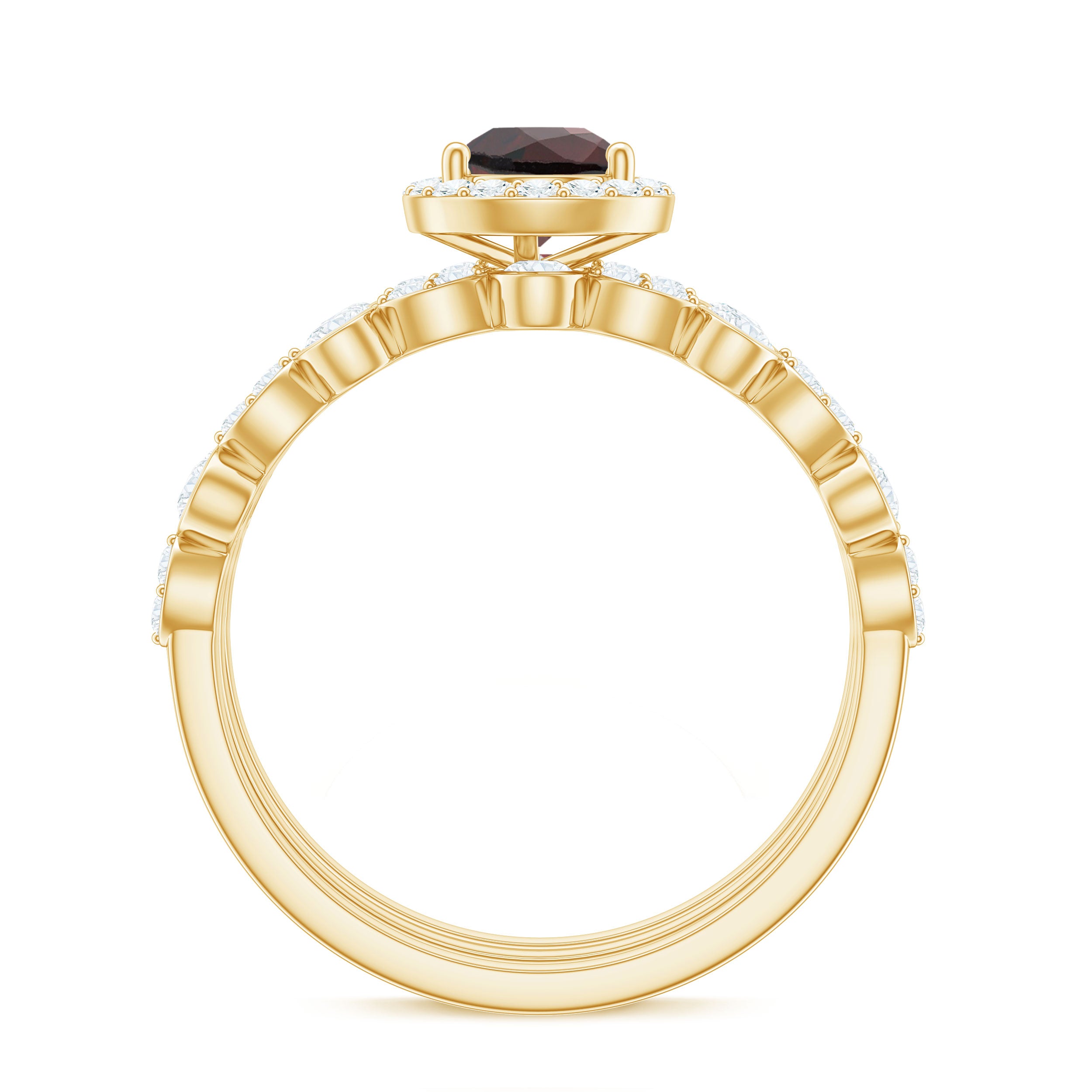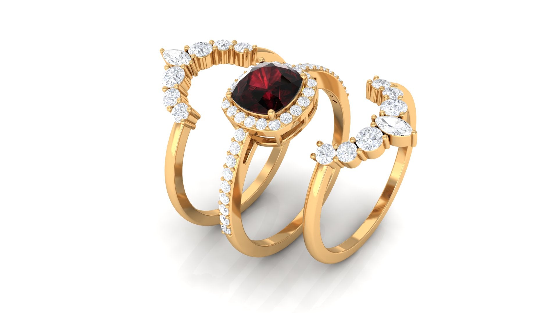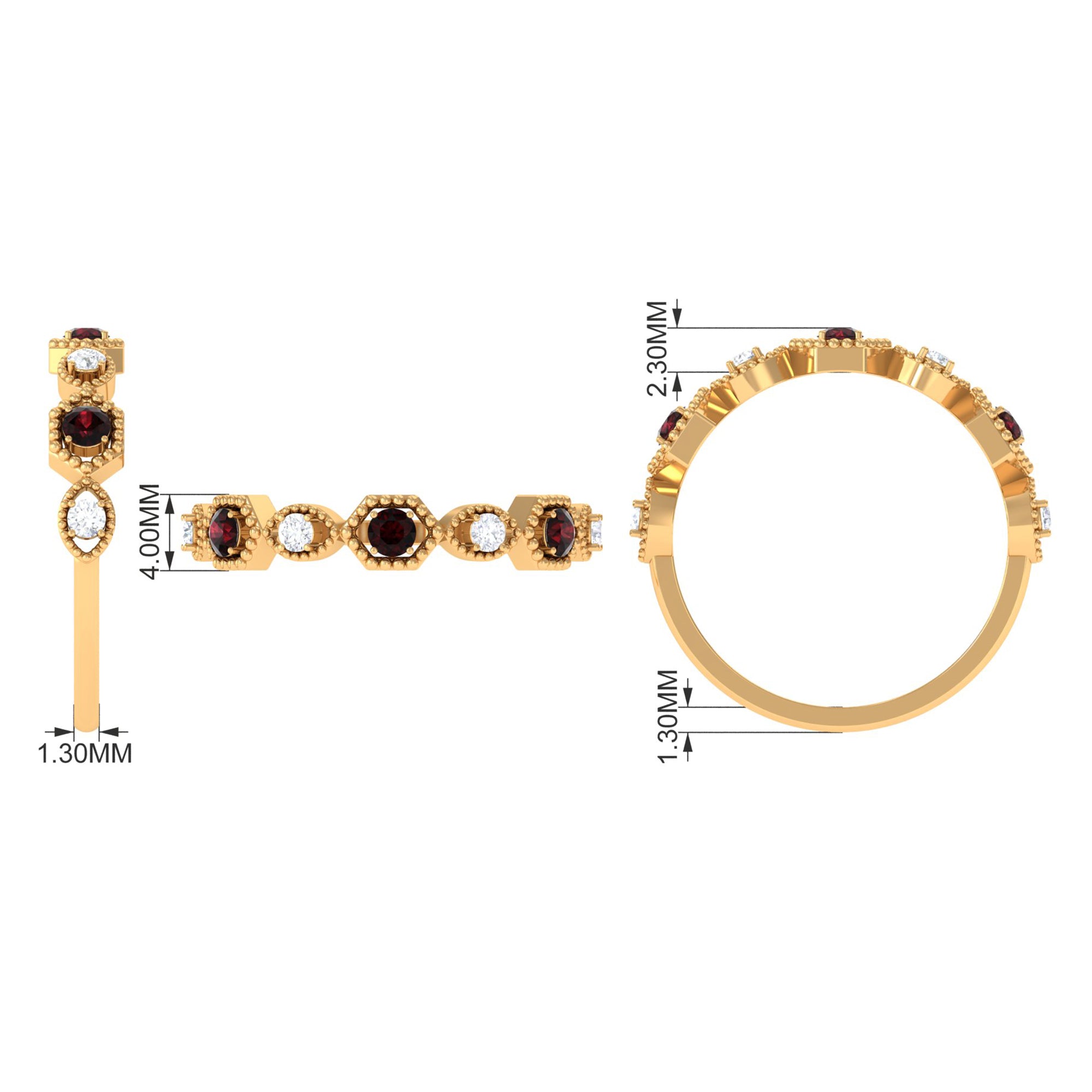 Fantastic garnet wedding band styles are curated by combining different garnet shapes ranging from round, oval, pear, marquise, cushion and many more. The garnet rings can also be selected on the basis of ring styles, most popular being the garnet eternity band for women with a knack for latest stylish trends in fashion. Metal embellishments in different adorable colors of gold namely, yellow gold, white gold and rose gold will leave the jewelry enthusiasts with plethora of engagement rings and wedding bands to choose from.