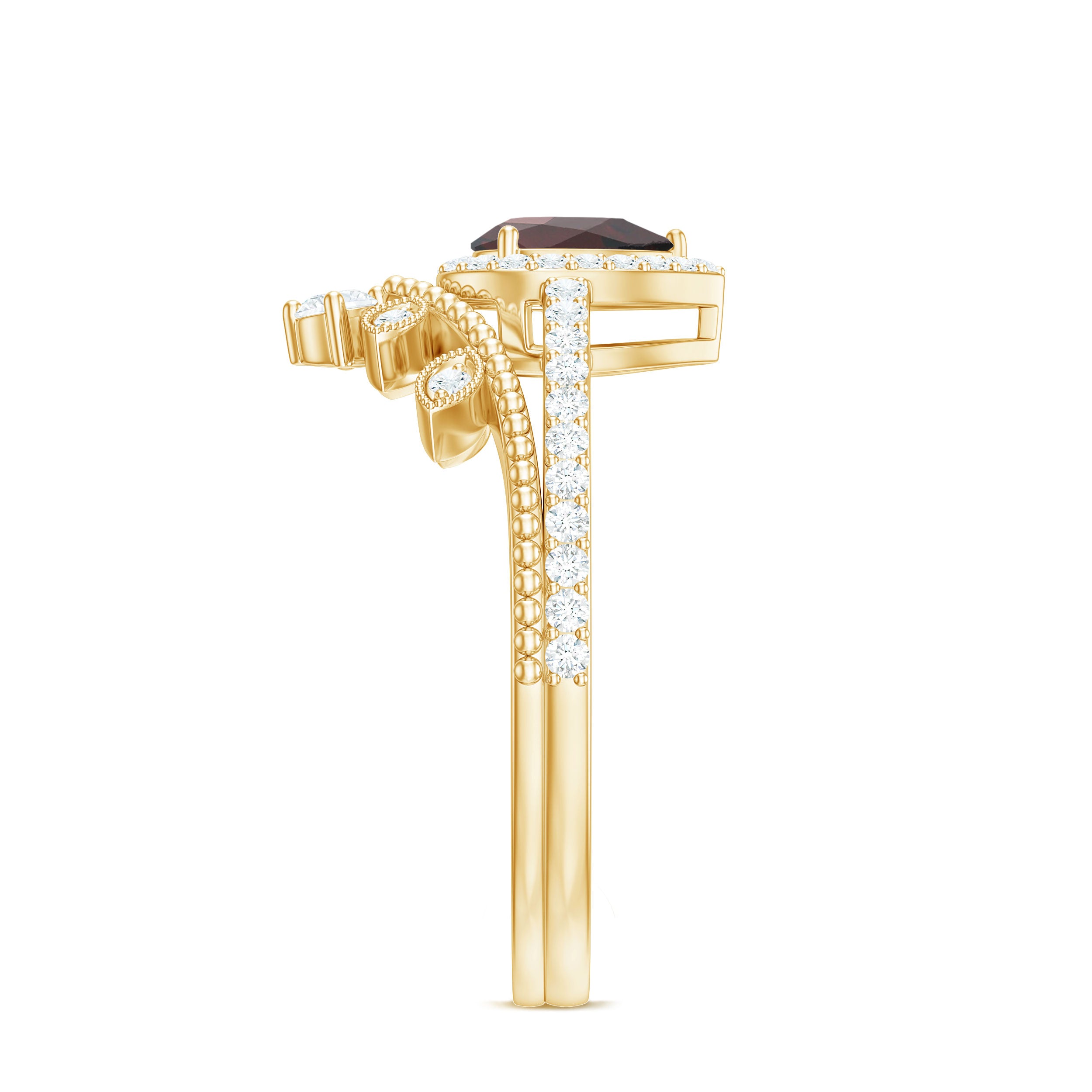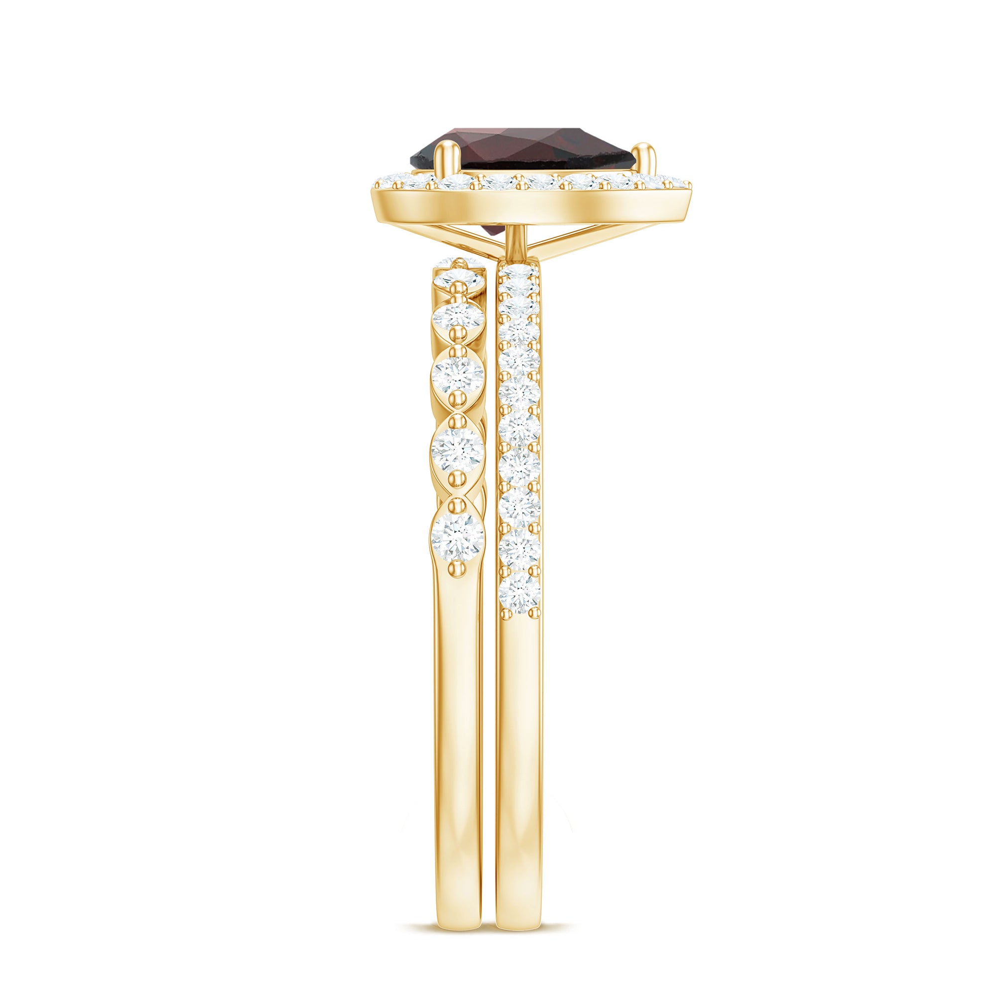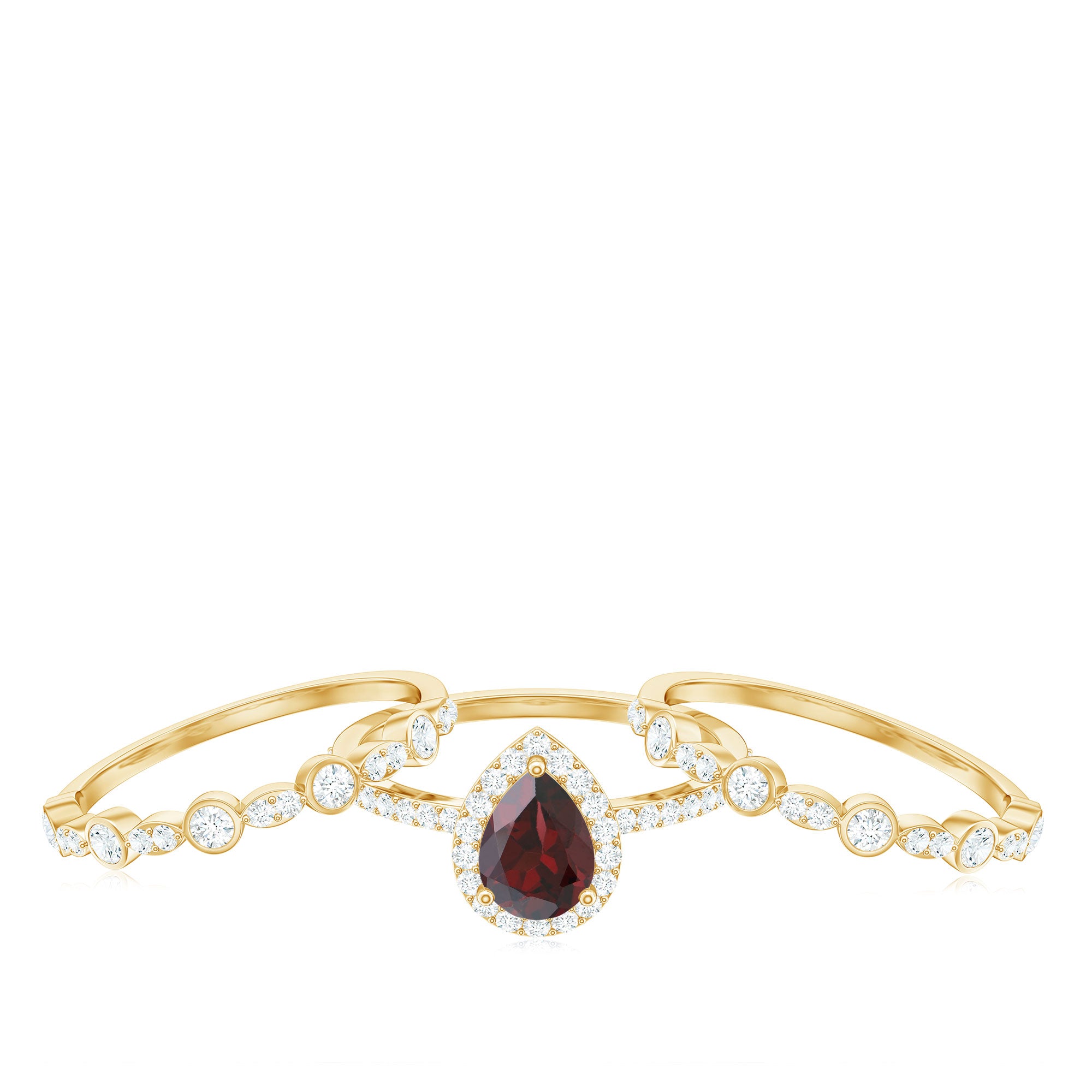Fantastic garnet wedding band styles are curated by combining different garnet shapes ranging from round, oval, pear, marquise, cushion and many more. The garnet rings can also be selected on the basis of ring styles, most popular being the garnet eternity band for women with a knack for latest stylish trends in fashion. Metal embellishments in different adorable colors of gold namely, yellow gold, white gold and rose gold will leave the jewelry enthusiasts with plethora of engagement rings and wedding bands to choose from.