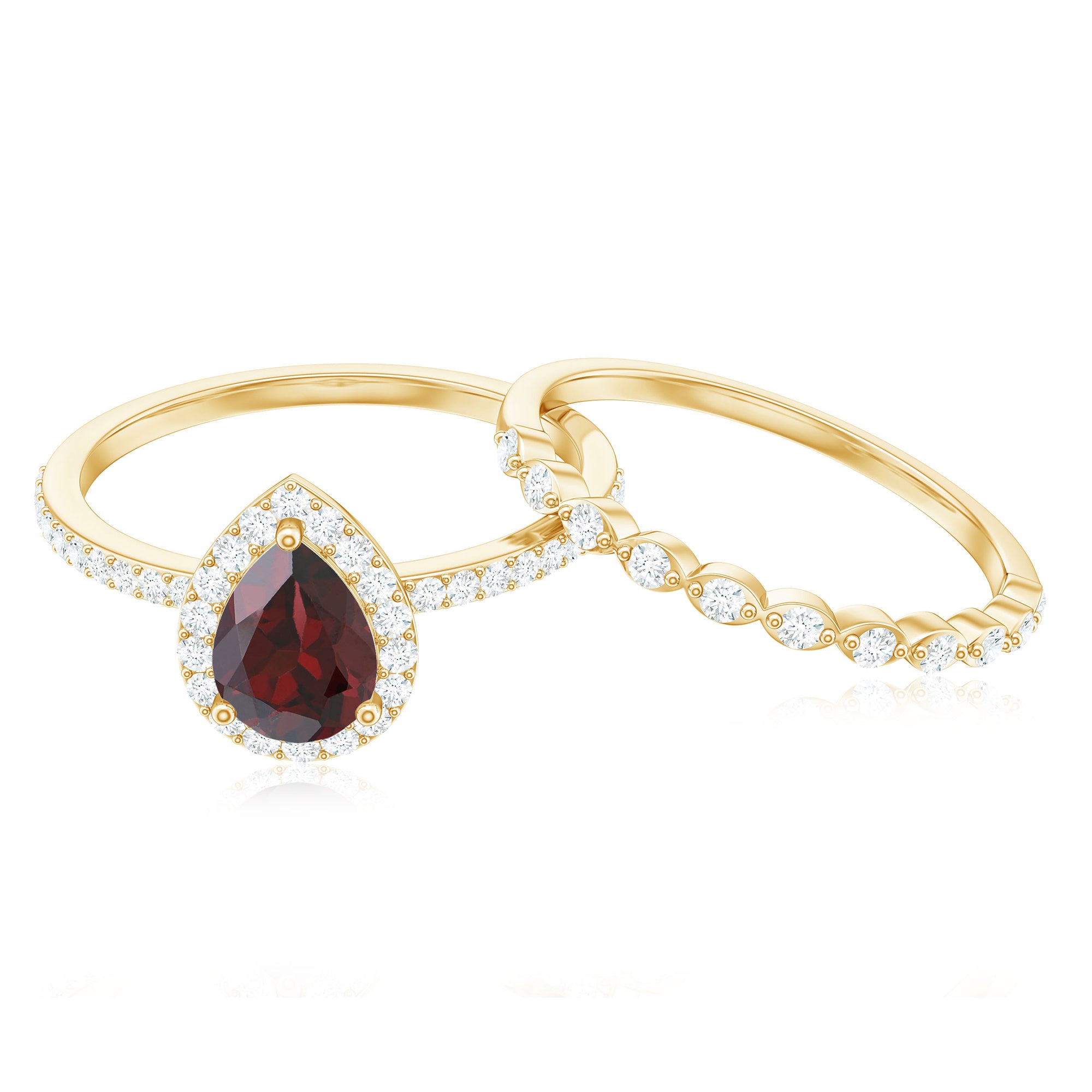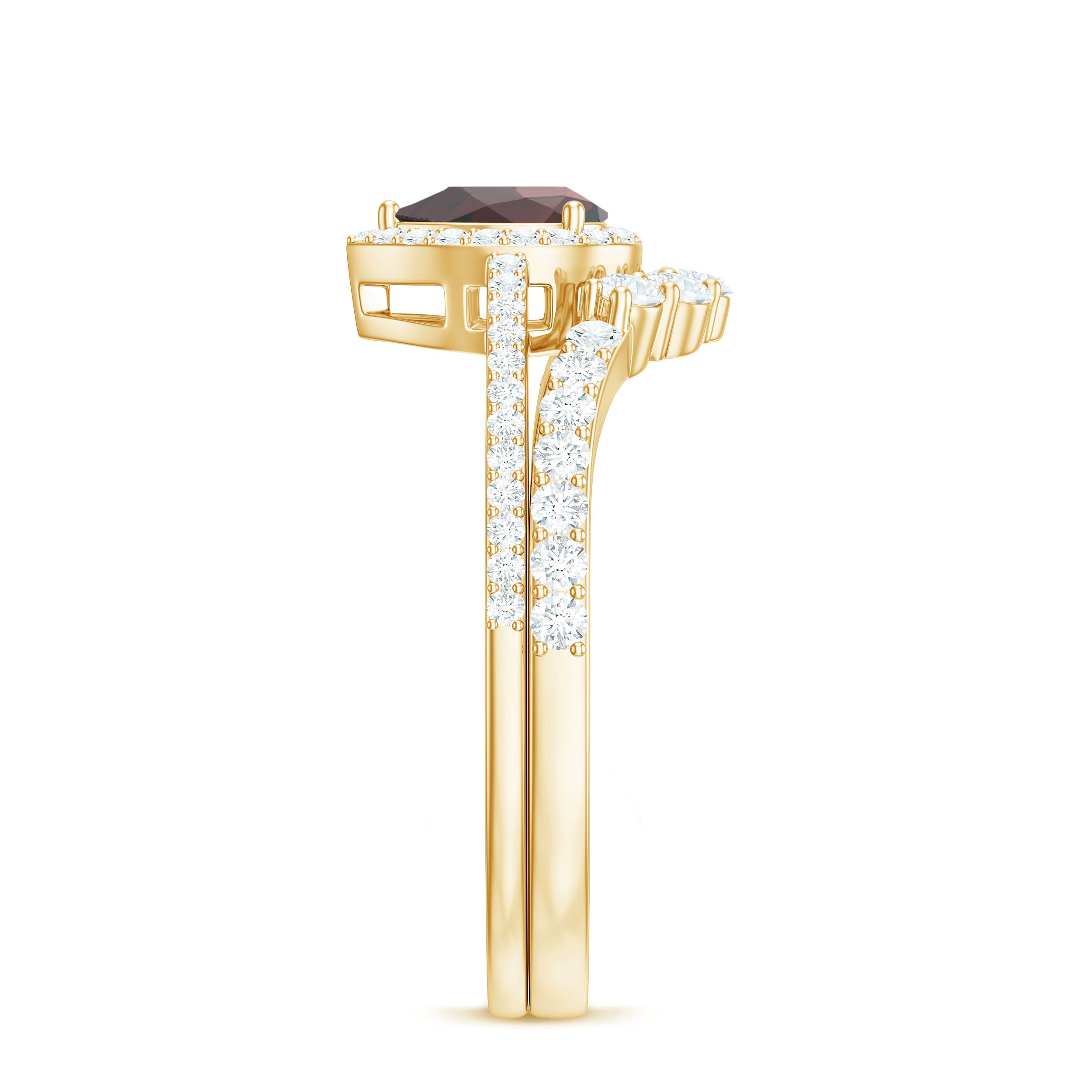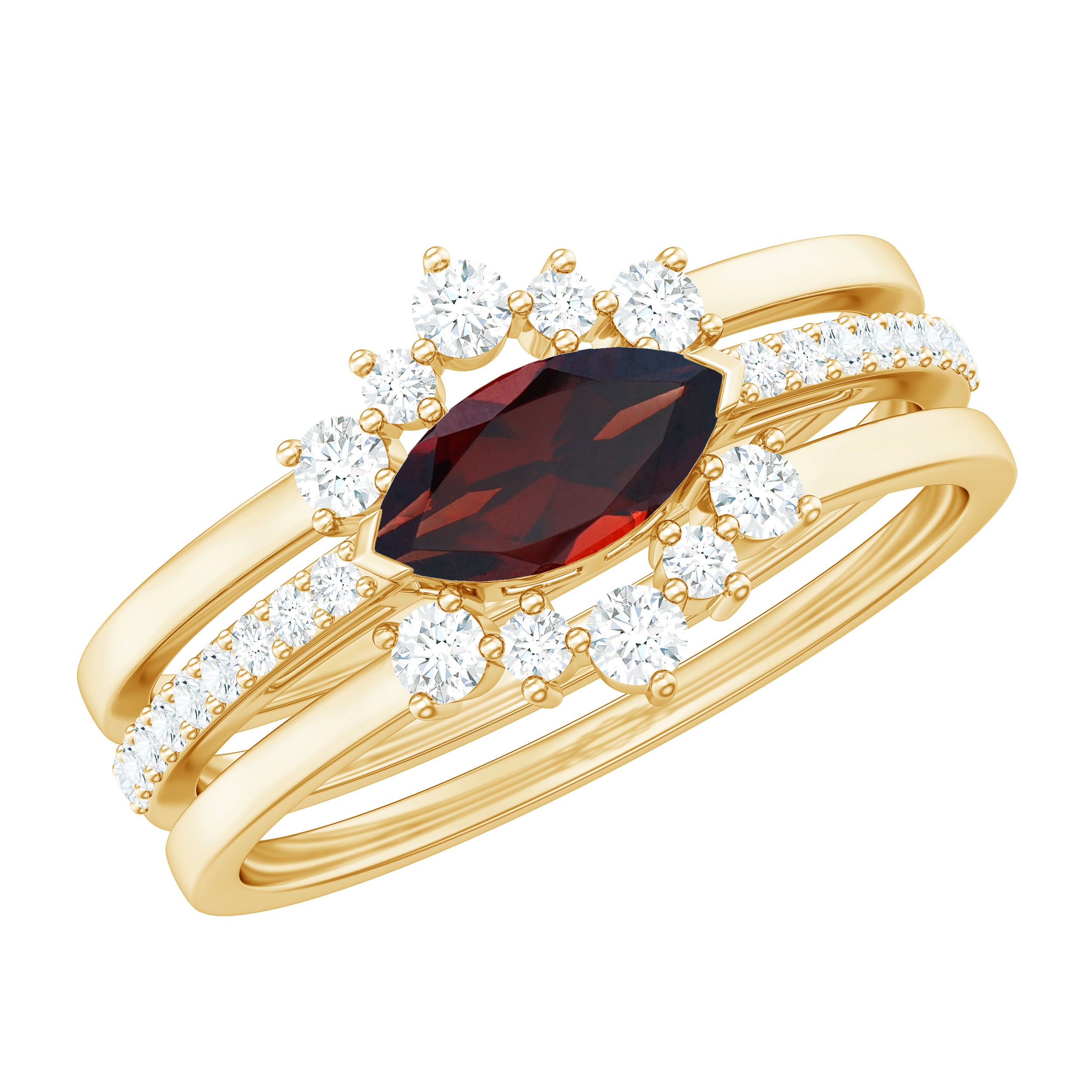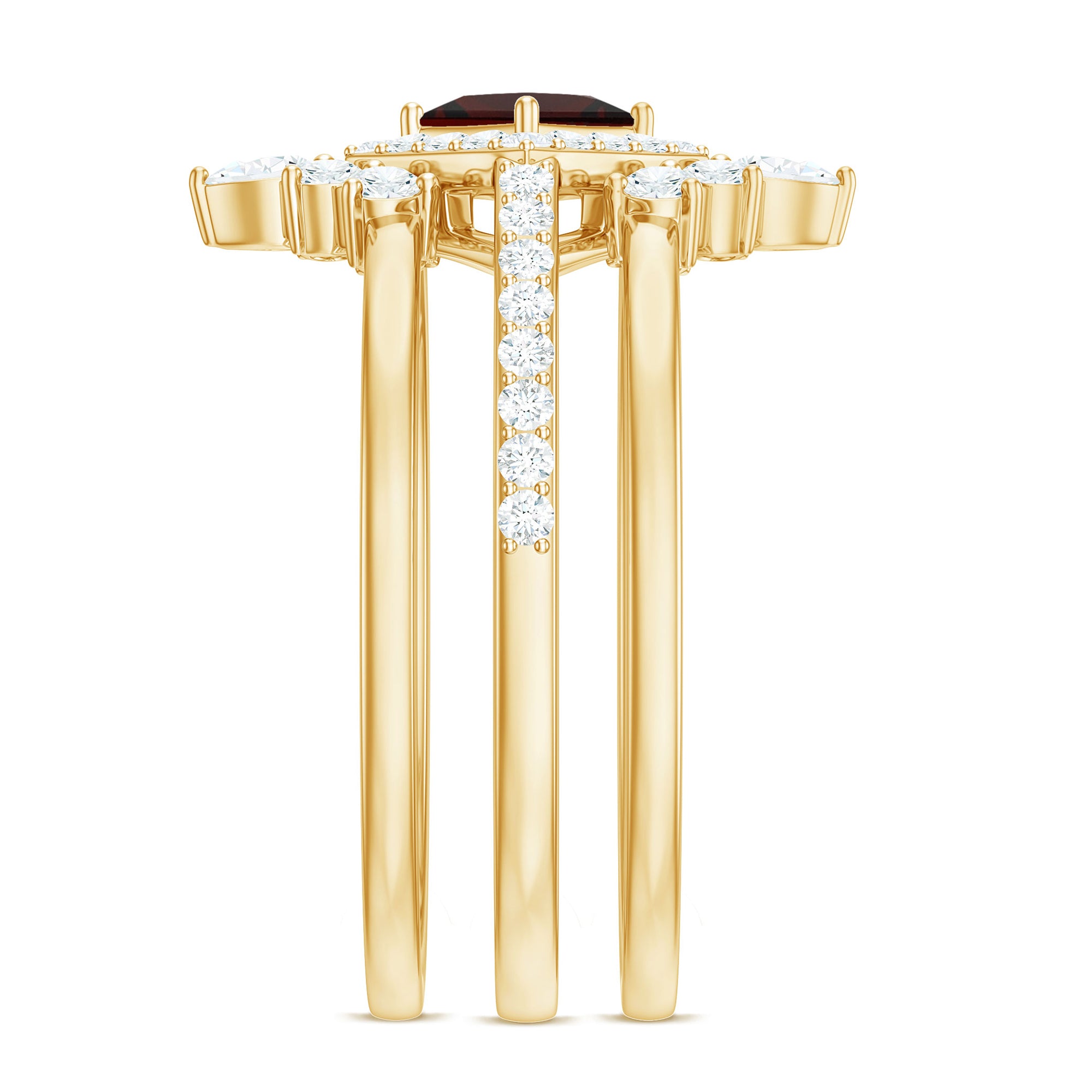 Fantastic garnet wedding band styles are curated by combining different garnet shapes ranging from round, oval, pear, marquise, cushion and many more. The garnet rings can also be selected on the basis of ring styles, most popular being the garnet eternity band for women with a knack for latest stylish trends in fashion. Metal embellishments in different adorable colors of gold namely, yellow gold, white gold and rose gold will leave the jewelry enthusiasts with plethora of engagement rings and wedding bands to choose from.