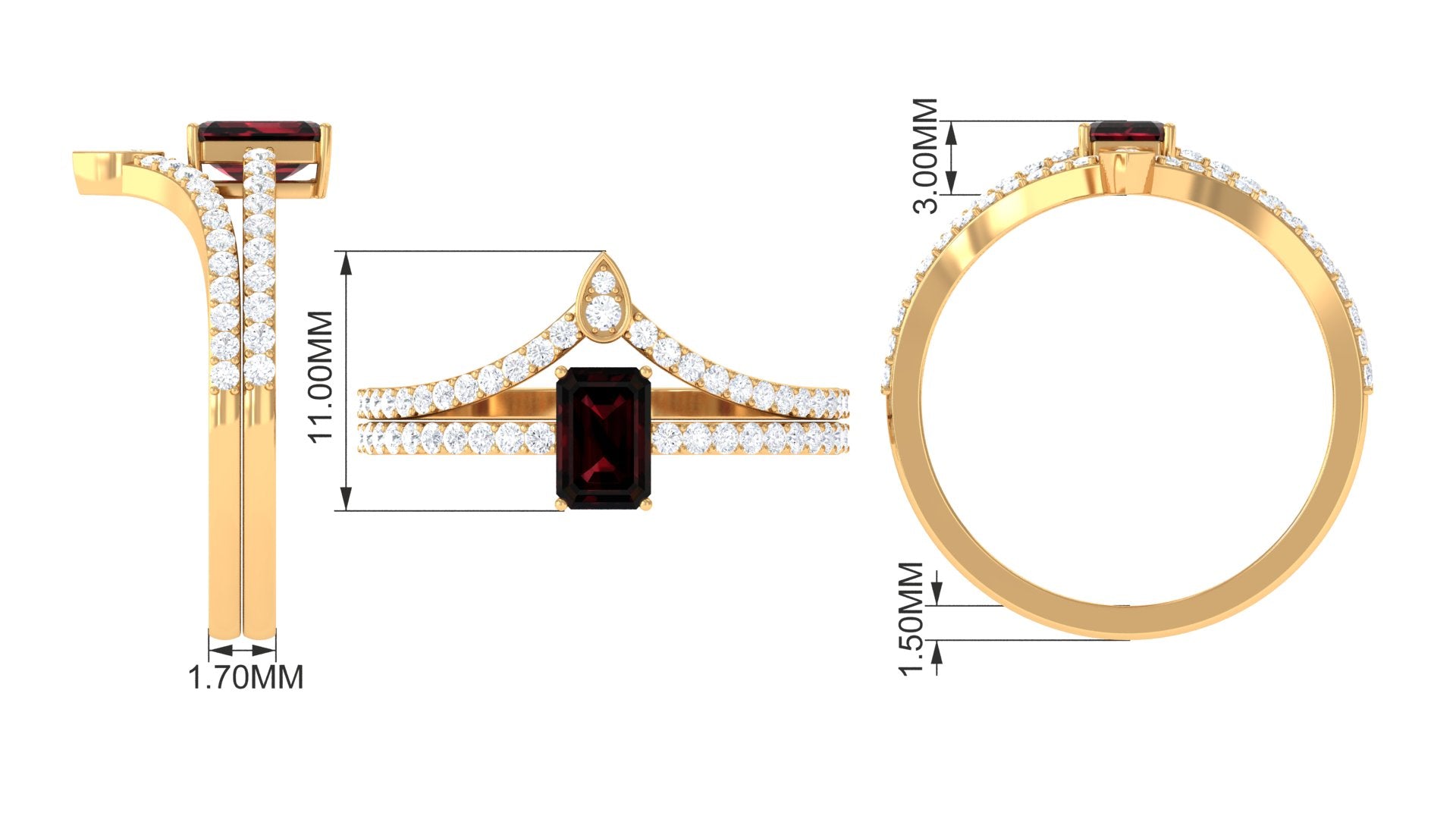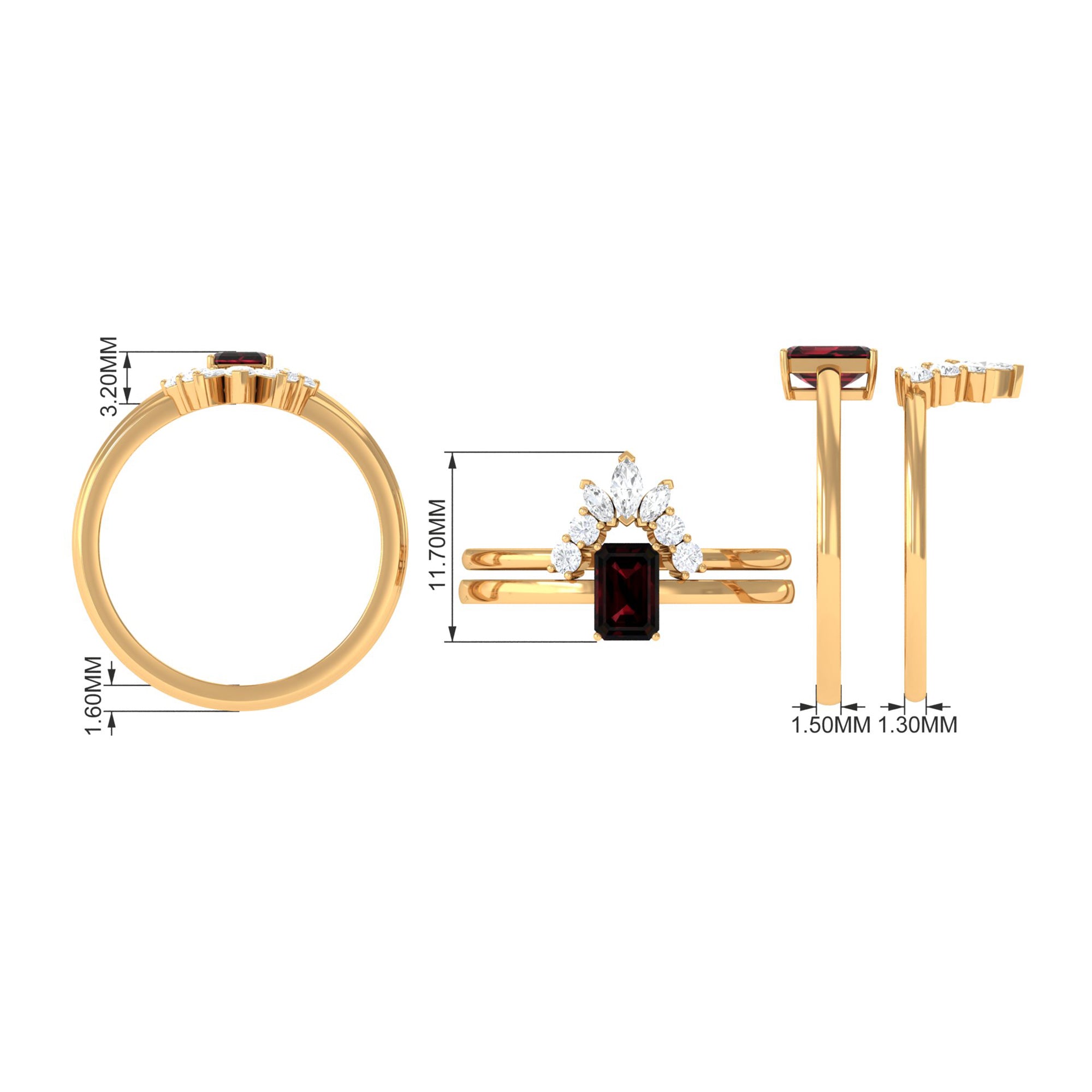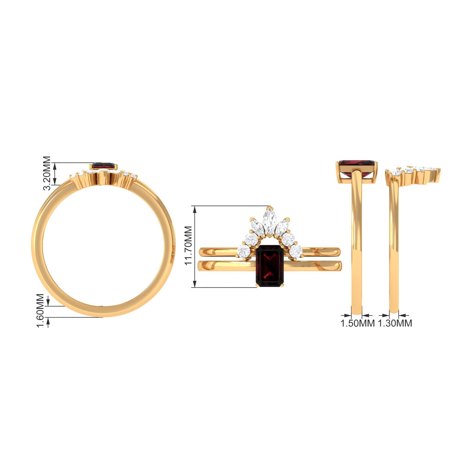 • Color: The red garnet ranges from orange-red to deep blood red which is most desirable in garnet rings for wedding and engagement.