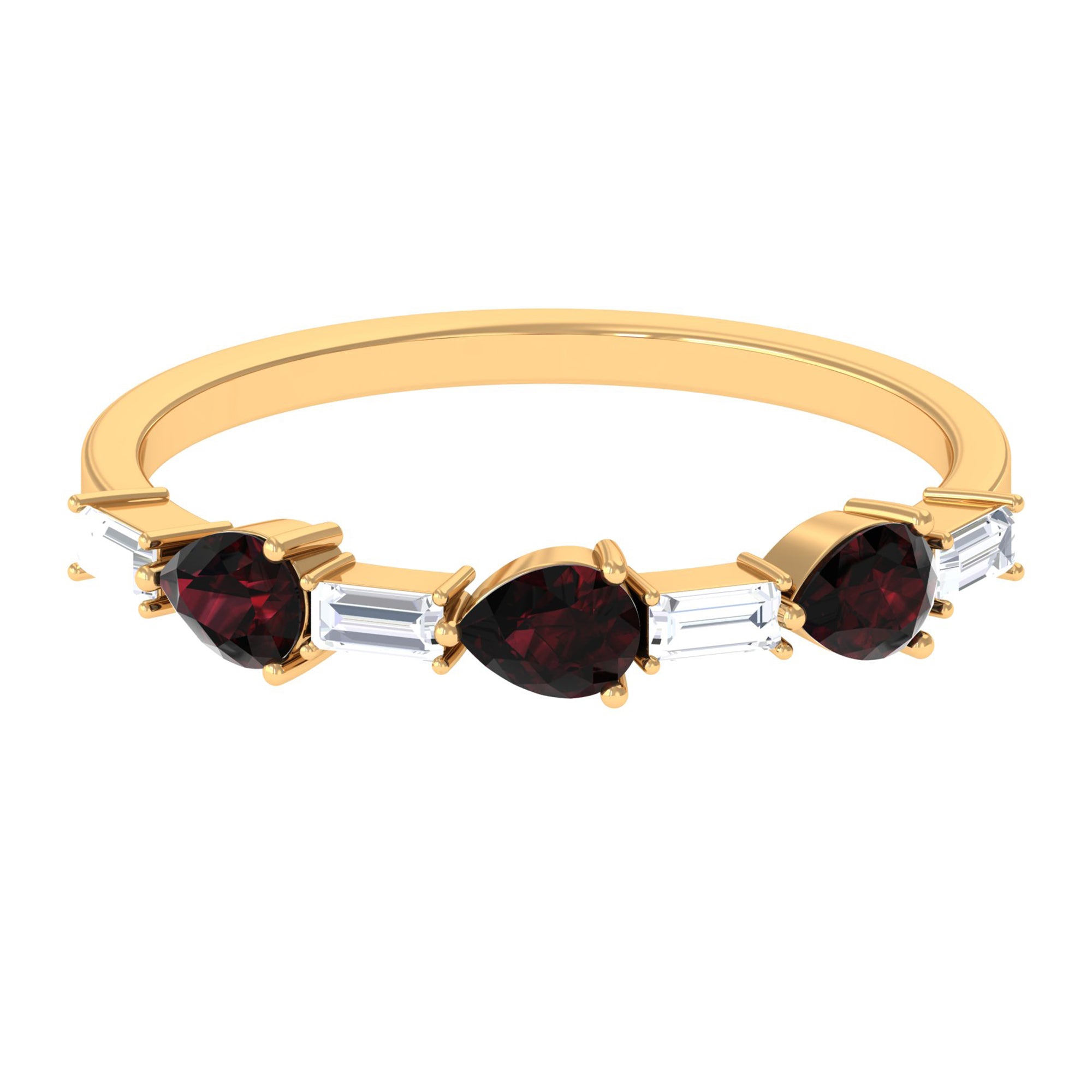 Fantastic garnet wedding band styles are curated by combining different garnet shapes ranging from round, oval, pear, marquise, cushion and many more. The garnet rings can also be selected on the basis of ring styles, most popular being the garnet eternity band for women with a knack for latest stylish trends in fashion. Metal embellishments in different adorable colors of gold namely, yellow gold, white gold and rose gold will leave the jewelry enthusiasts with plethora of engagement rings and wedding bands to choose from.