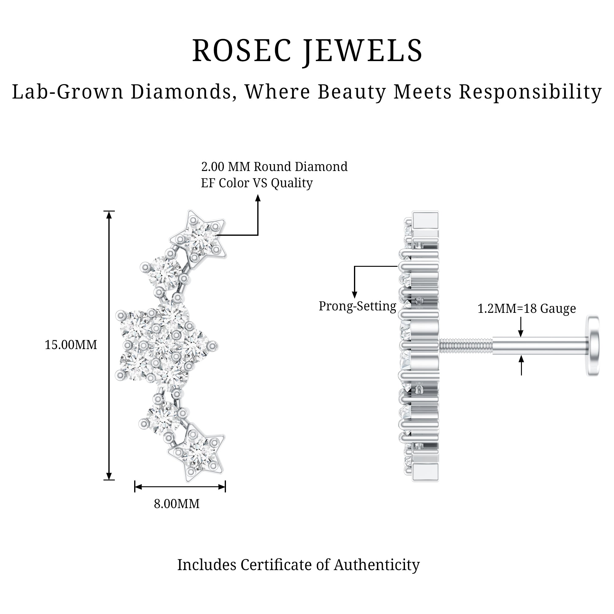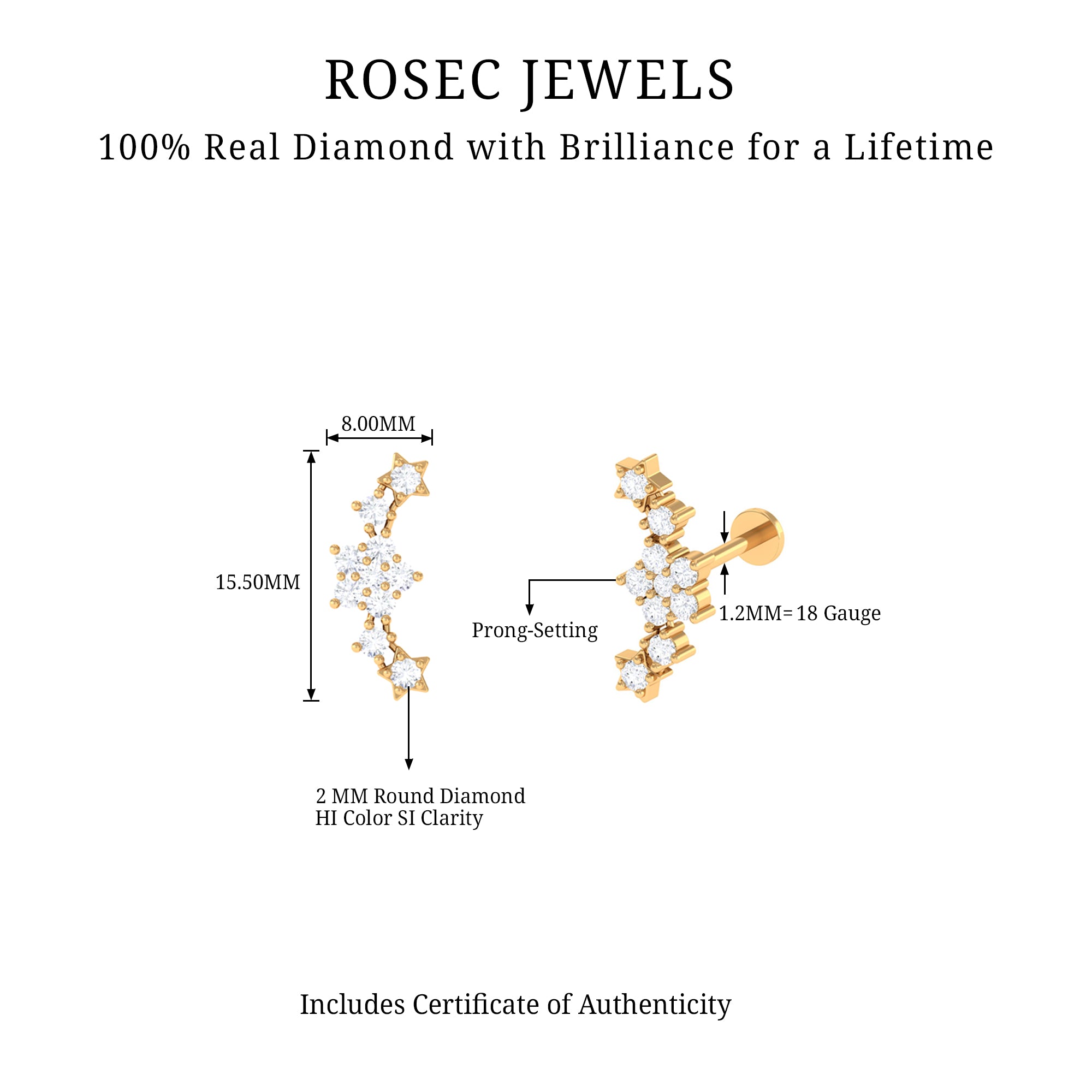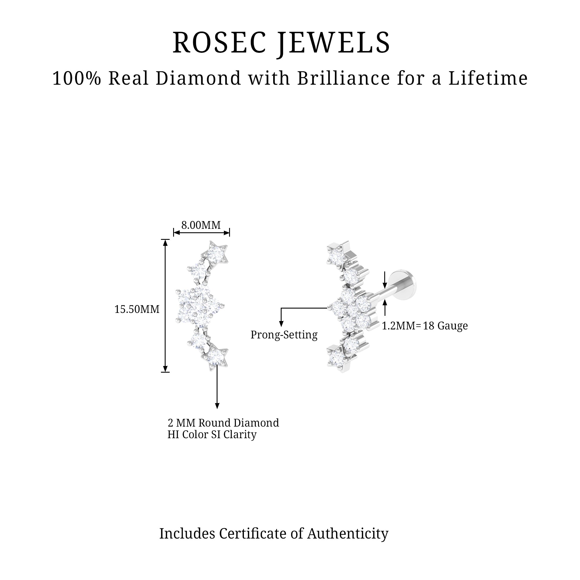 Cartilage Earrings | Conch Earrings | Tragus Earrings | Nose Piercing Jewelry | Diamond Ear Piercing Jewelry | Moissanite Ear Piercing Jewelry | Pearl Ear Piercing Jewelry