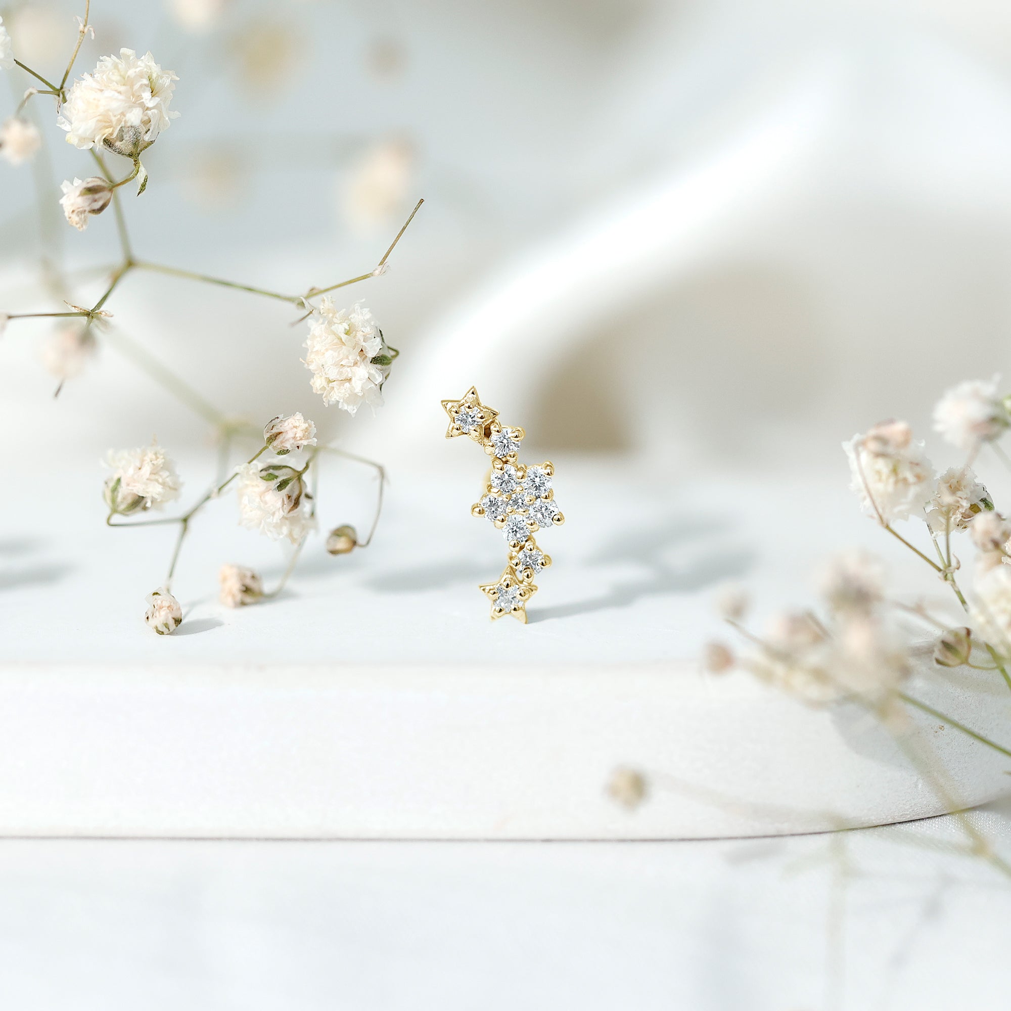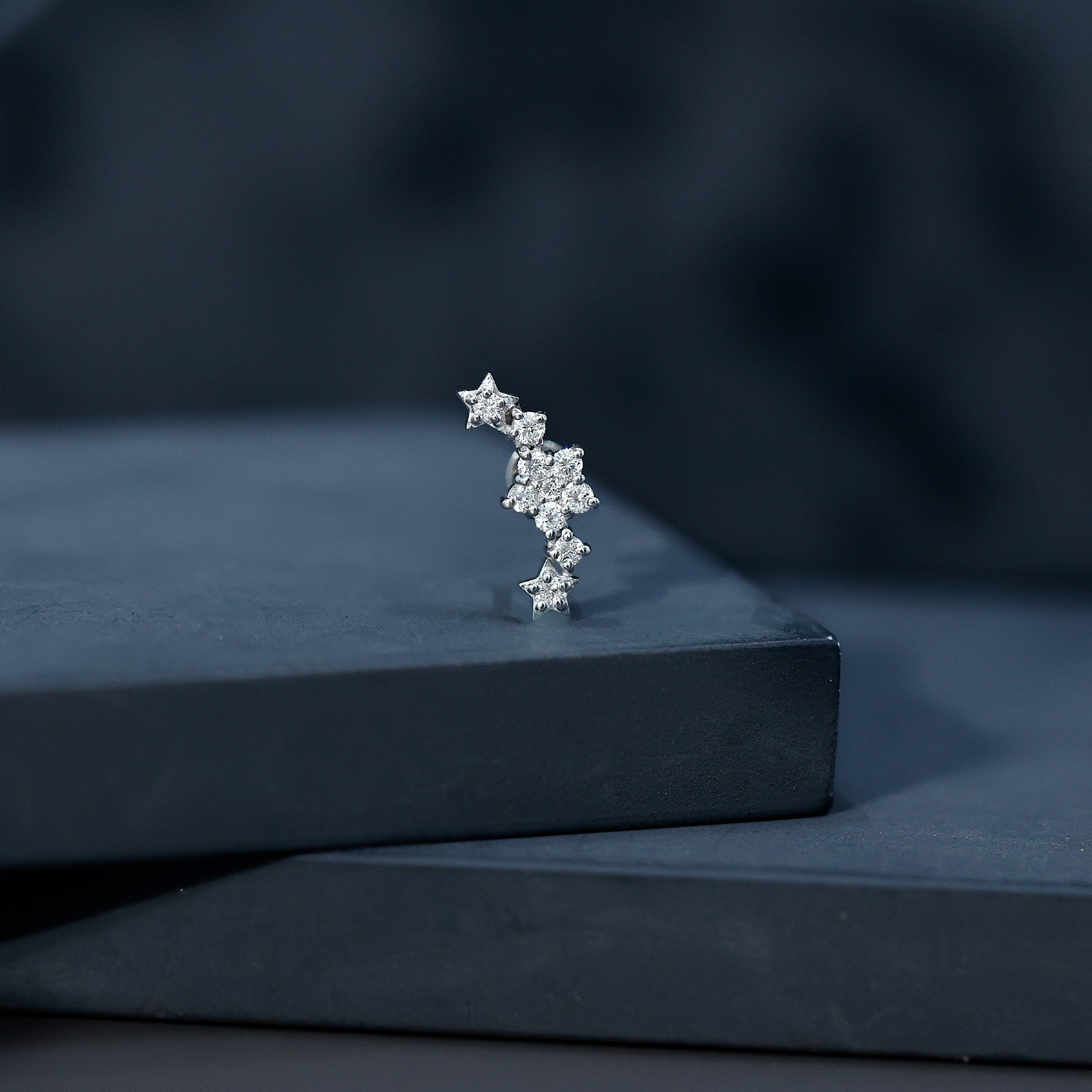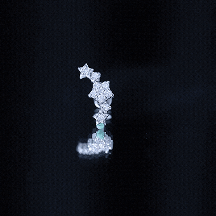 Celestial Earrings: - This celestial style isn't just jewelry, they're a beyond aesthetic, an adornment for upper ear piercing. Delicately crafted for helix piercing, each pair of celestial ear pieces highlights the vibrant hues of colored gemstone. The designs are taken from sparkling stars and the moon. The earrings range from simple studs, to ornate dangles, crafted with precious metals and colored gemstones to make a captivating accessory.