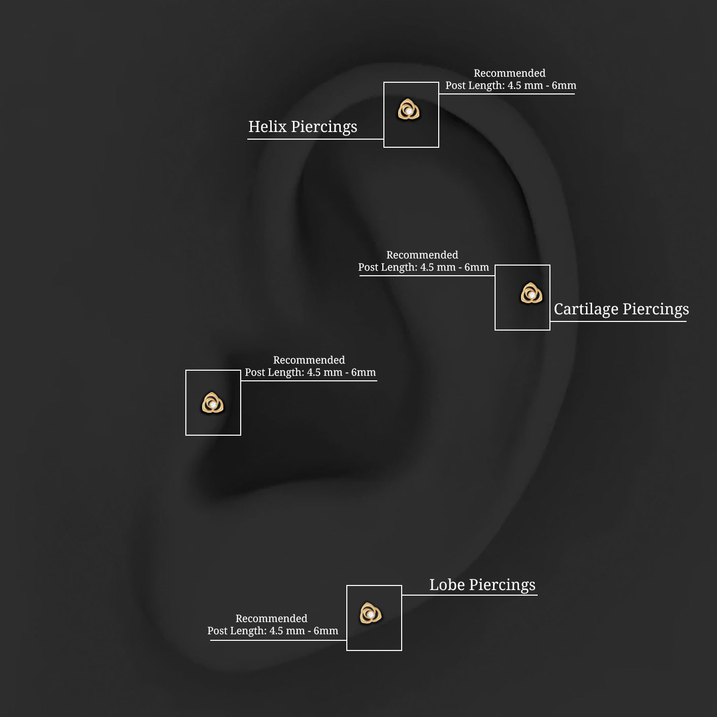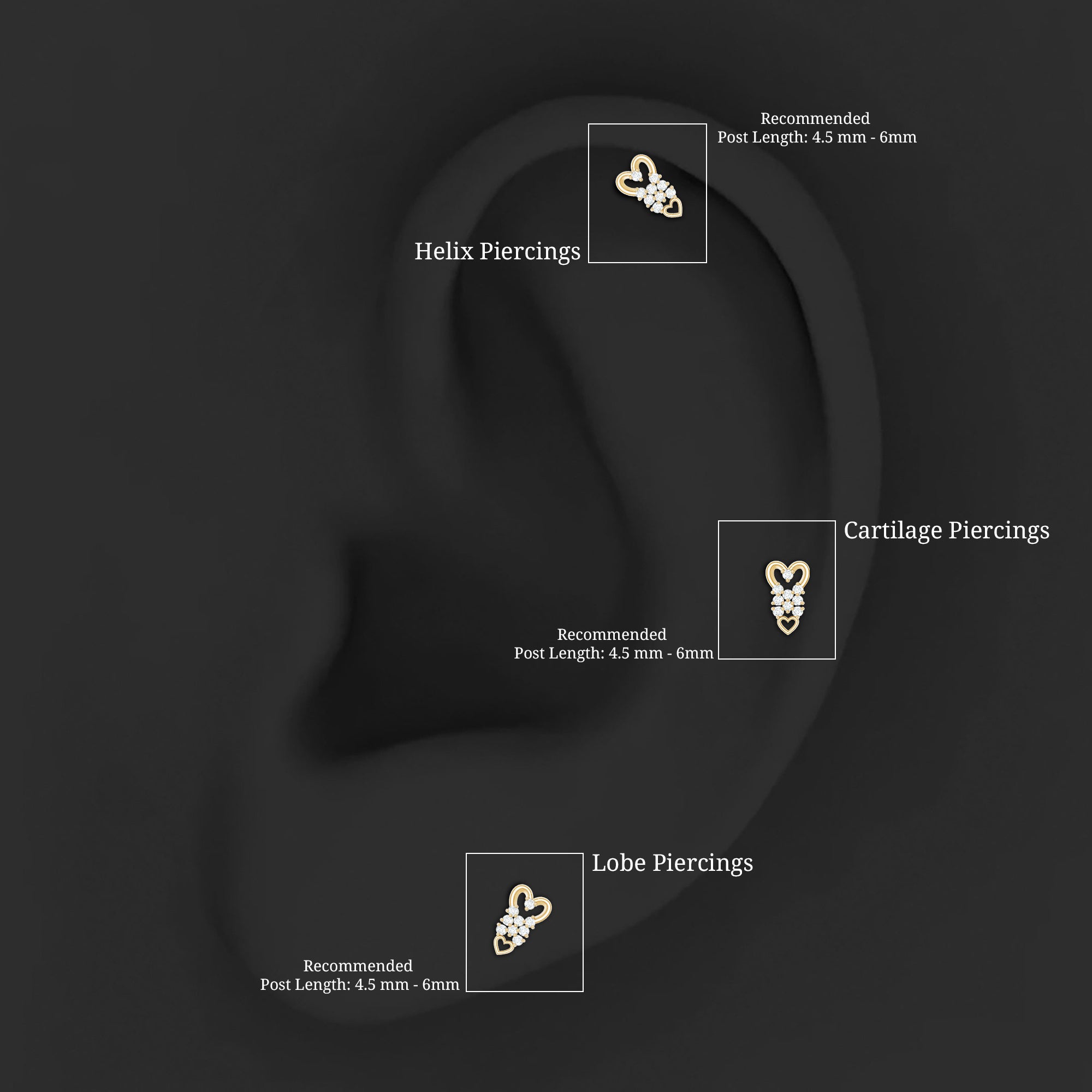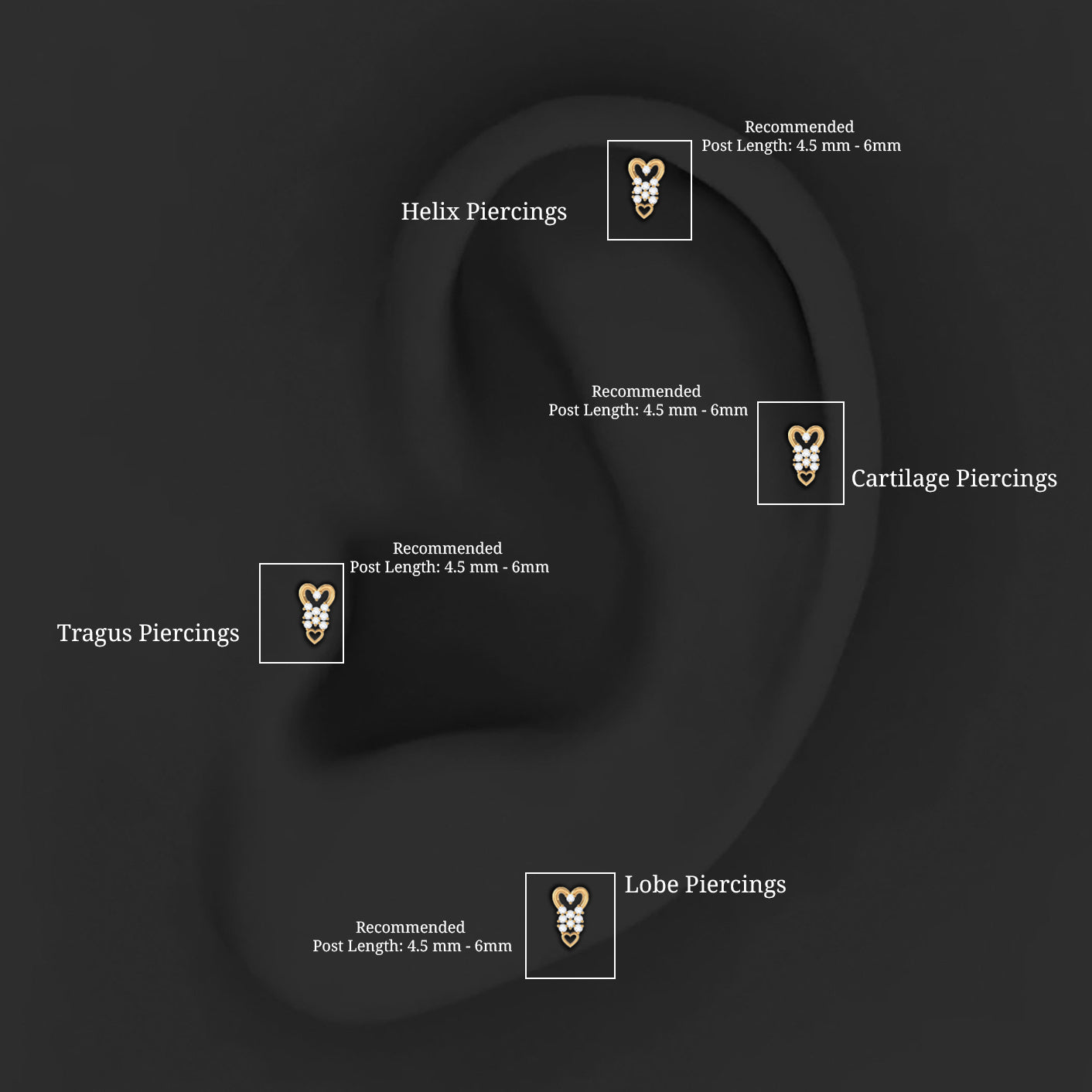 Stud Earrings: - Basically, helix stud earrings can be worn anywhere from the lower part of the earlobe to the upper curve of the ear. They offer a versatile range of designs, encompassing drop studs, heart-shaped studs, solitary studs, infinity helix studs, halo studs designed specifically for helix piercings. Our Earring for Helix Piercing stands out as an ideal choice for everyday wear, boasting both style and comfort without causing any irritation.