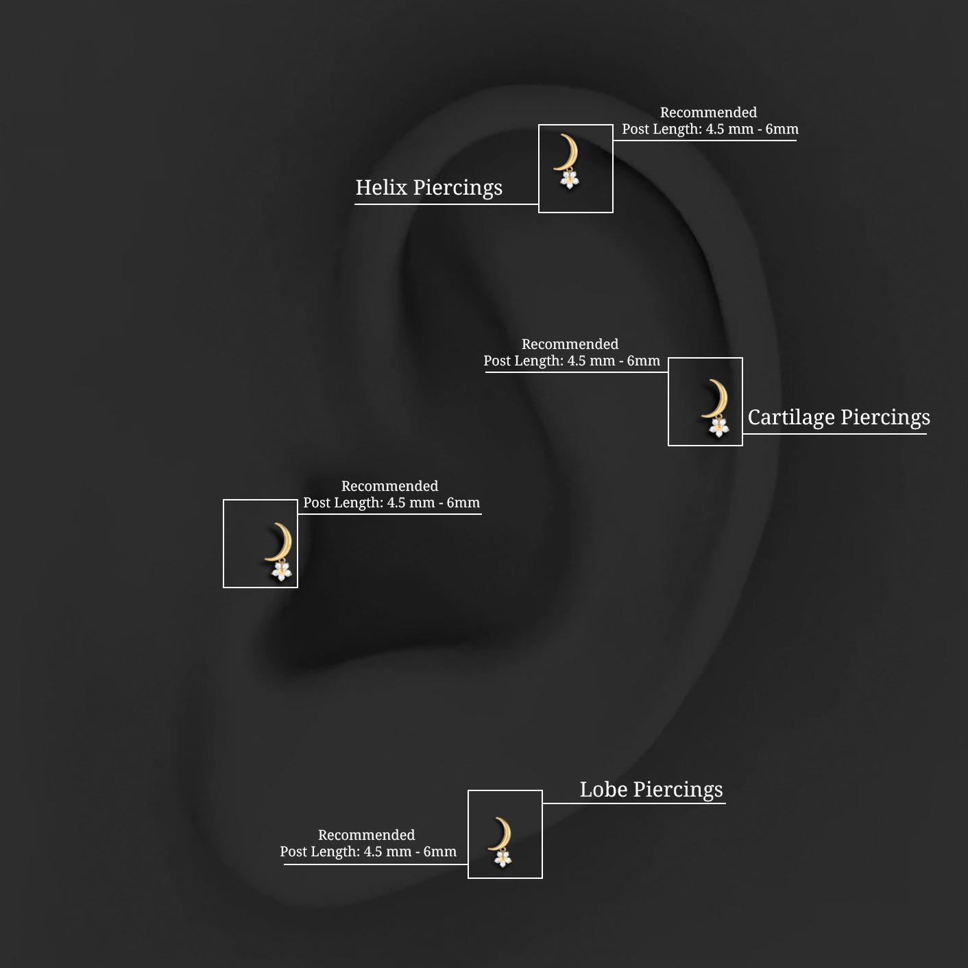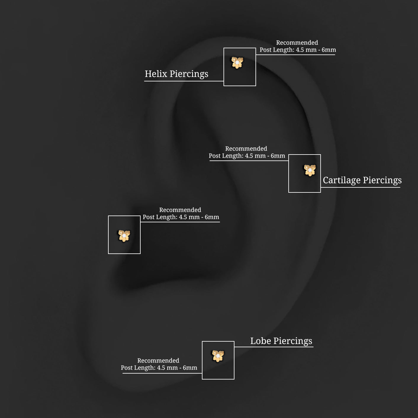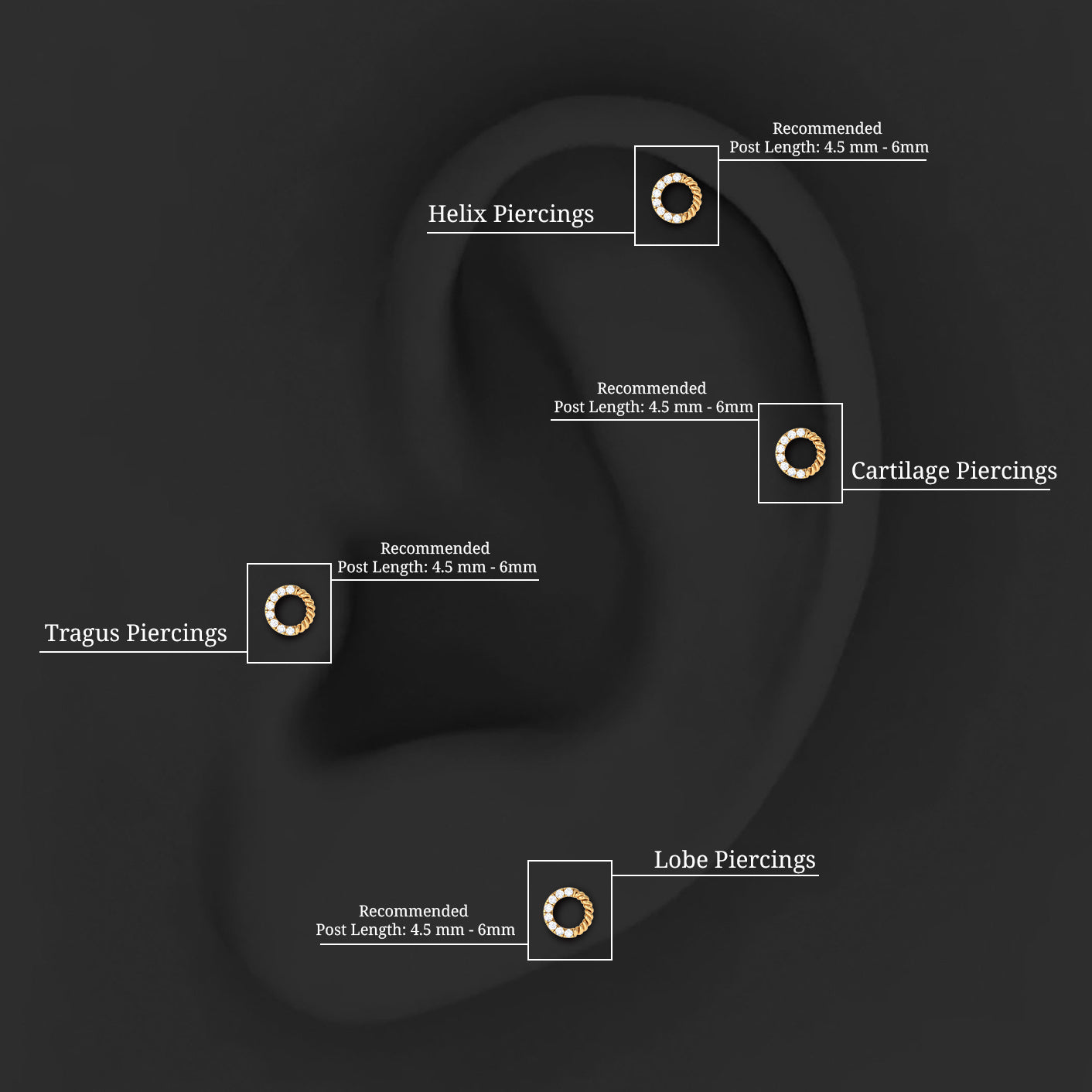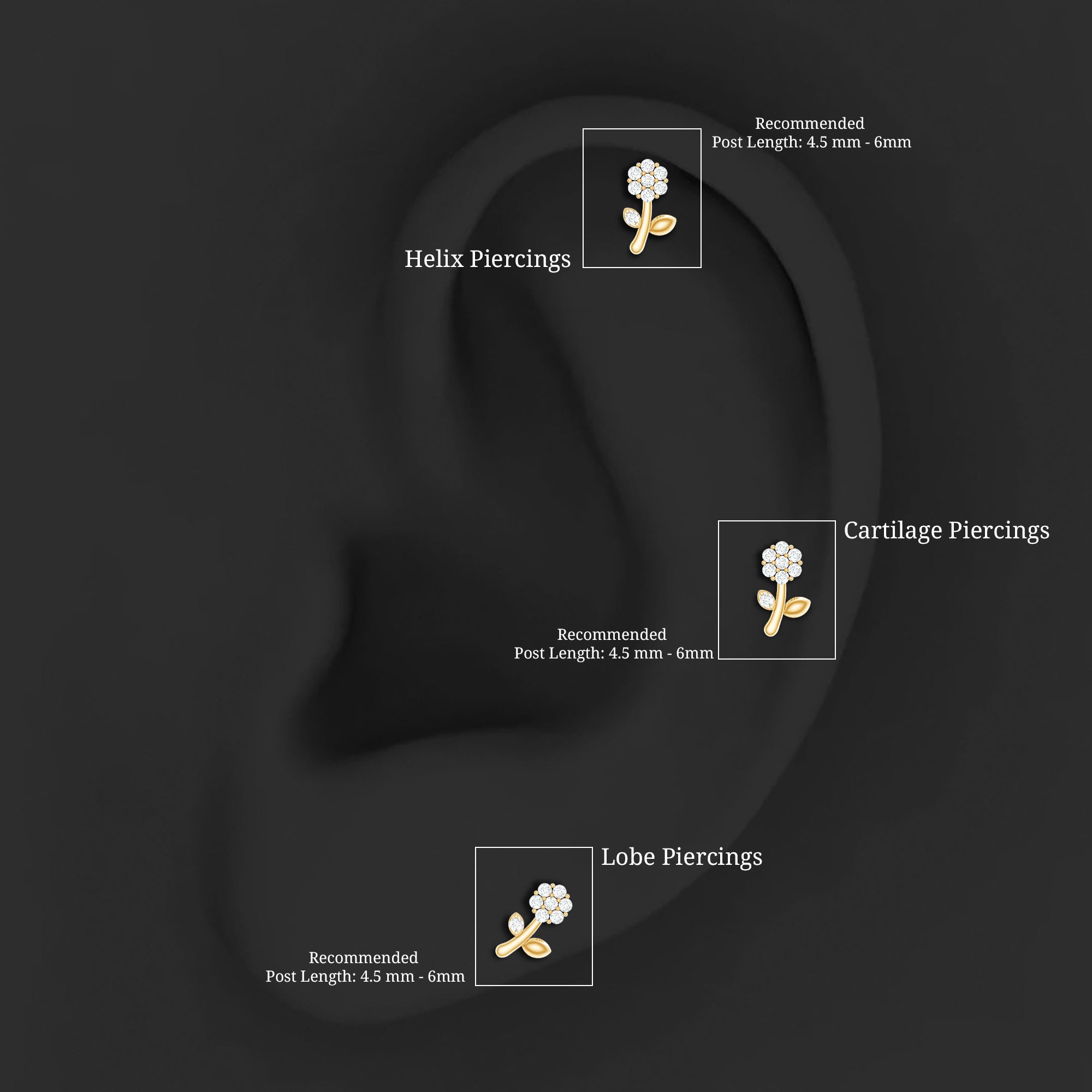 Stud Earrings: - Basically, helix stud earrings can be worn anywhere from the lower part of the earlobe to the upper curve of the ear. They offer a versatile range of designs, encompassing drop studs, heart-shaped studs, solitary studs, infinity helix studs, halo studs designed specifically for helix piercings. Our Earring for Helix Piercing stands out as an ideal choice for everyday wear, boasting both style and comfort without causing any irritation.