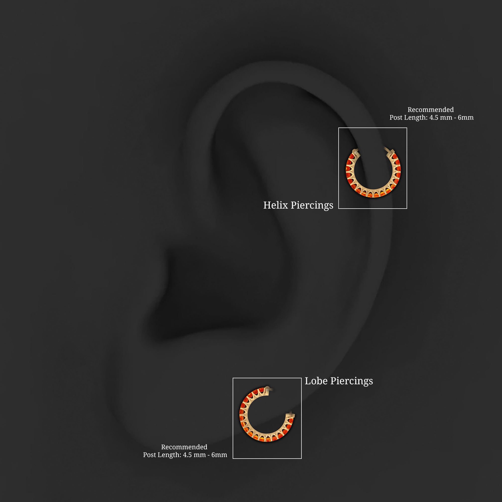 Hoop Earrings: - Hoop earrings are specially crafted for helix piercing, graced by classic circular design, and effortlessly wear on the outer curve of the ear, displaying an enduring sense of sophistication. Crafted with meticulous attention to detail, these helix hoop earrings are available in various sizes and designs, ranging from refined simplicity to elaborate patterns embellished with shimmering gemstones.