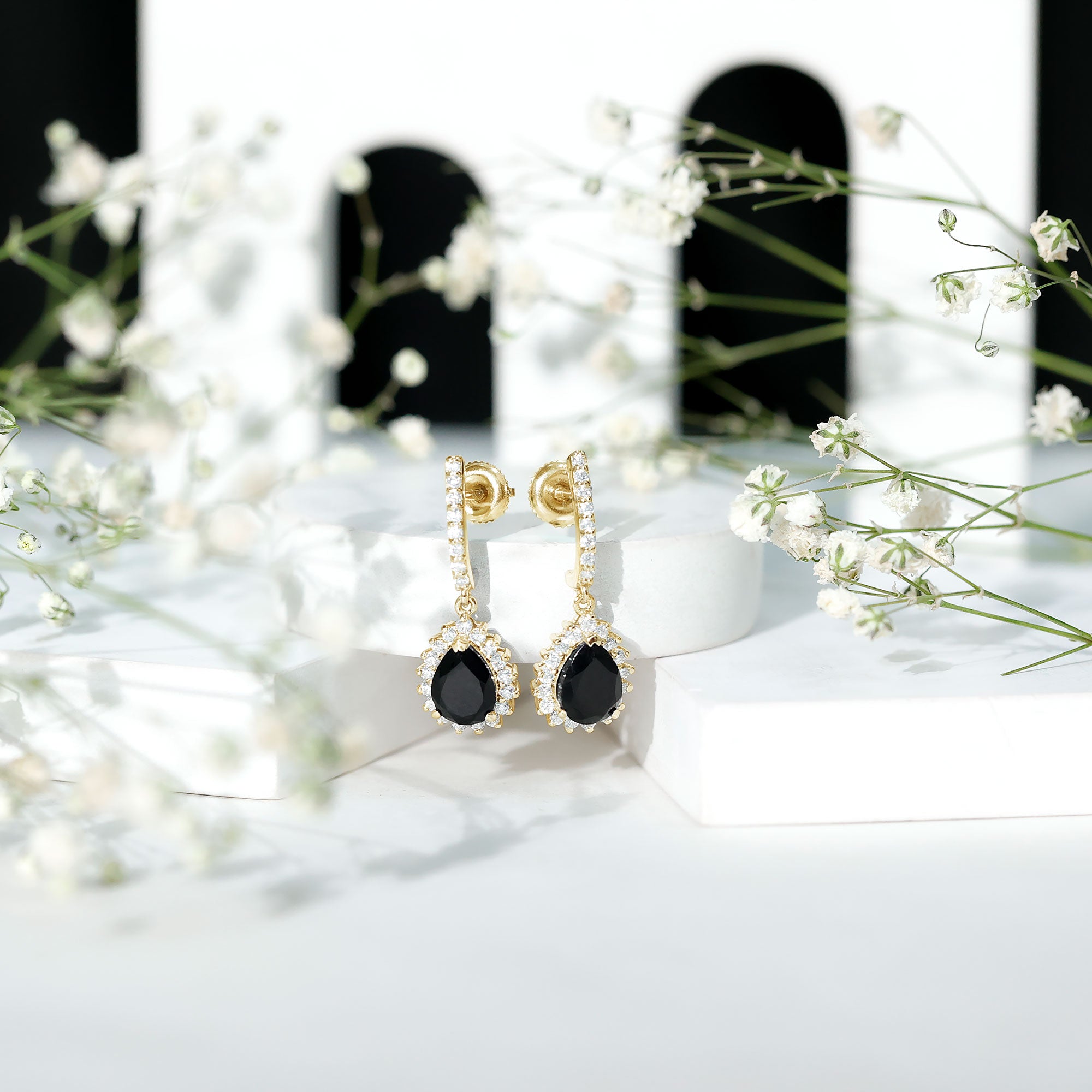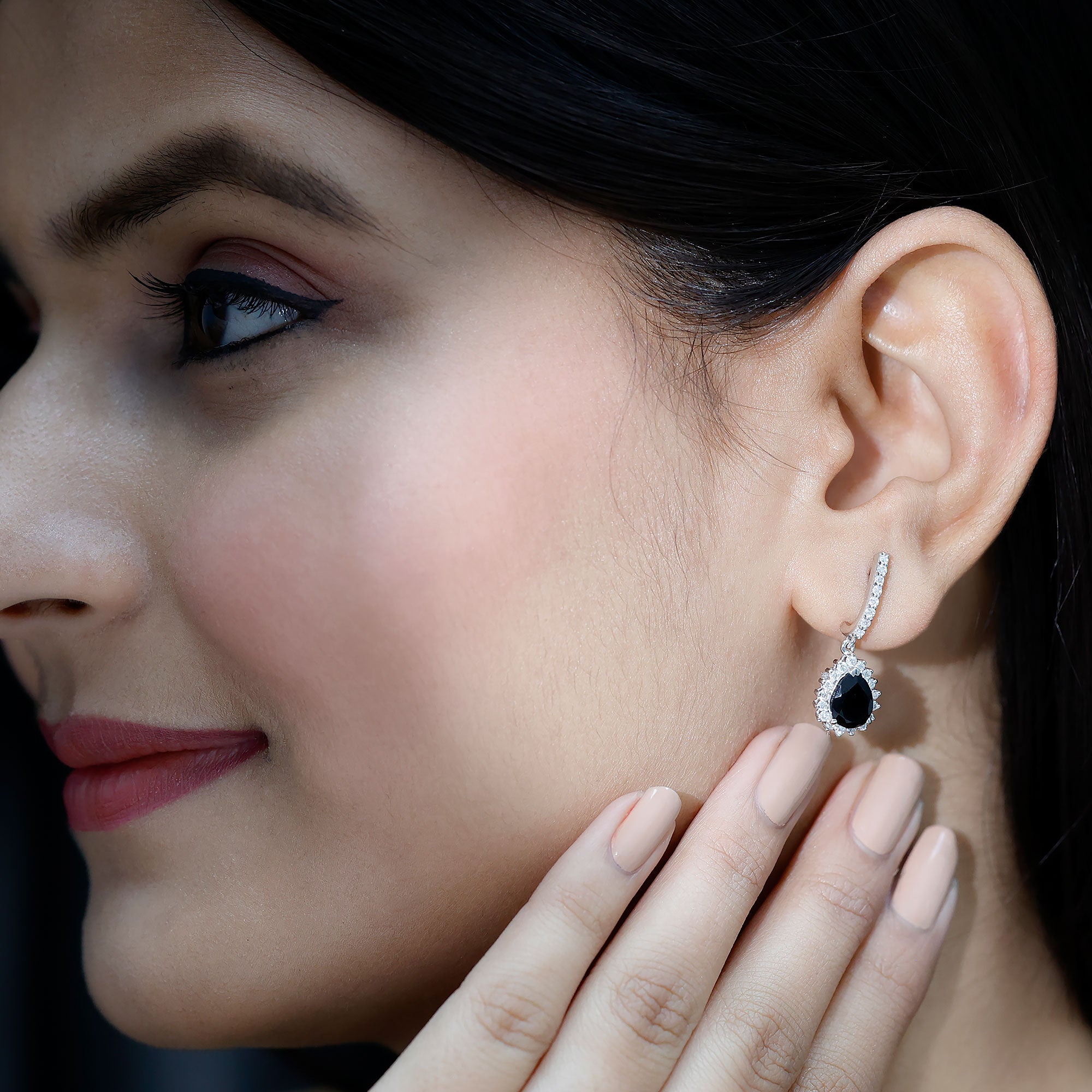 Drop & Dangle Earrings are relatively the same as they both feature a gem hanging below the earlobe. A pair of man-made black diamond drop earrings is a chic and eye-catching choice. making it a great option for someone who wants to steal the attention.
