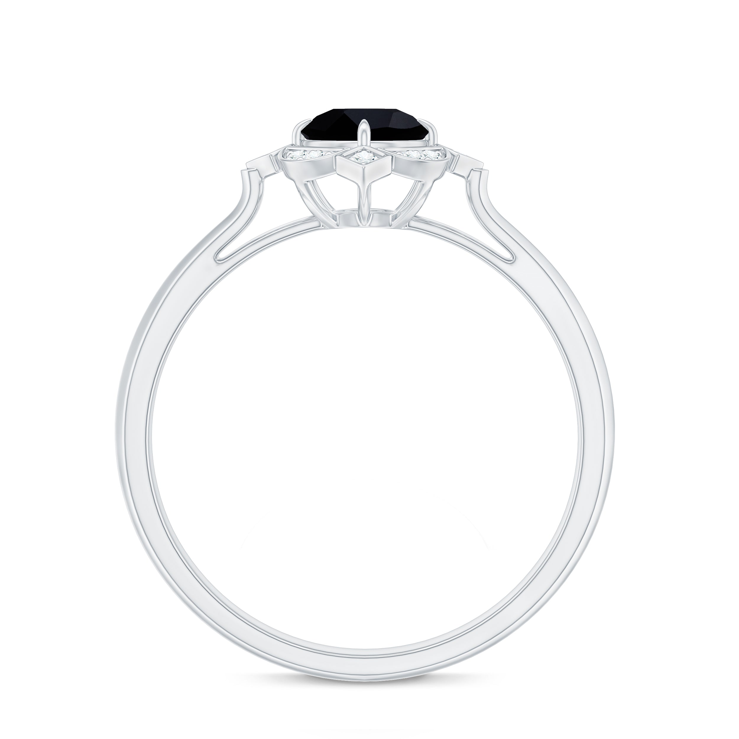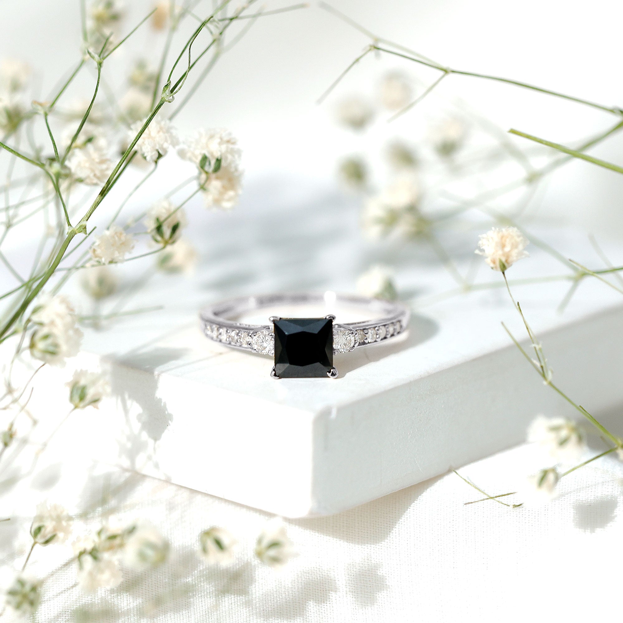 Lab Created Black Diamond Halo Engagement rings: Black diamond making the heart of the ring is surrounded by the accent of other shining gemstones, like moissanite or diamonds. The halo around the gemstone not only adds a sparkle, but offers it protection too.