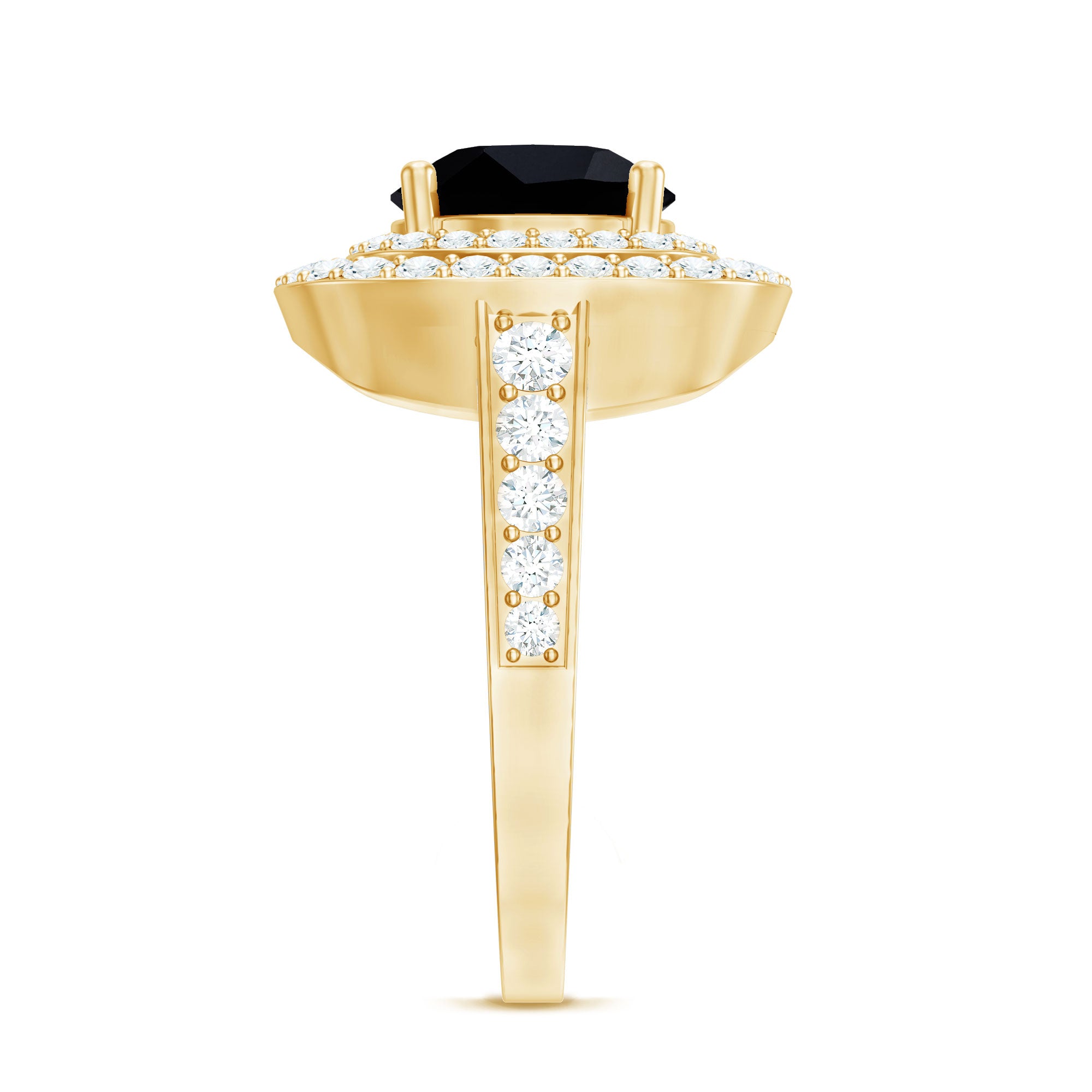 Lab Created Black Diamond Halo Engagement rings: Black diamond making the heart of the ring is surrounded by the accent of other shining gemstones, like moissanite or diamonds. The halo around the gemstone not only adds a sparkle, but offers it protection too.