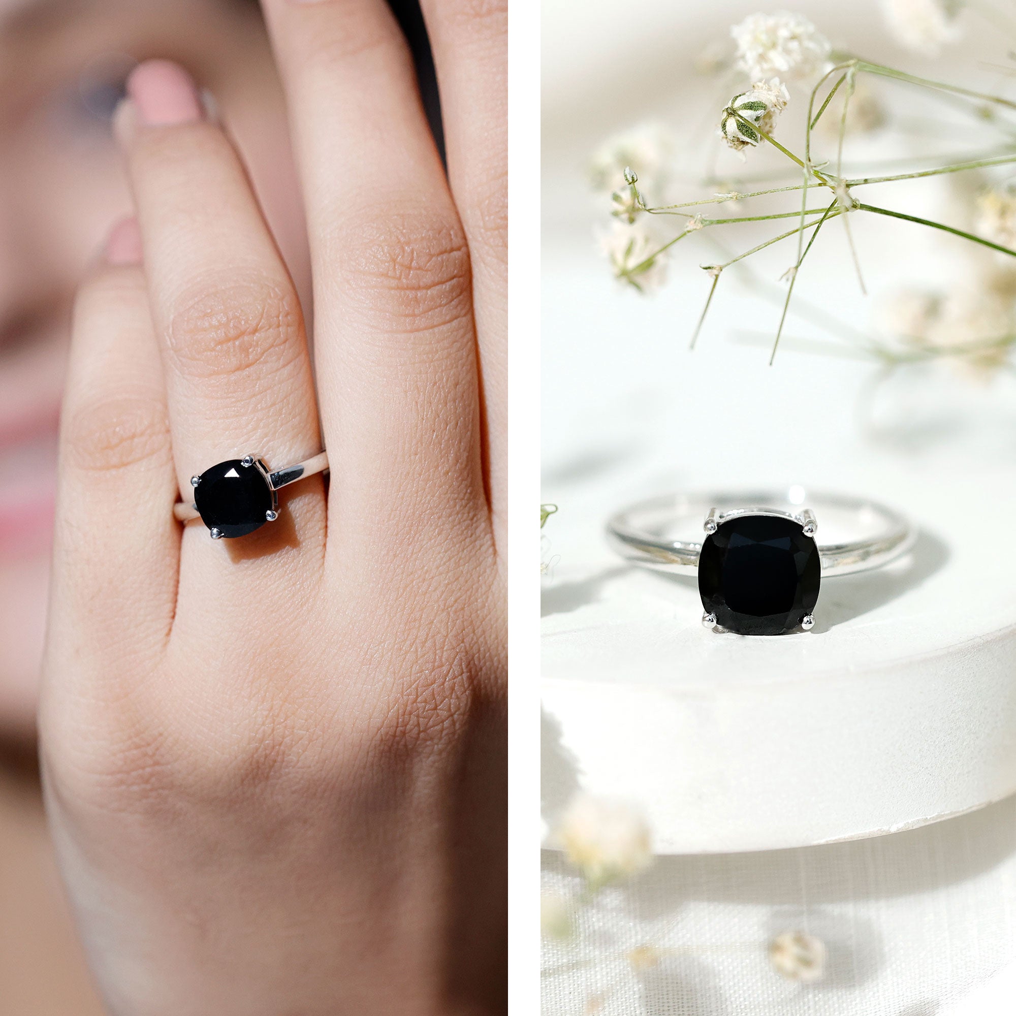 Lab Created Black Diamond Halo Engagement rings: Black diamond making the heart of the ring is surrounded by the accent of other shining gemstones, like moissanite or diamonds. The halo around the gemstone not only adds a sparkle, but offers it protection too.