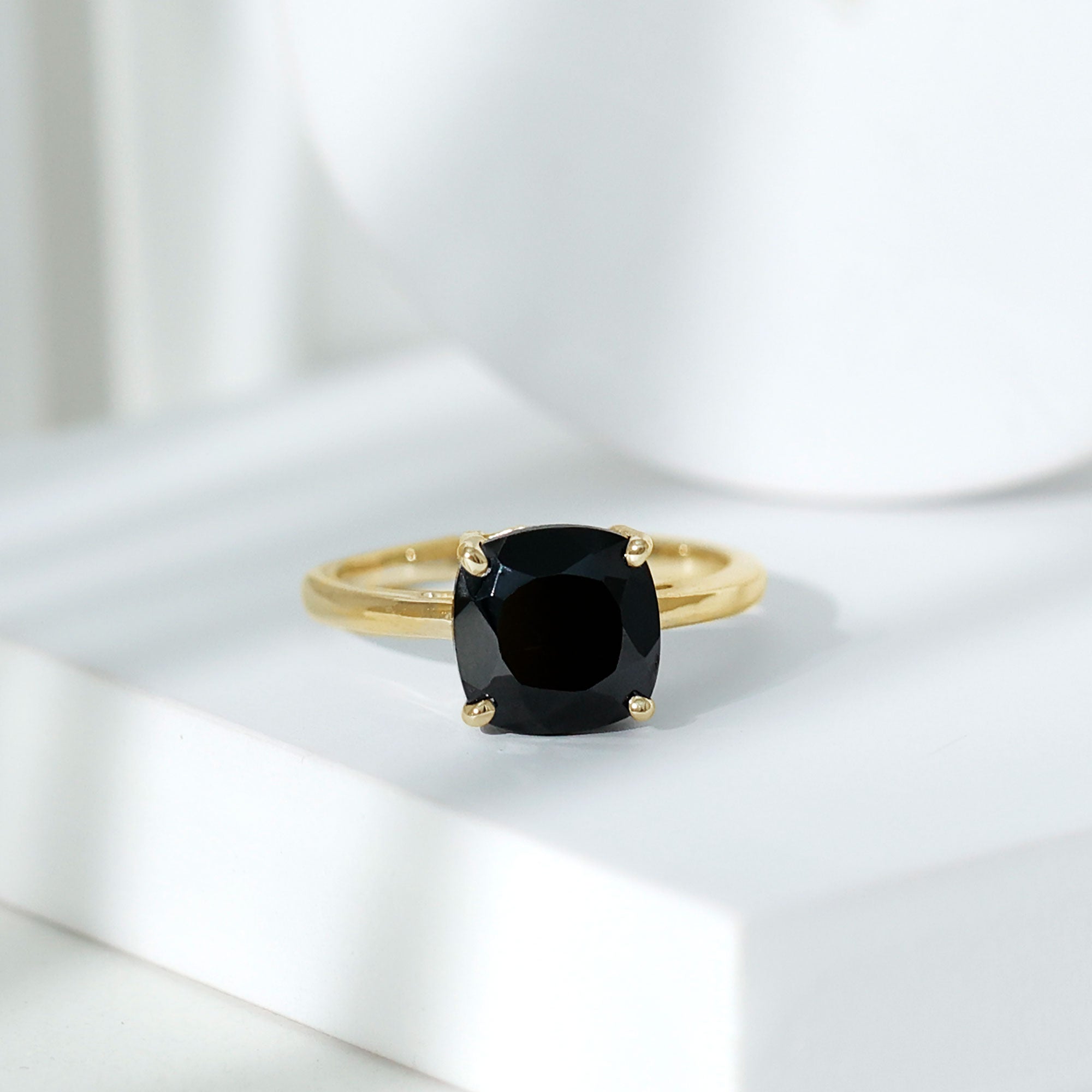 Lab-Created Black Diamond Solitaire Rings: Classic solitaire style, popular for its timeless elegance, features one black diamond stone on a simple band. The black gem is the focal point of the ring, with different shapes and metal settings offering stylish variations.