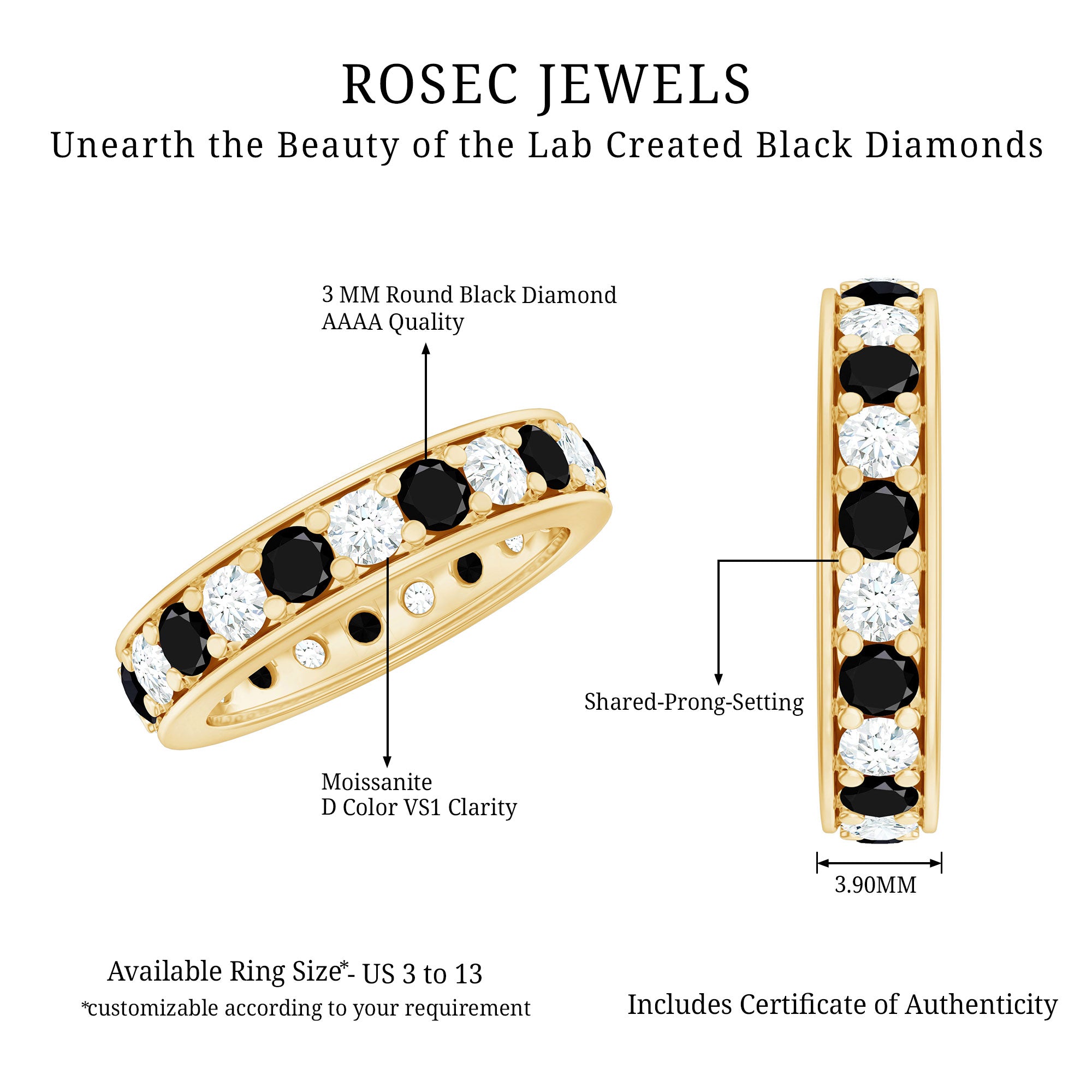 Rosec Jewels has emerged as the one-stop destination that has expertise in skill and creativity and brings forward a catalog of Lab Grown Black Diamond Jewelry that never lets you settle for anything less than you deserve. Here are some factors that set us apart: