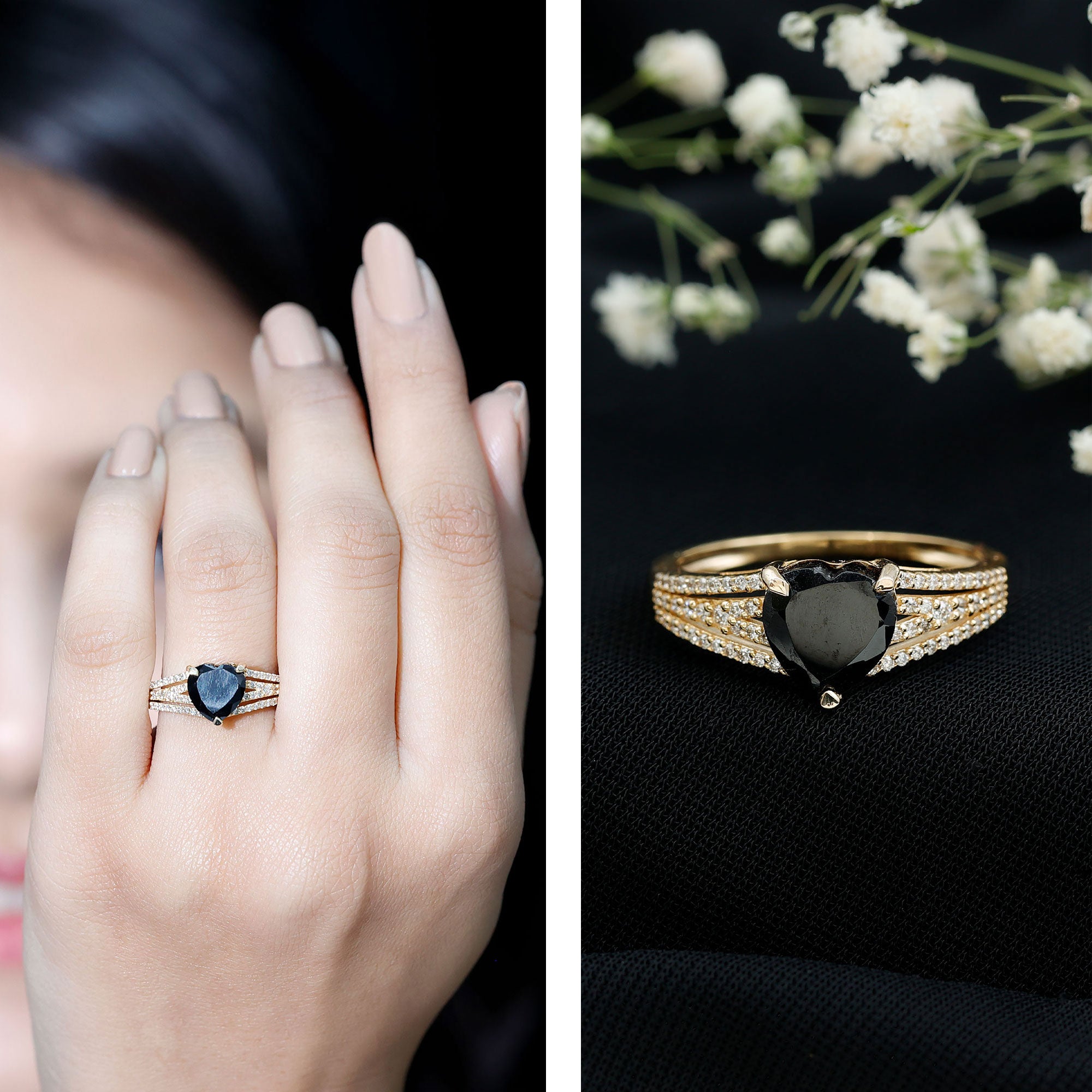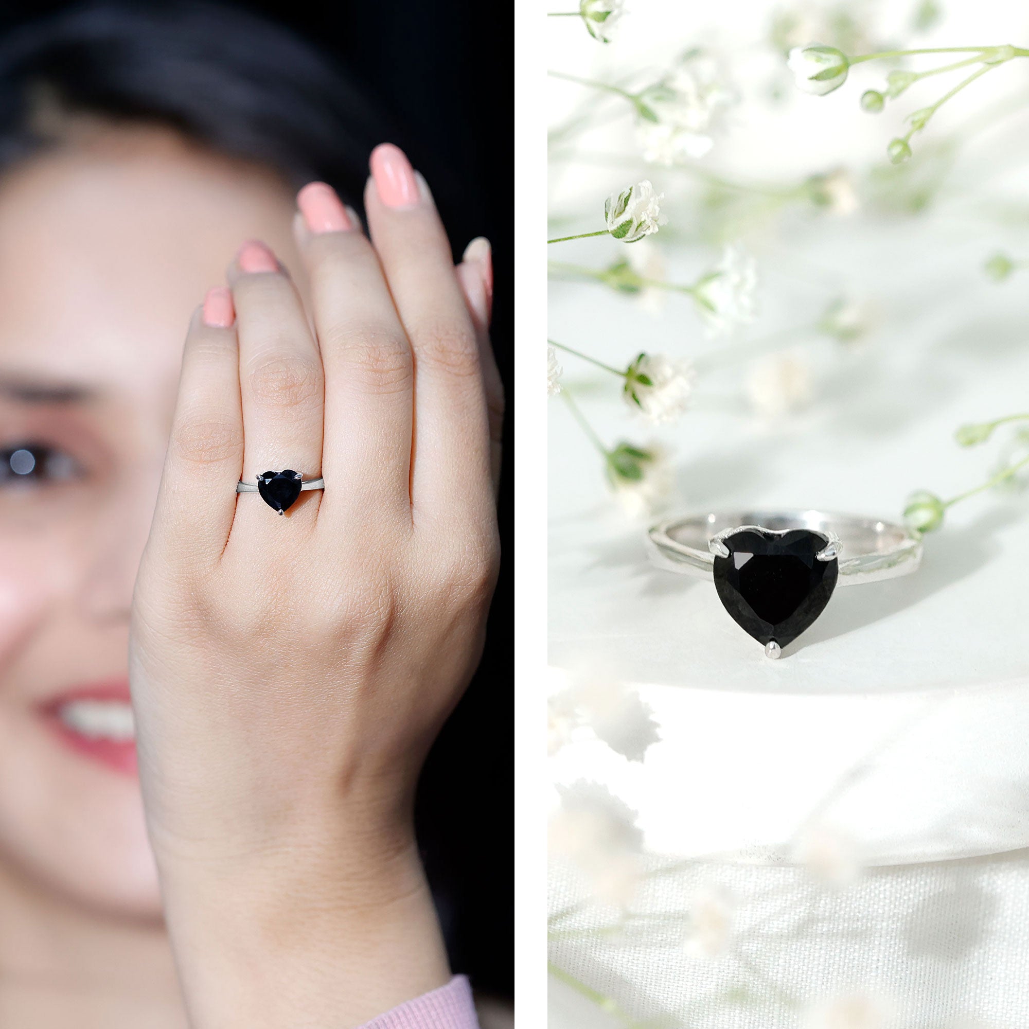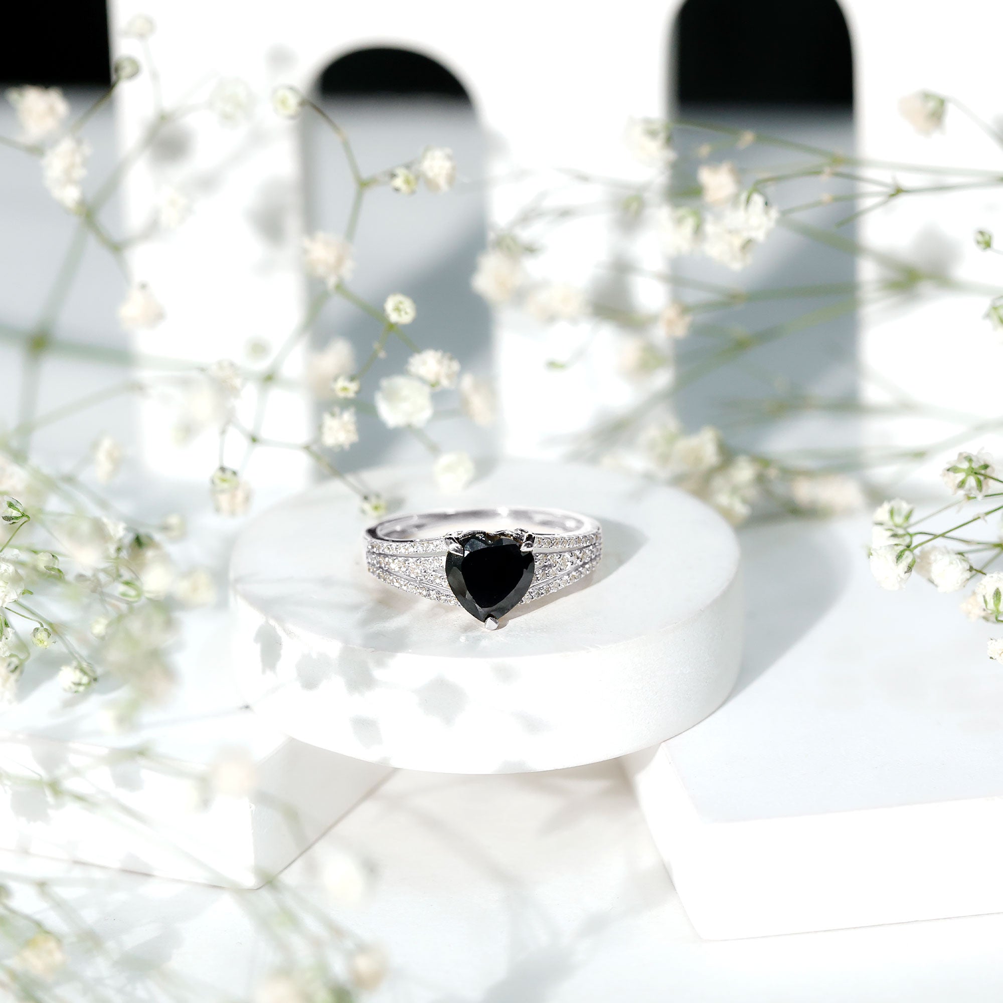 Promise rings symbolize devotion and commitment, as they are also called pre-engagement rings. Featuring a synthetic black diamond gemstone either in a simple style or enhanced by diamonds or other gems to make it more attractive. The black diamond promise rings are an incredible way to express your feelings for your special one. An ideal reminder of the commitment you both share.