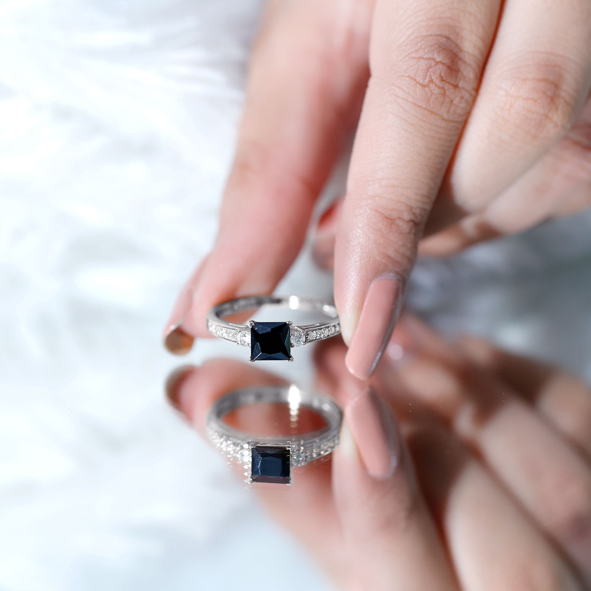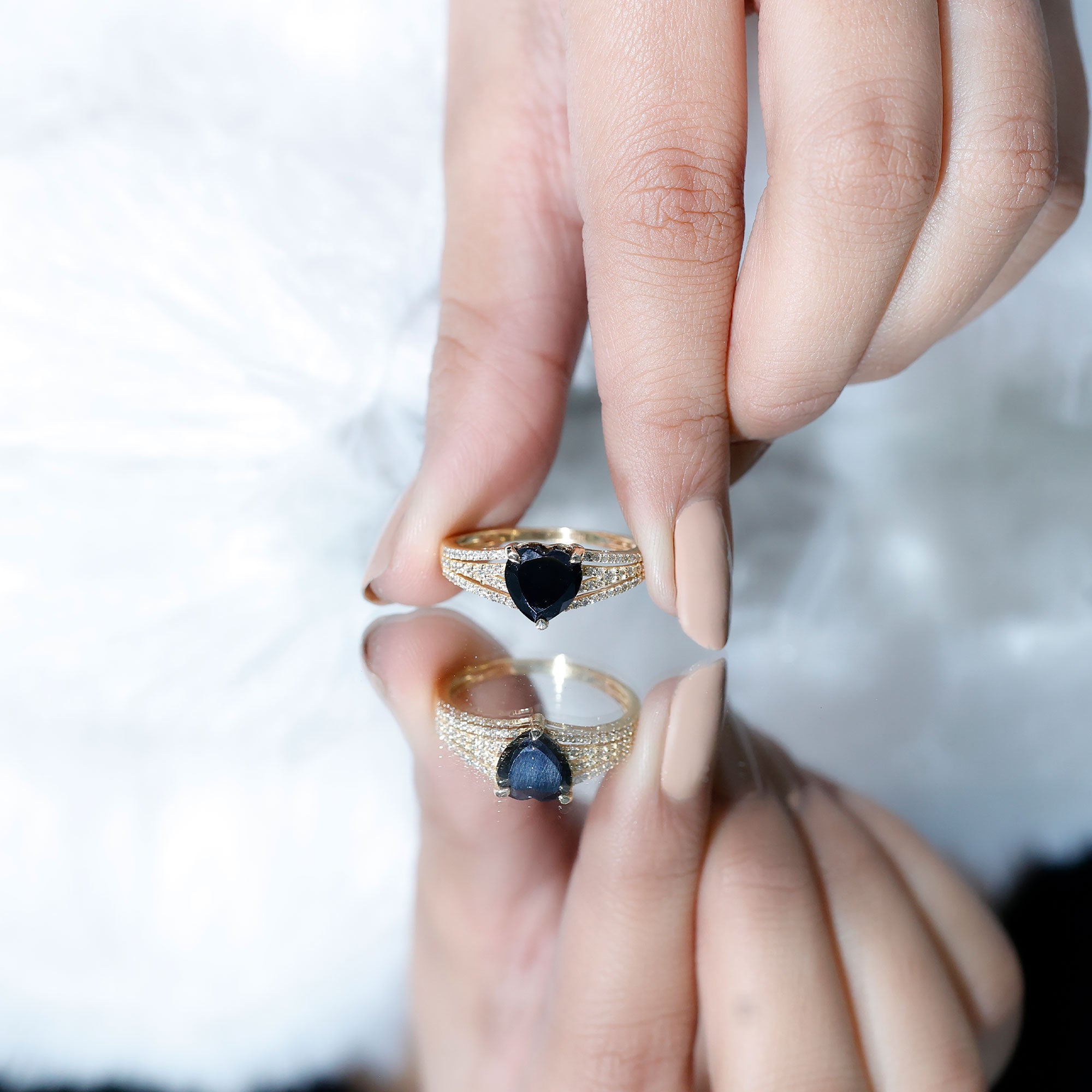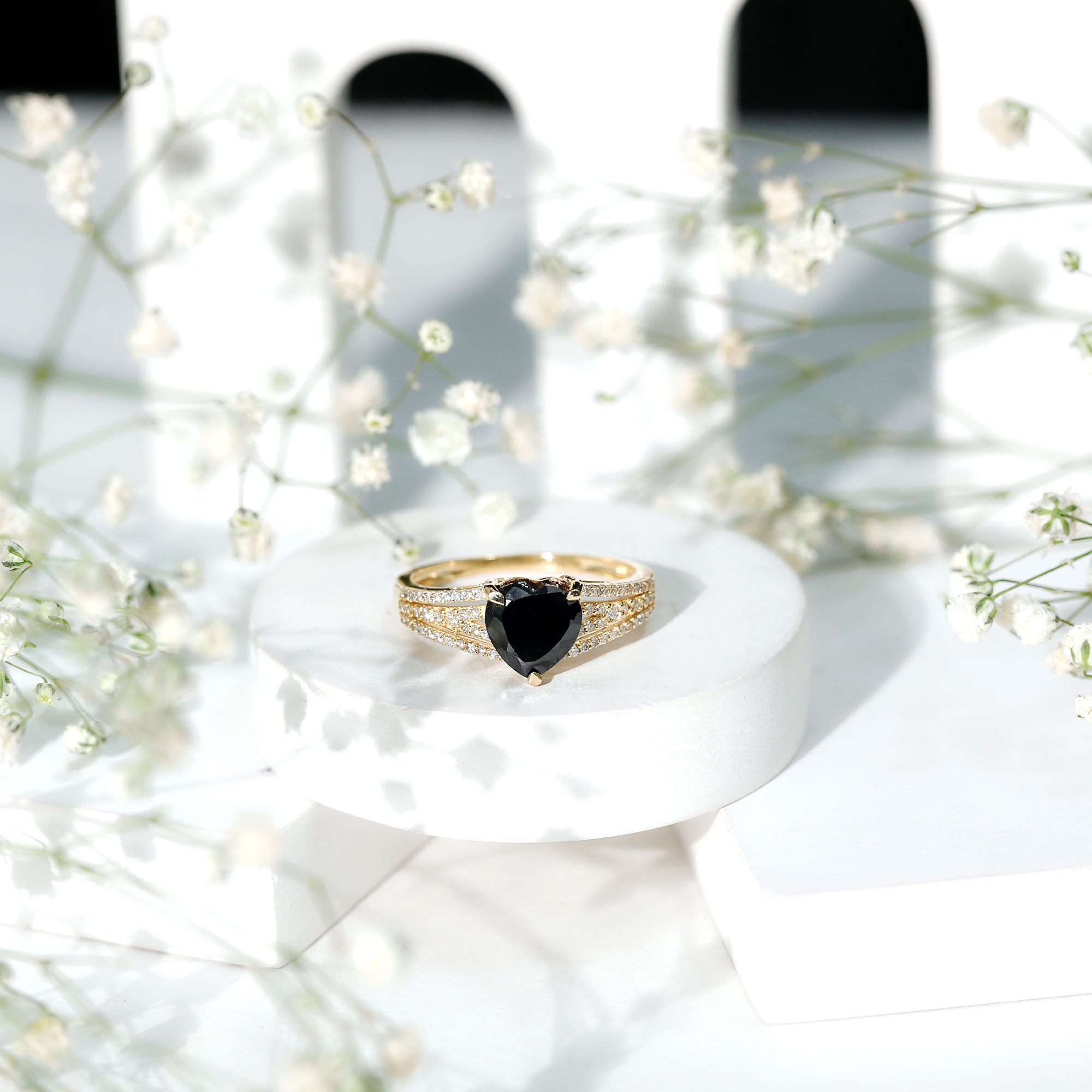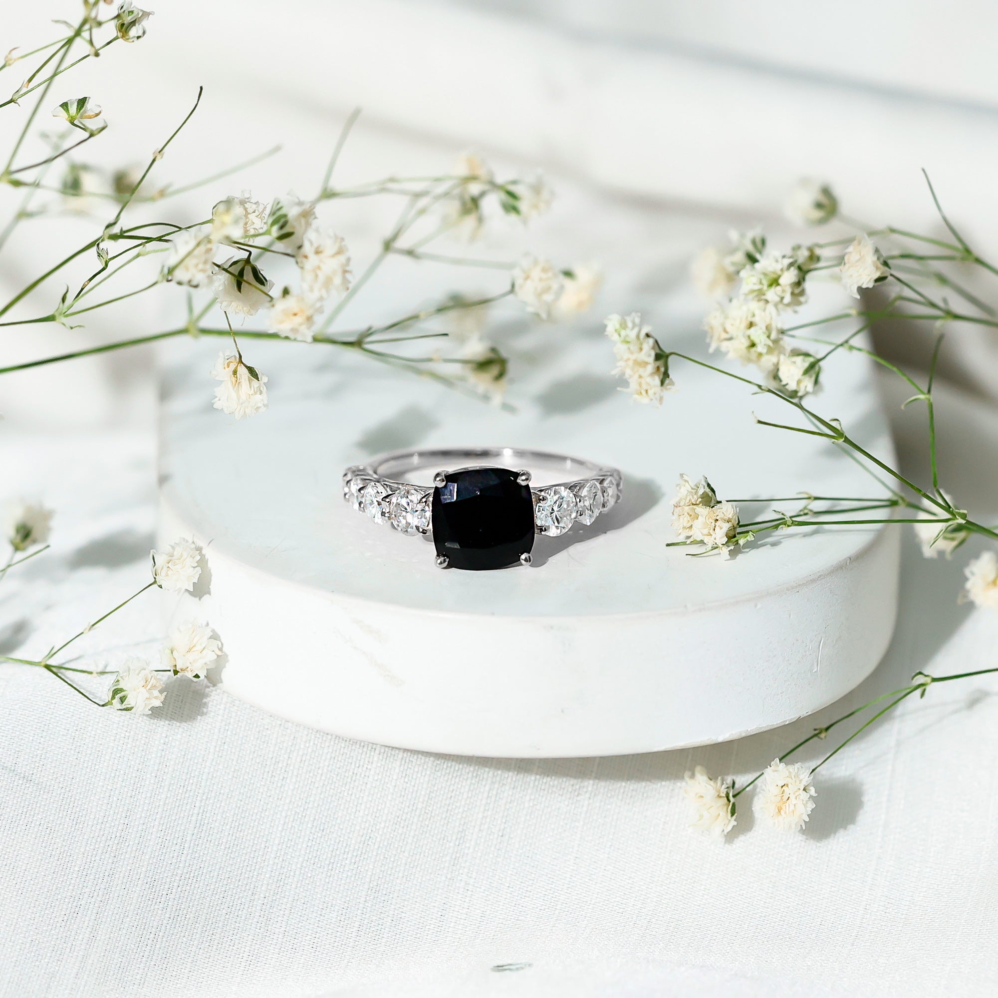 Promise rings symbolize devotion and commitment, as they are also called pre-engagement rings. Featuring a synthetic black diamond gemstone either in a simple style or enhanced by diamonds or other gems to make it more attractive. The black diamond promise rings are an incredible way to express your feelings for your special one. An ideal reminder of the commitment you both share.