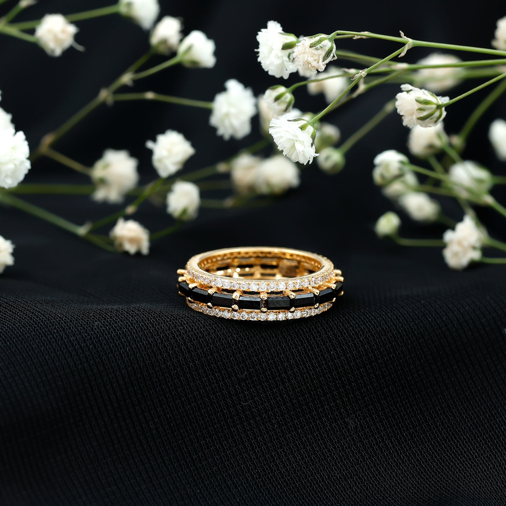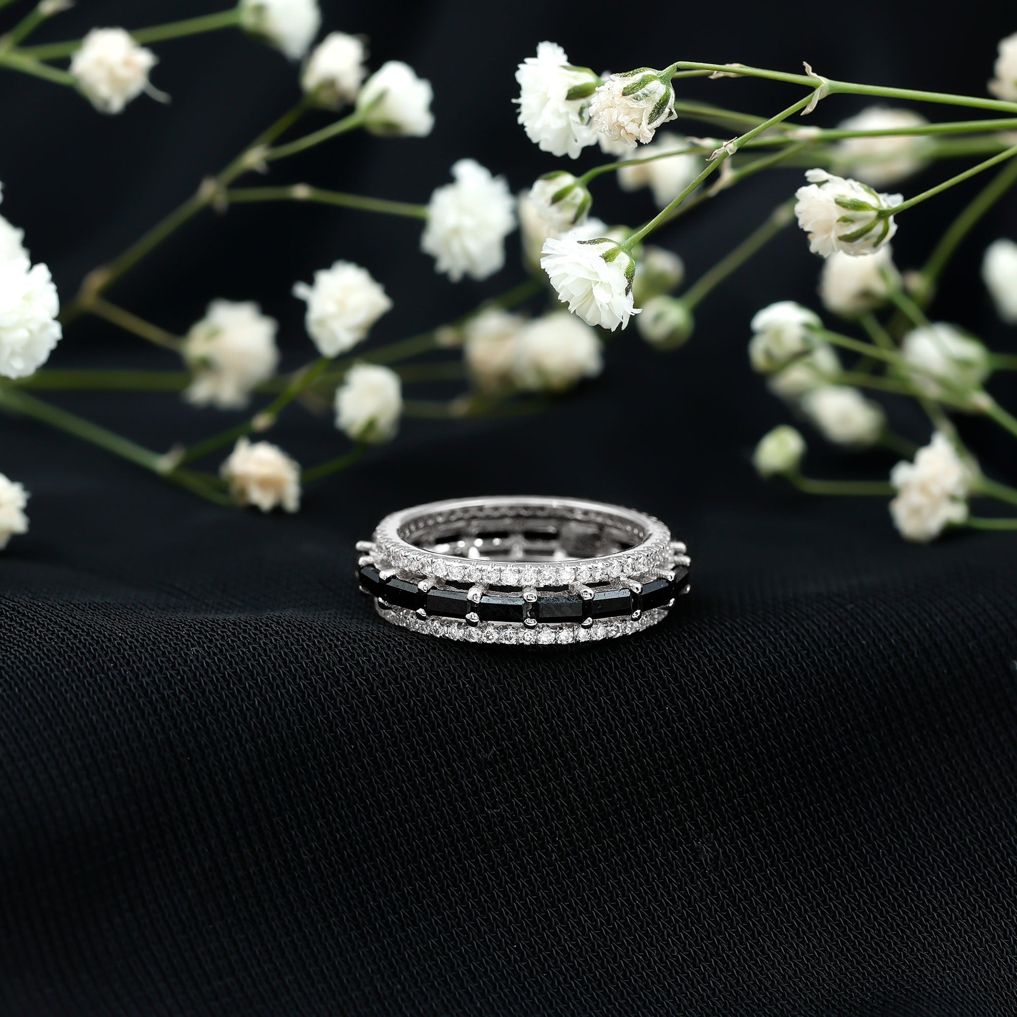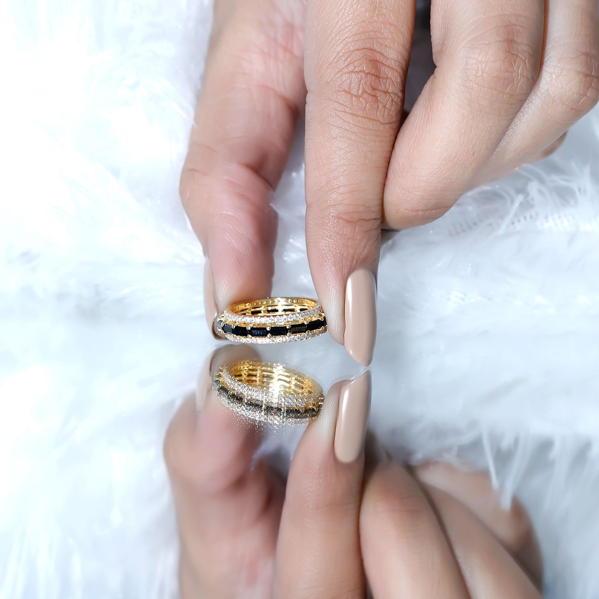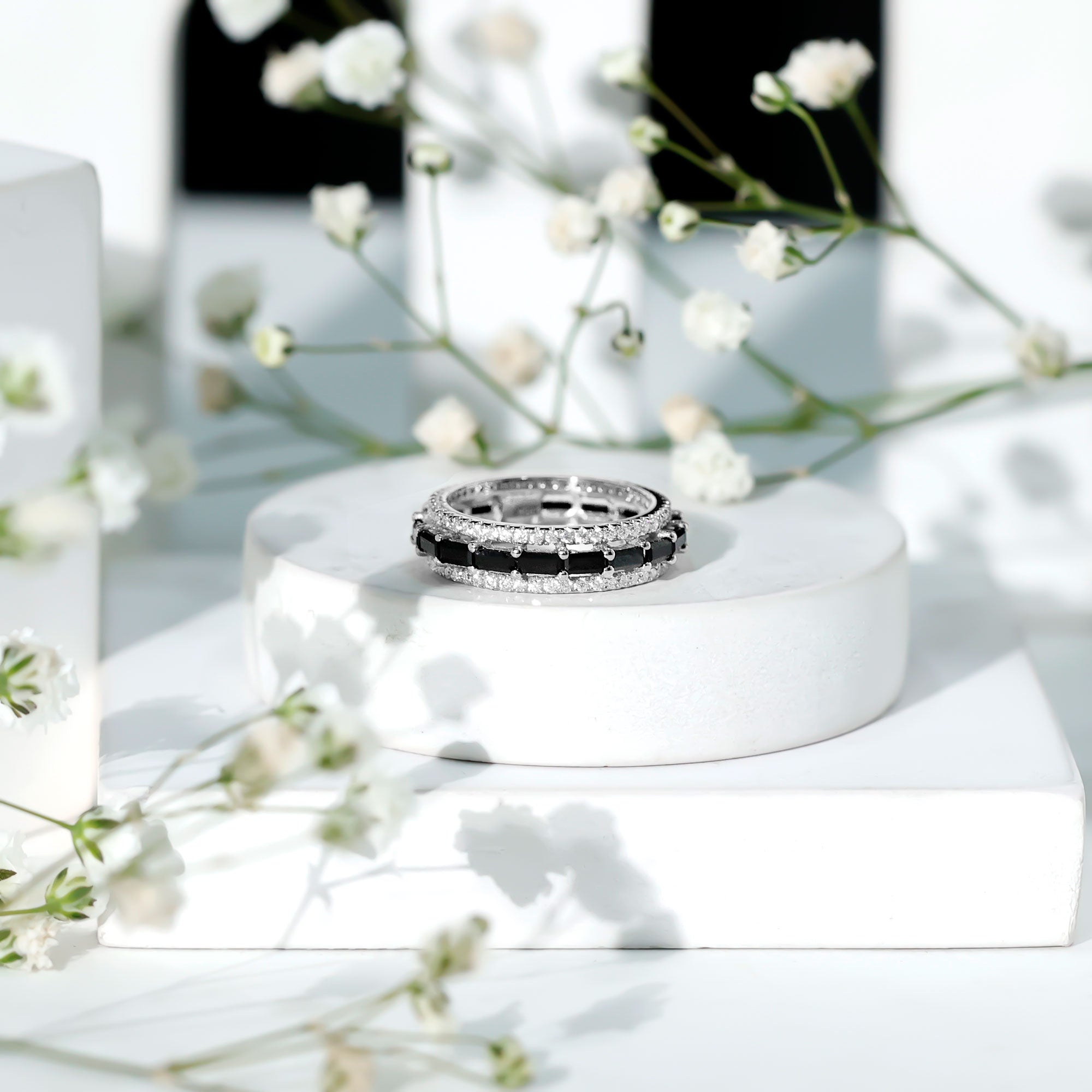 Celebrate your anniversary or special occasion with a lab black diamond eternity ring. This ring has a band of stunning black diamonds. It helps you stand out and enhances any other ring next to it. This includes wedding bands and engagement rings.