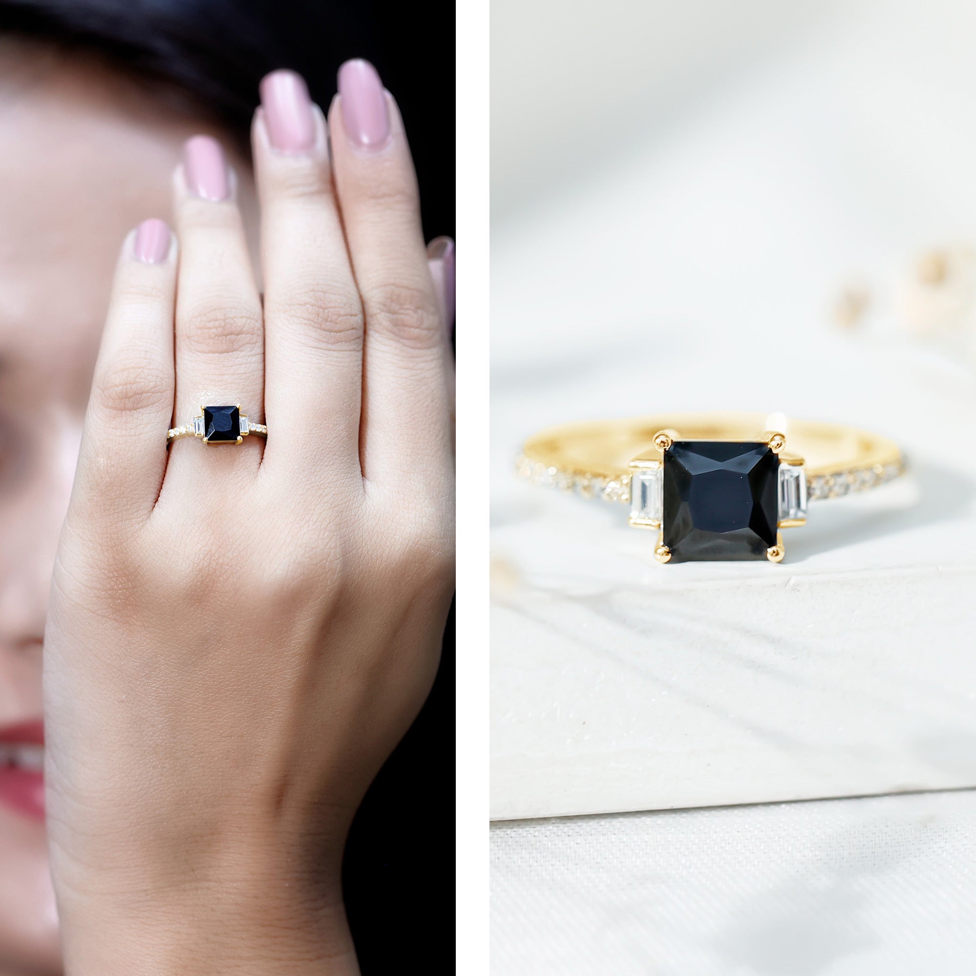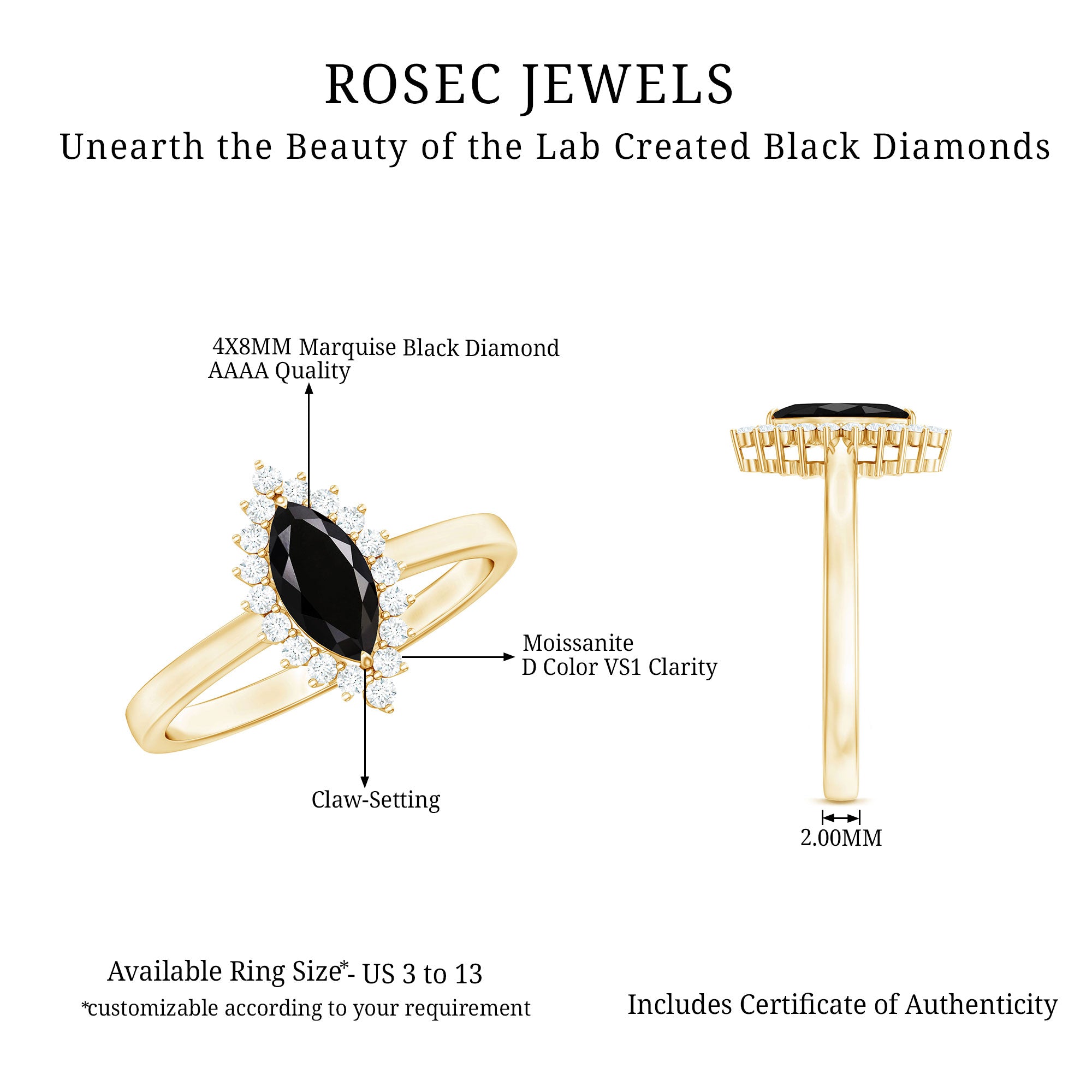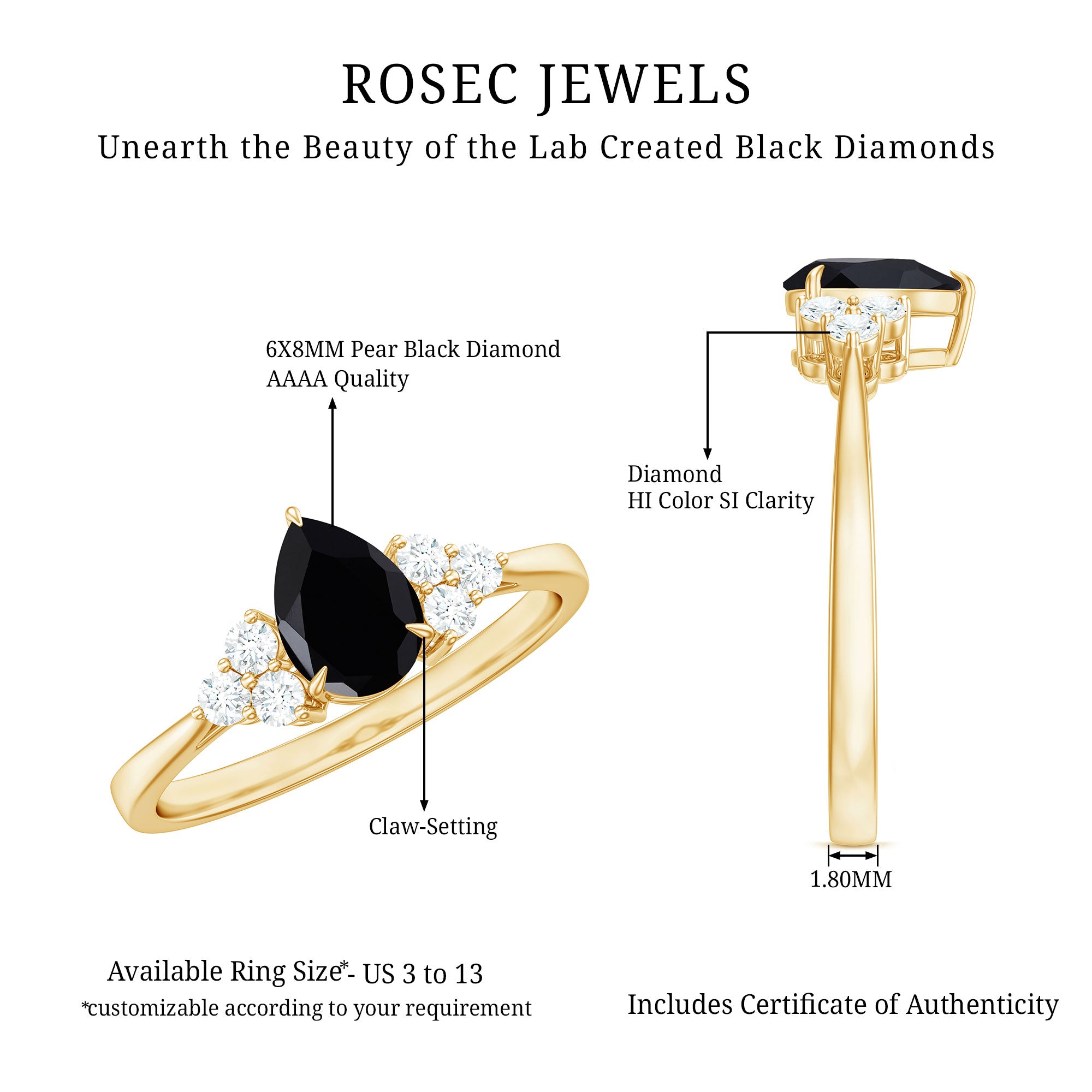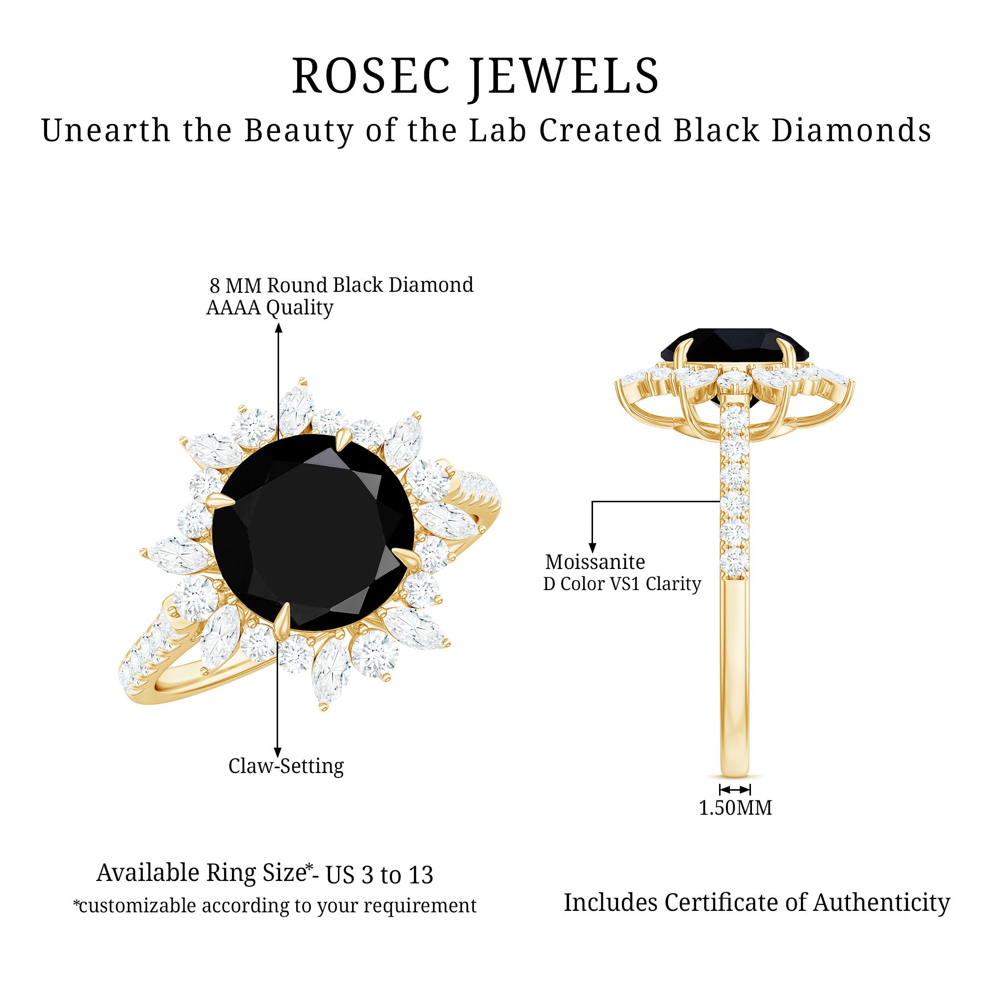 Type Of Metals: We have all three options of premium metals yellow gold, white gold, and rose gold. We also Have affordable and durable 92.5 silver metal options with lab black color gemstones.