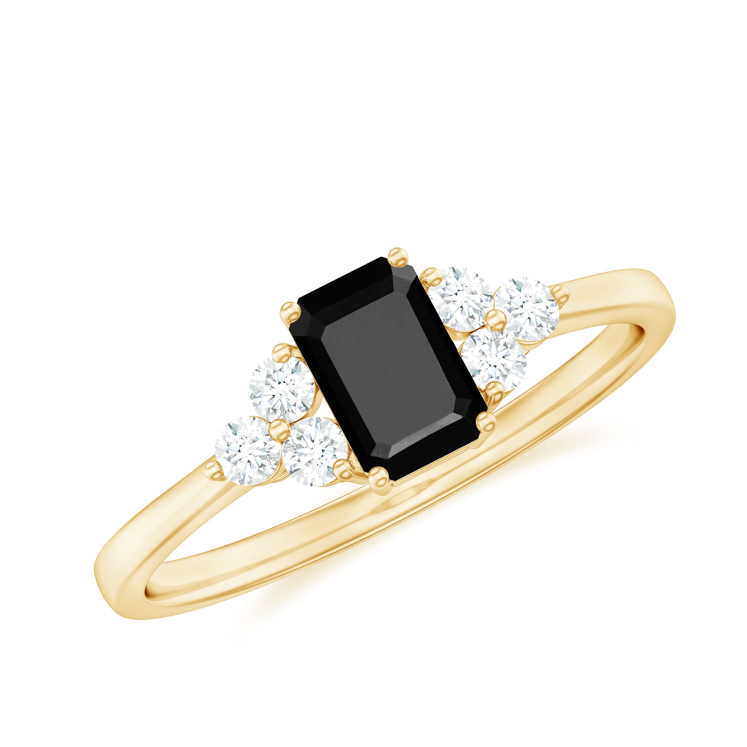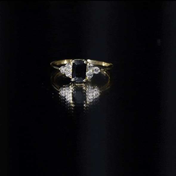 This ring style incorporates three sparkling lab-grown black diamonds that are embellished together. The triple gems of lab black diamond here shed upon the unique journey of a couple’s togetherness. Each of the three stones signifies the past, present, and future, respectively.