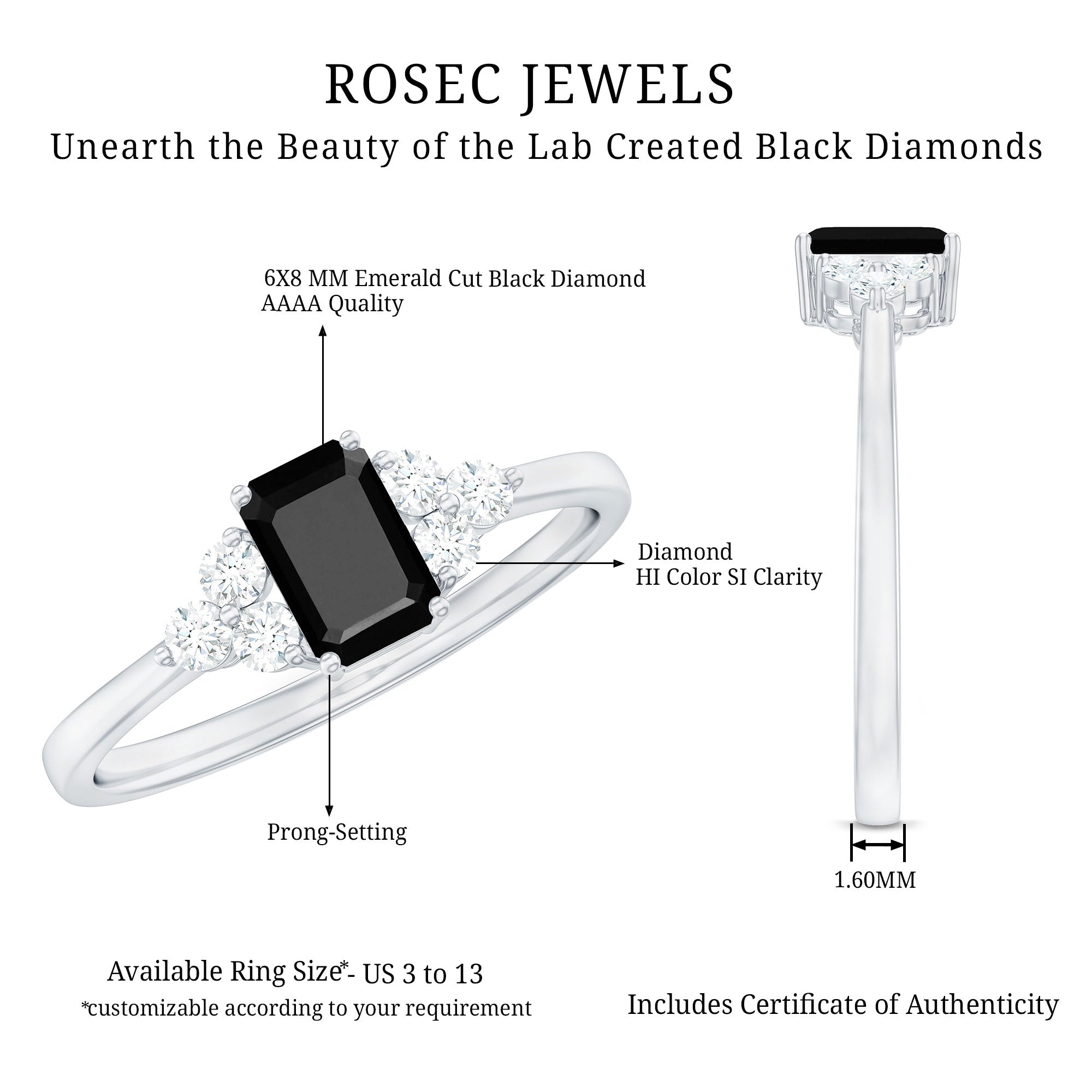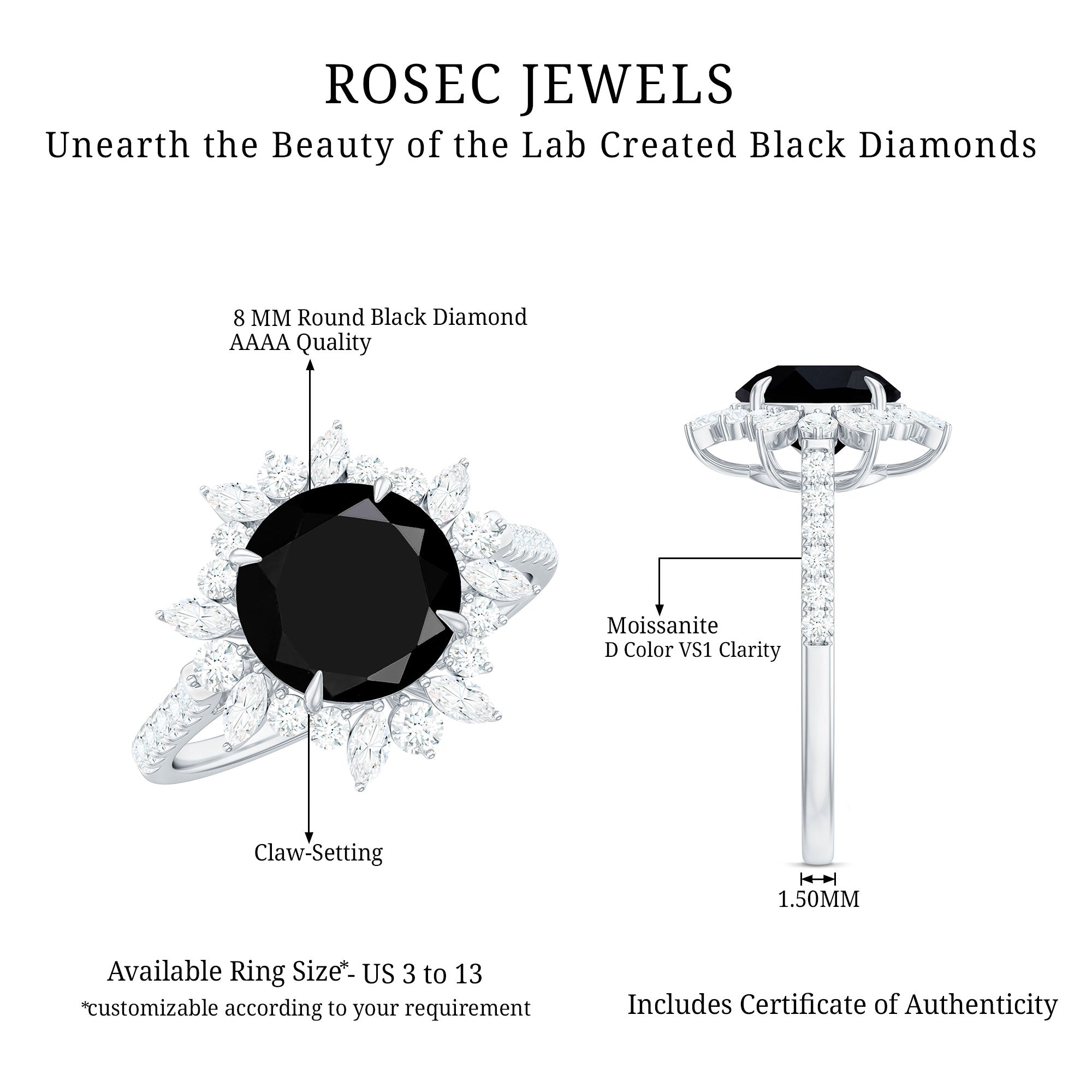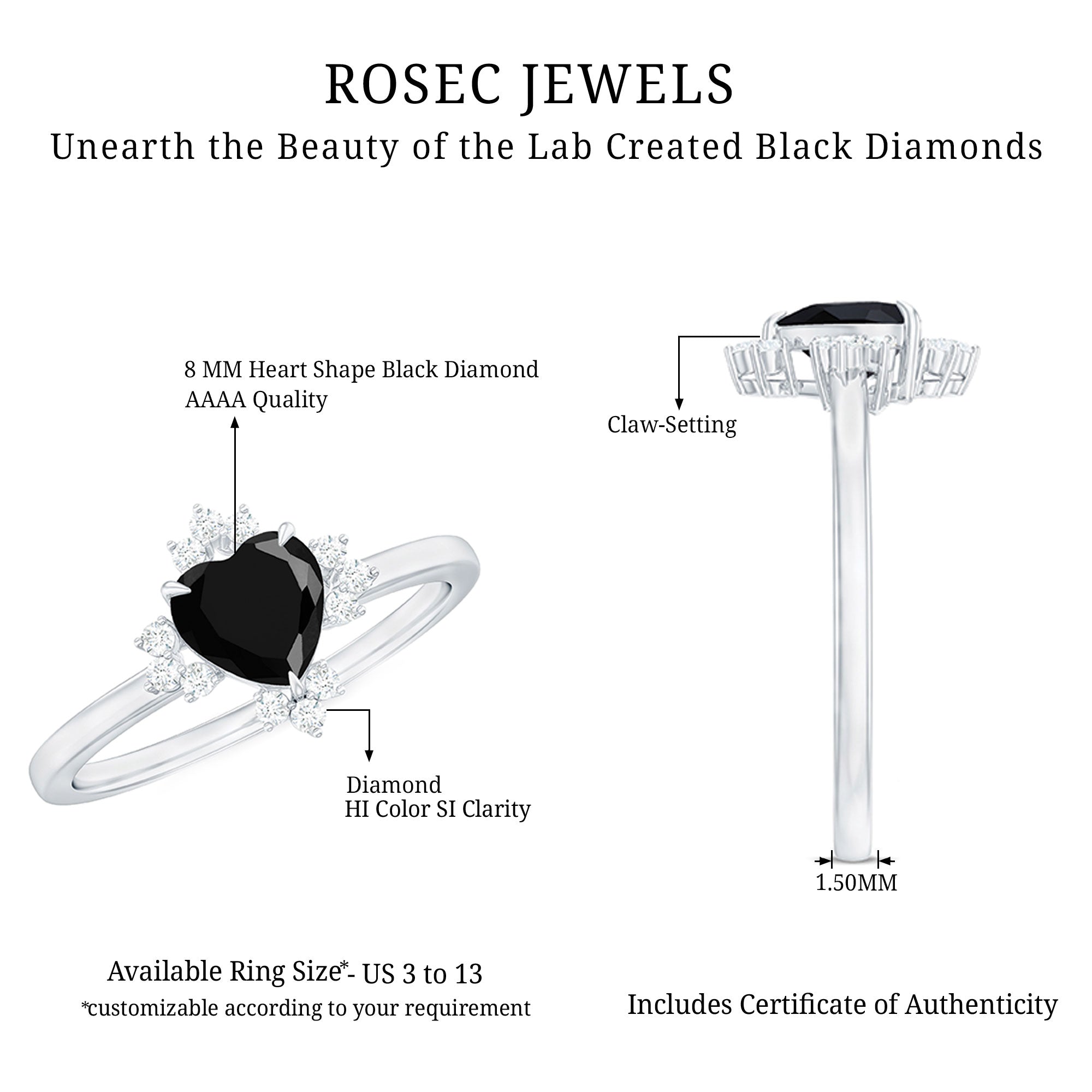 Wide Range of Options: In an attempt to celebrate all kinds of senses of style, occasions types of rings such as solitaire, halo, vintage style, and more. We have come up with a catalog of Lab Black Diamond Jewelry that has something for everyone!