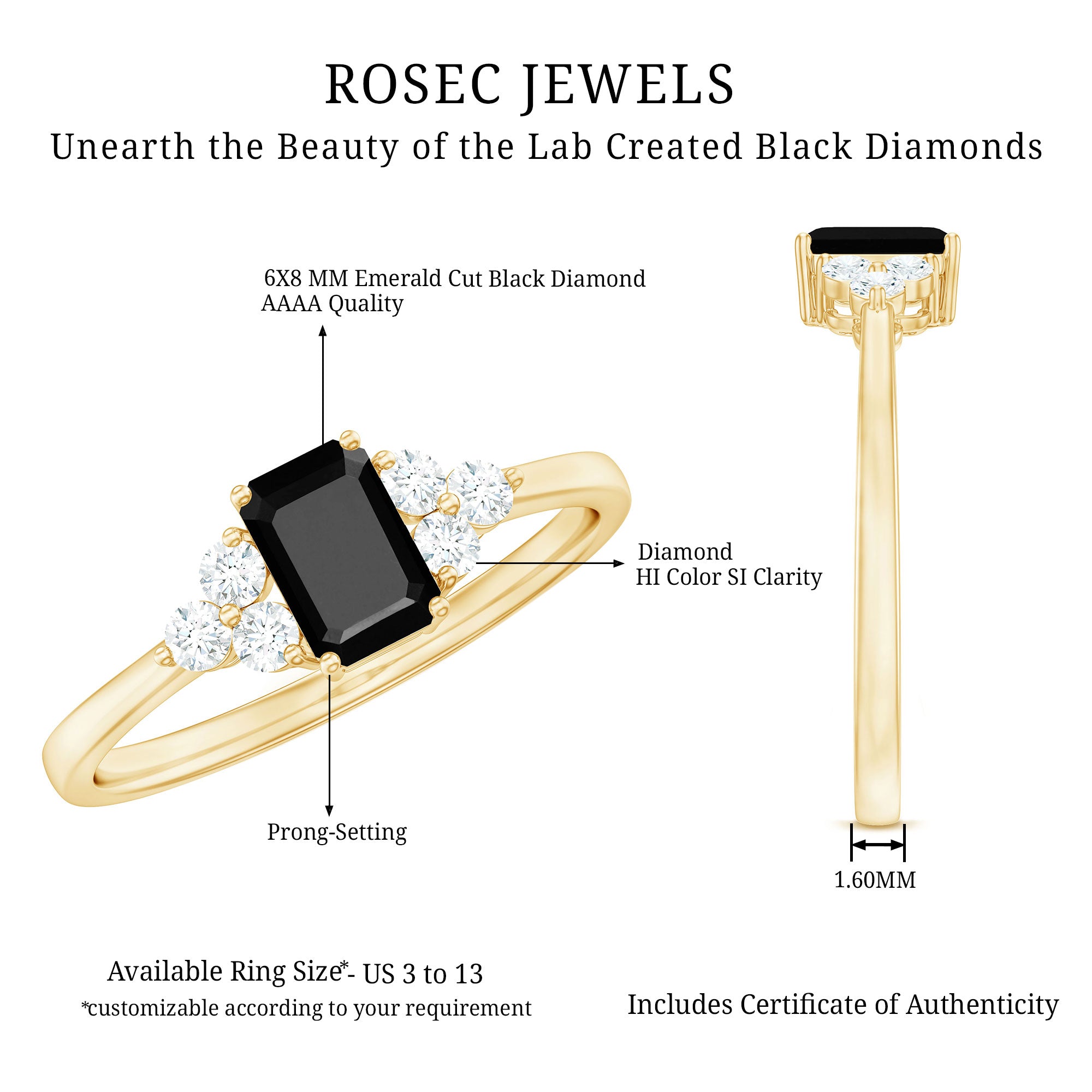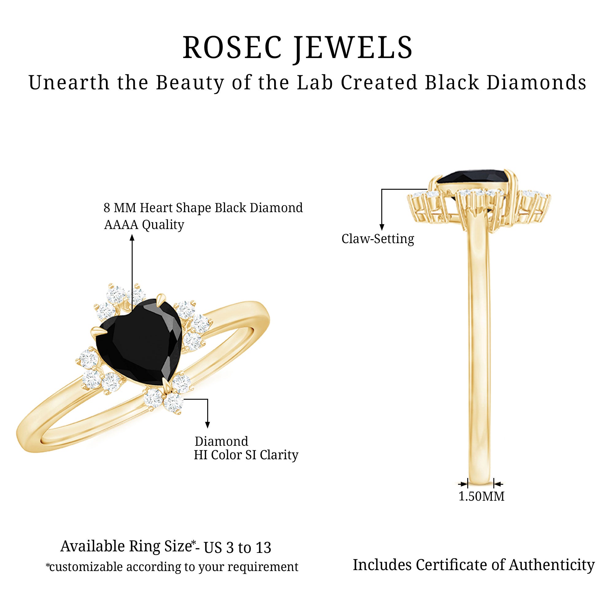 Rosec Jewels has emerged as the one-stop destination that has expertise in skill and creativity and brings forward a catalog of Lab Grown Black Diamond Jewelry that never lets you settle for anything less than you deserve. Here are some factors that set us apart:
