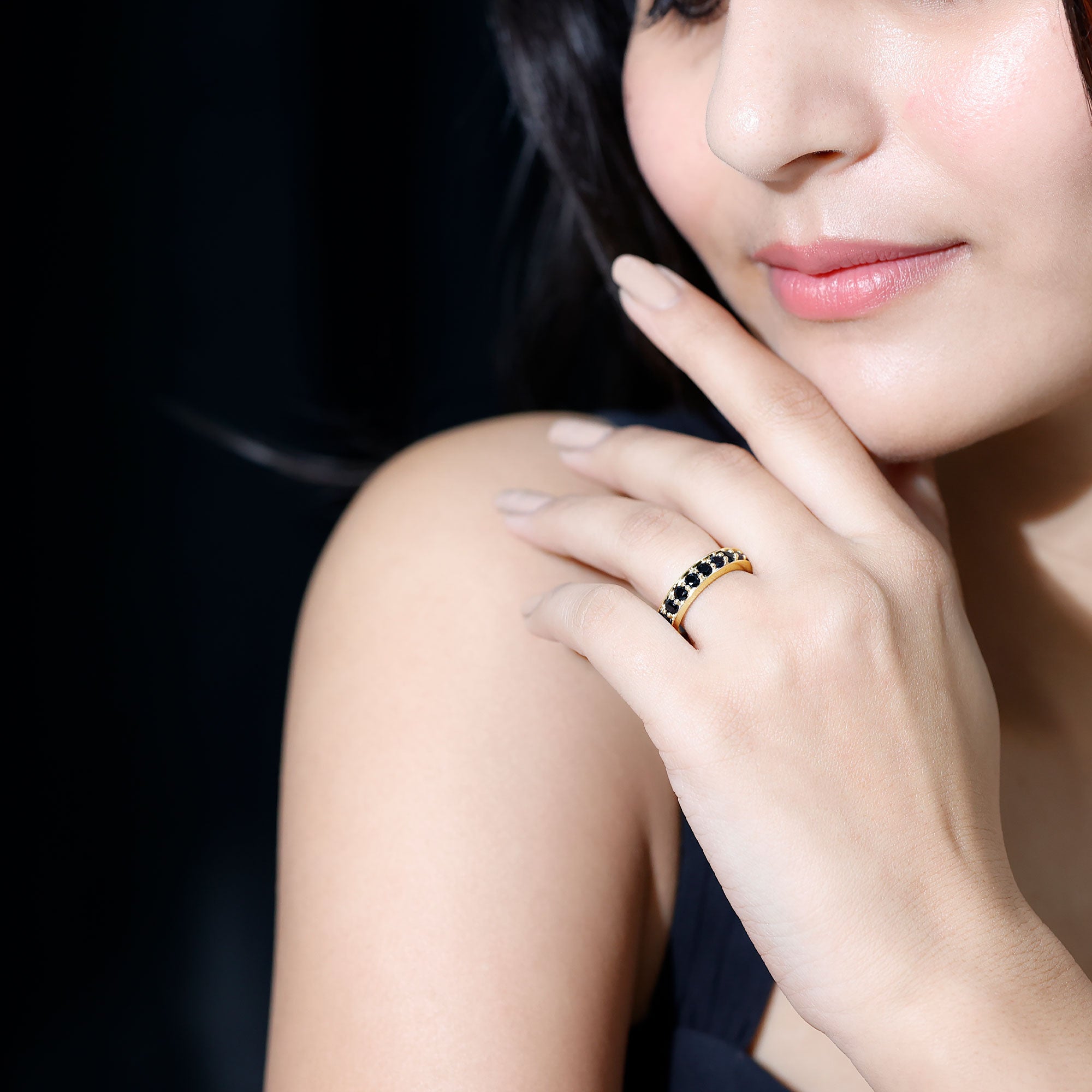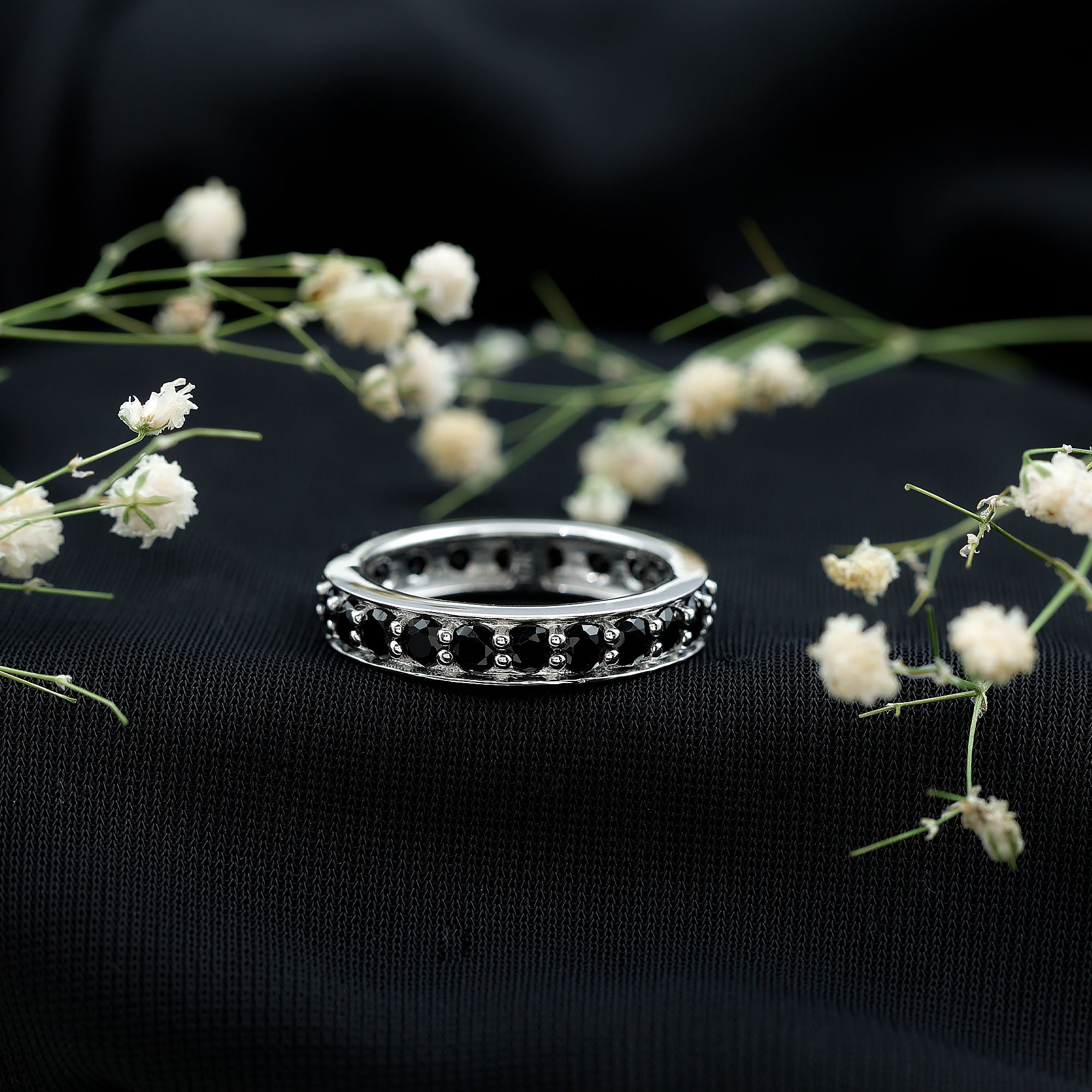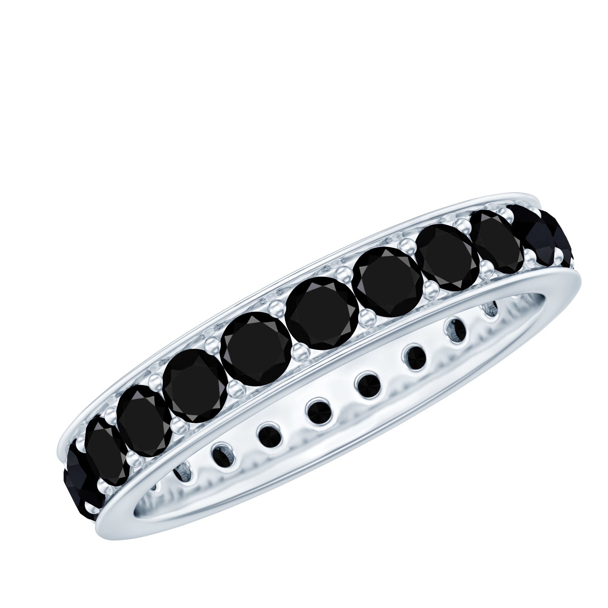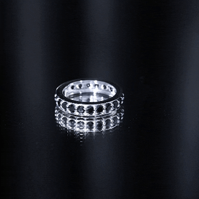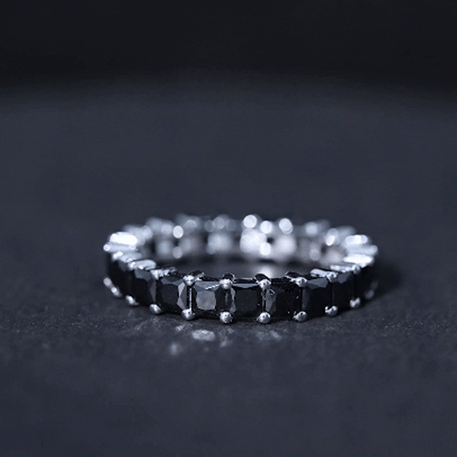 Celebrate your anniversary or special occasion with a lab black diamond eternity ring. This ring has a band of stunning black diamonds. It helps you stand out and enhances any other ring next to it. This includes wedding bands and engagement rings.