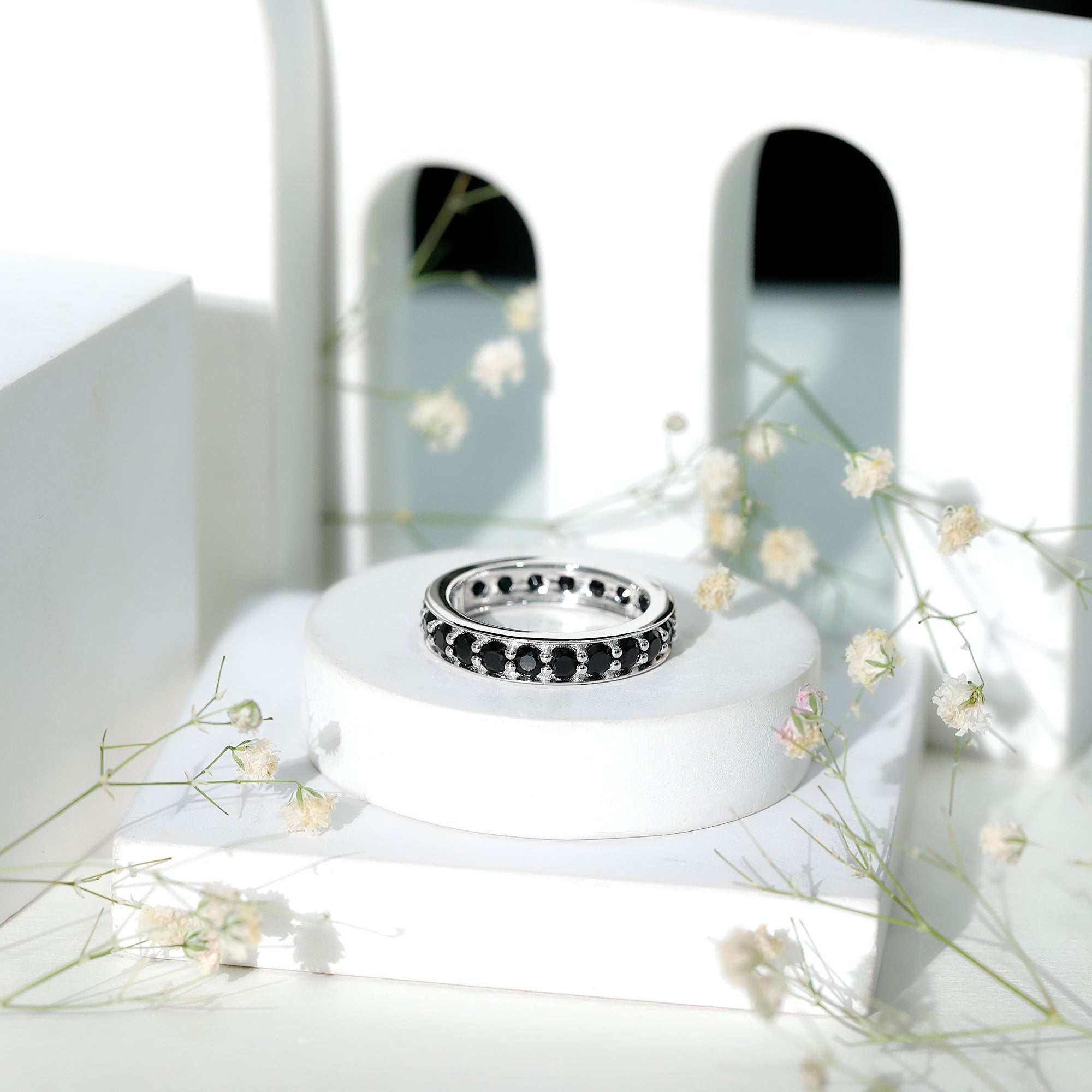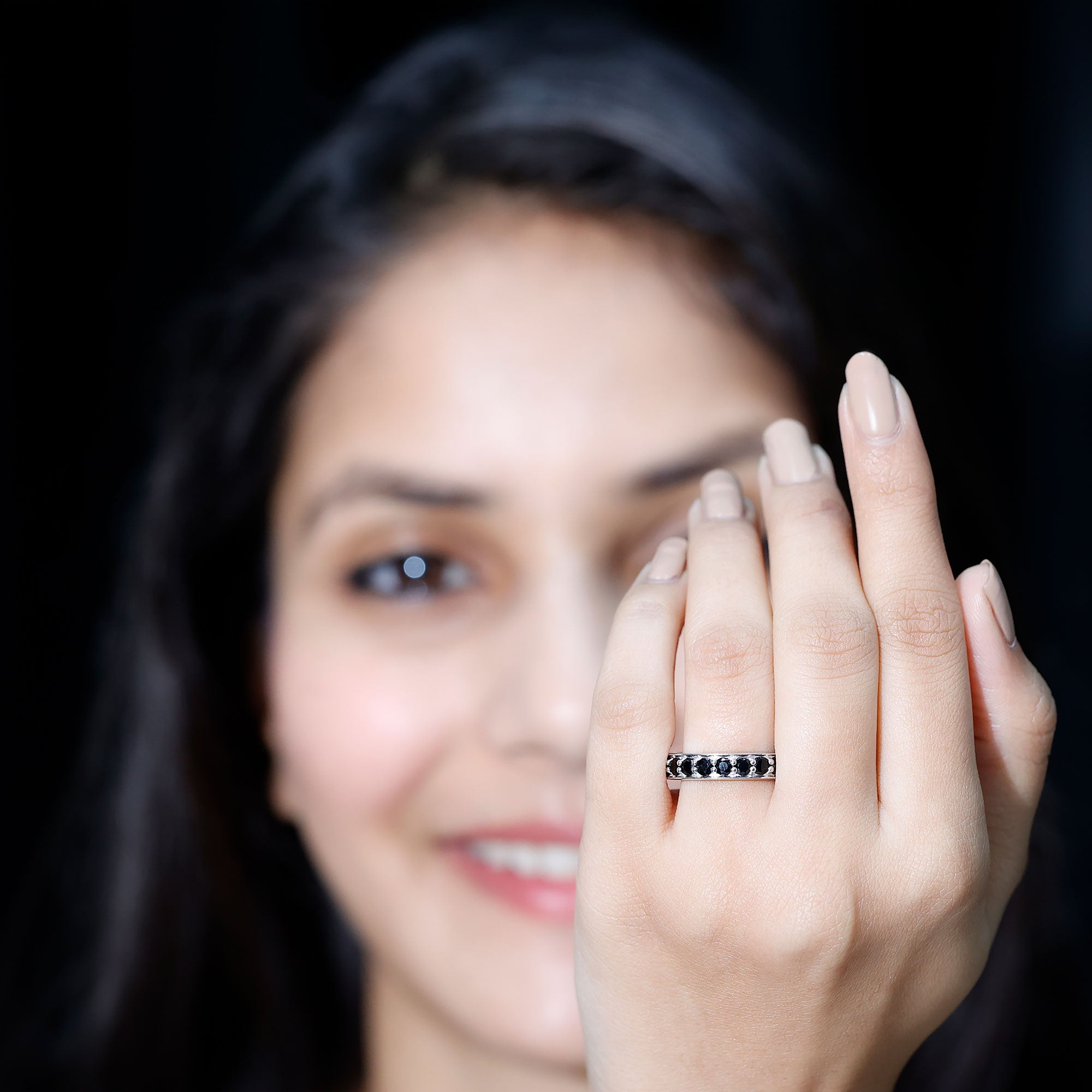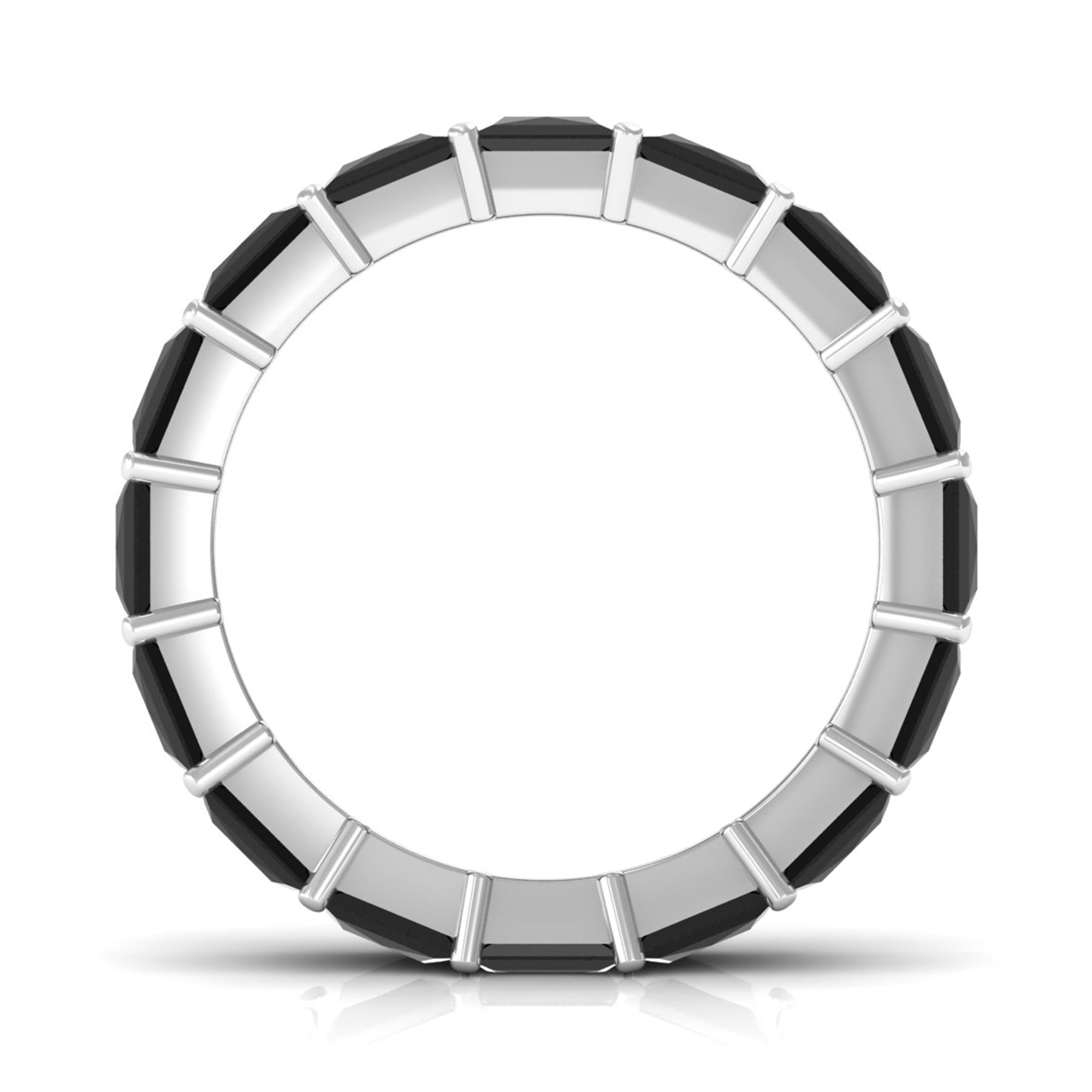 Celebrate your anniversary or special occasion with a lab black diamond eternity ring. This ring has a band of stunning black diamonds. It helps you stand out and enhances any other ring next to it. This includes wedding bands and engagement rings.