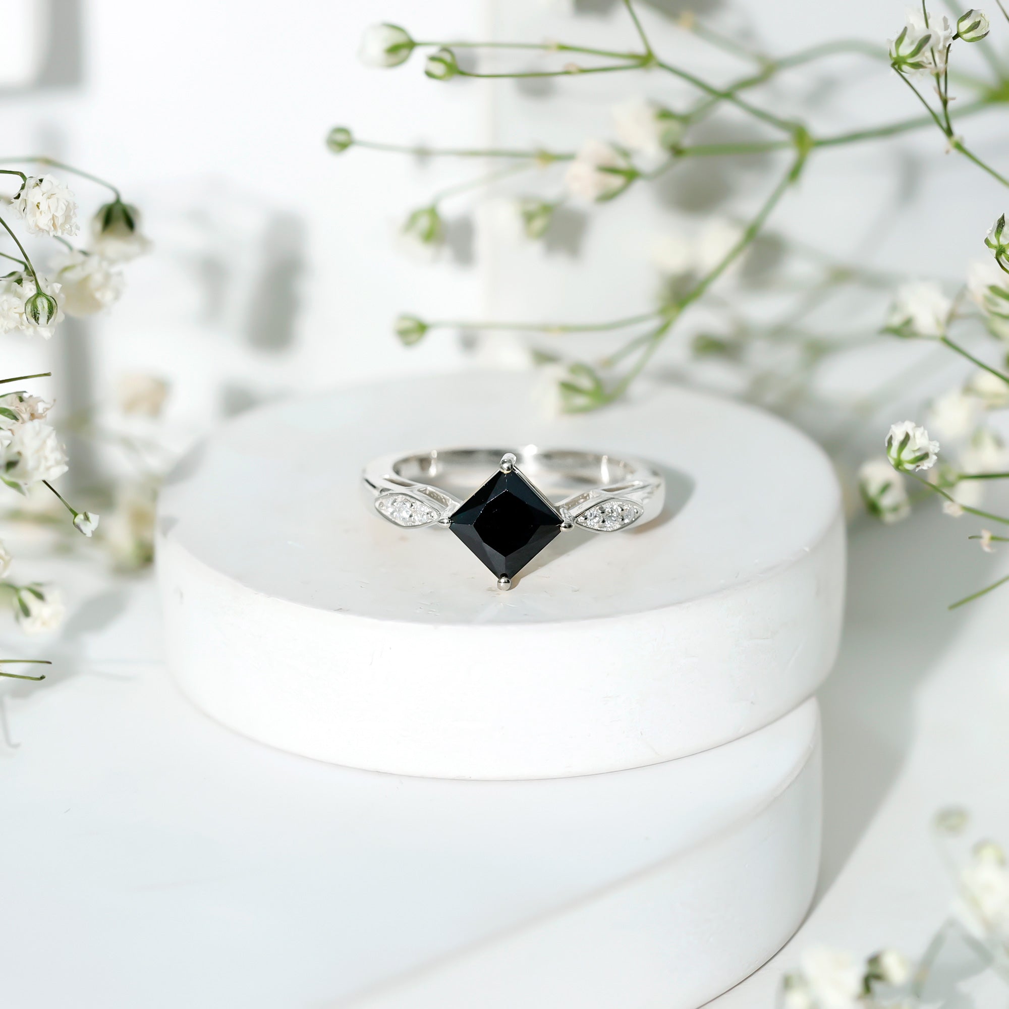 Promise rings symbolize devotion and commitment, as they are also called pre-engagement rings. Featuring a synthetic black diamond gemstone either in a simple style or enhanced by diamonds or other gems to make it more attractive. The black diamond promise rings are an incredible way to express your feelings for your special one. An ideal reminder of the commitment you both share.